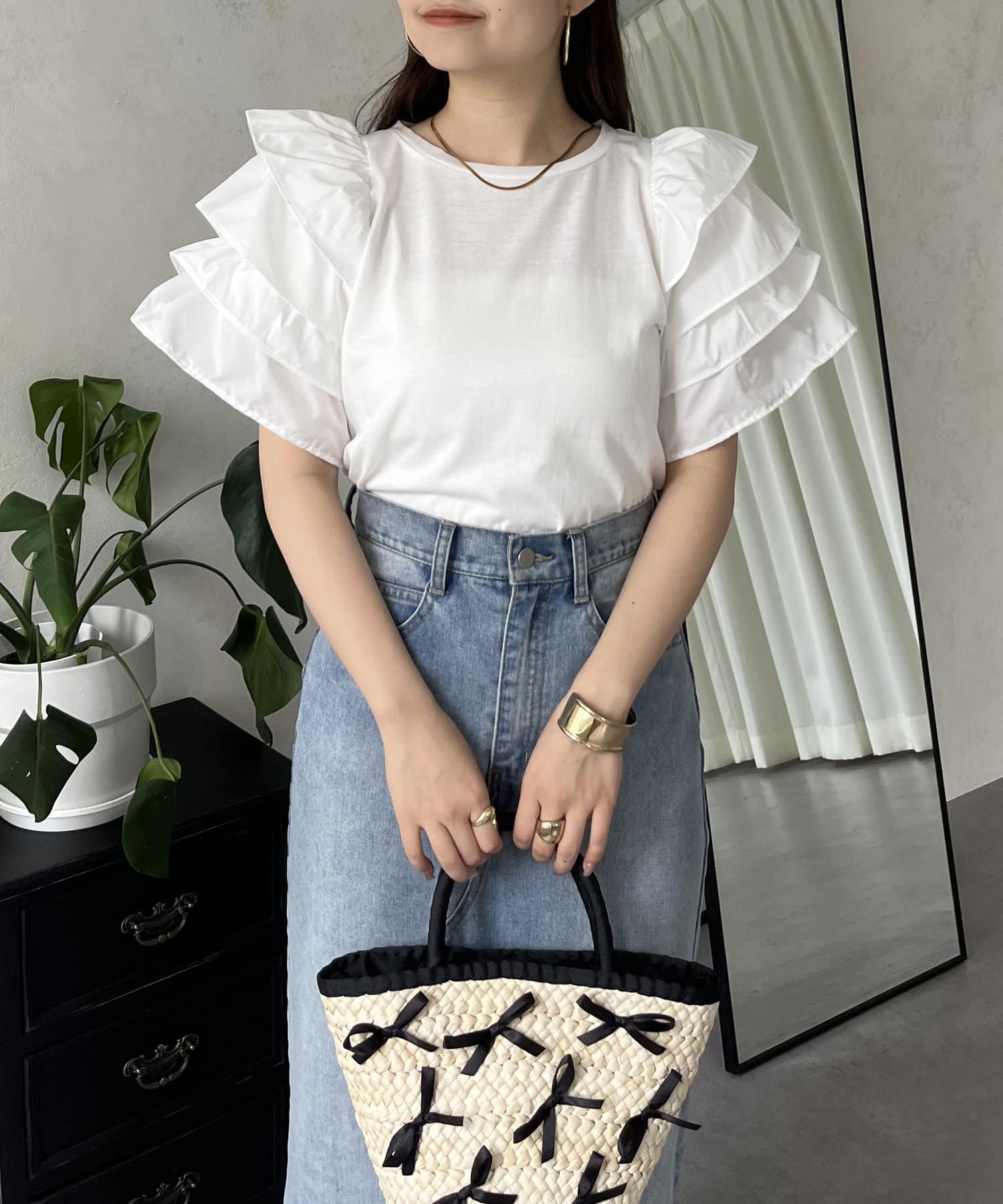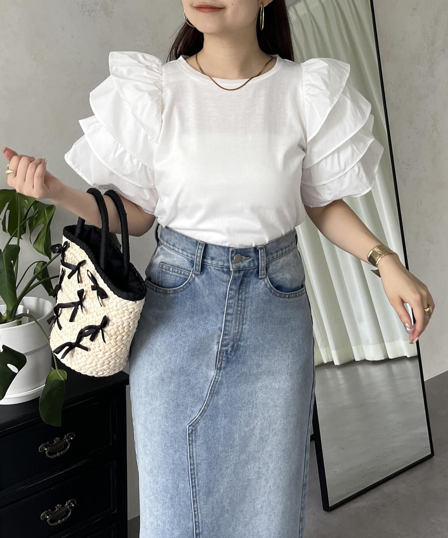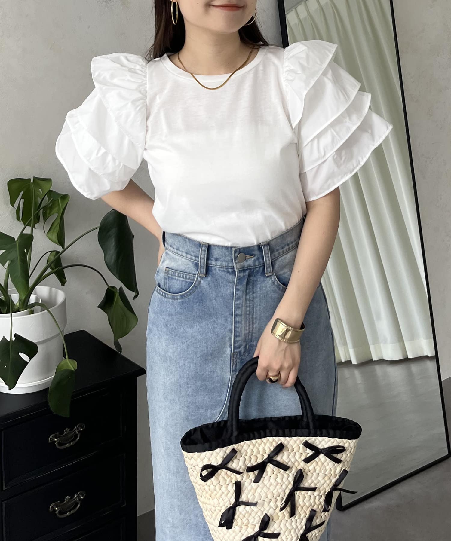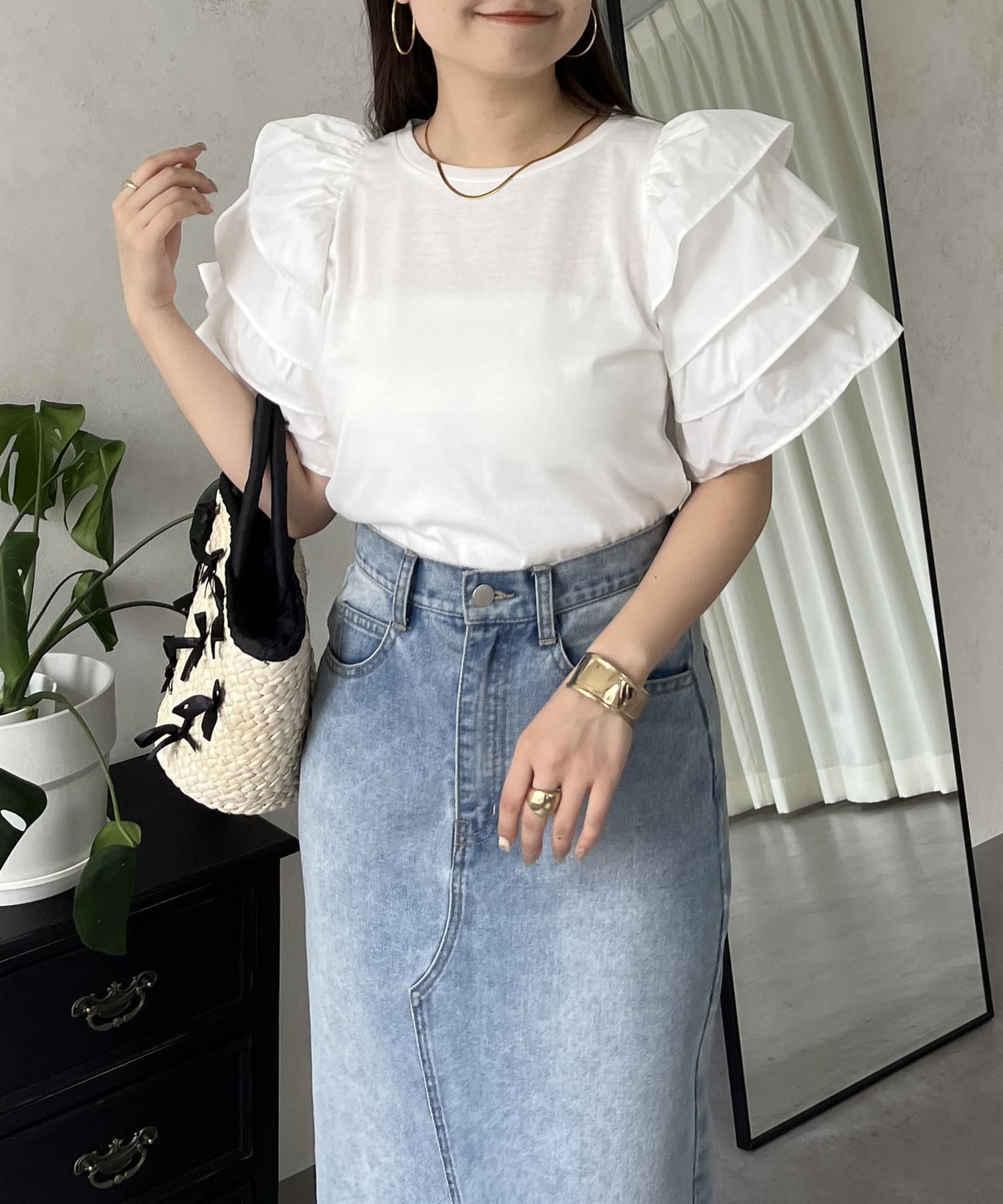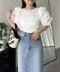 ●シンプルになりがちなTシャツもボリュームスリーブのおかげで一気に華やかに◎