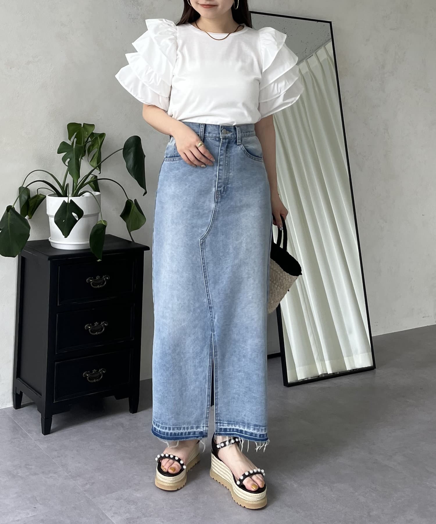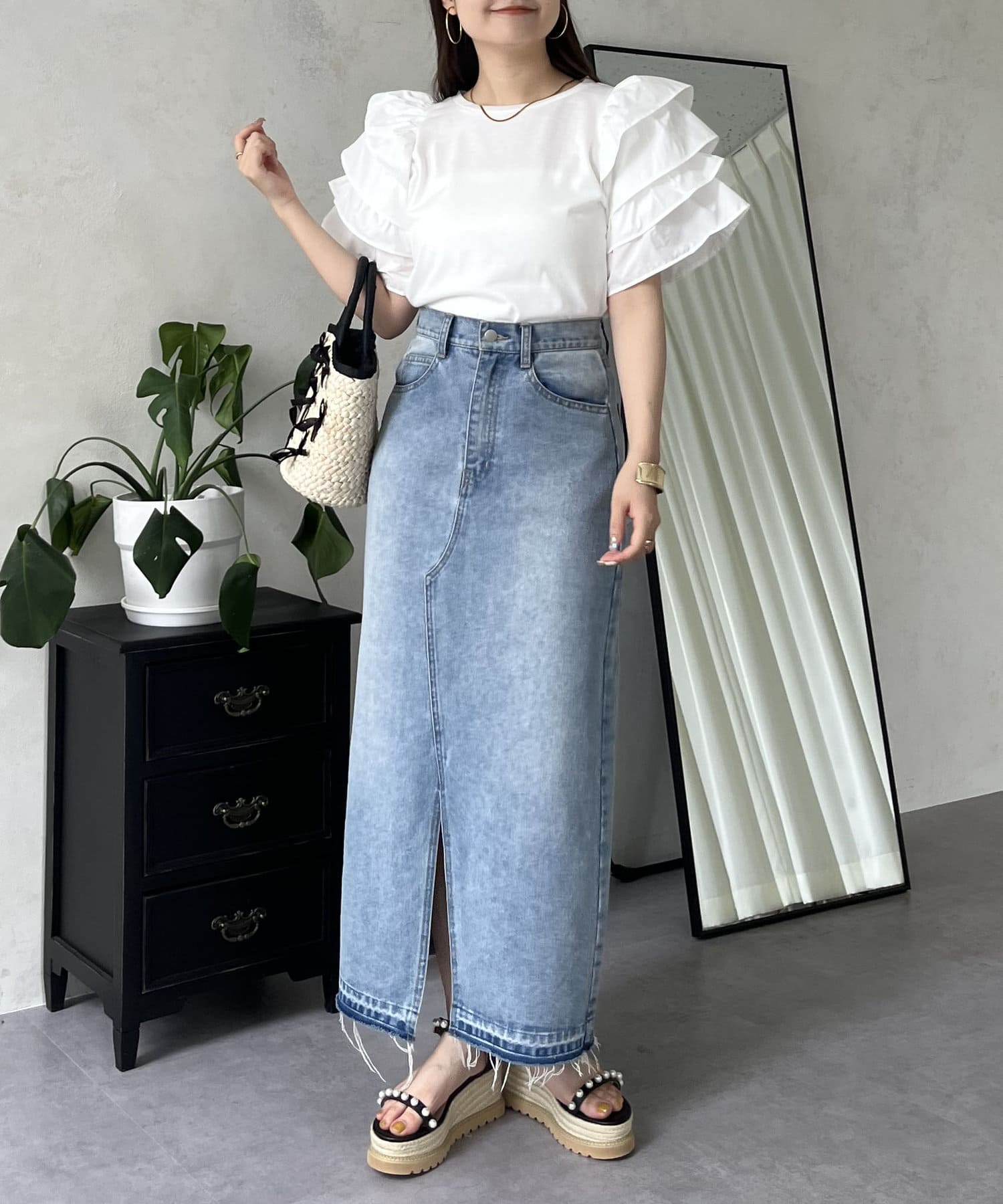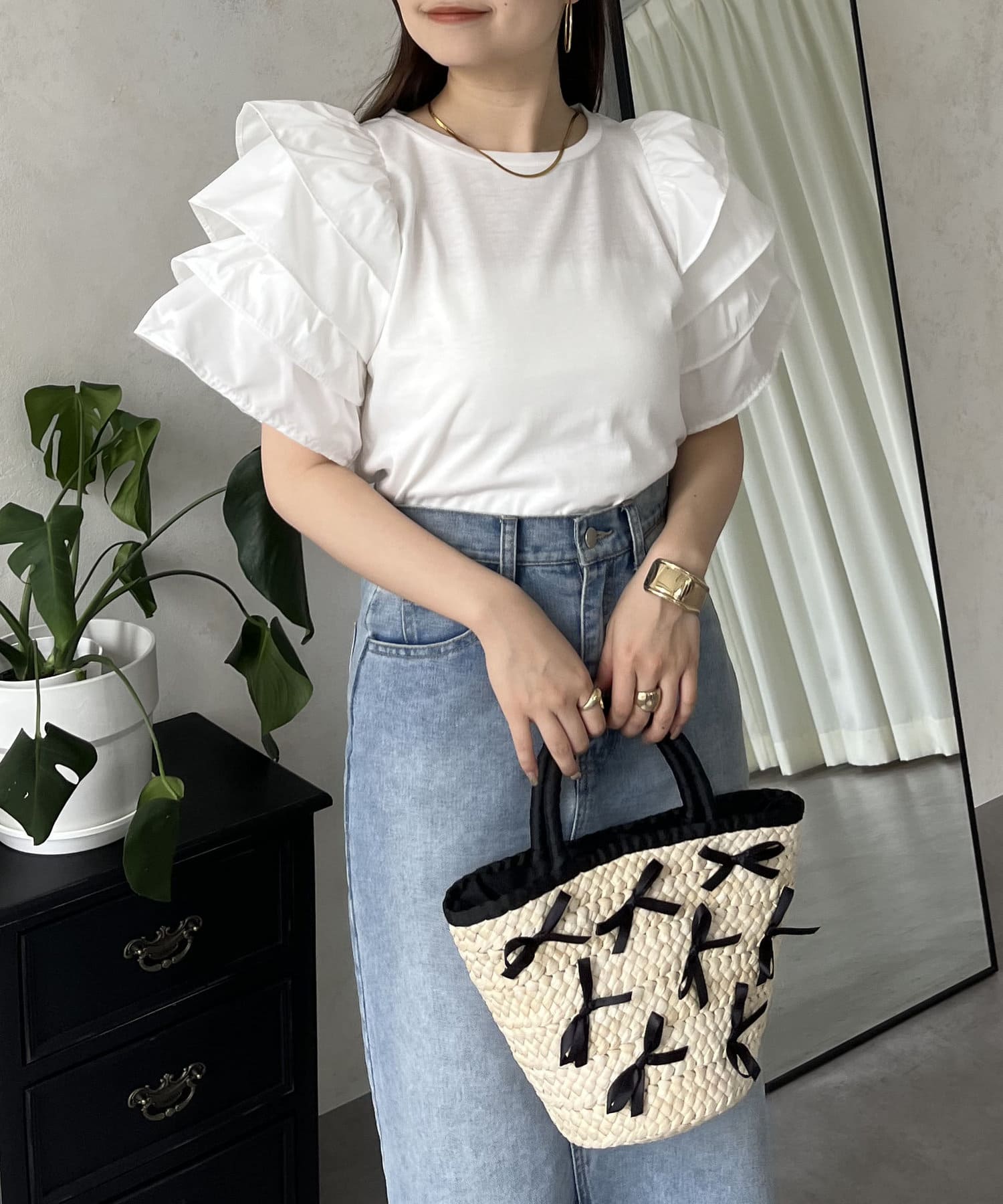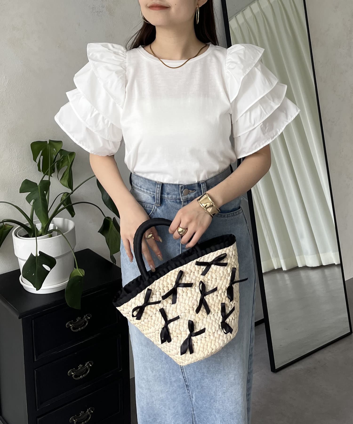 ●シンプルになりがちなTシャツもボリュームスリーブのおかげで一気に華やかに◎