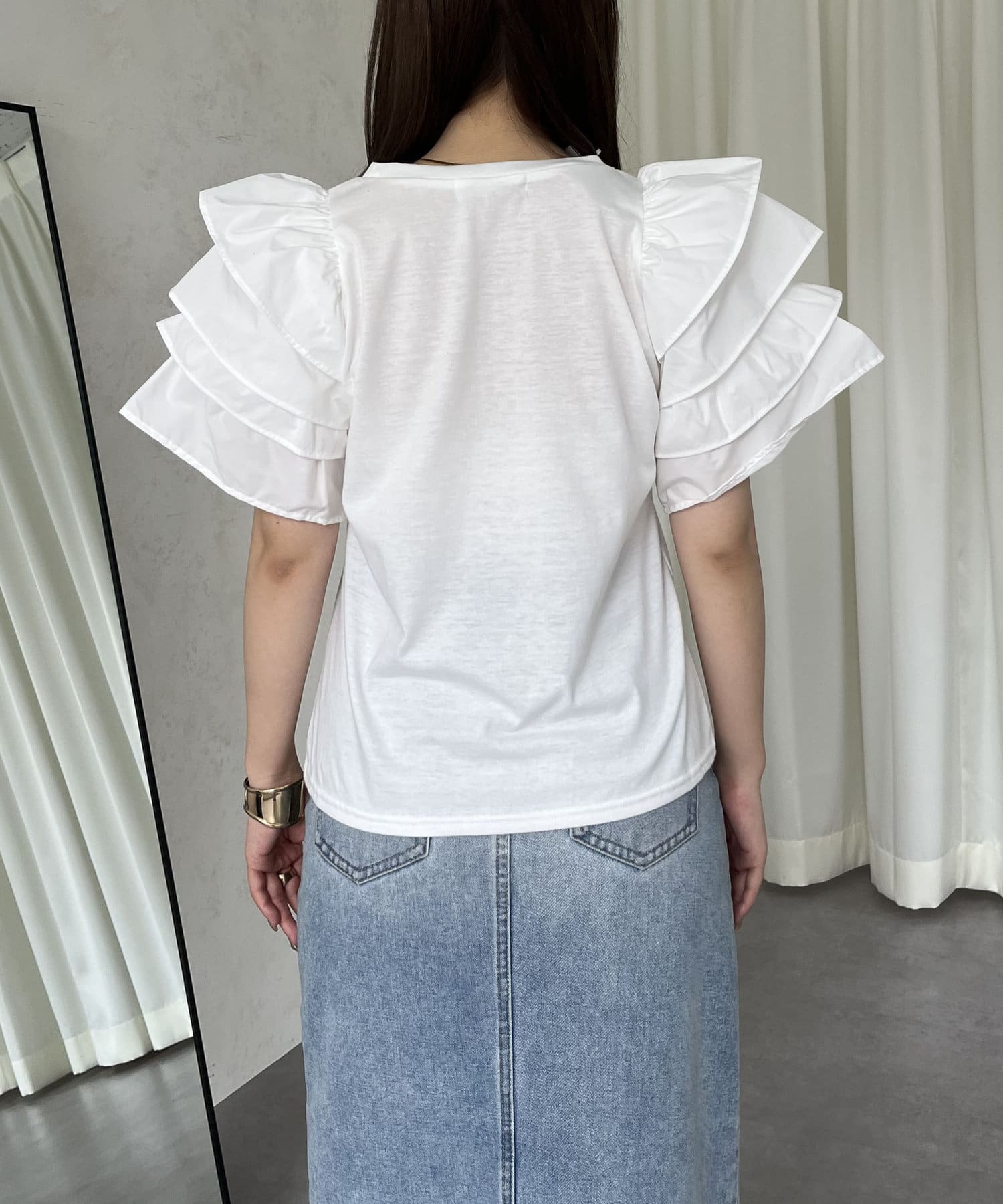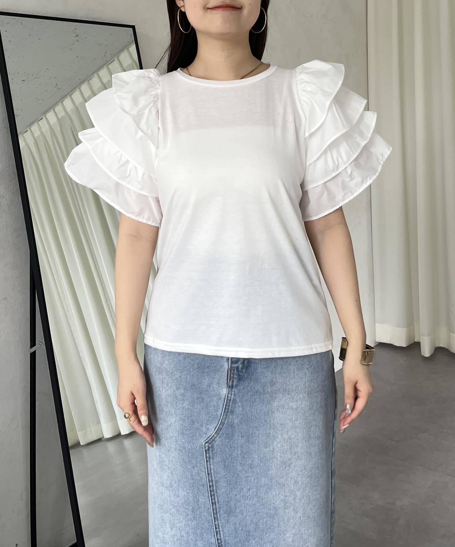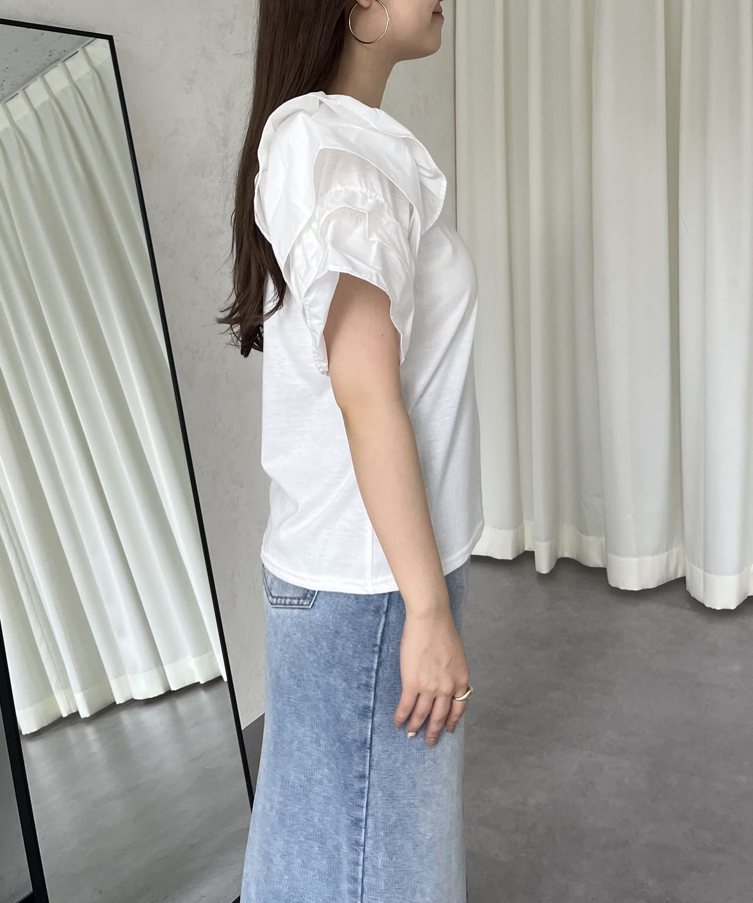 ボリュームフリルスリーブTシャツ