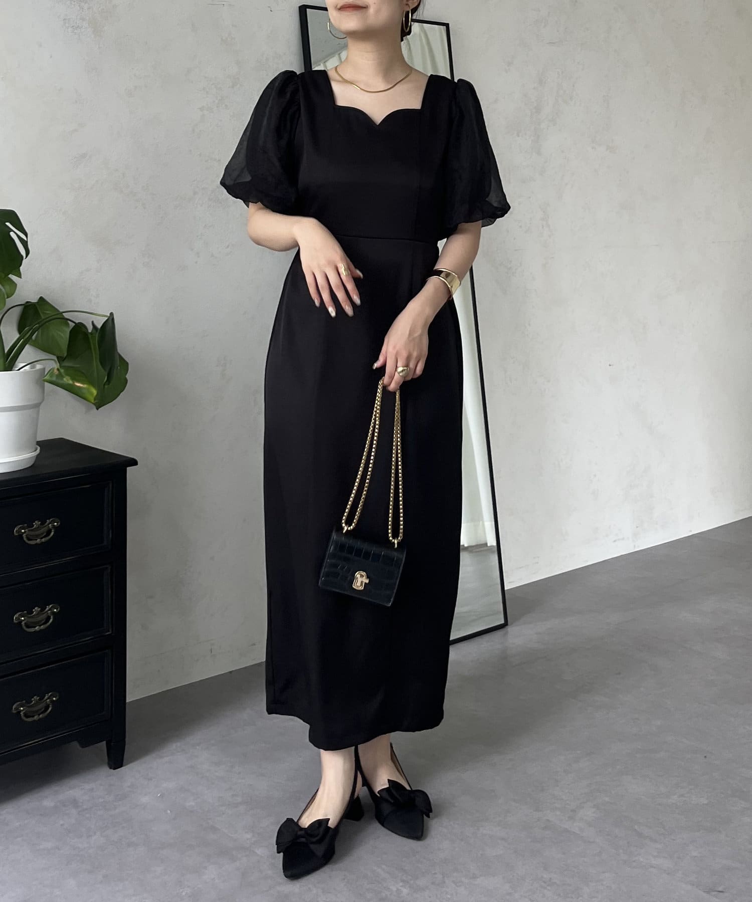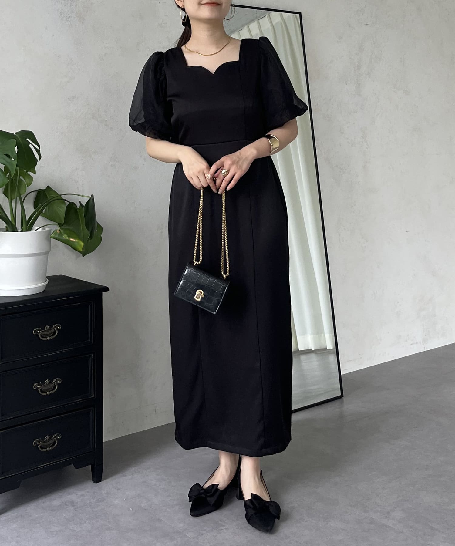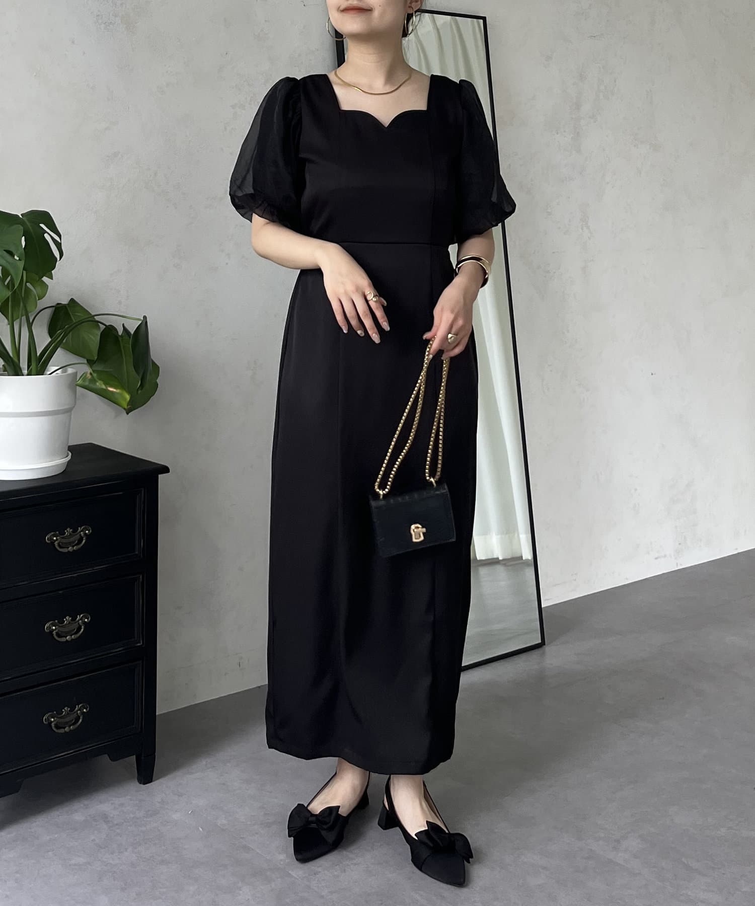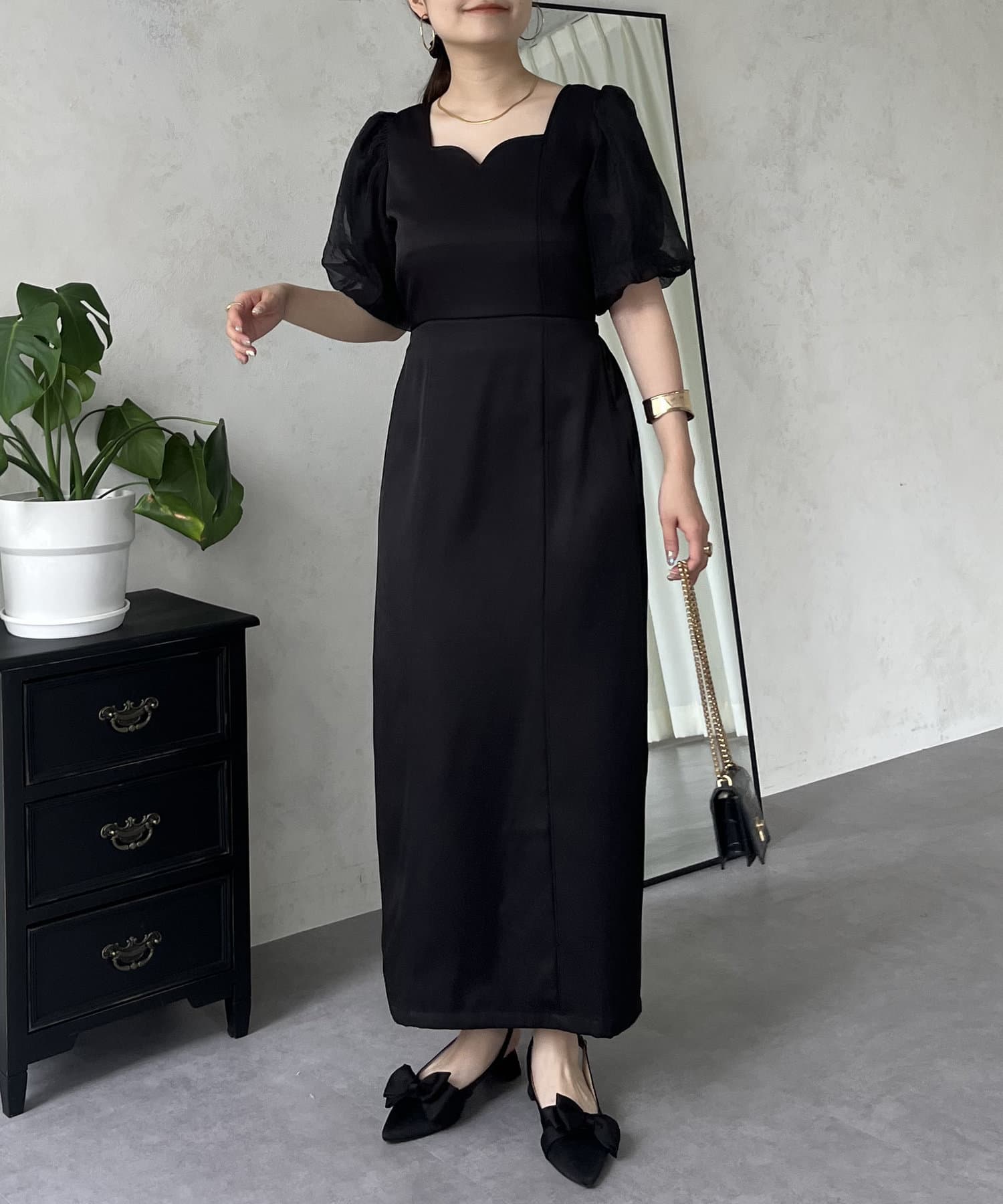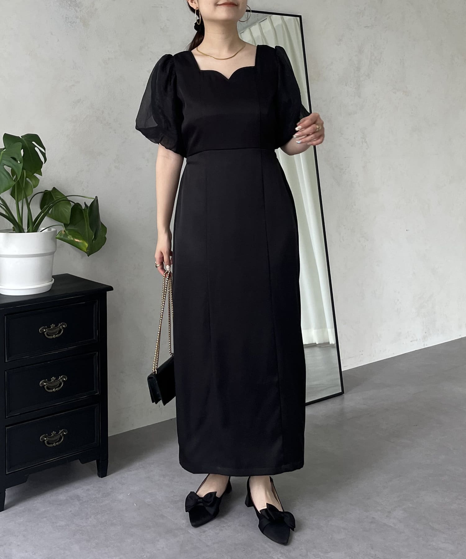 【オケージョン】ハートネックパフスリーブナローワンピース