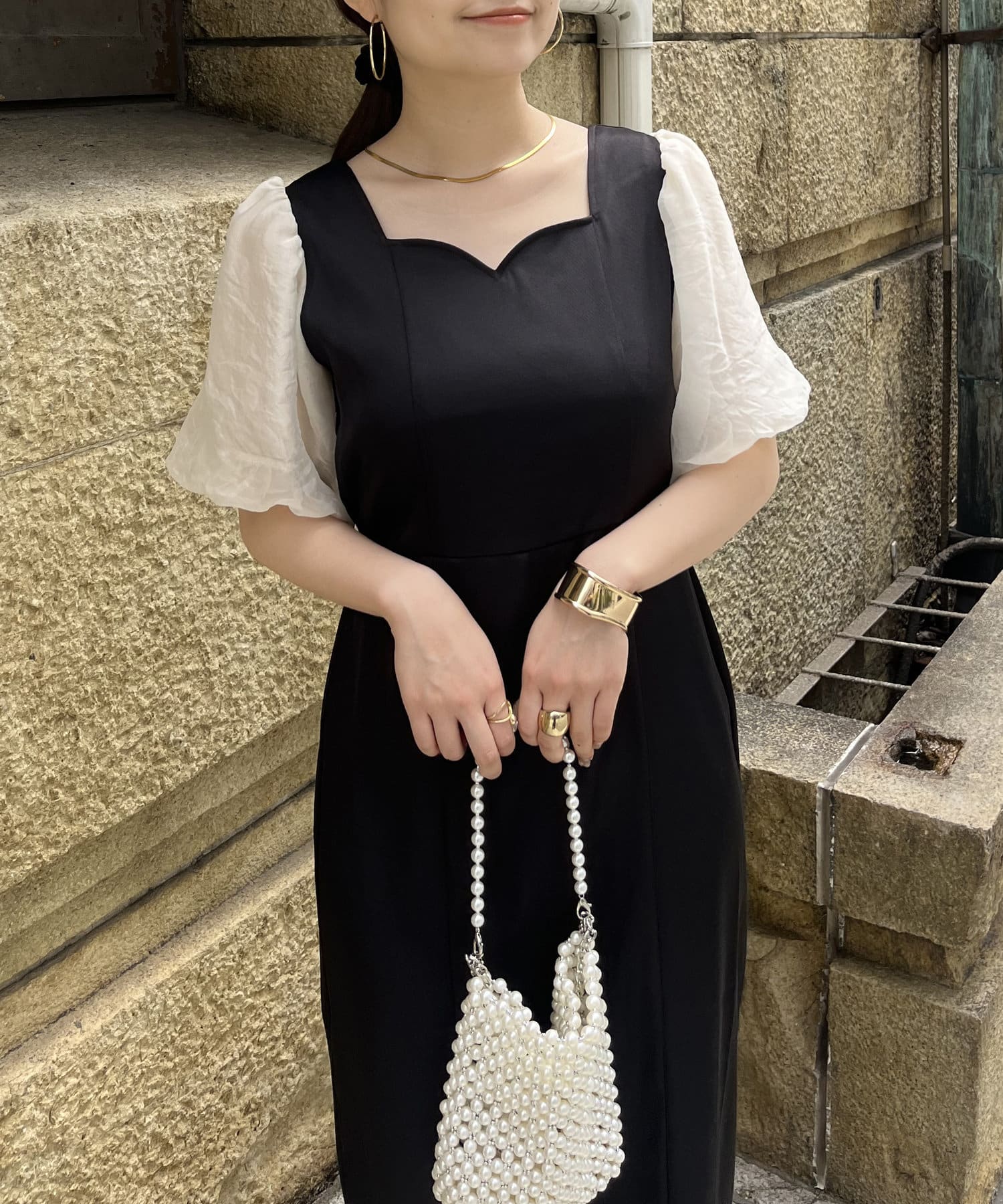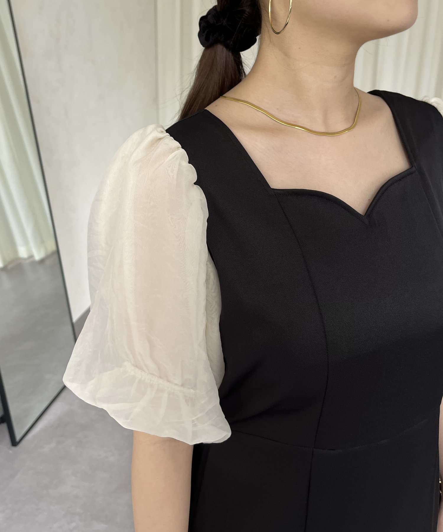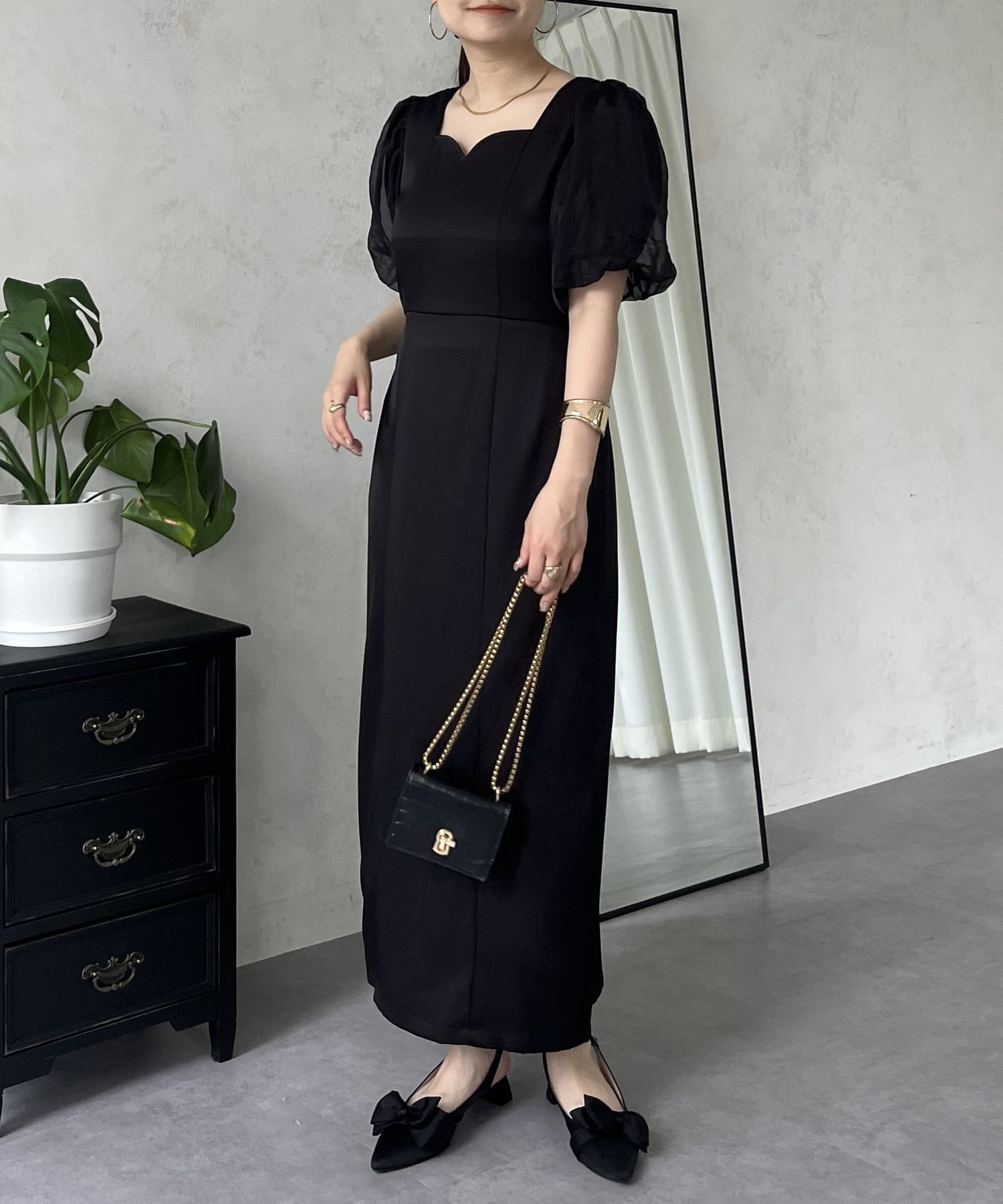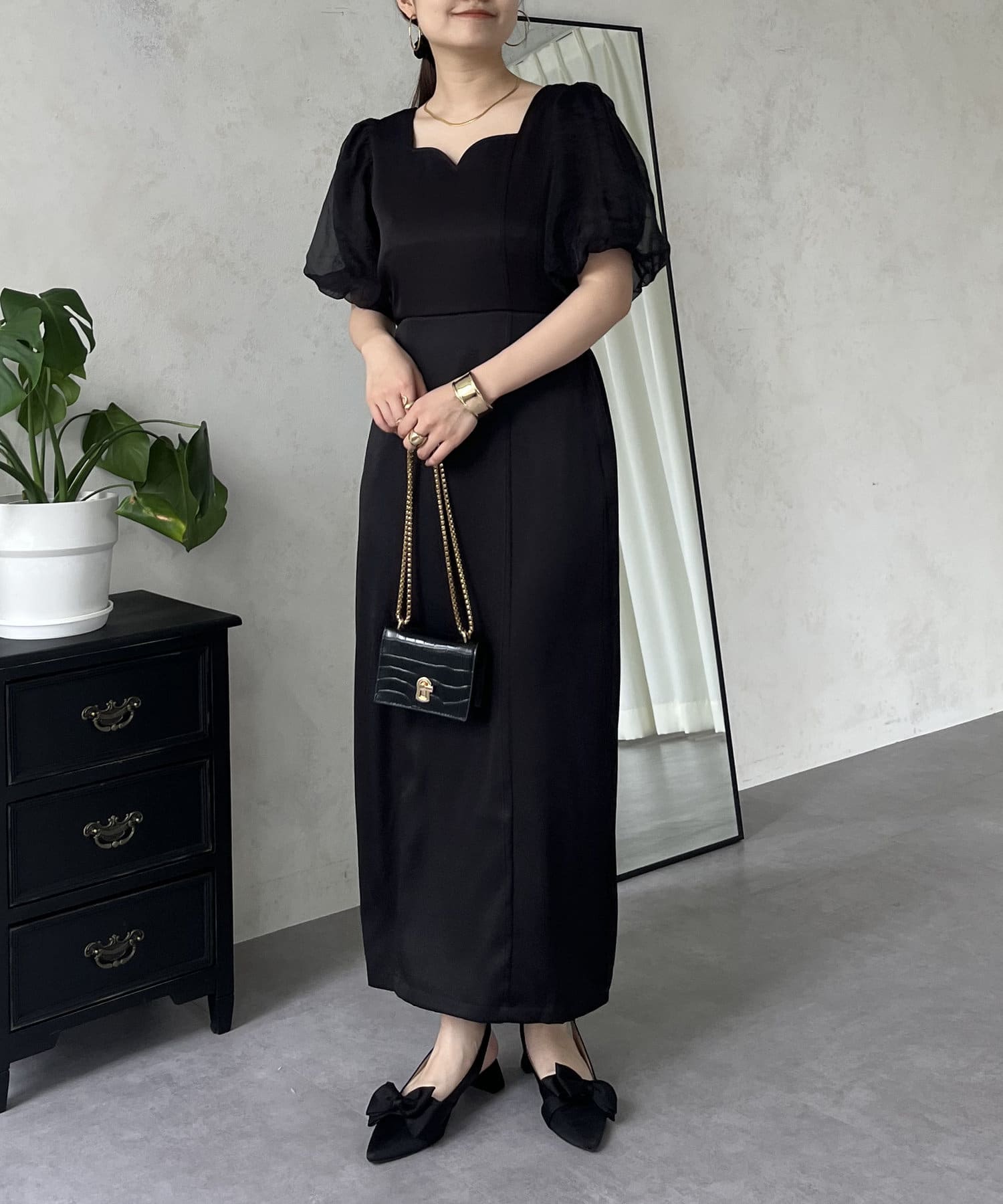 【オケージョン】ハートネックパフスリーブナローワンピース