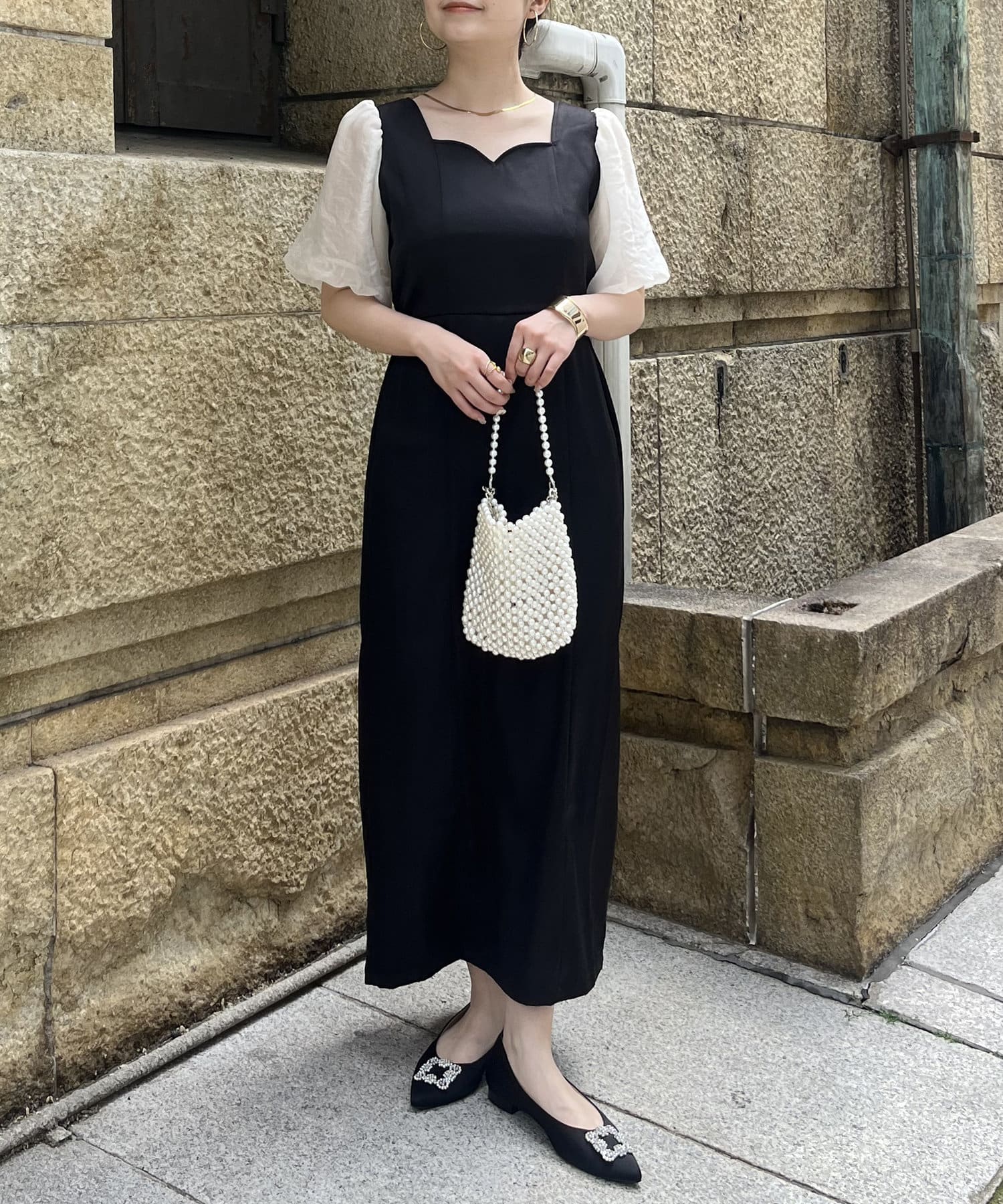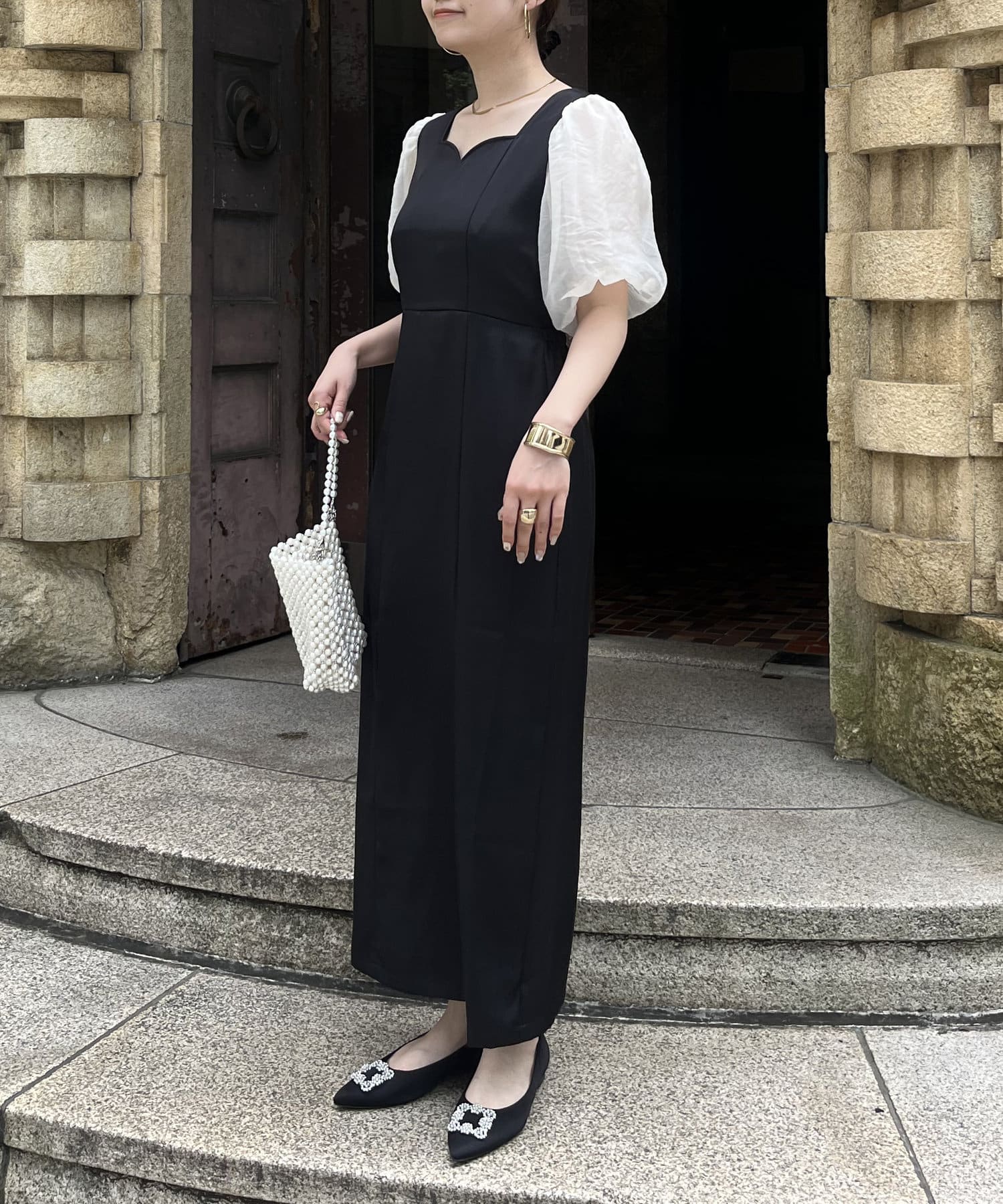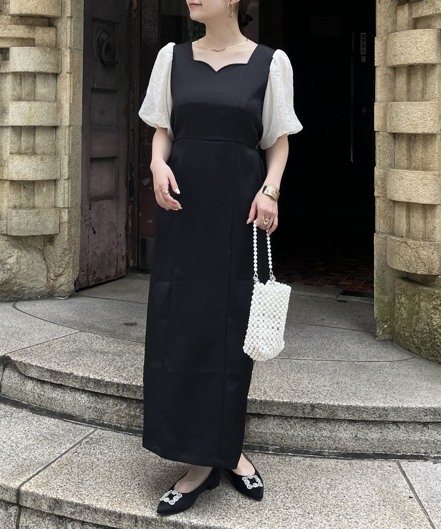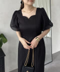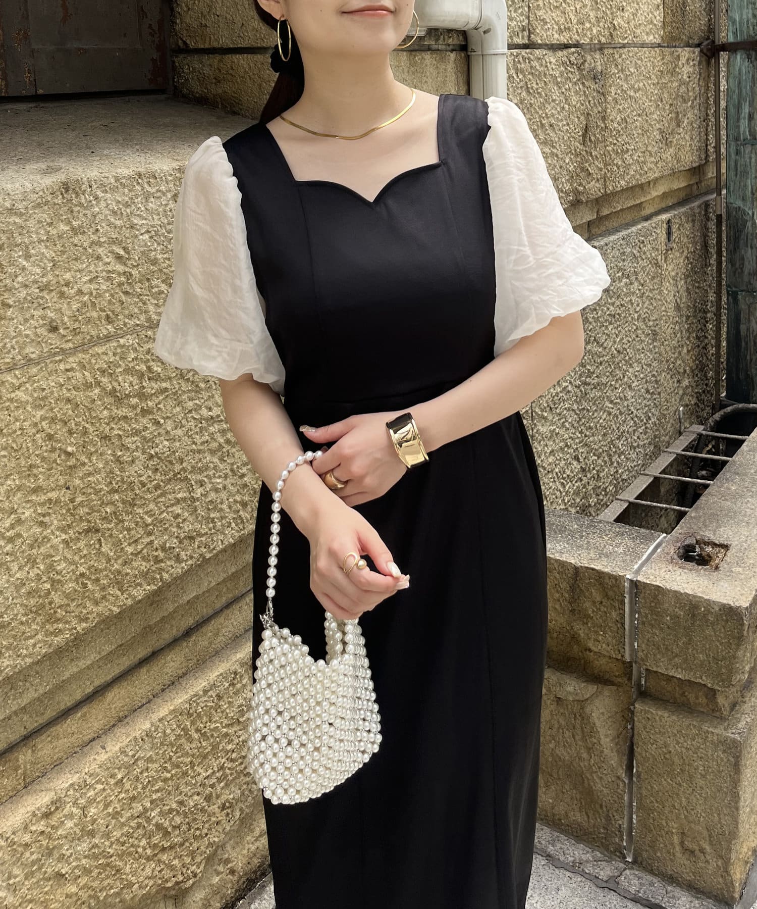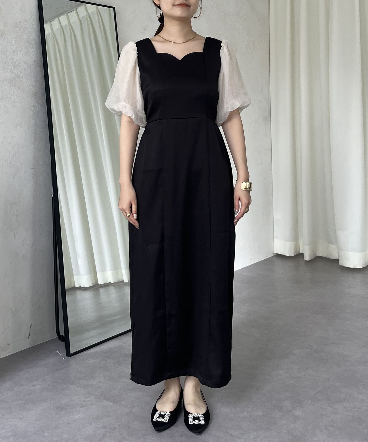 【オケージョン】ハートネックパフスリーブナローワンピース