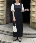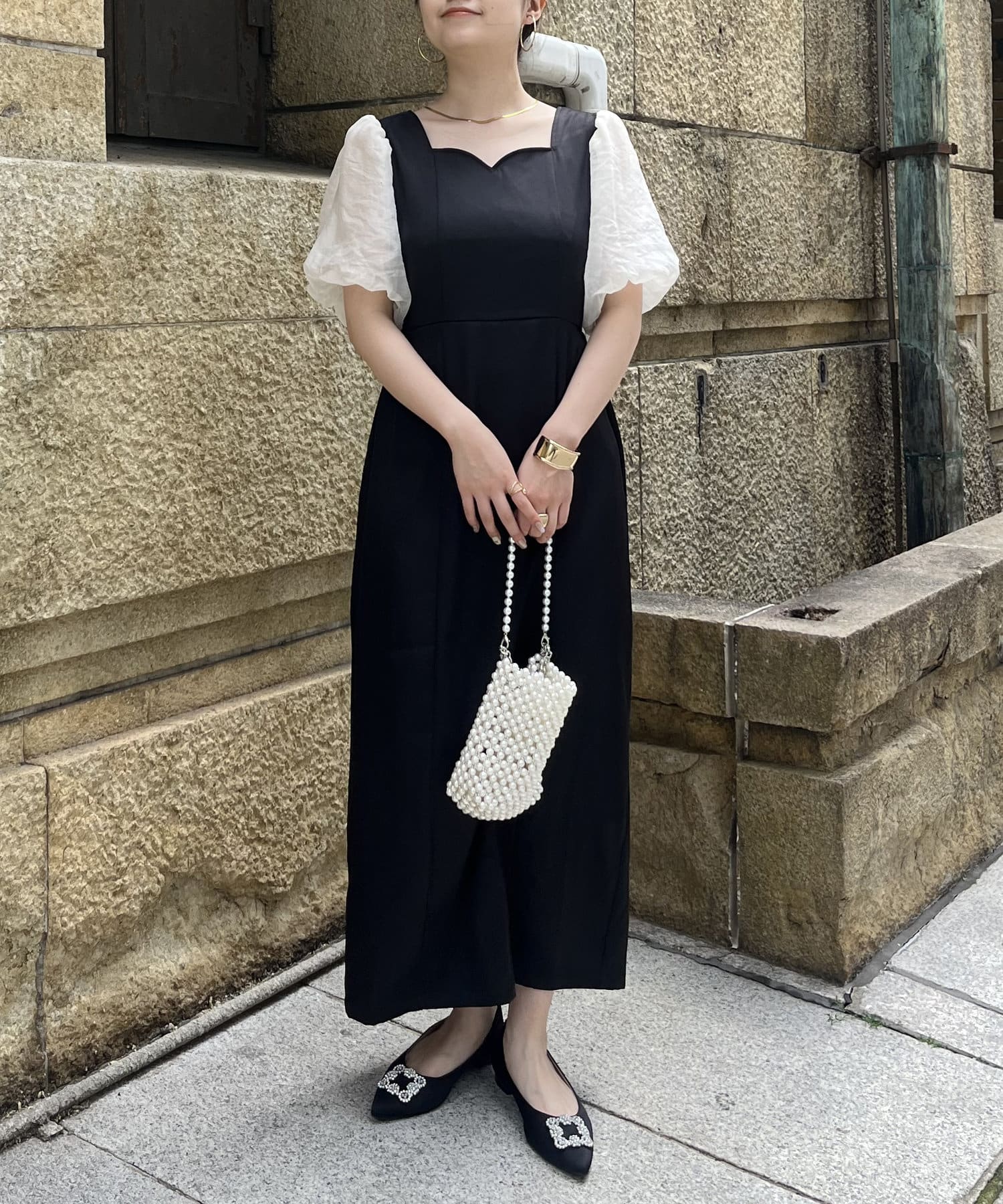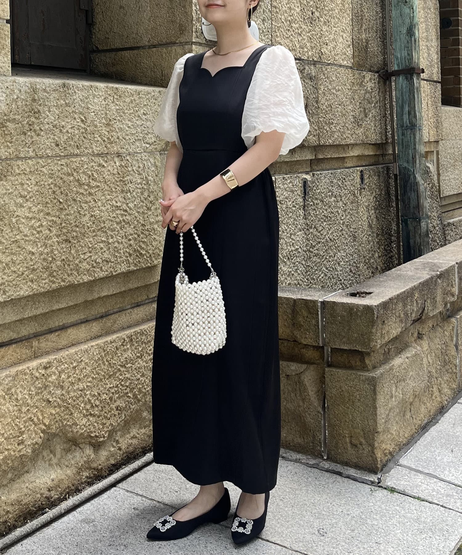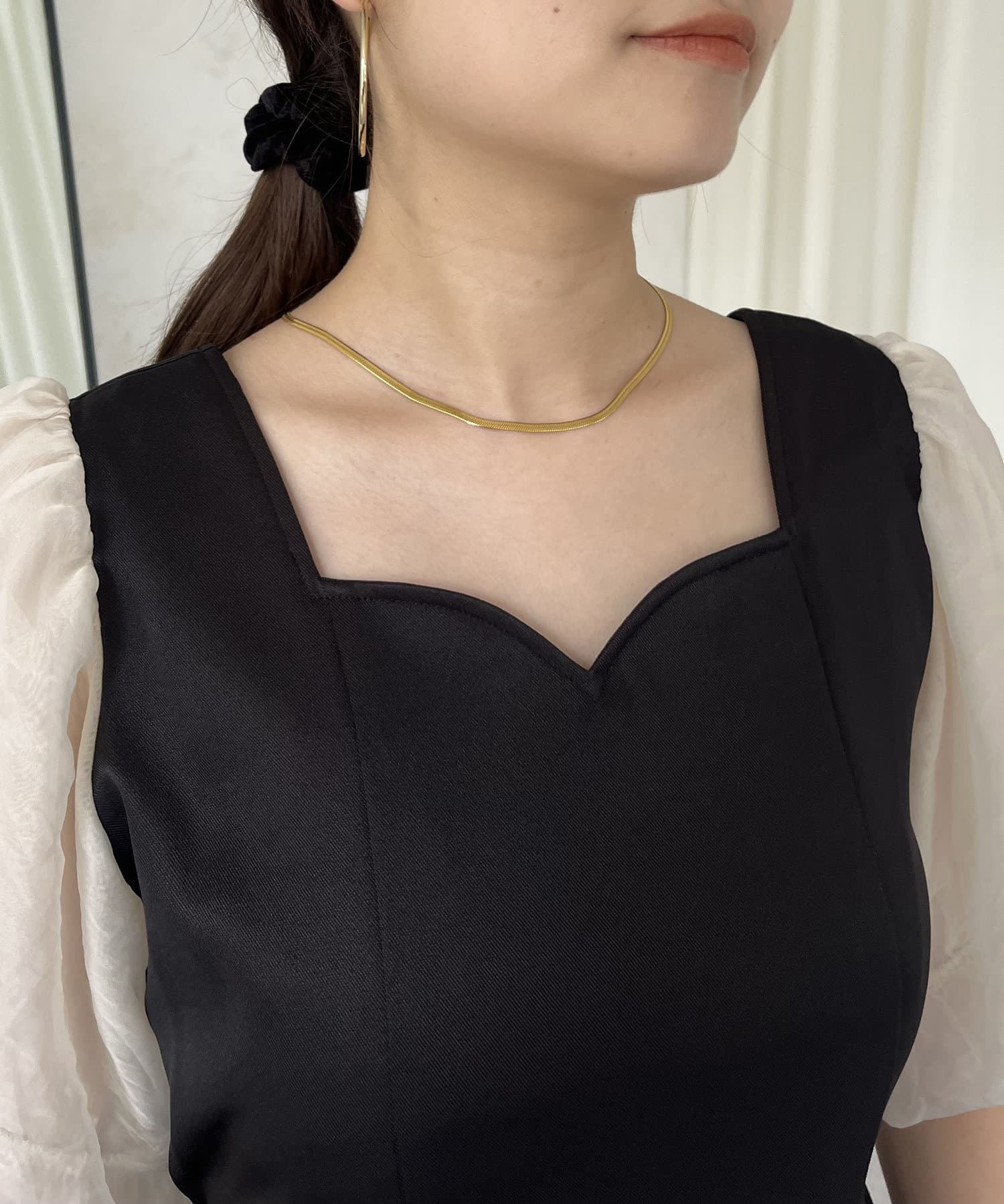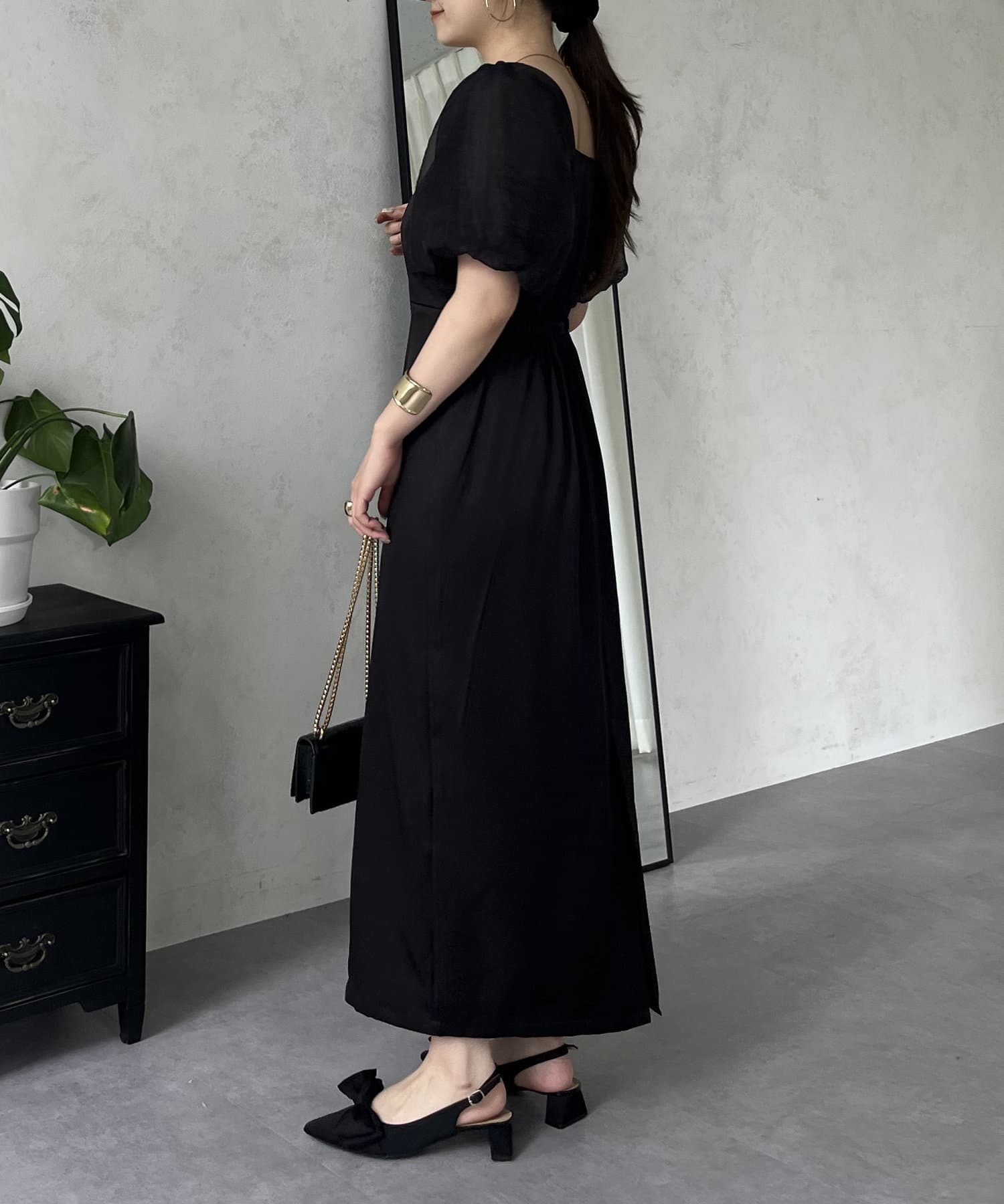 【オケージョン】ハートネックパフスリーブナローワンピース