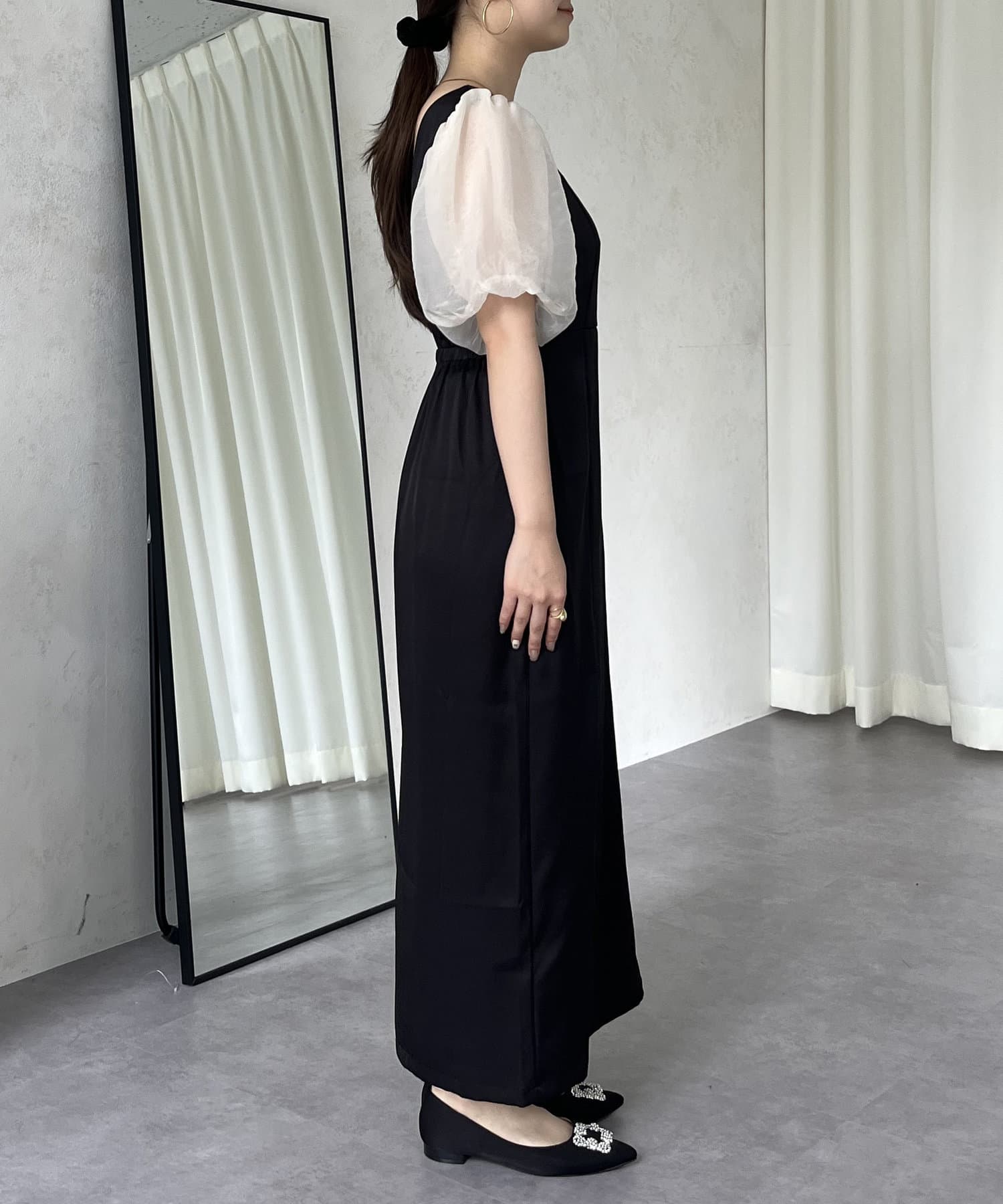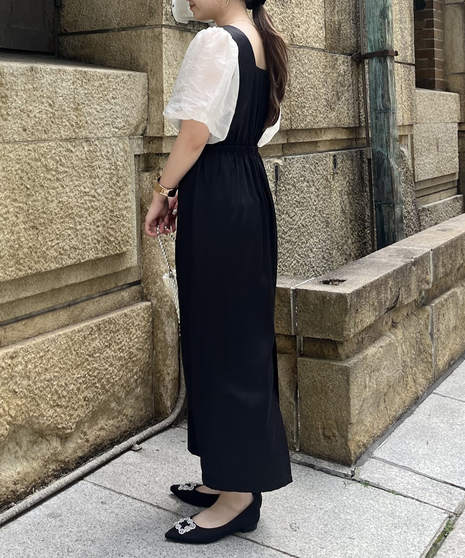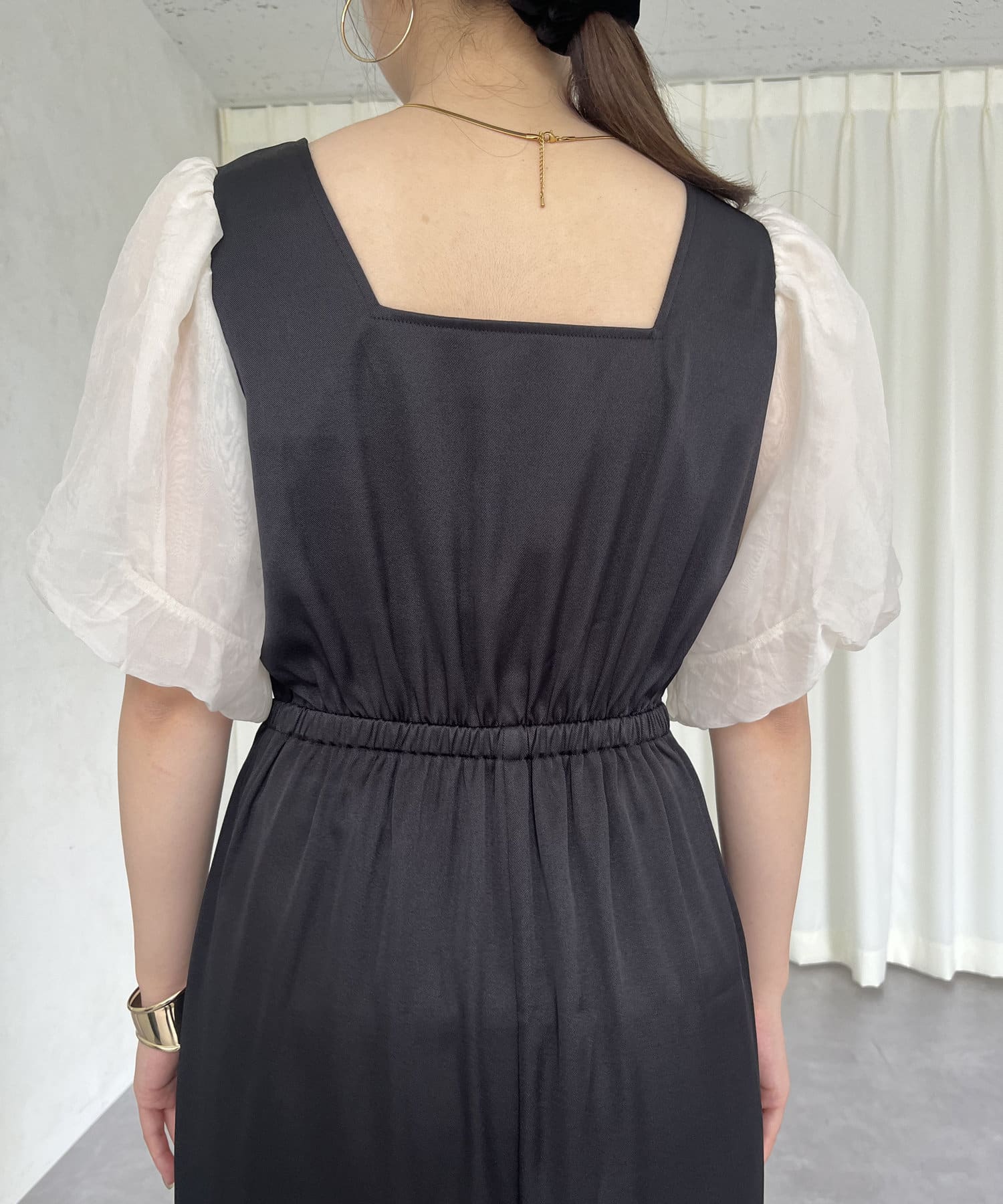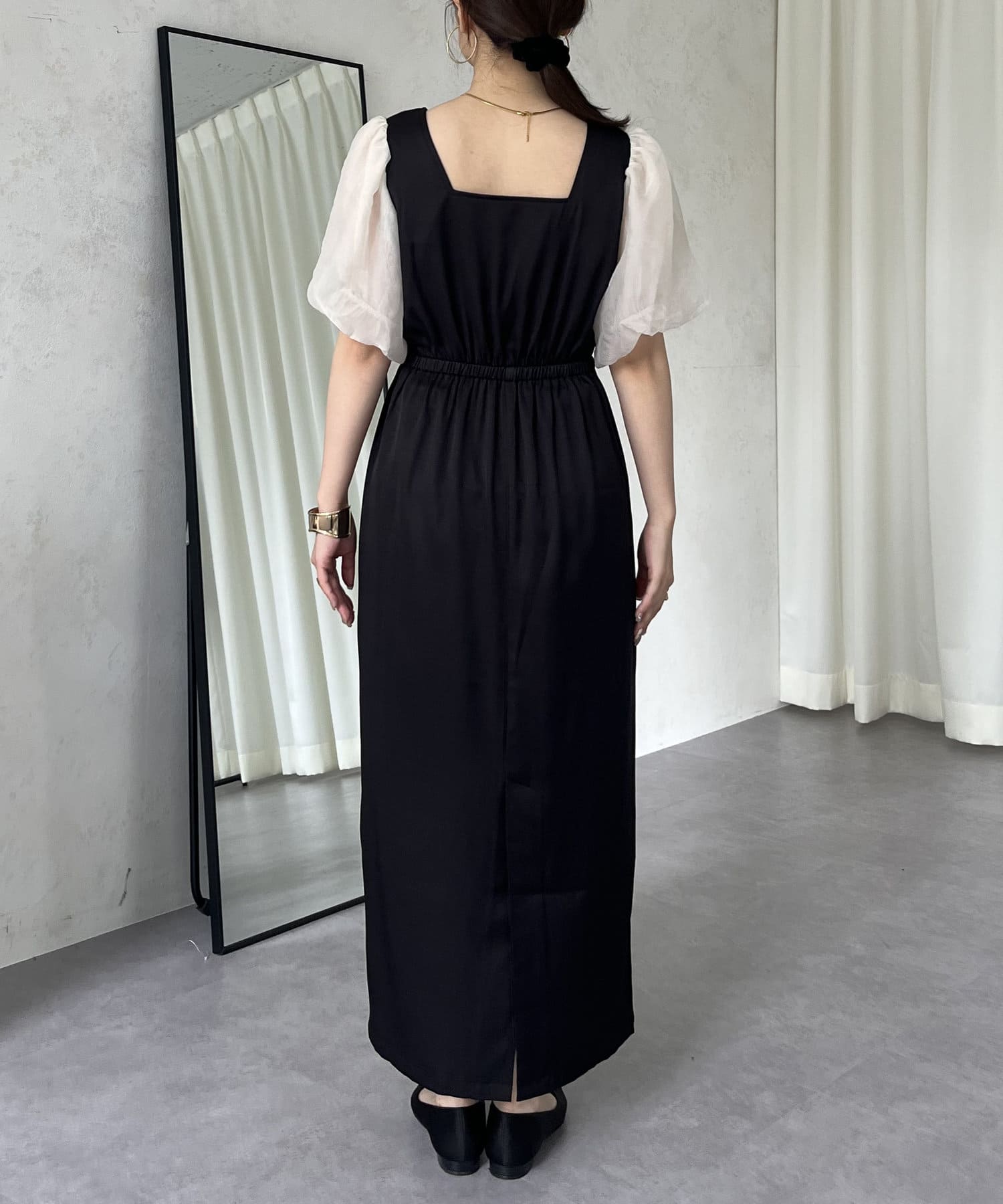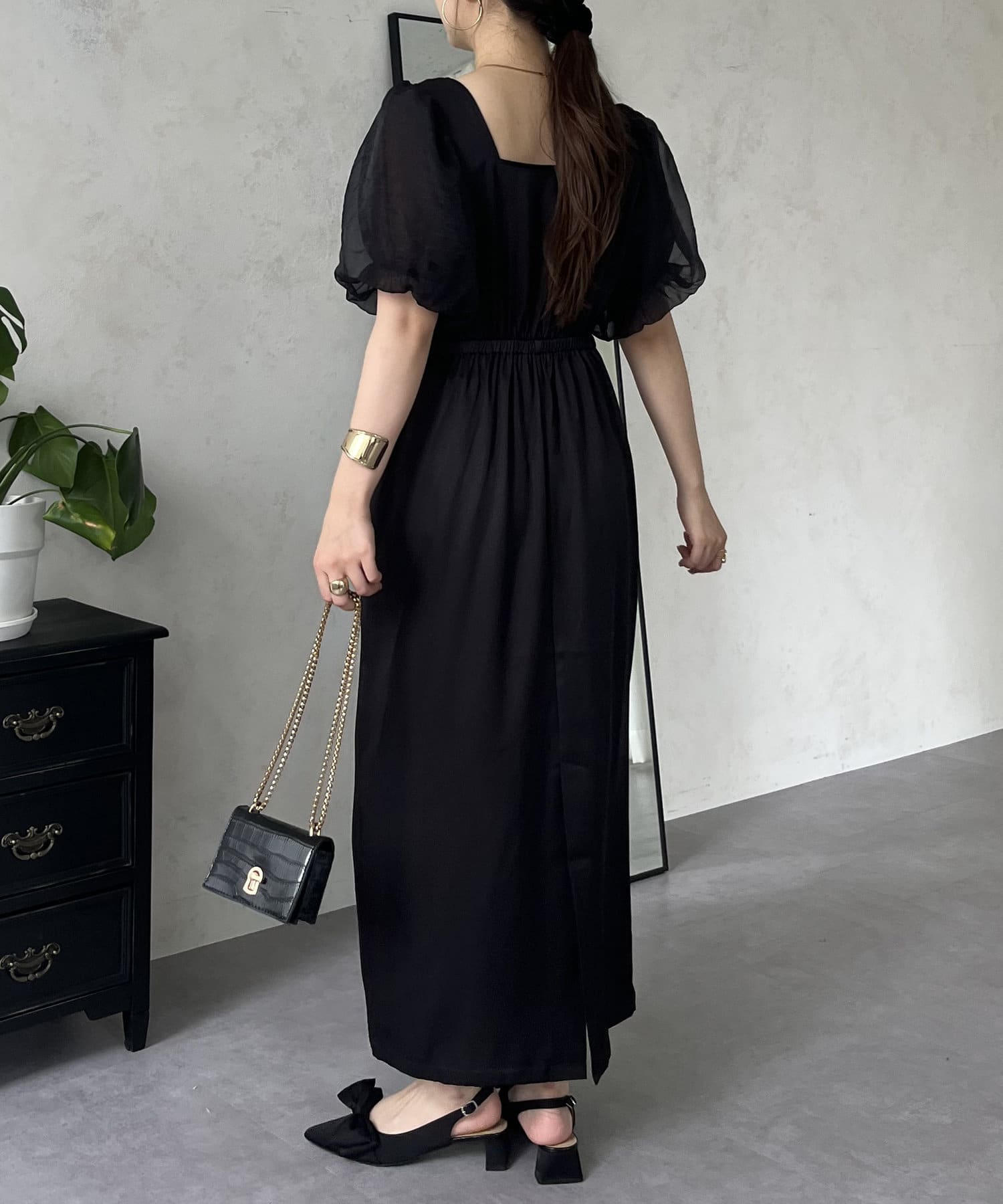 【オケージョン】ハートネックパフスリーブナローワンピース