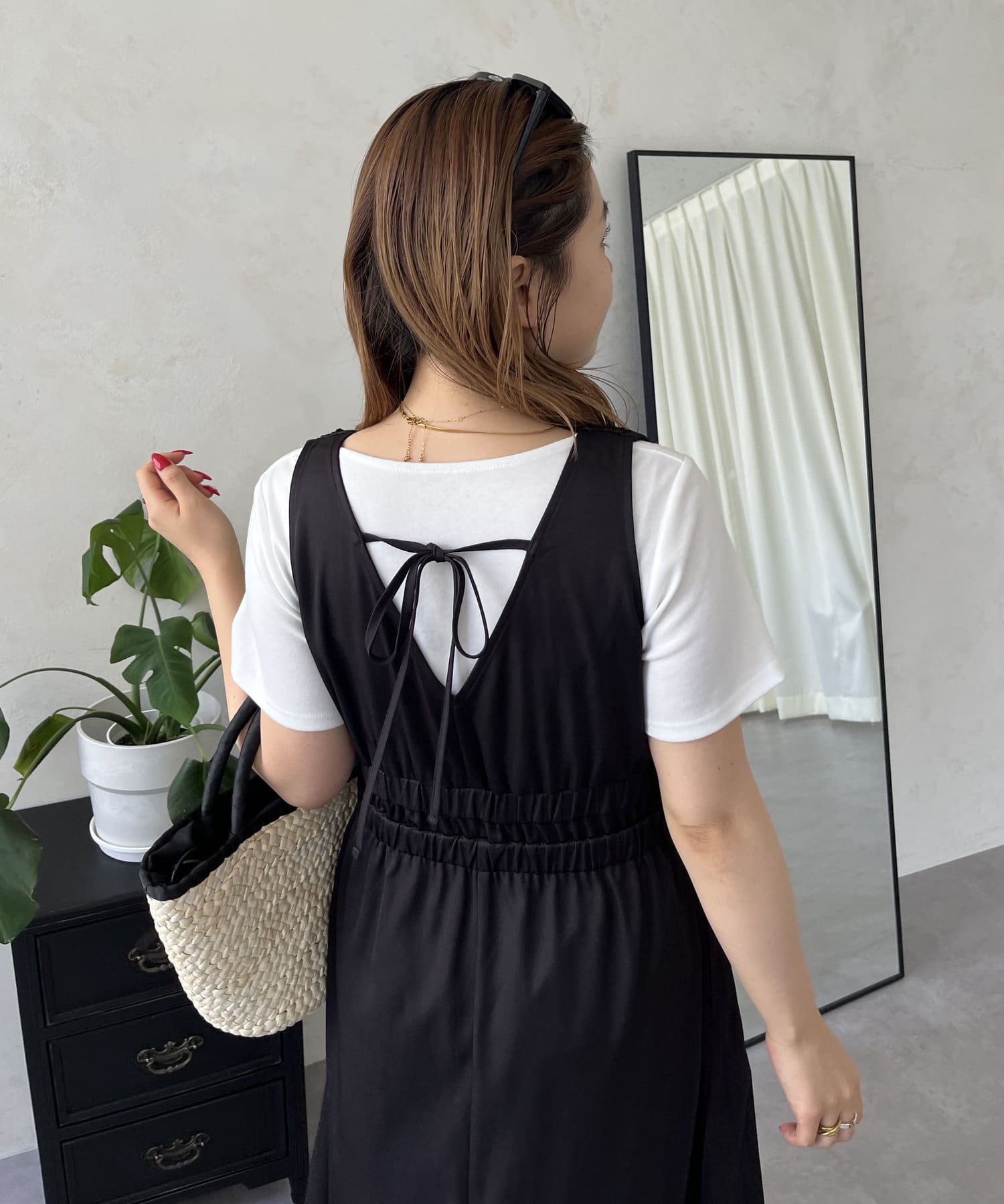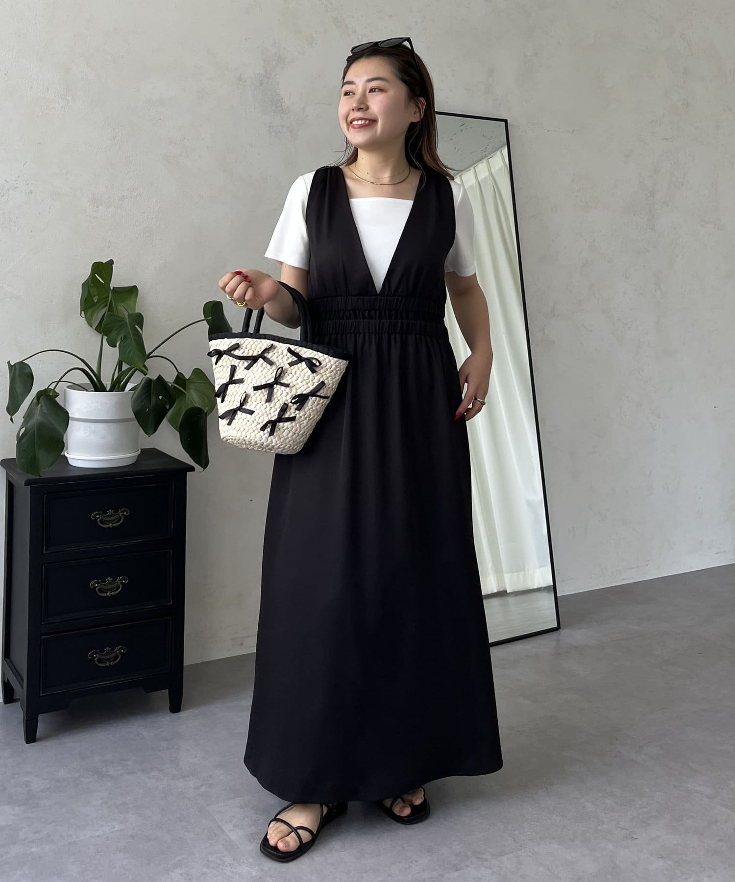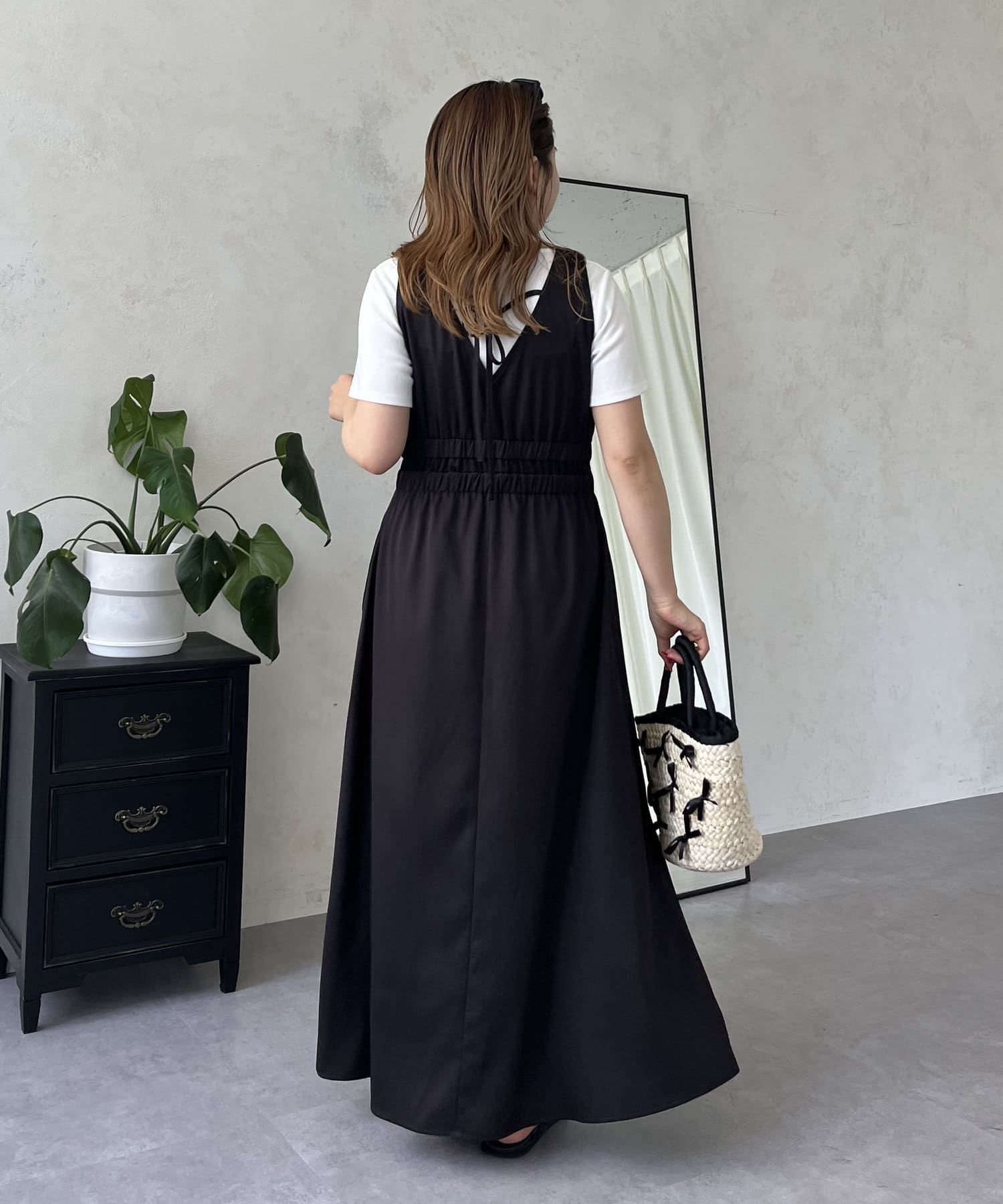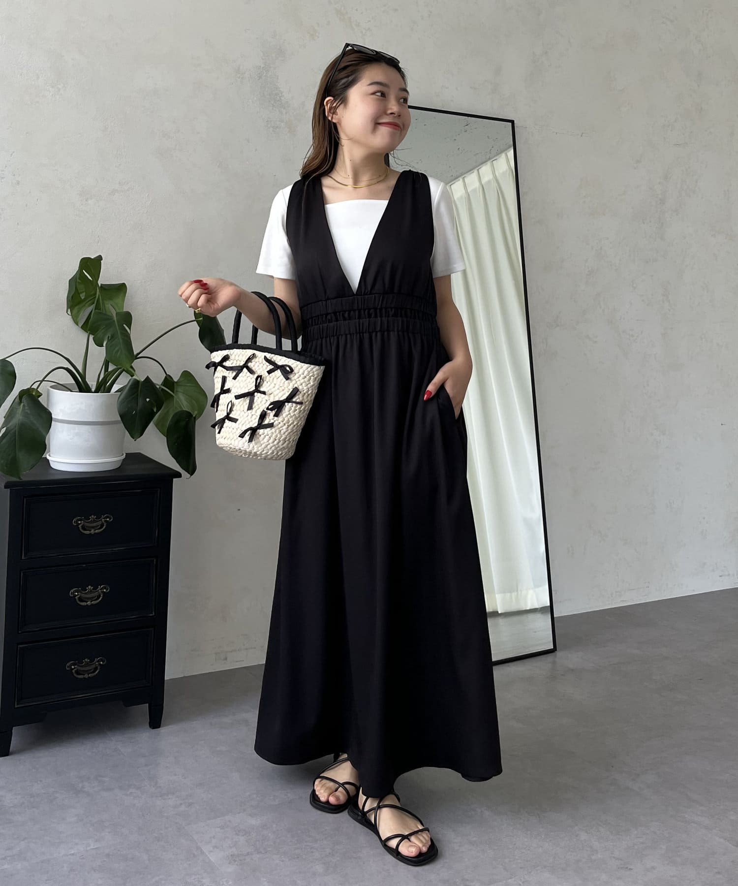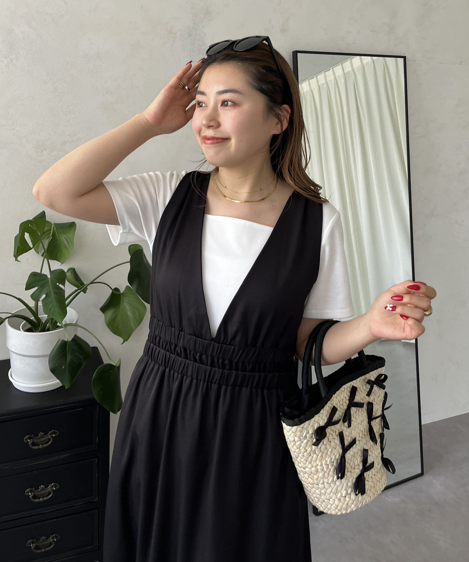 ワンピース/Vネック/リボン/シンプル/大人可愛い
