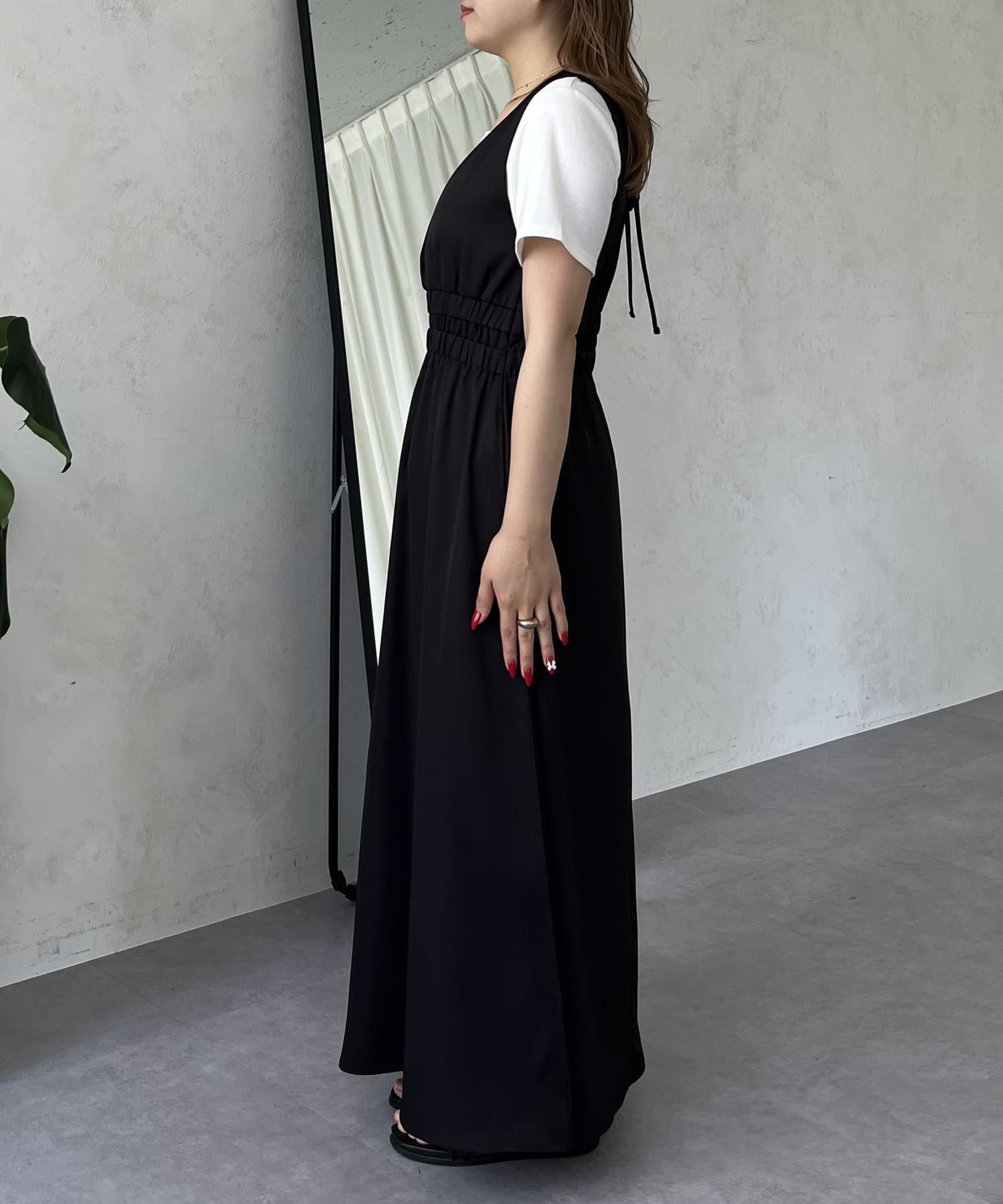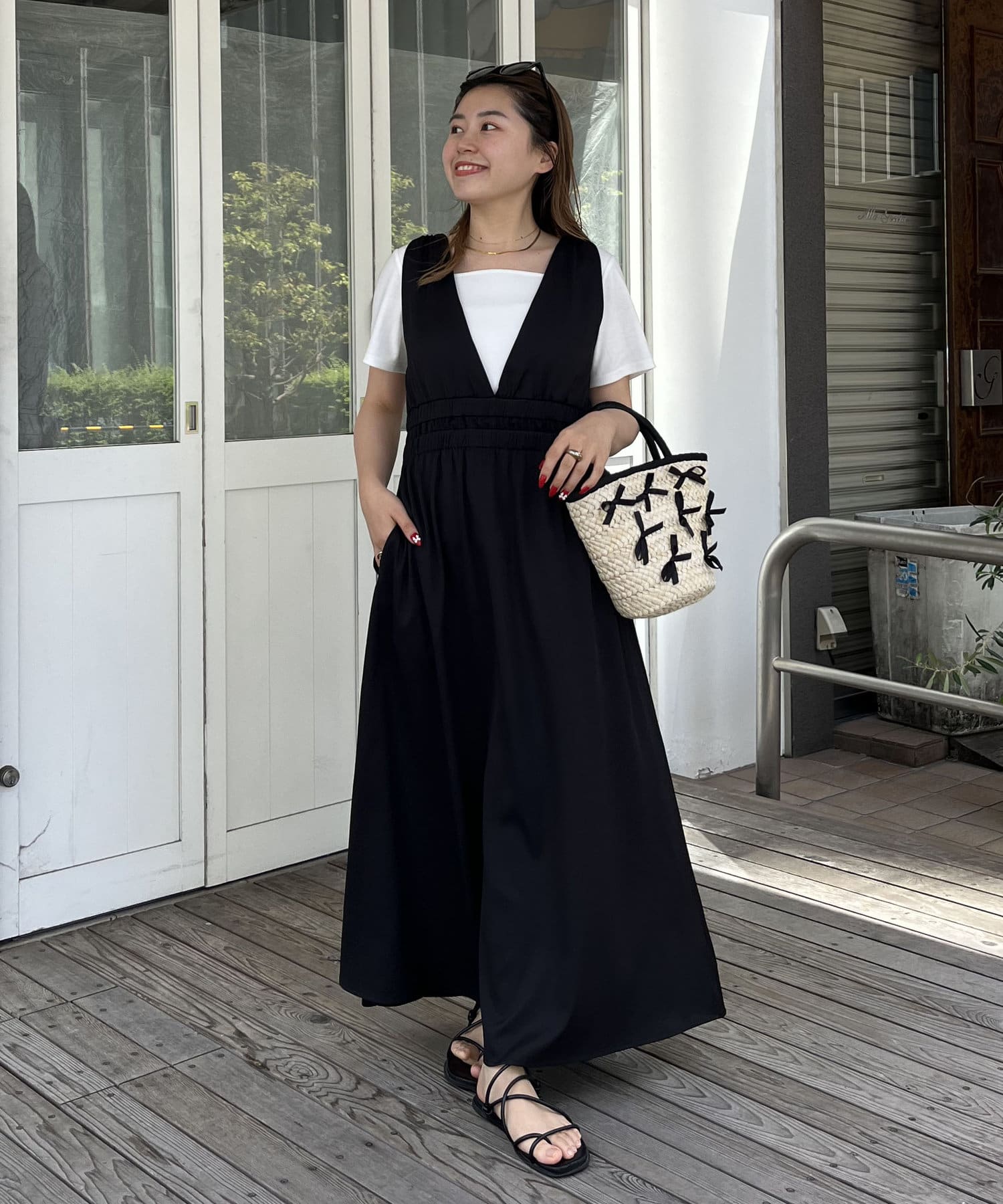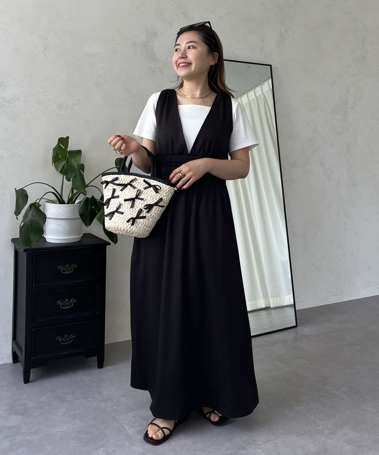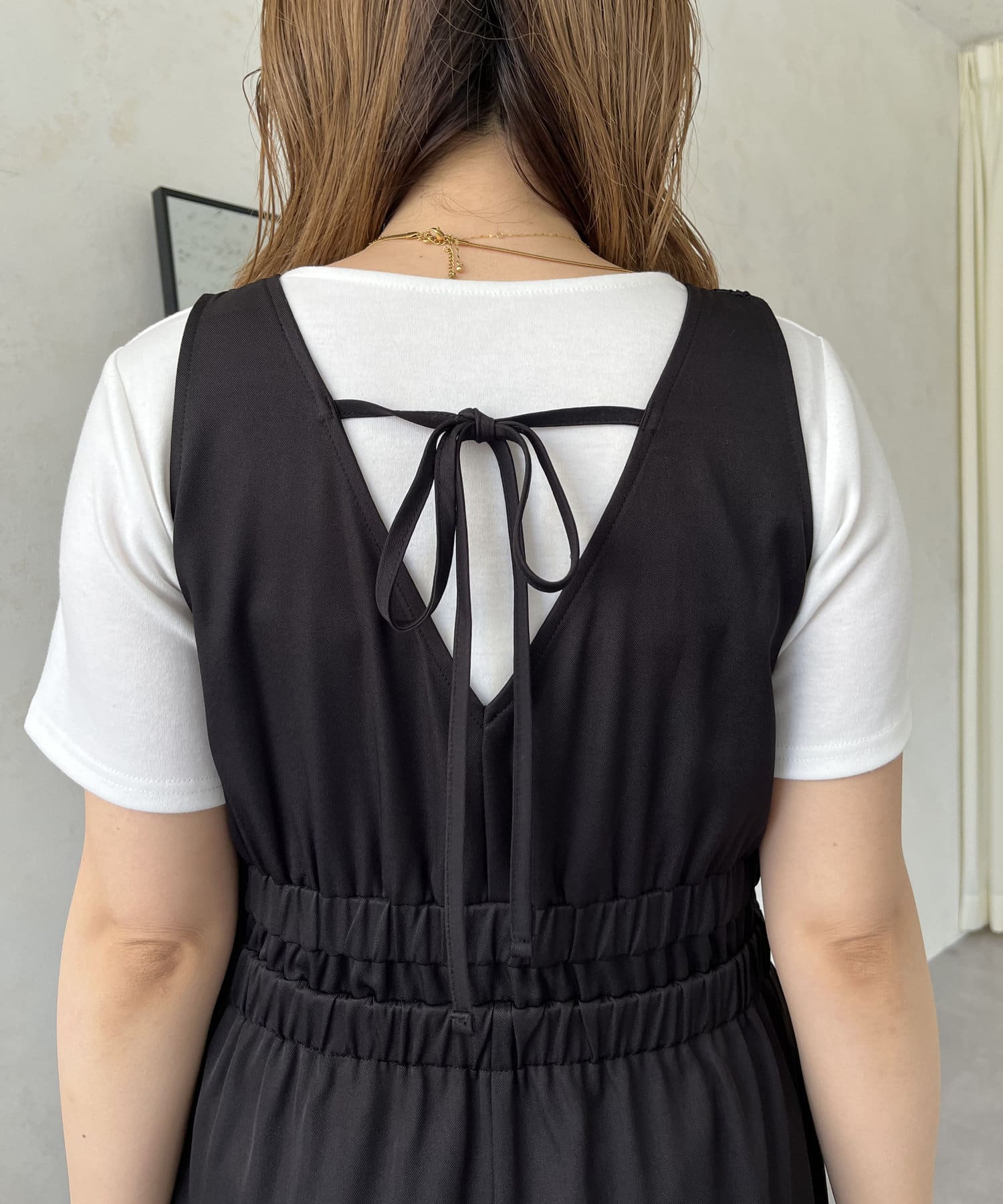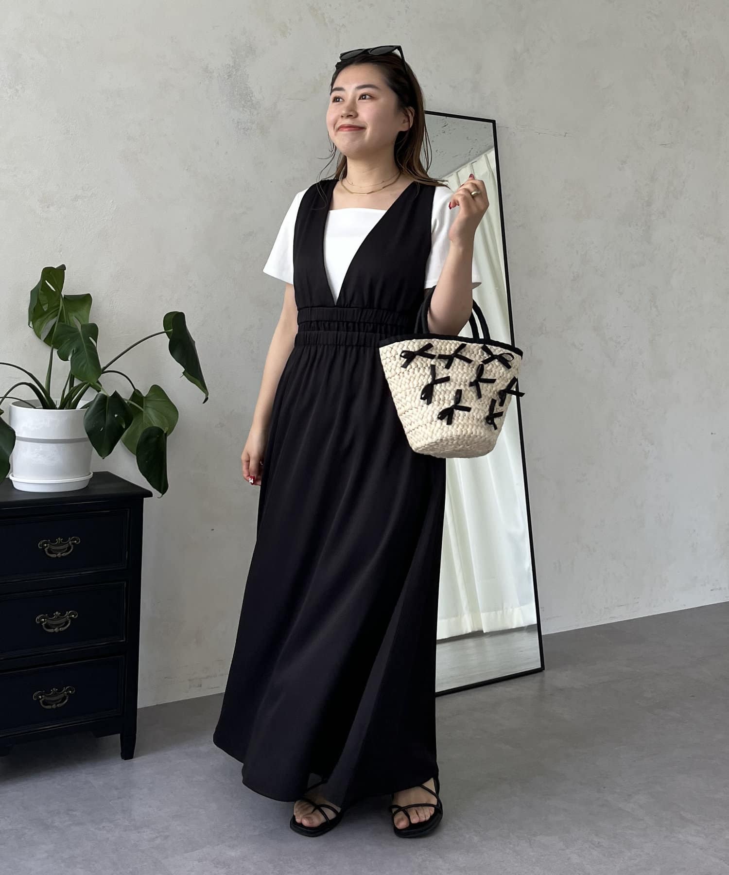 ワンピース/Vネック/リボン/シンプル/大人可愛い
