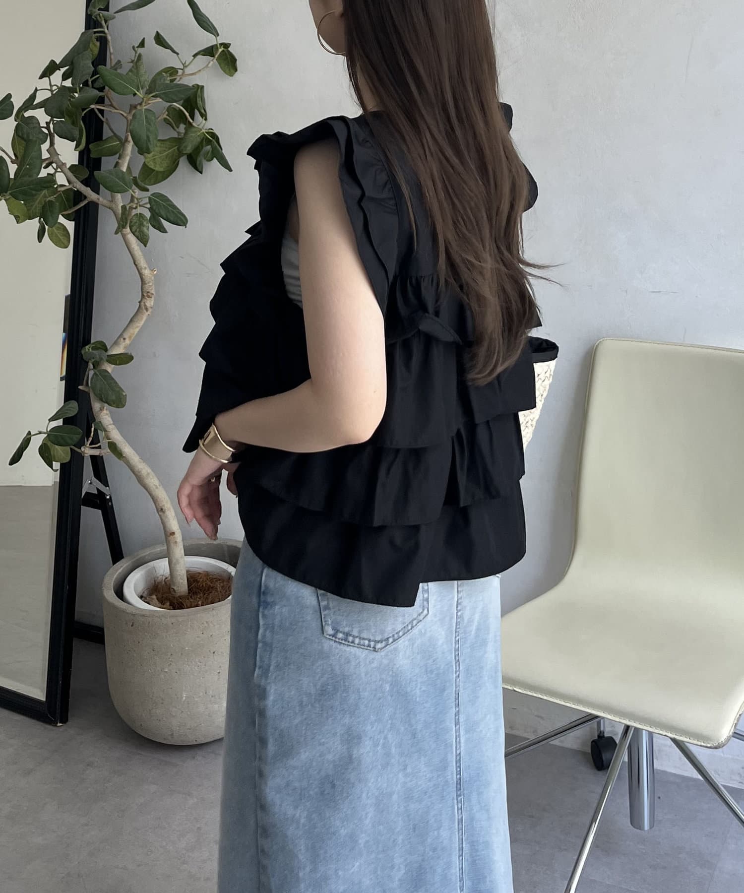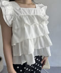 フリル/ティアード/ノースリーブ/ブラウス/大人可愛い