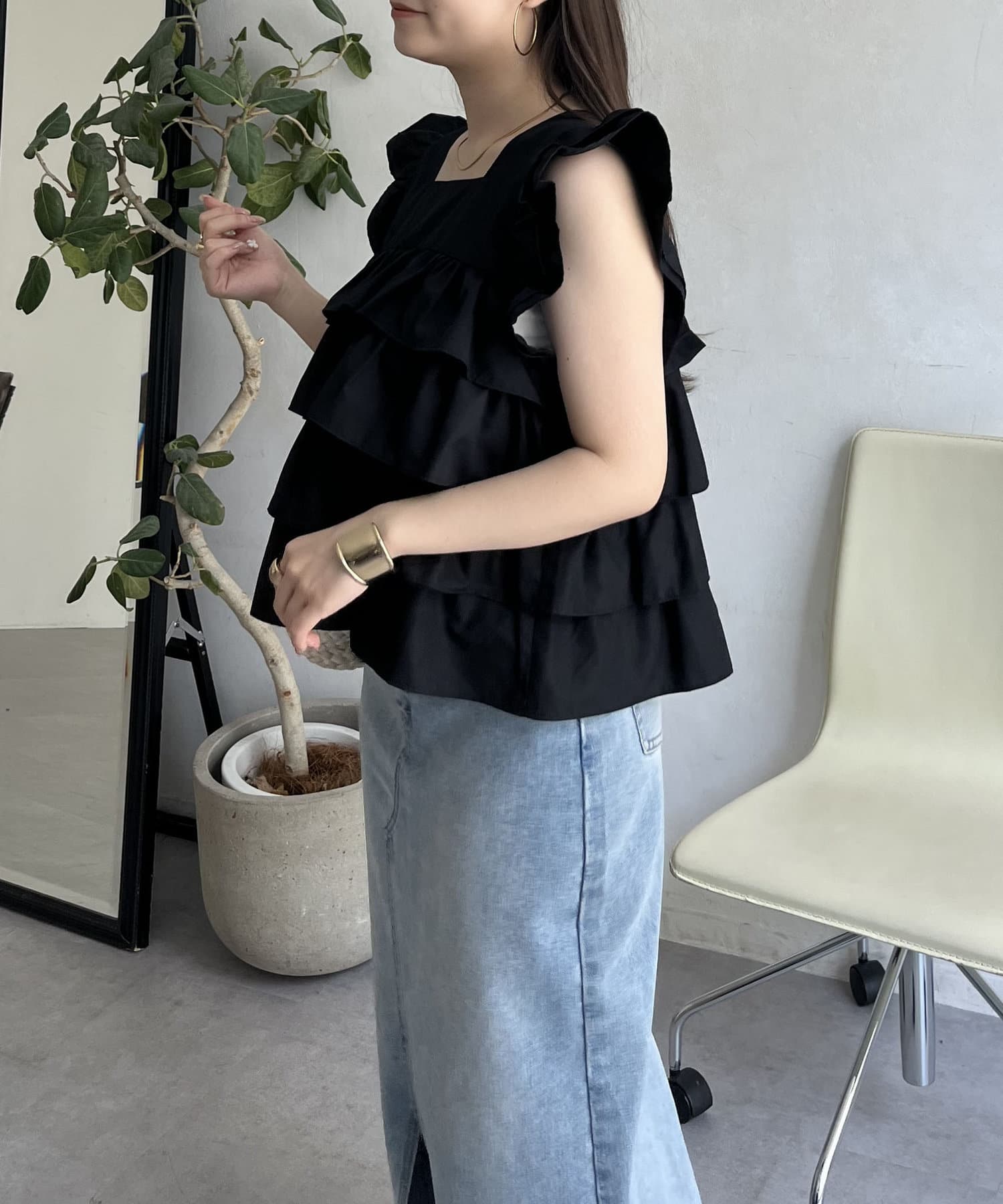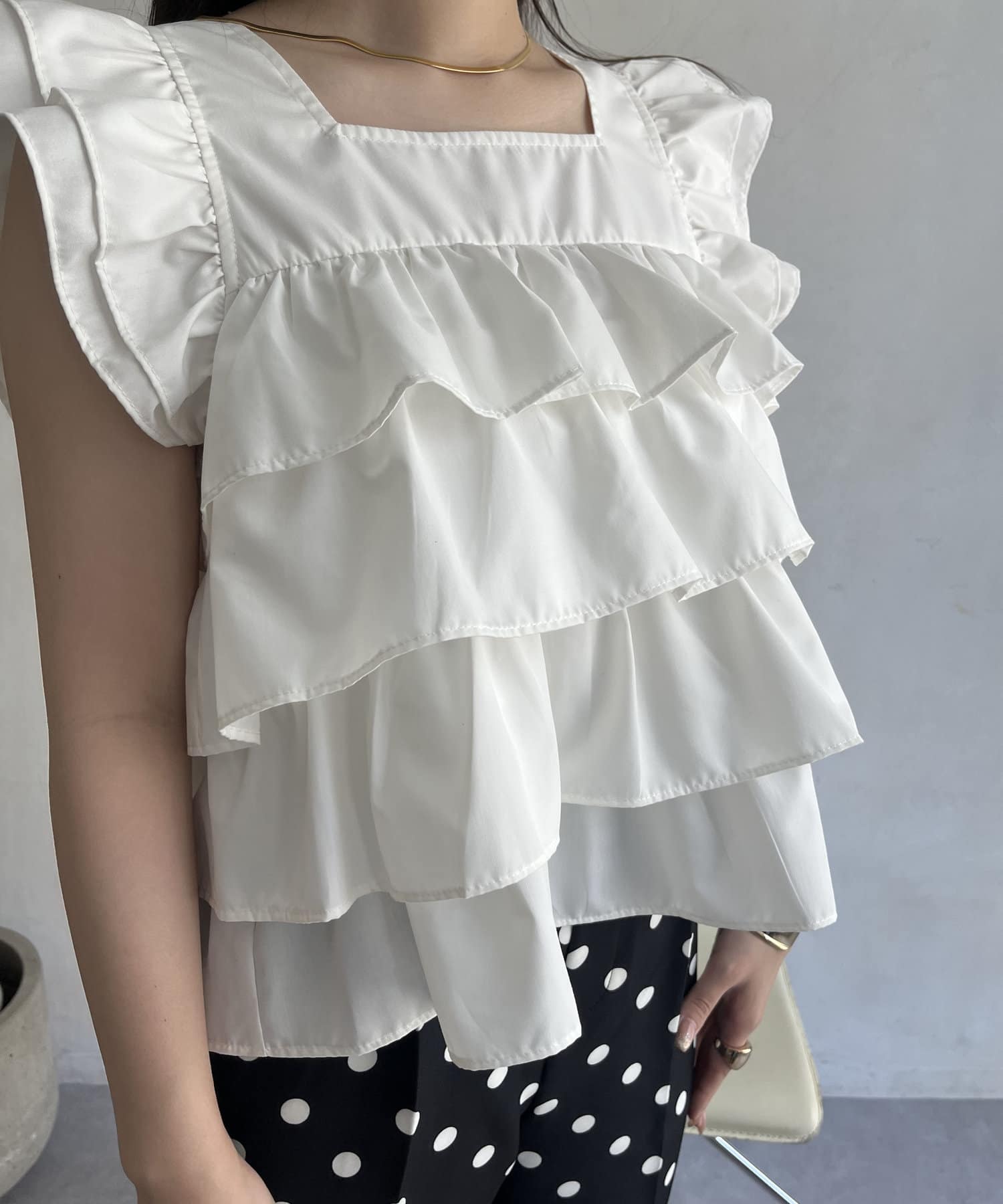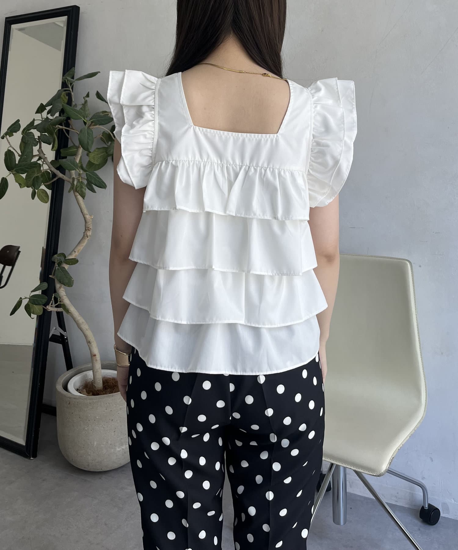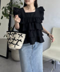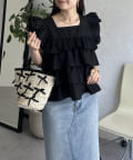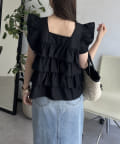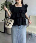 スクエアネックティアードフリルブラウス