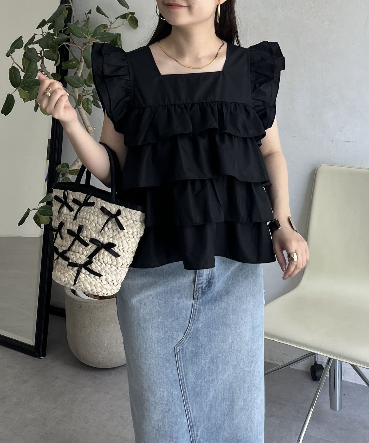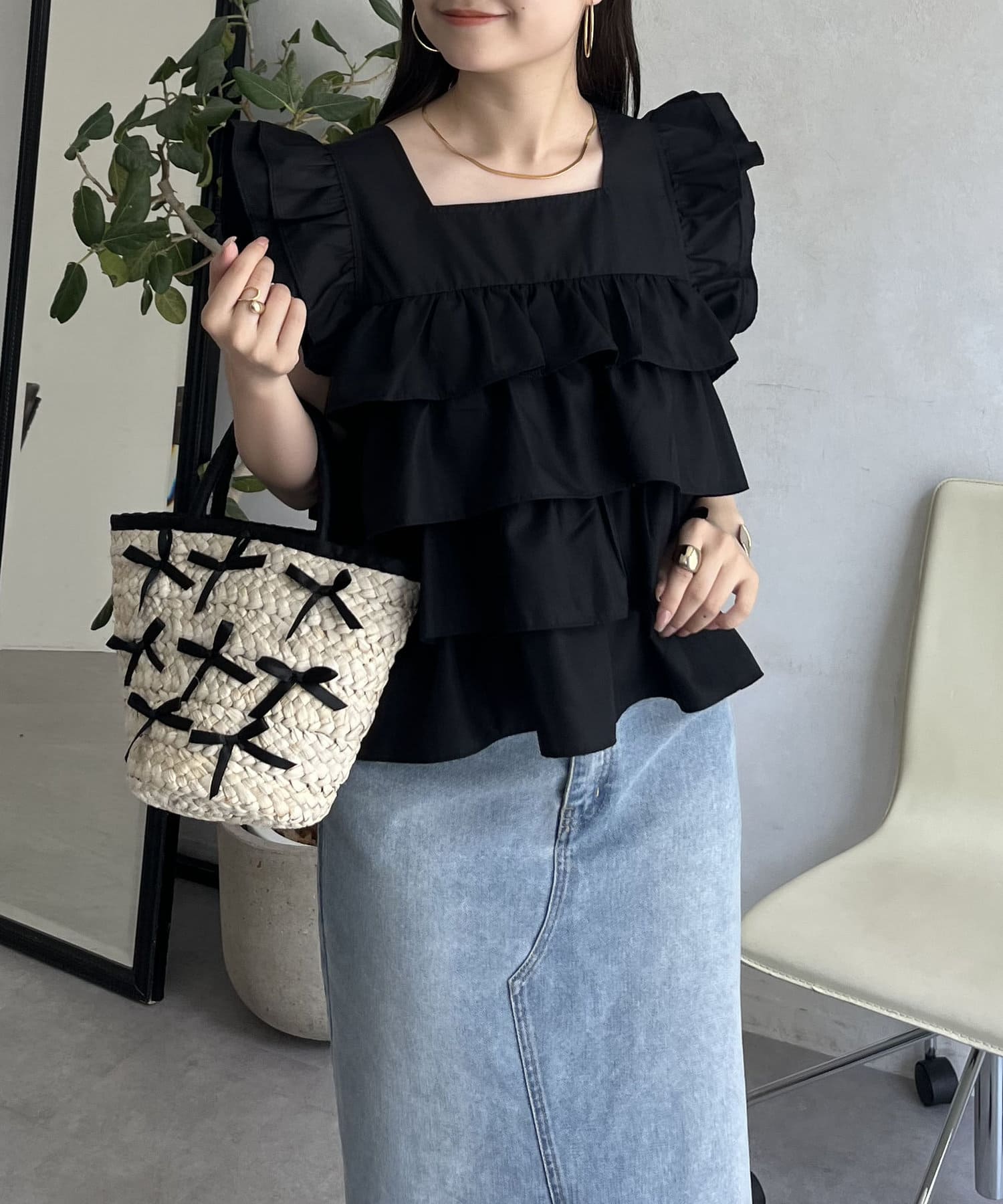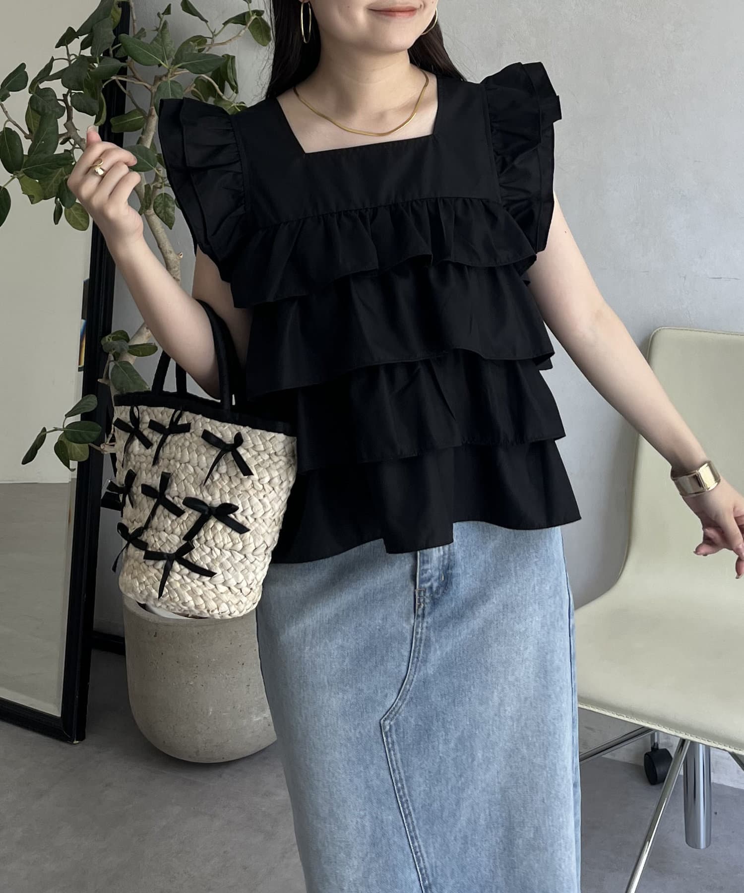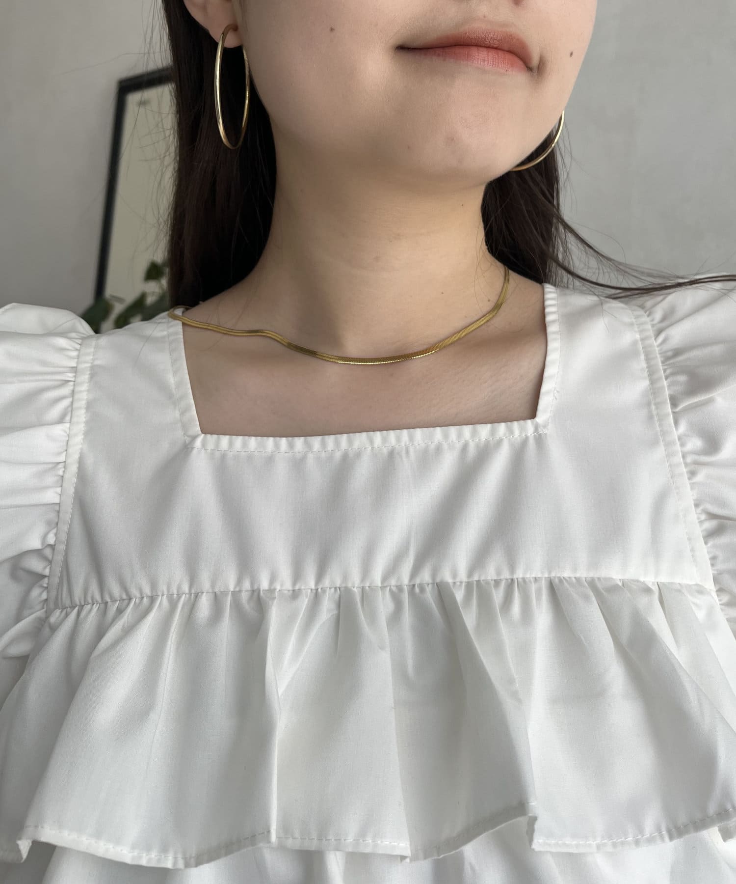 スクエアネックティアードフリルブラウス