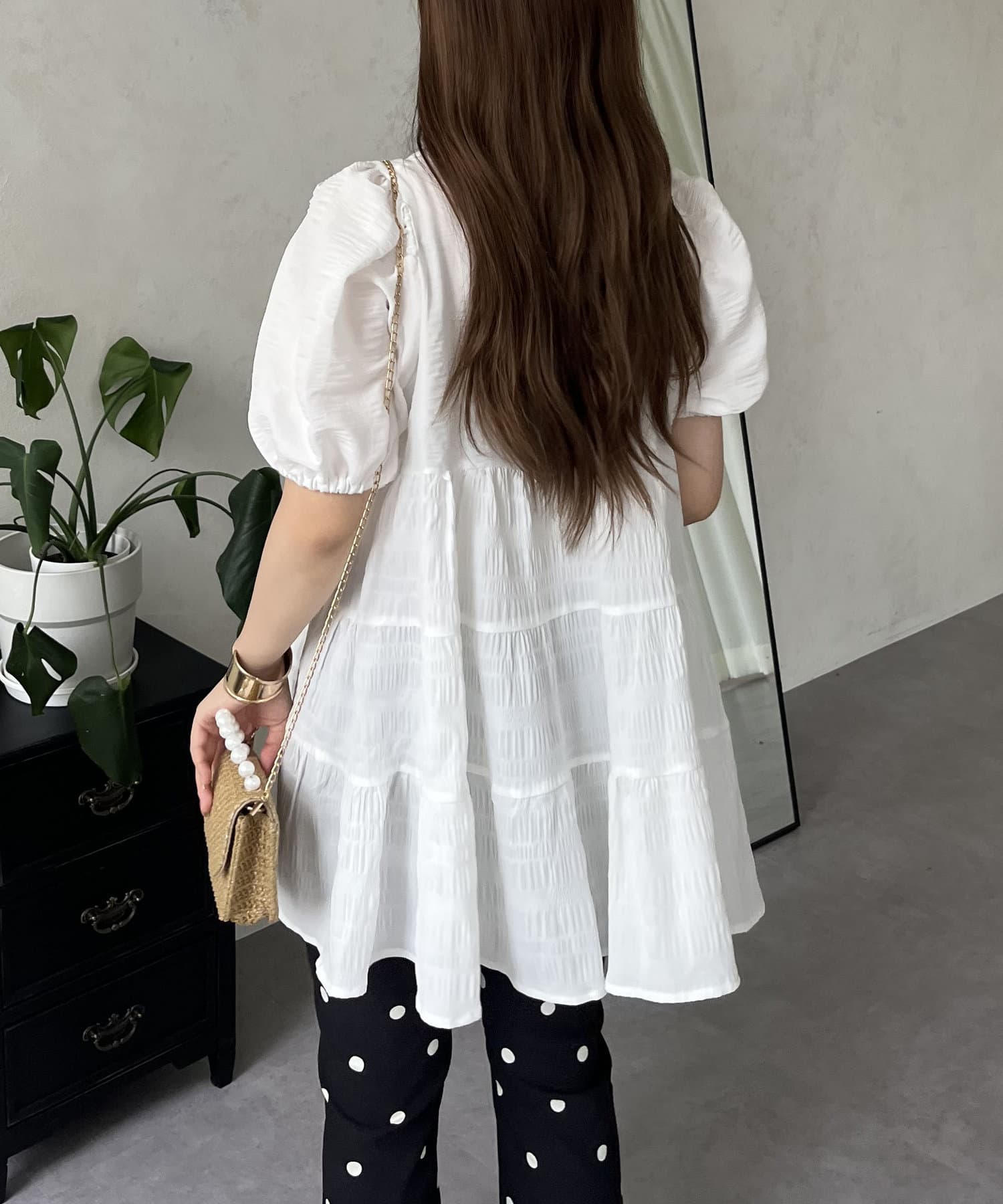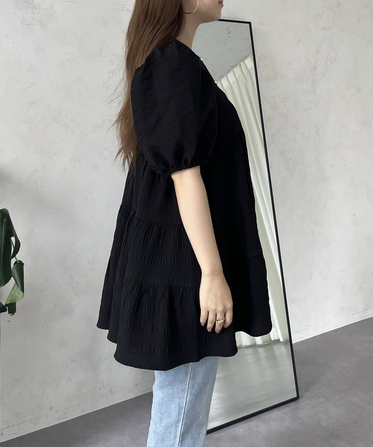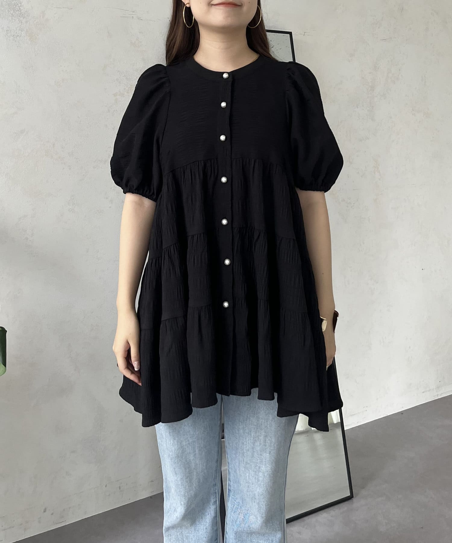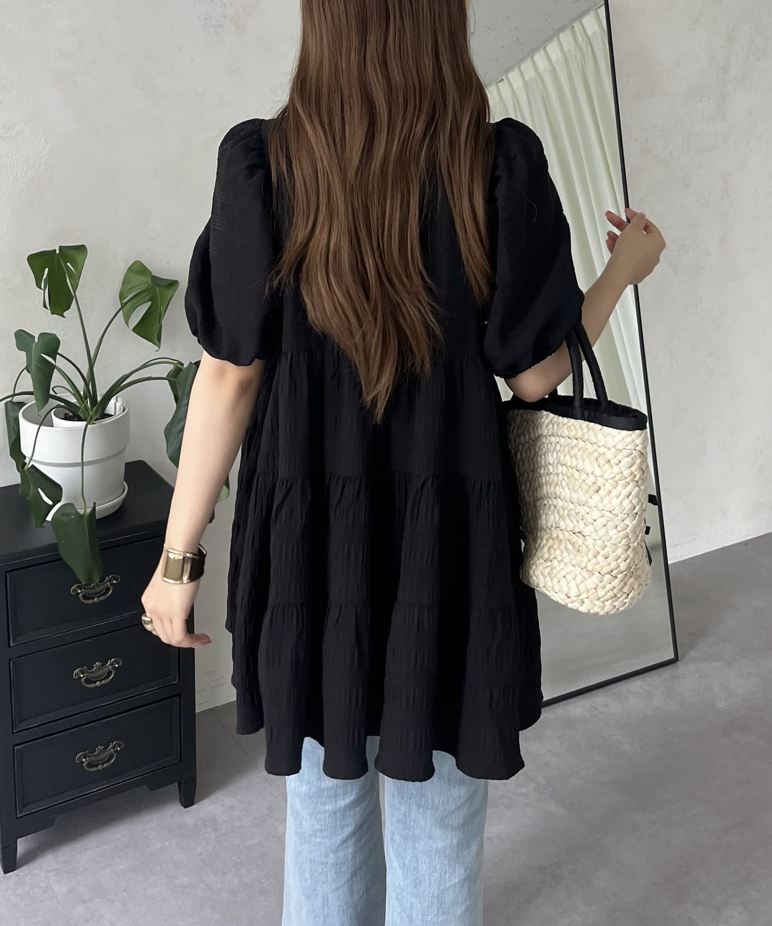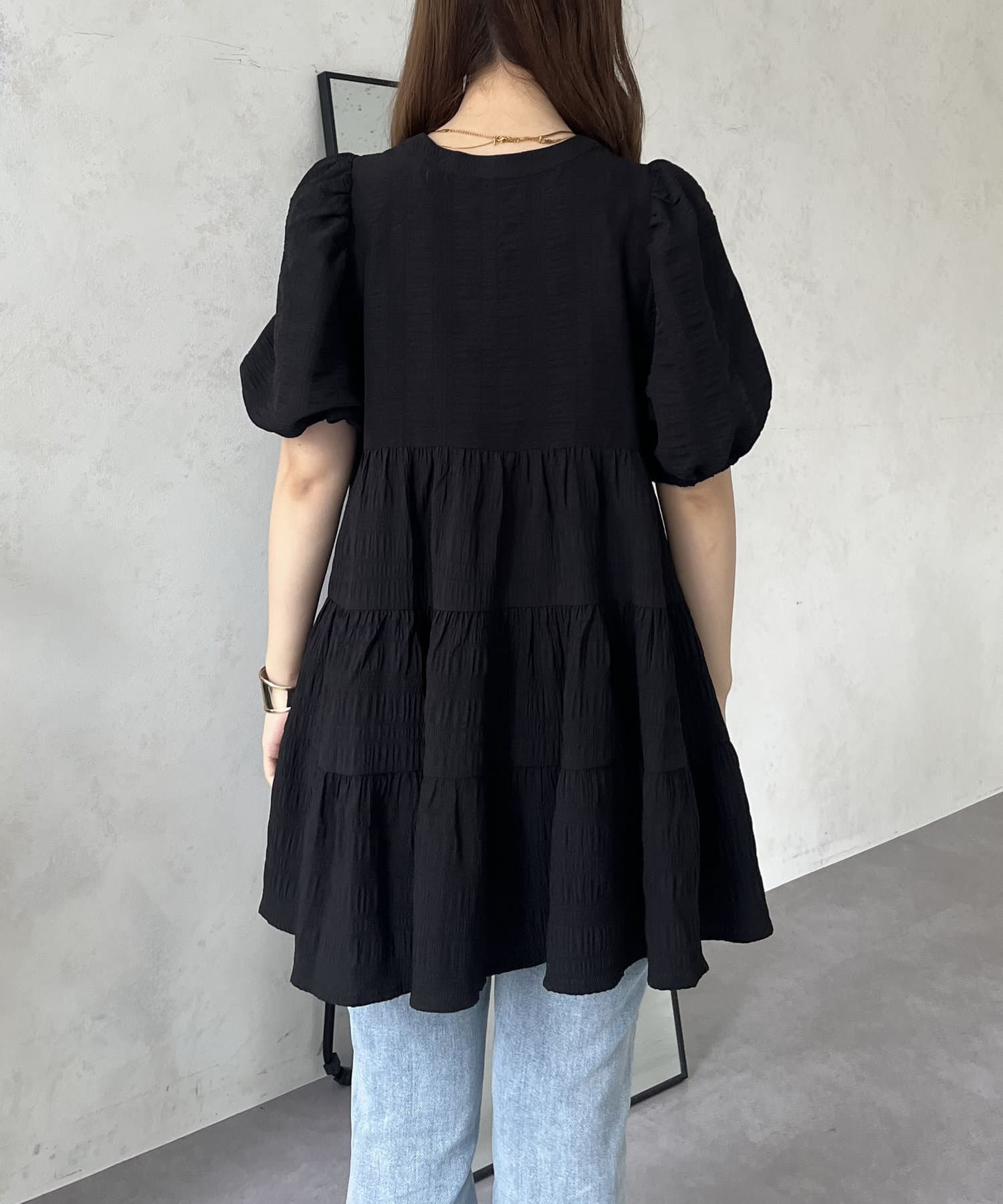 ティアードフリル/シャーリング/チュニック/体型カバー/大人カジュアル