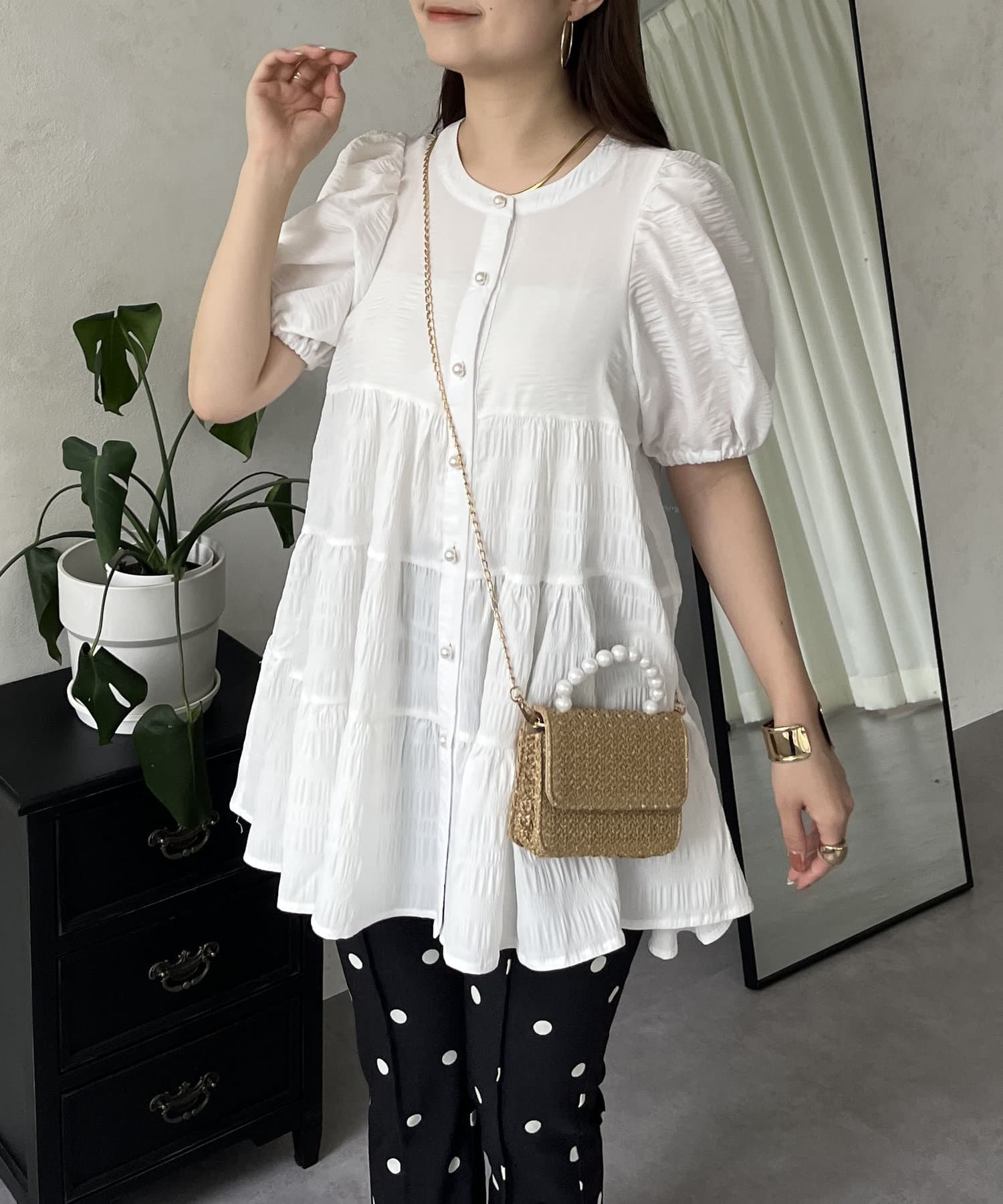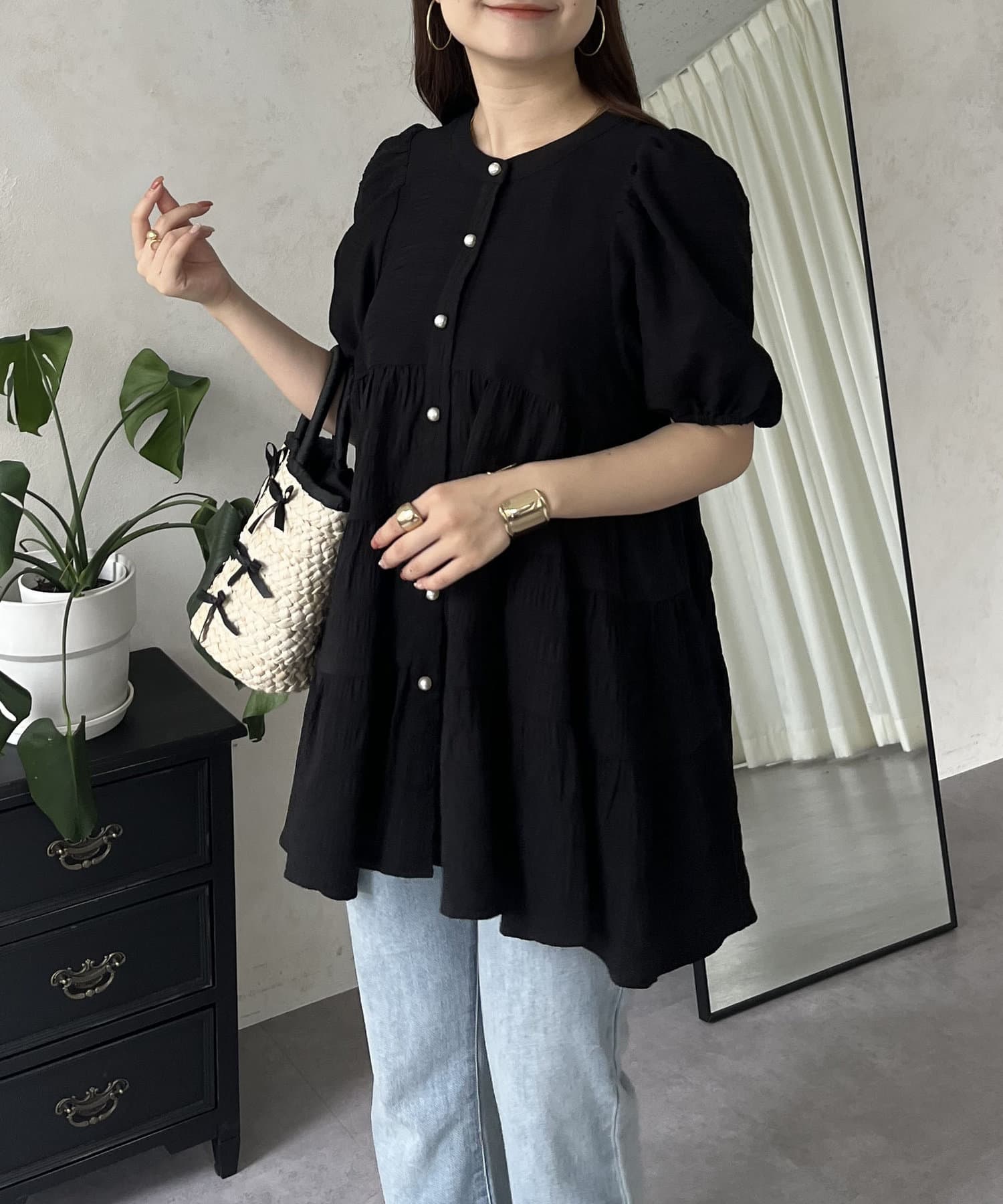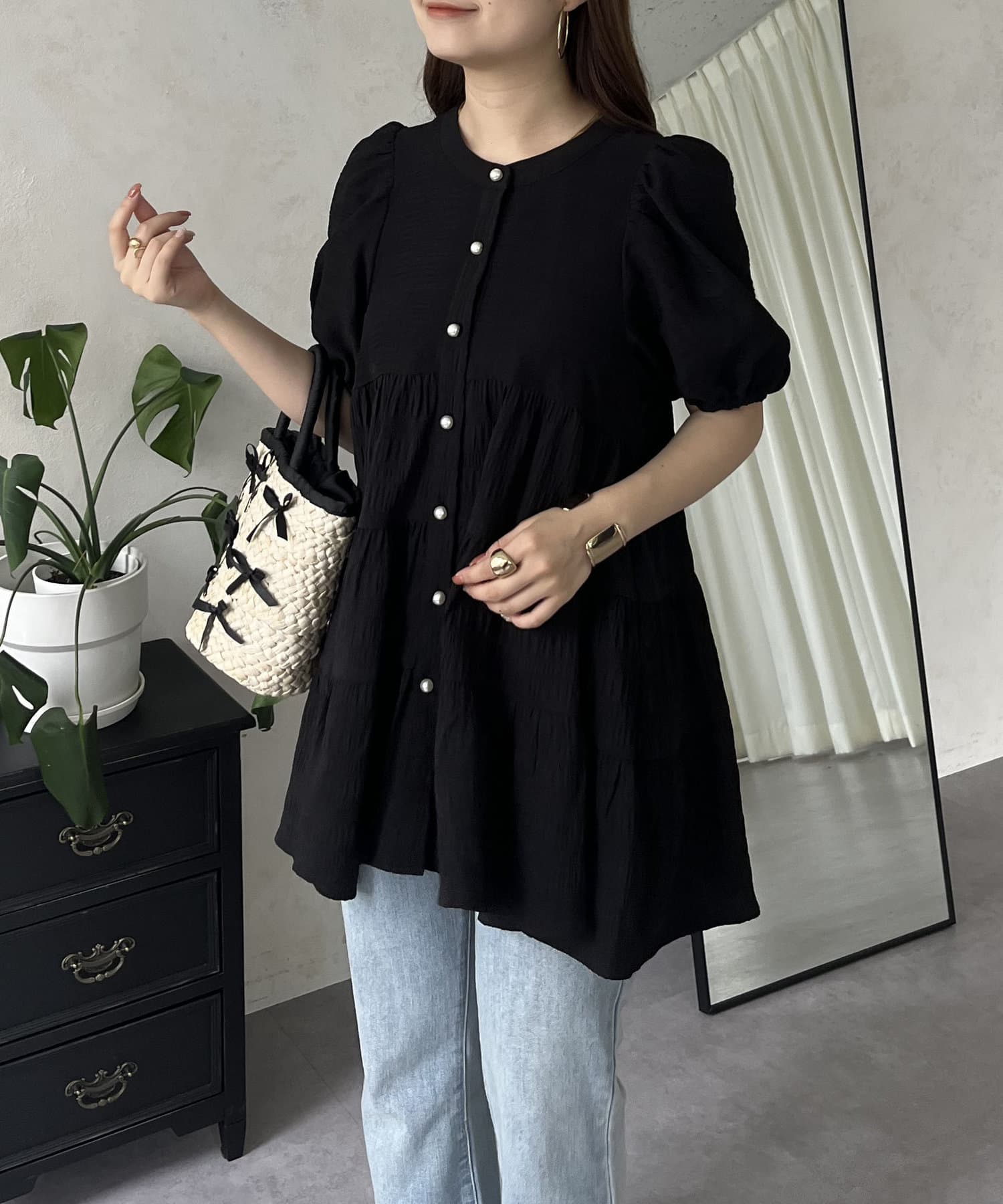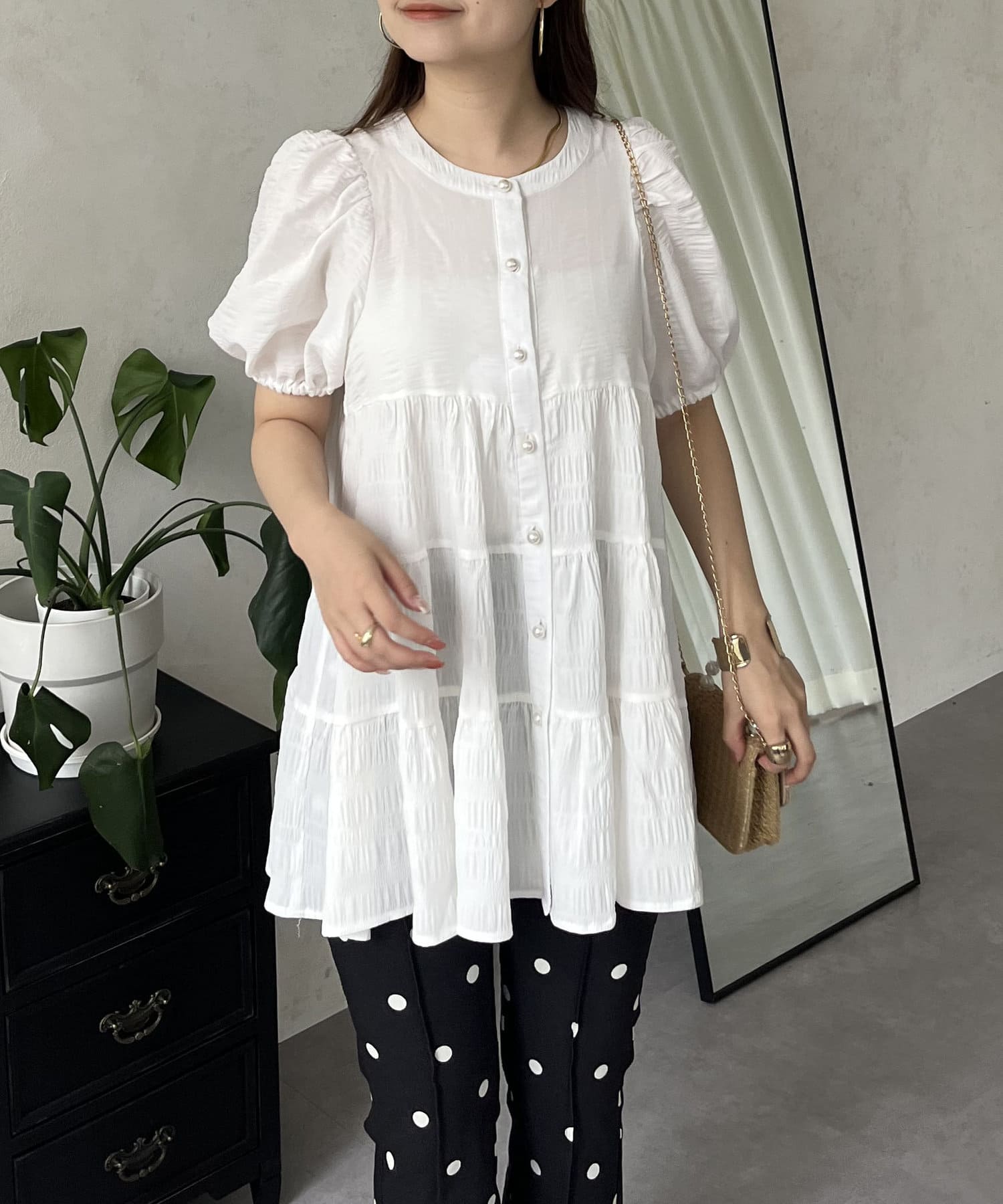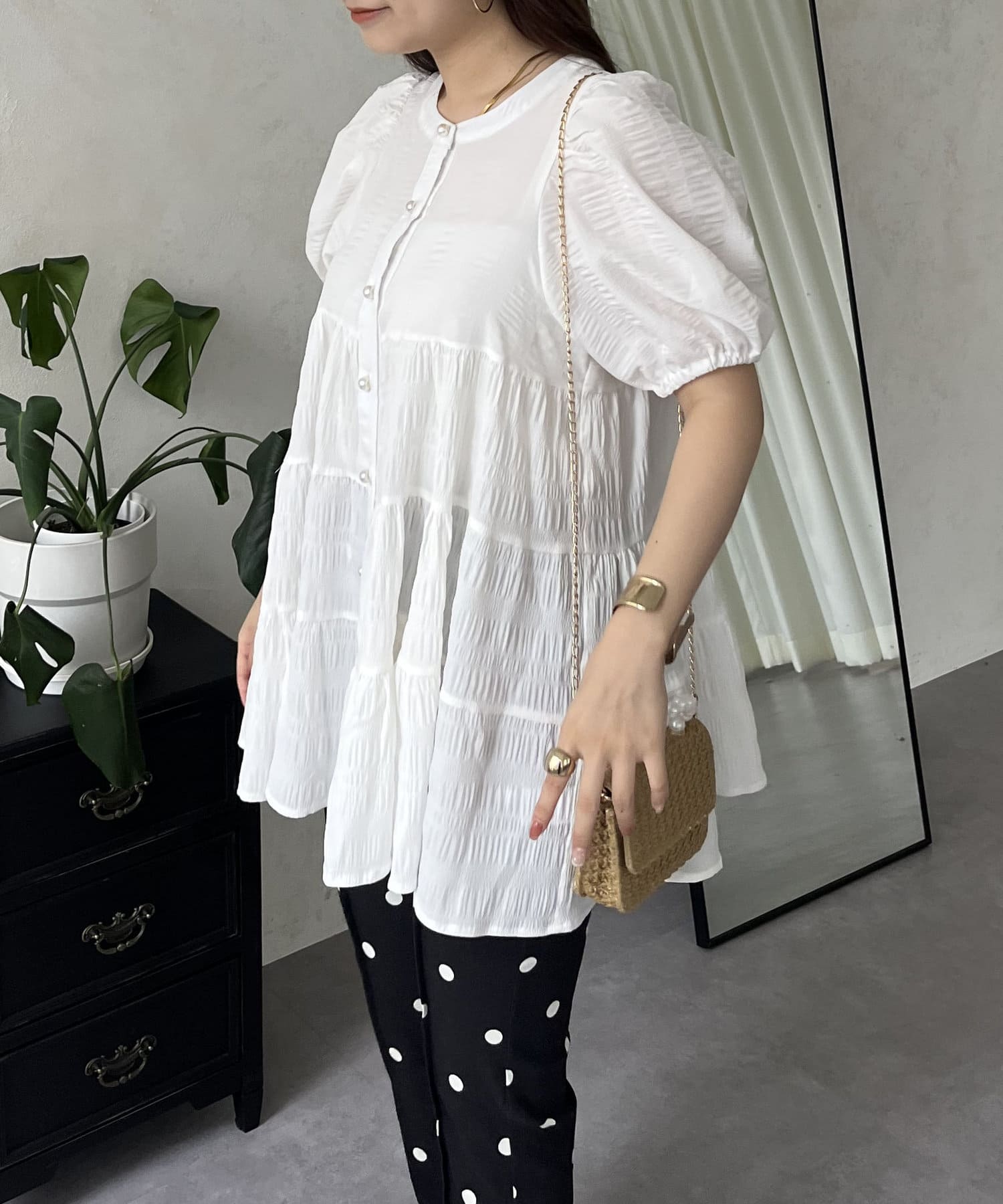 ティアードフリル/シャーリング/チュニック/体型カバー/大人カジュアル