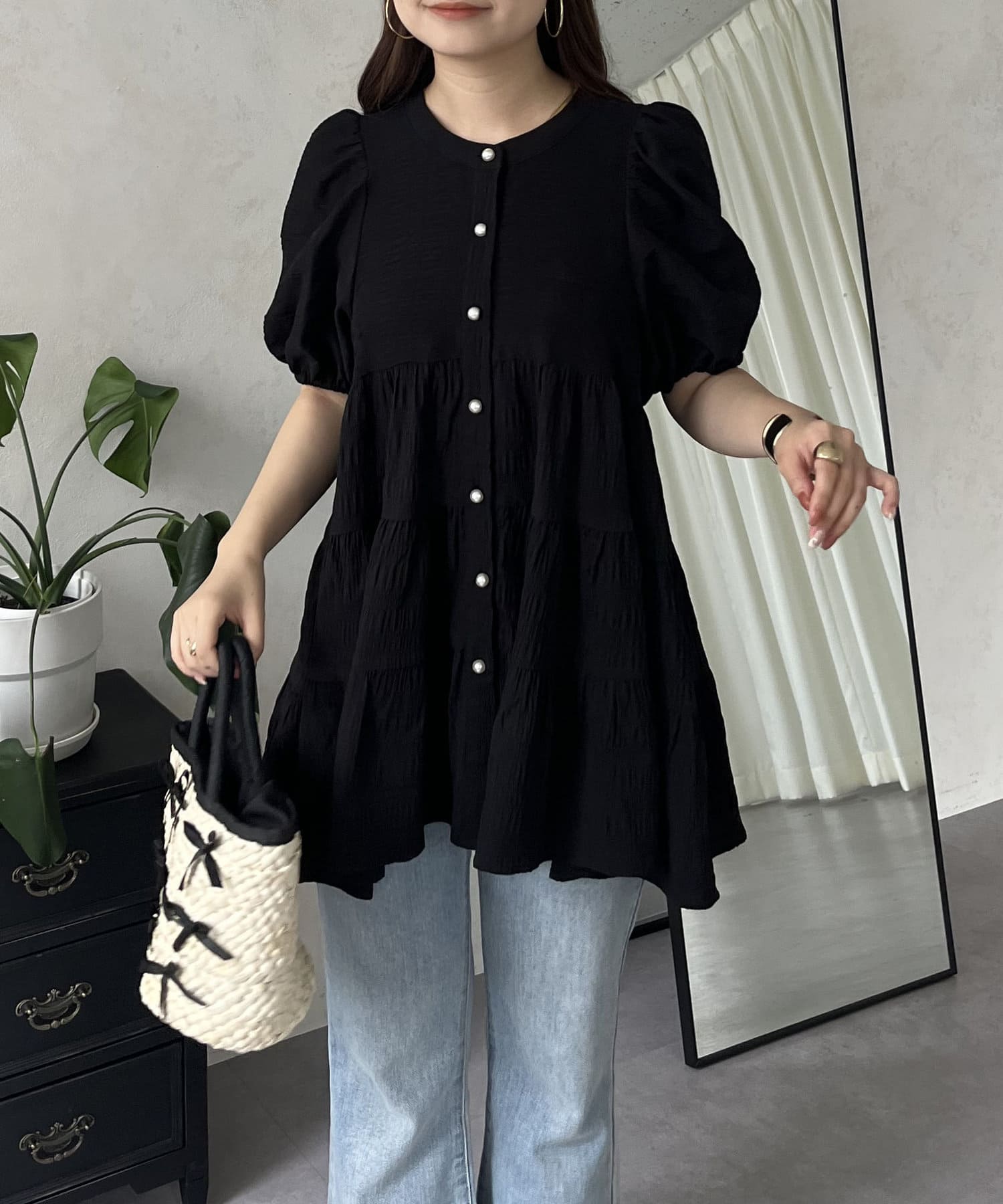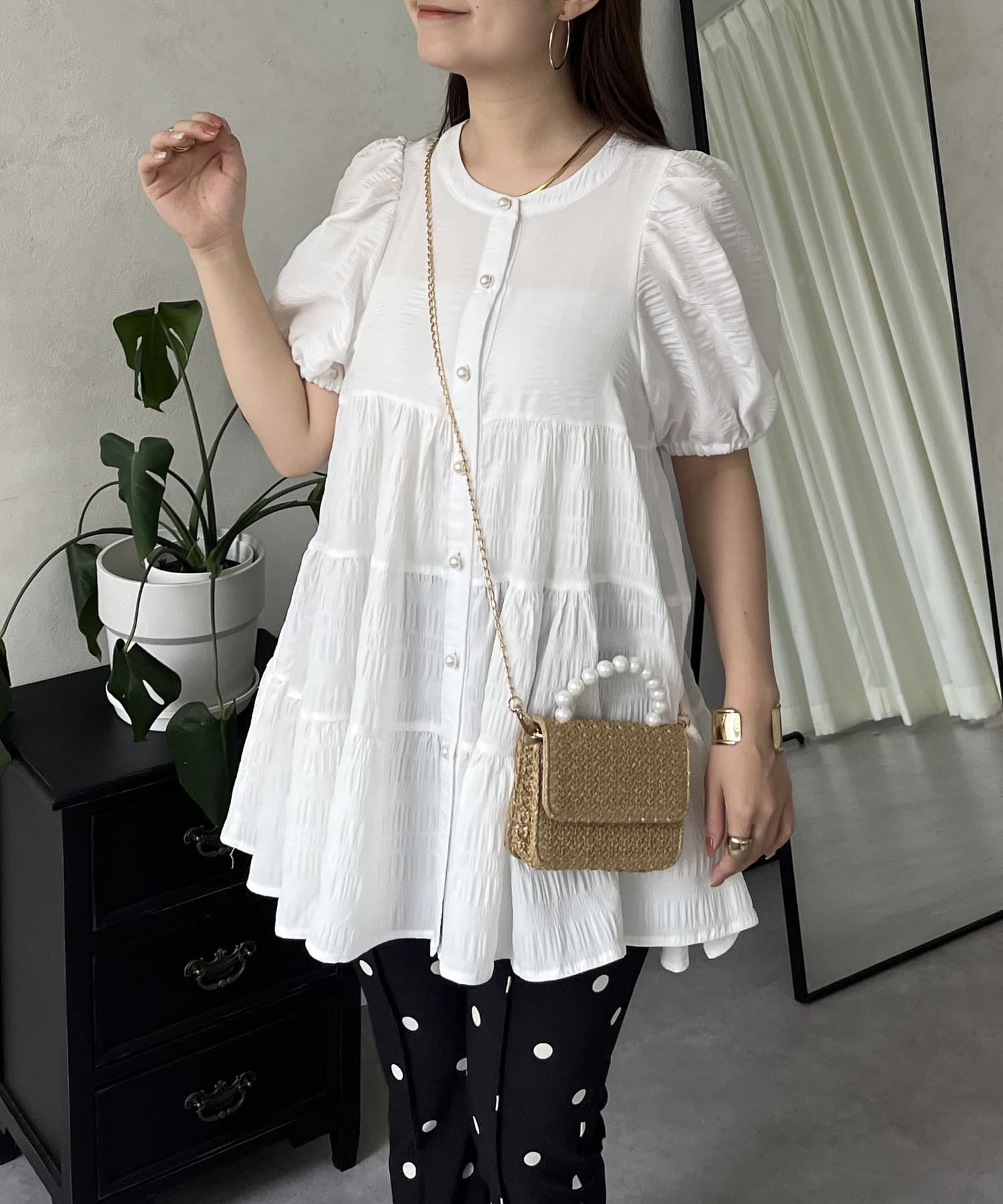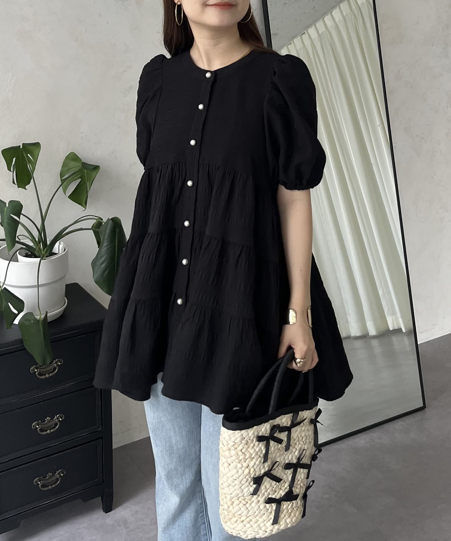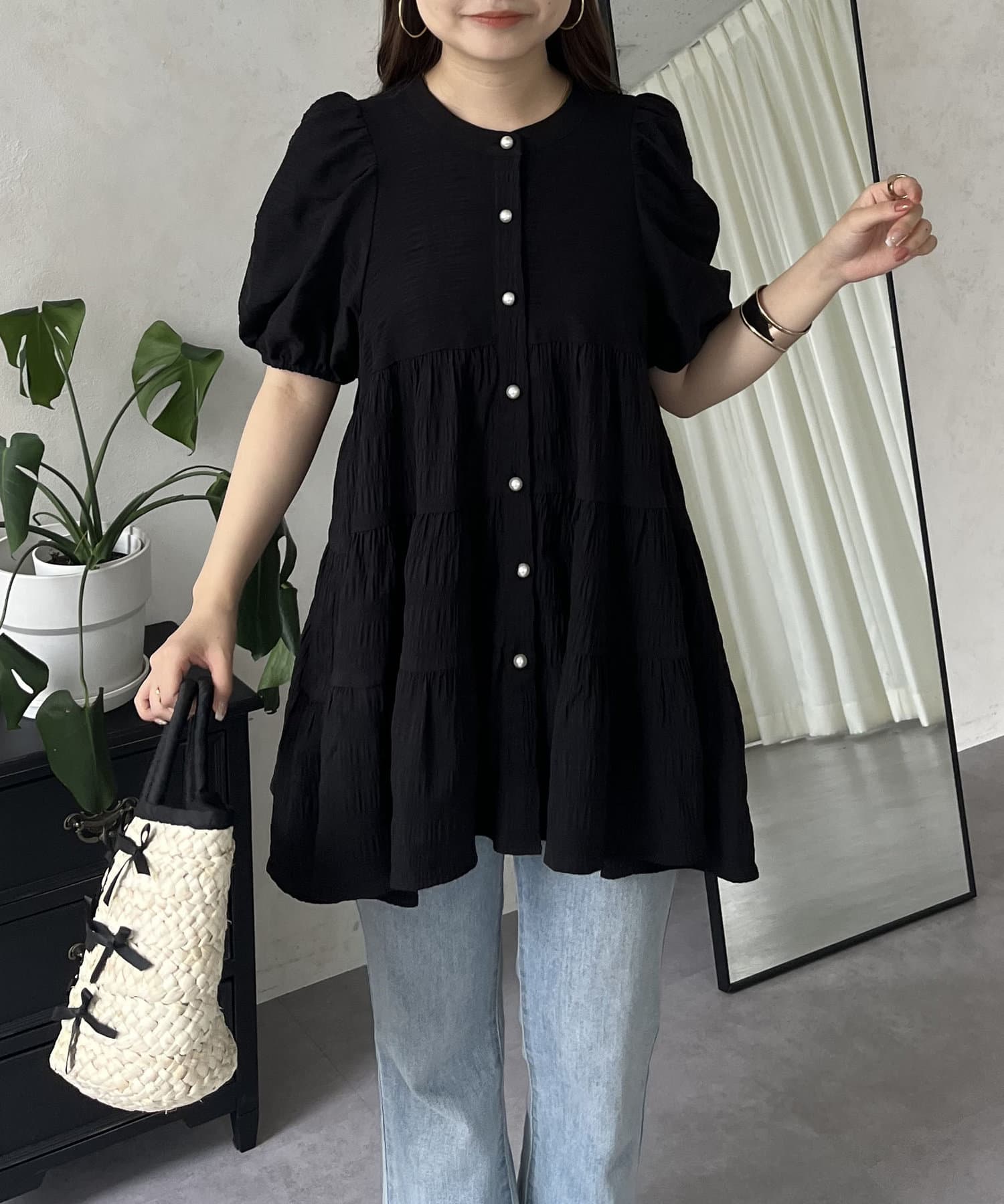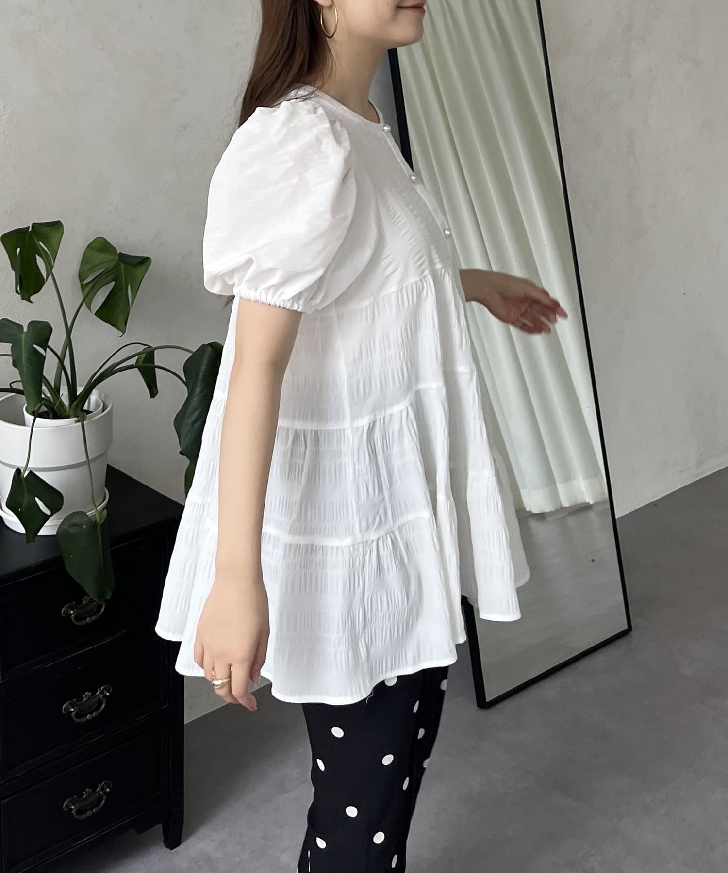 ティアードフリル/シャーリング/チュニック/体型カバー/大人カジュアル