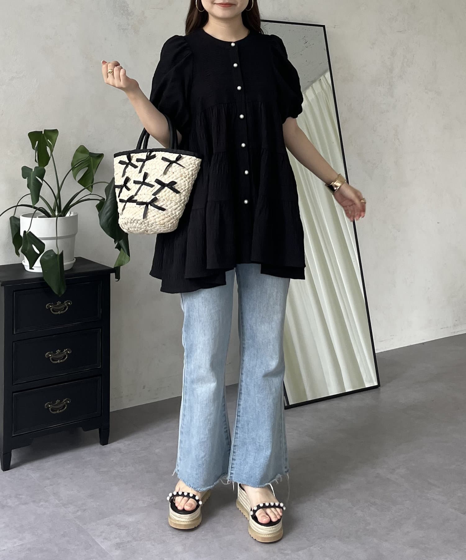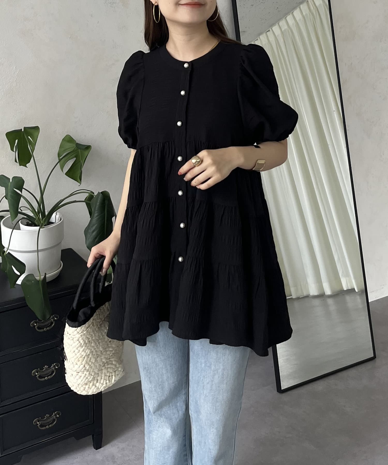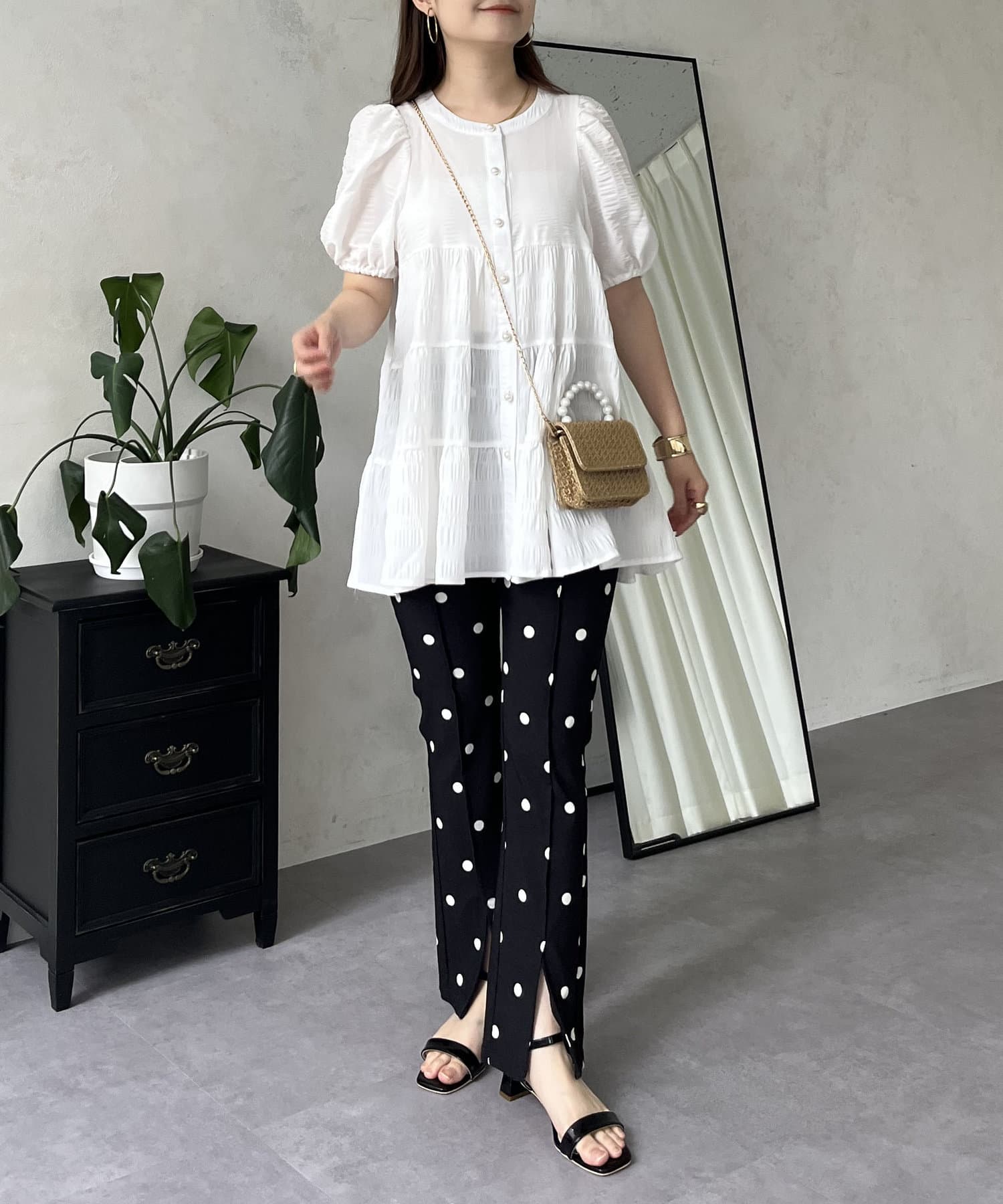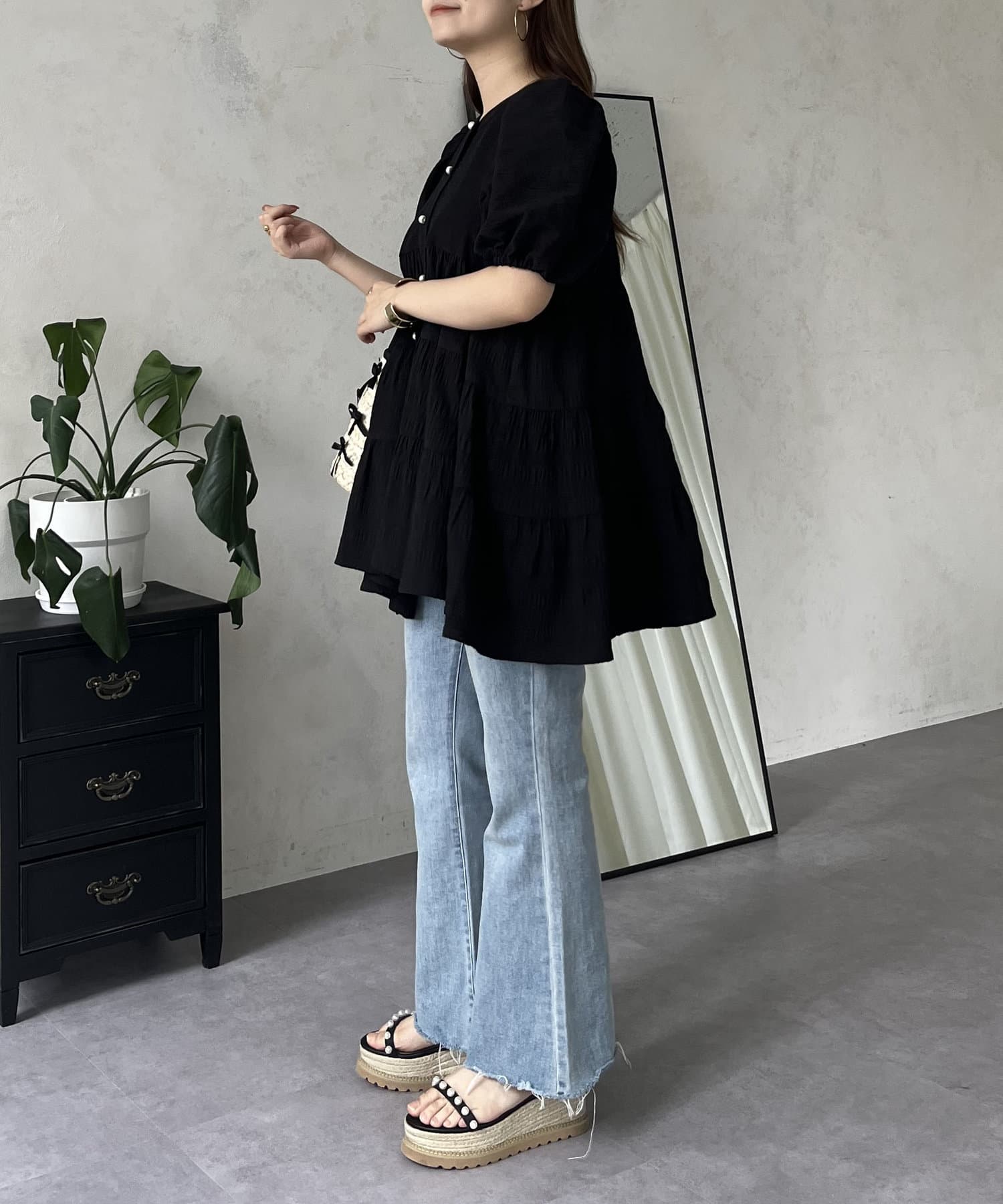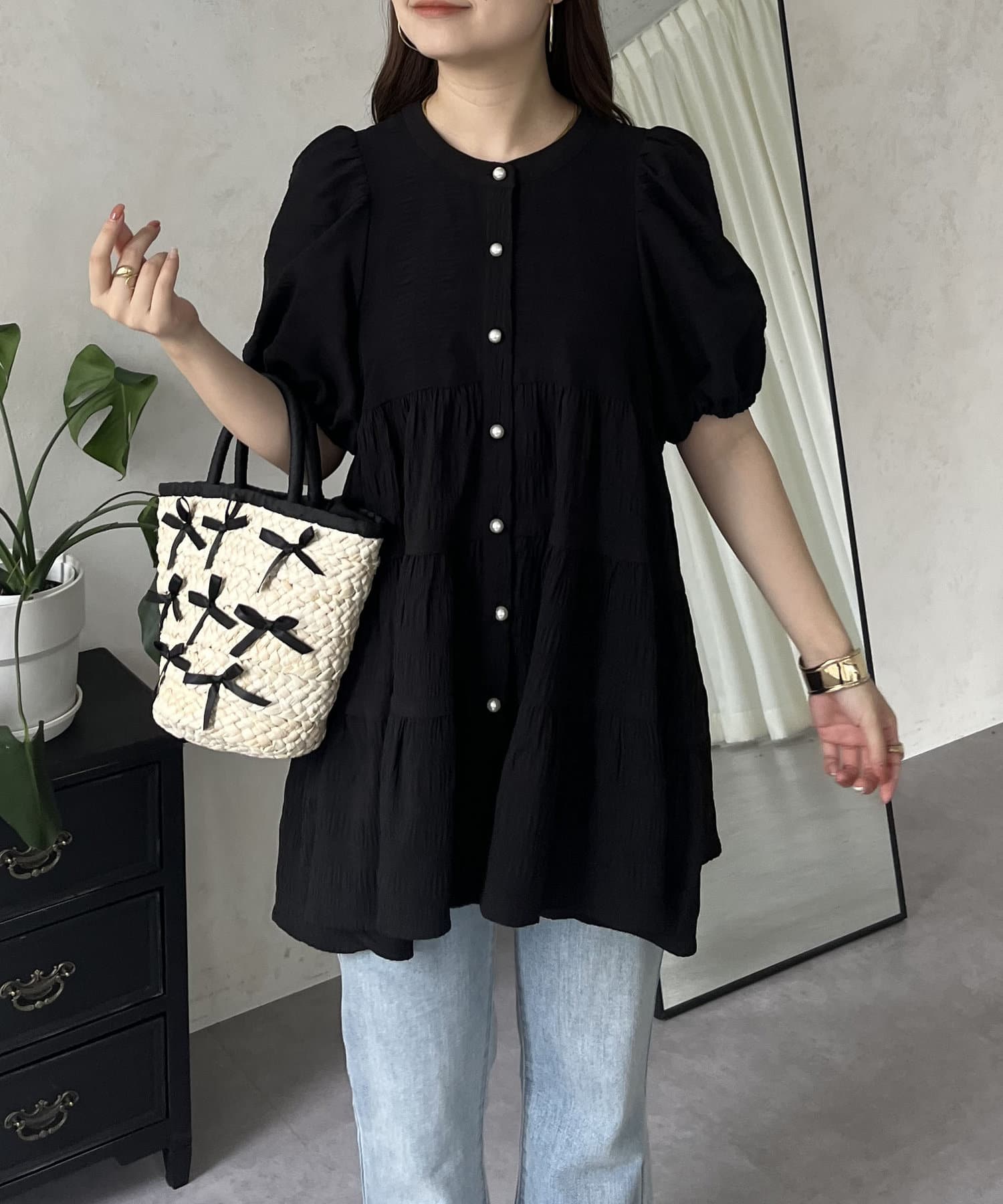 ティアードフリル/シャーリング/チュニック/体型カバー/大人カジュアル