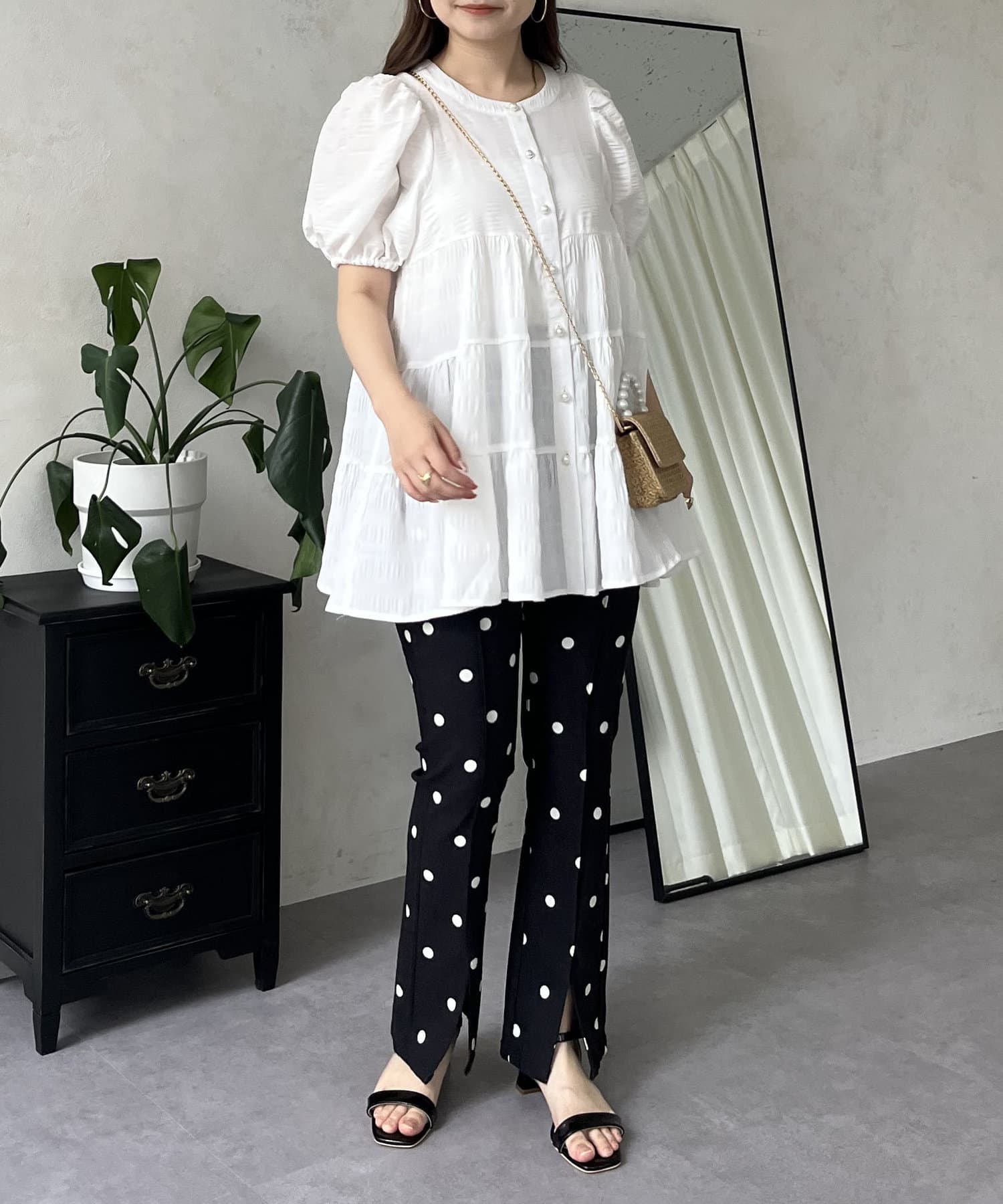 ●柔らかい生地感で動くとふんわり広がるシルエットが可愛い1枚