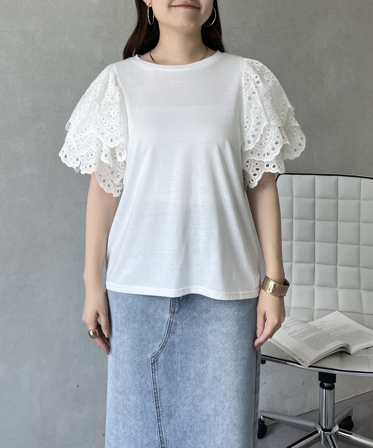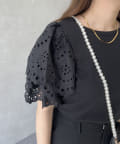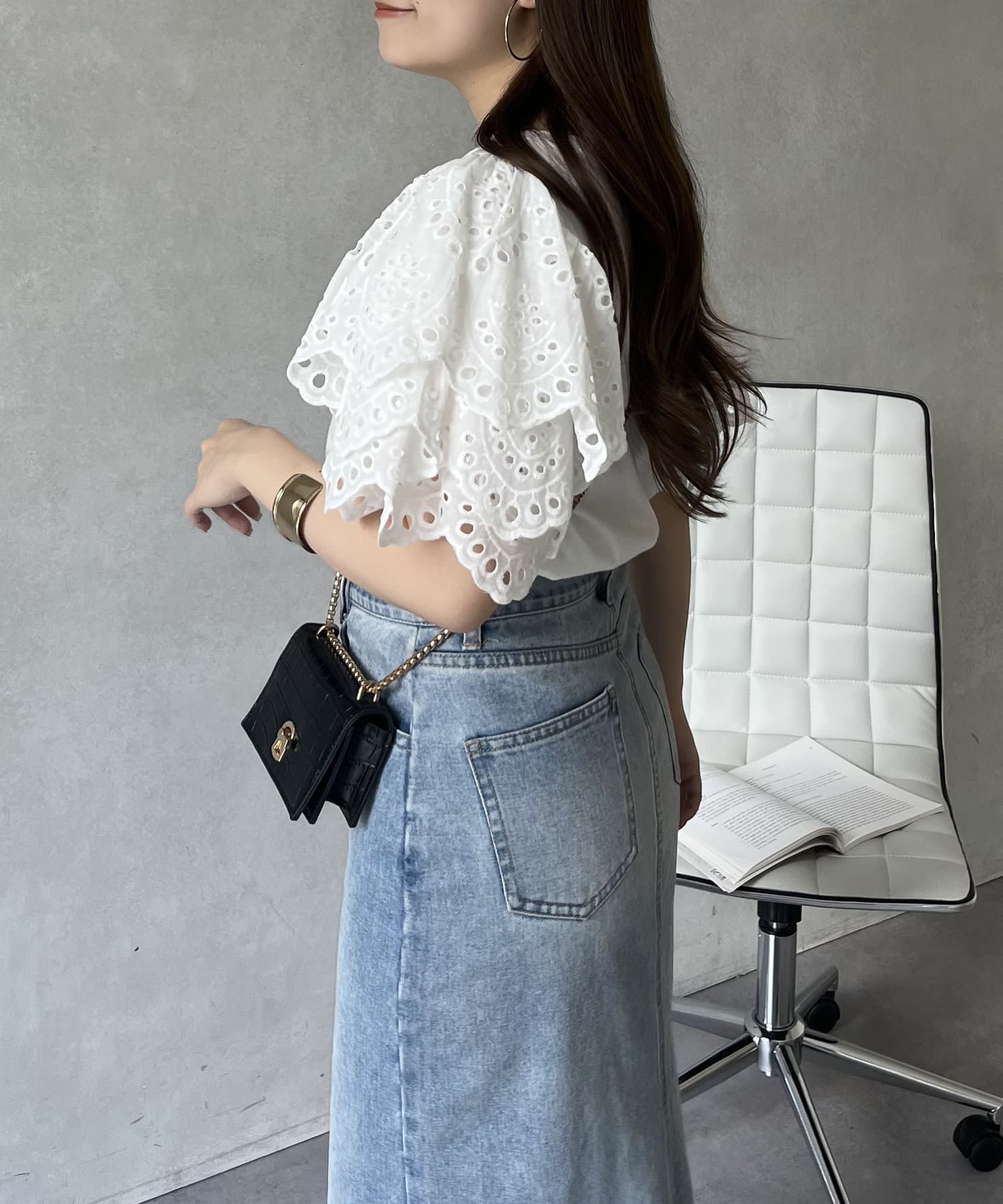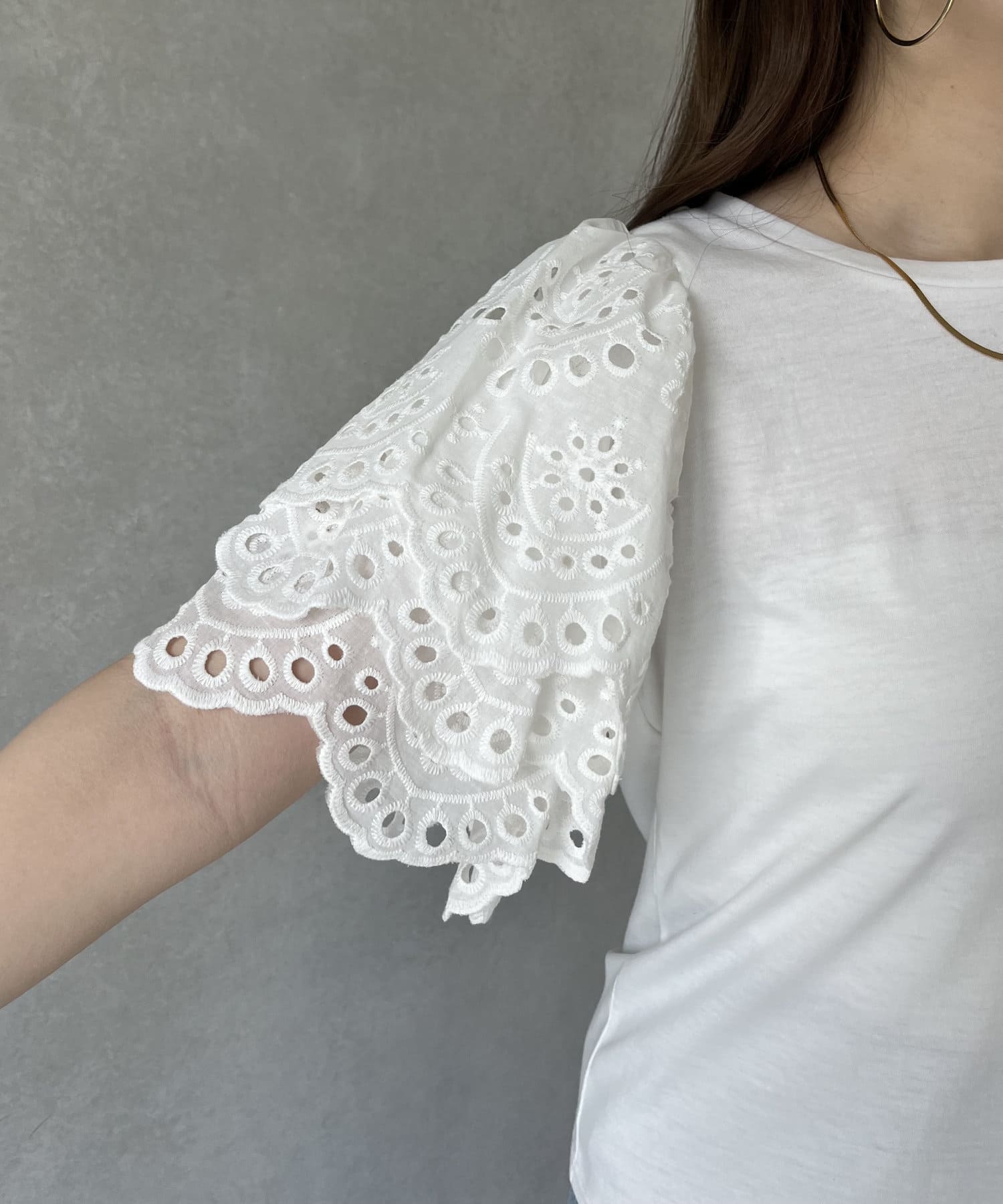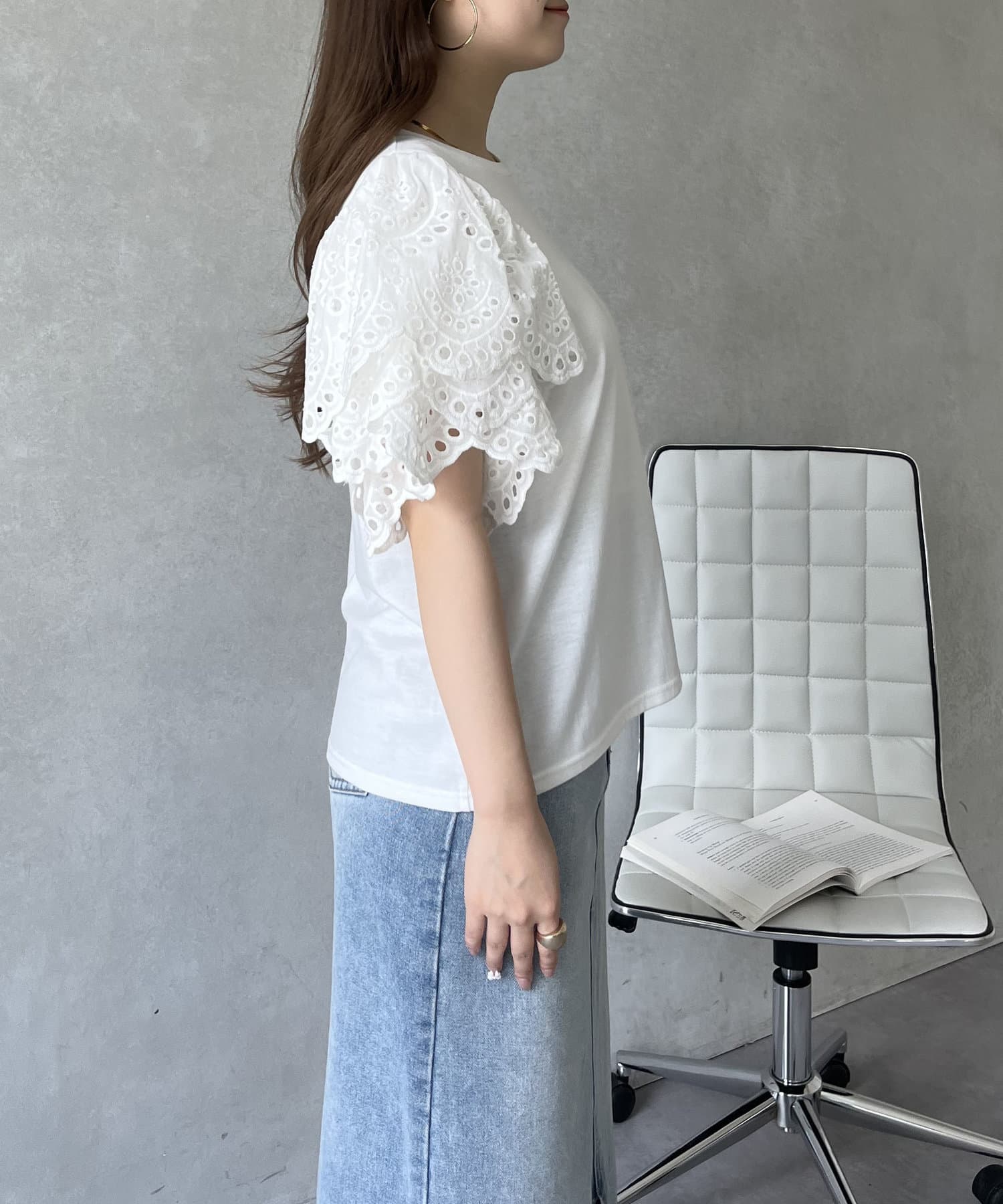 袖スカラップレースTシャツ