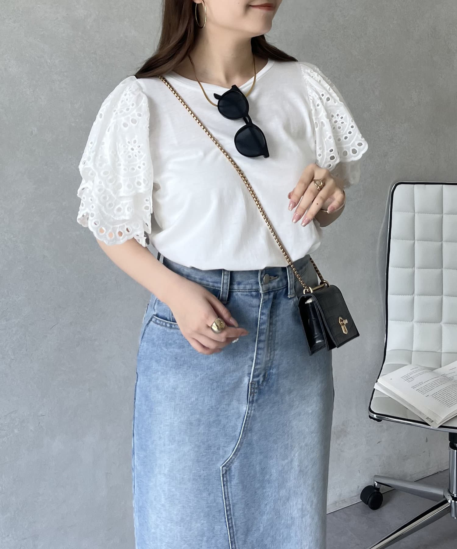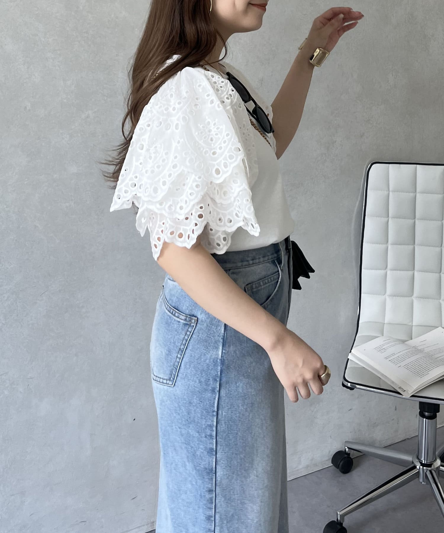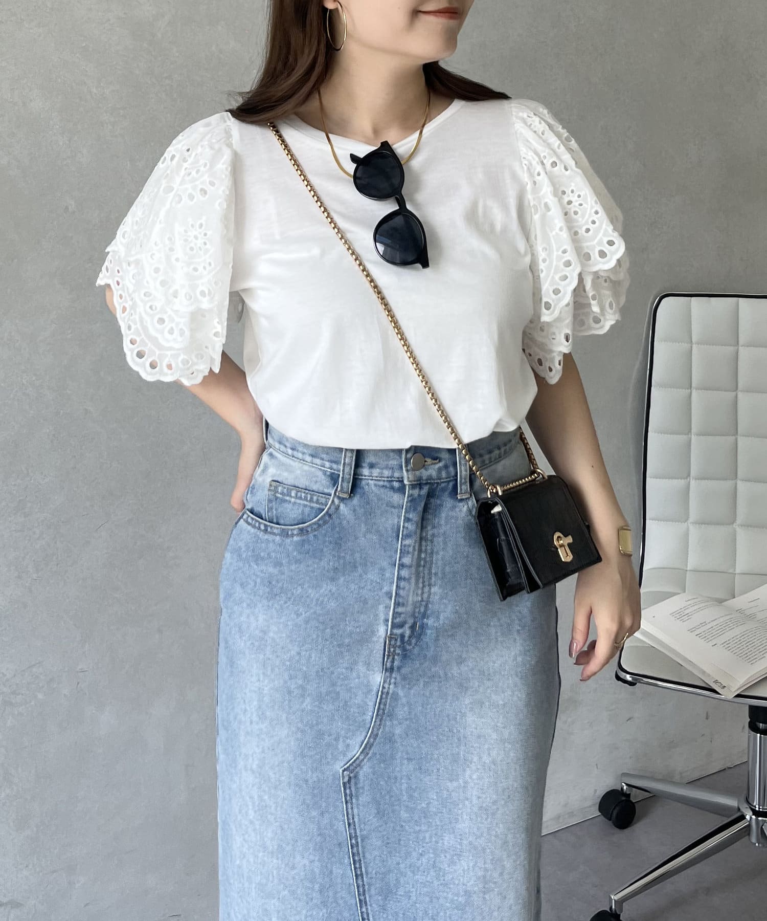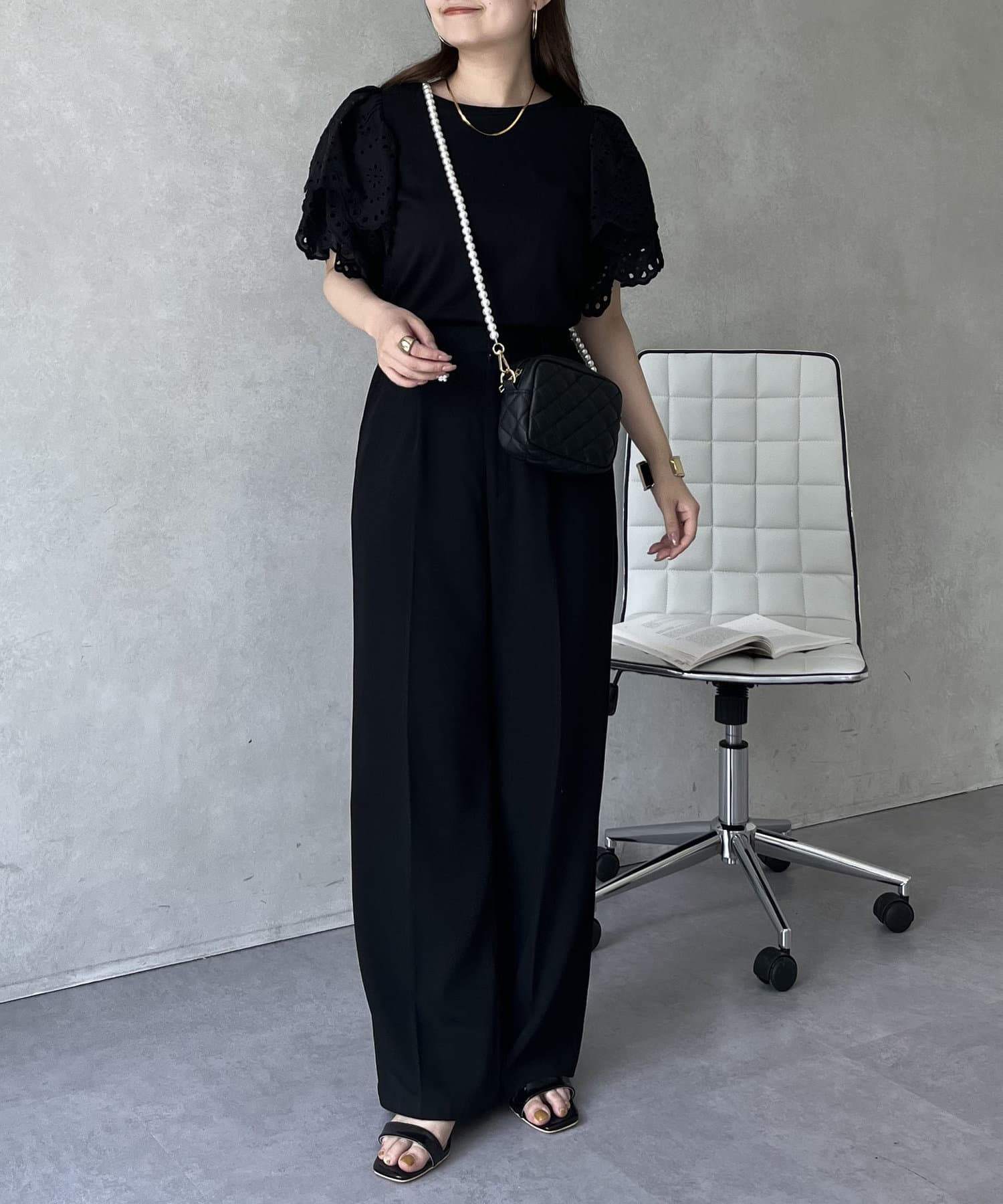 袖スカラップレースTシャツ