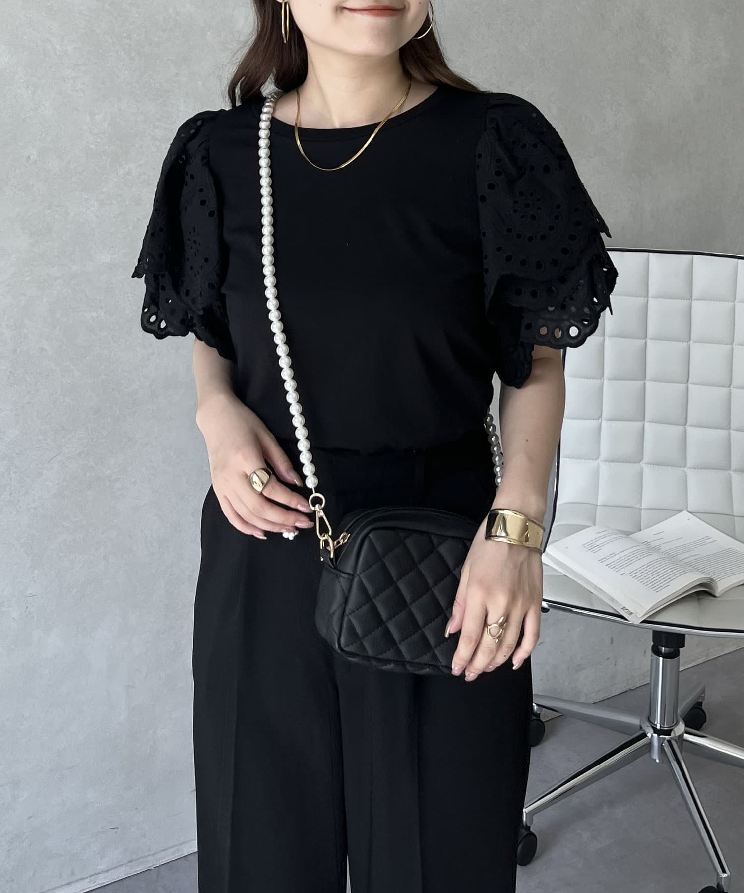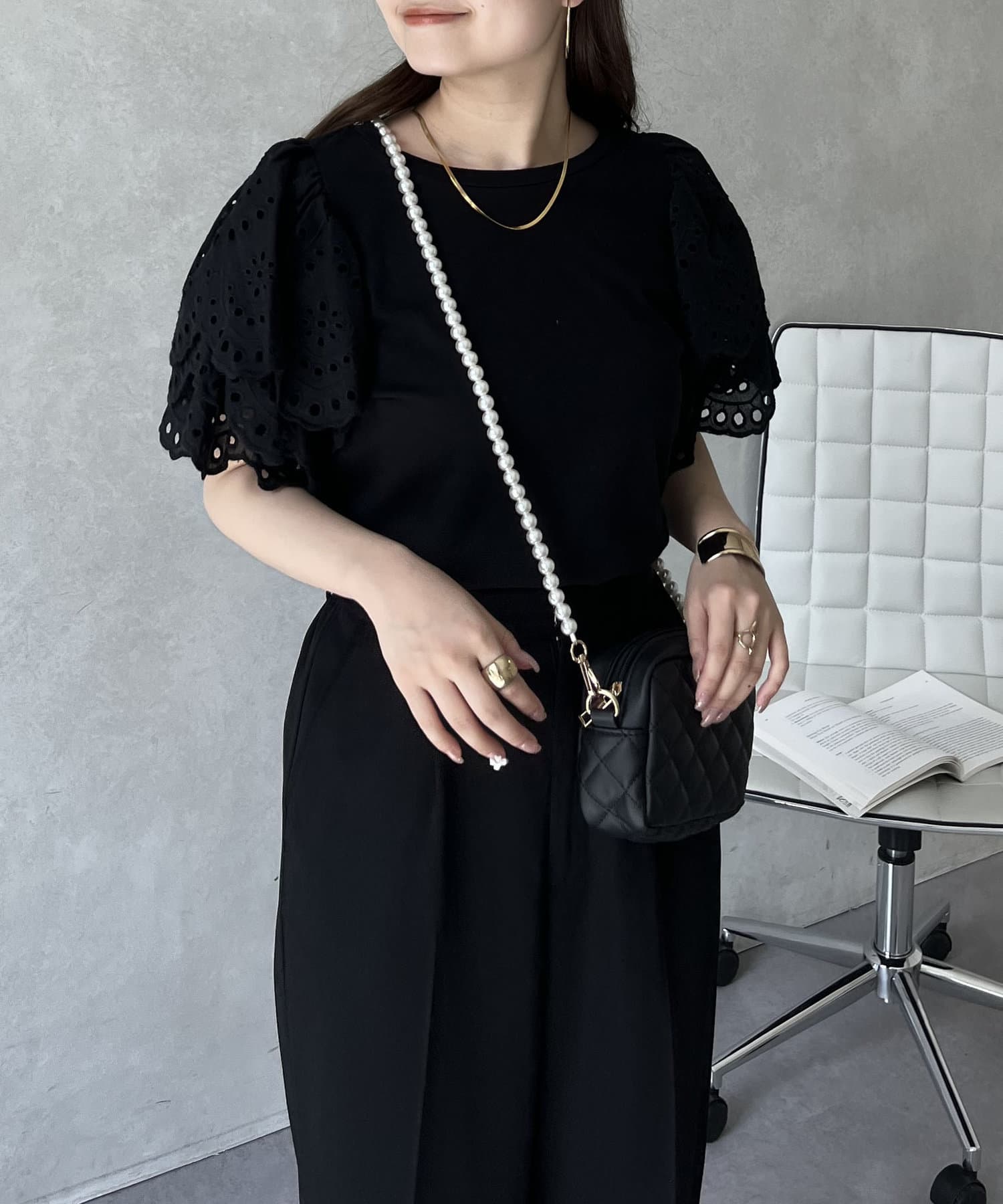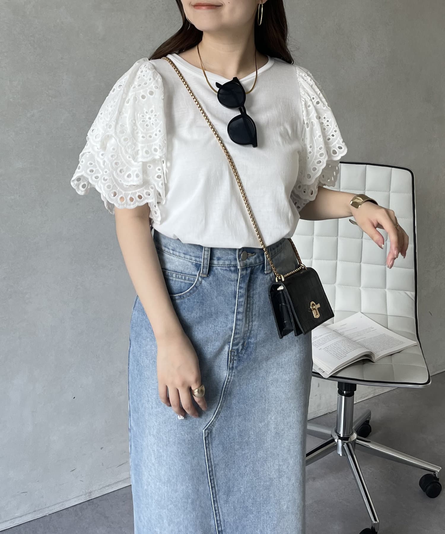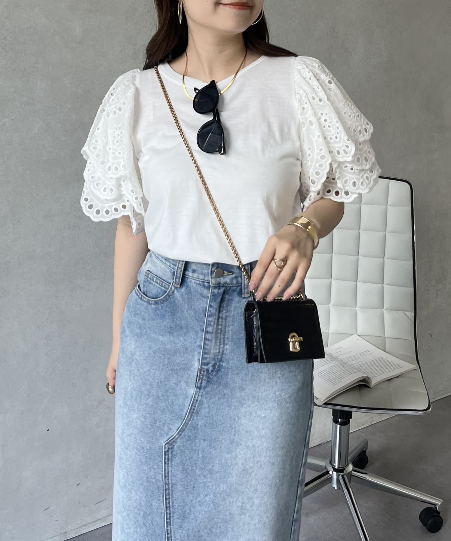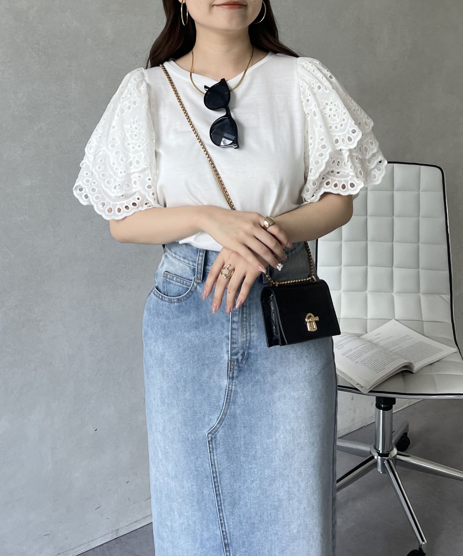 袖スカラップレースTシャツ