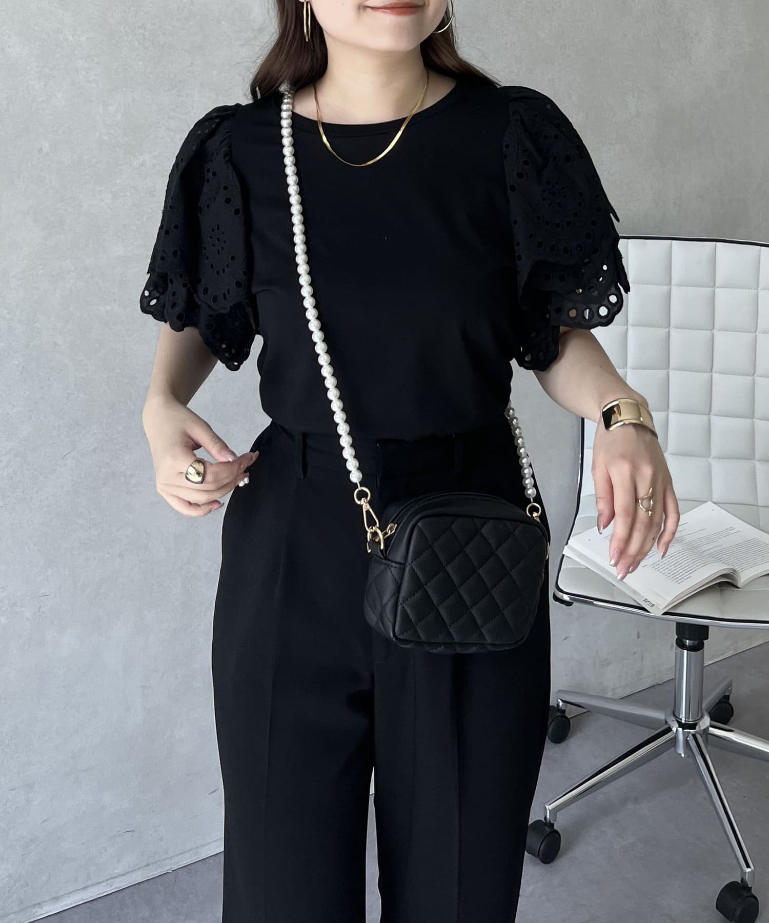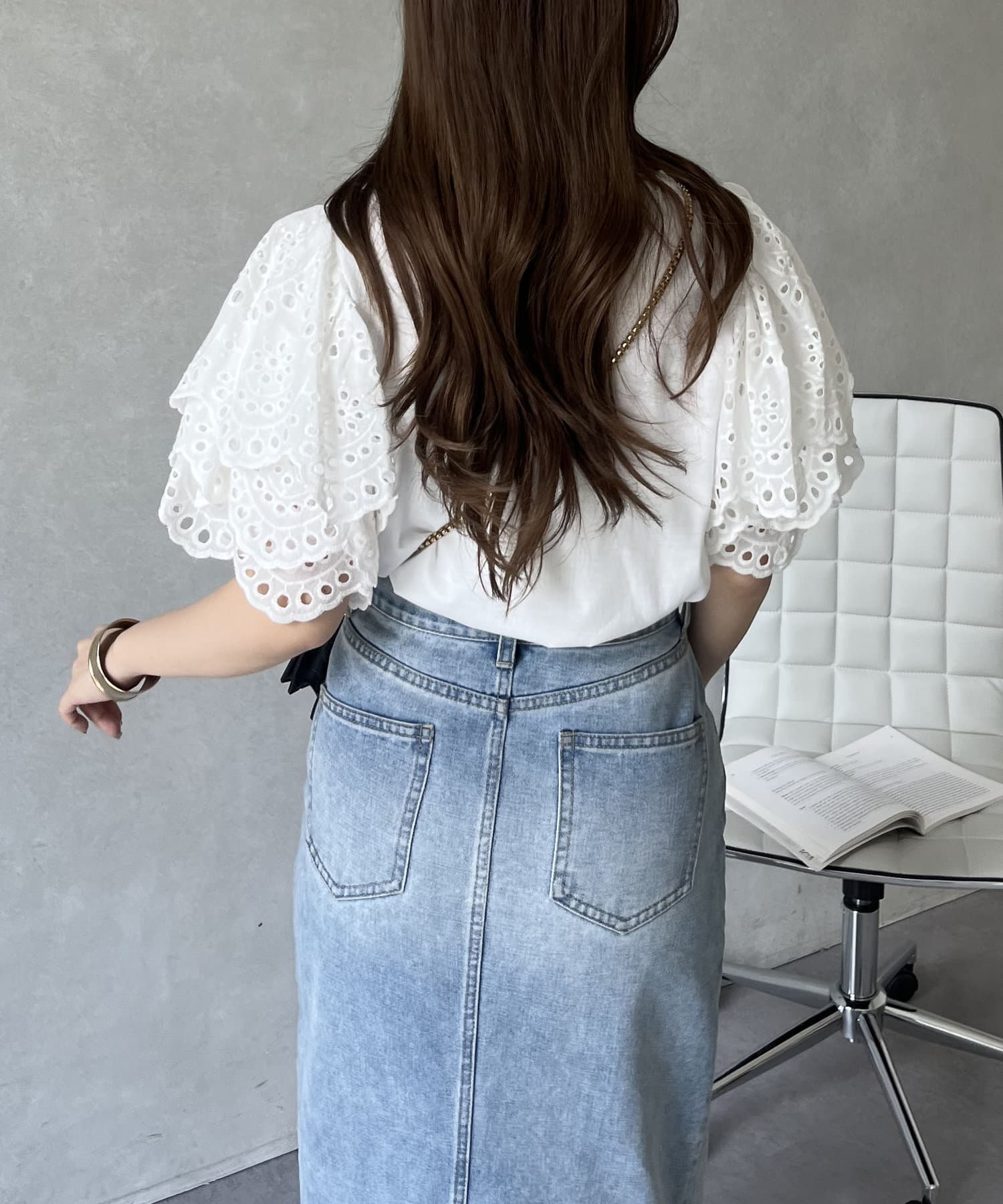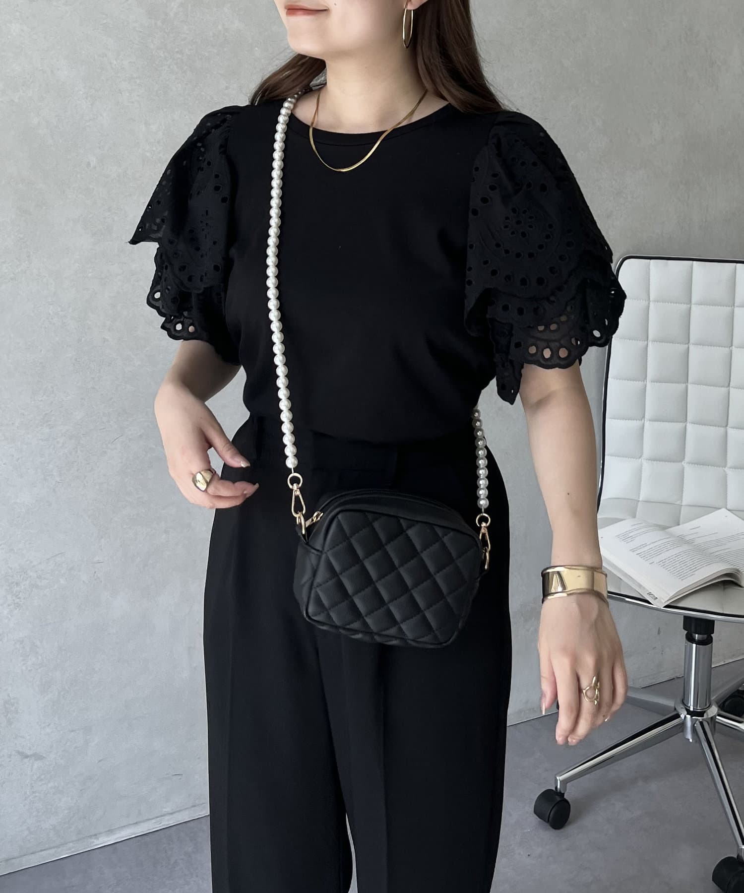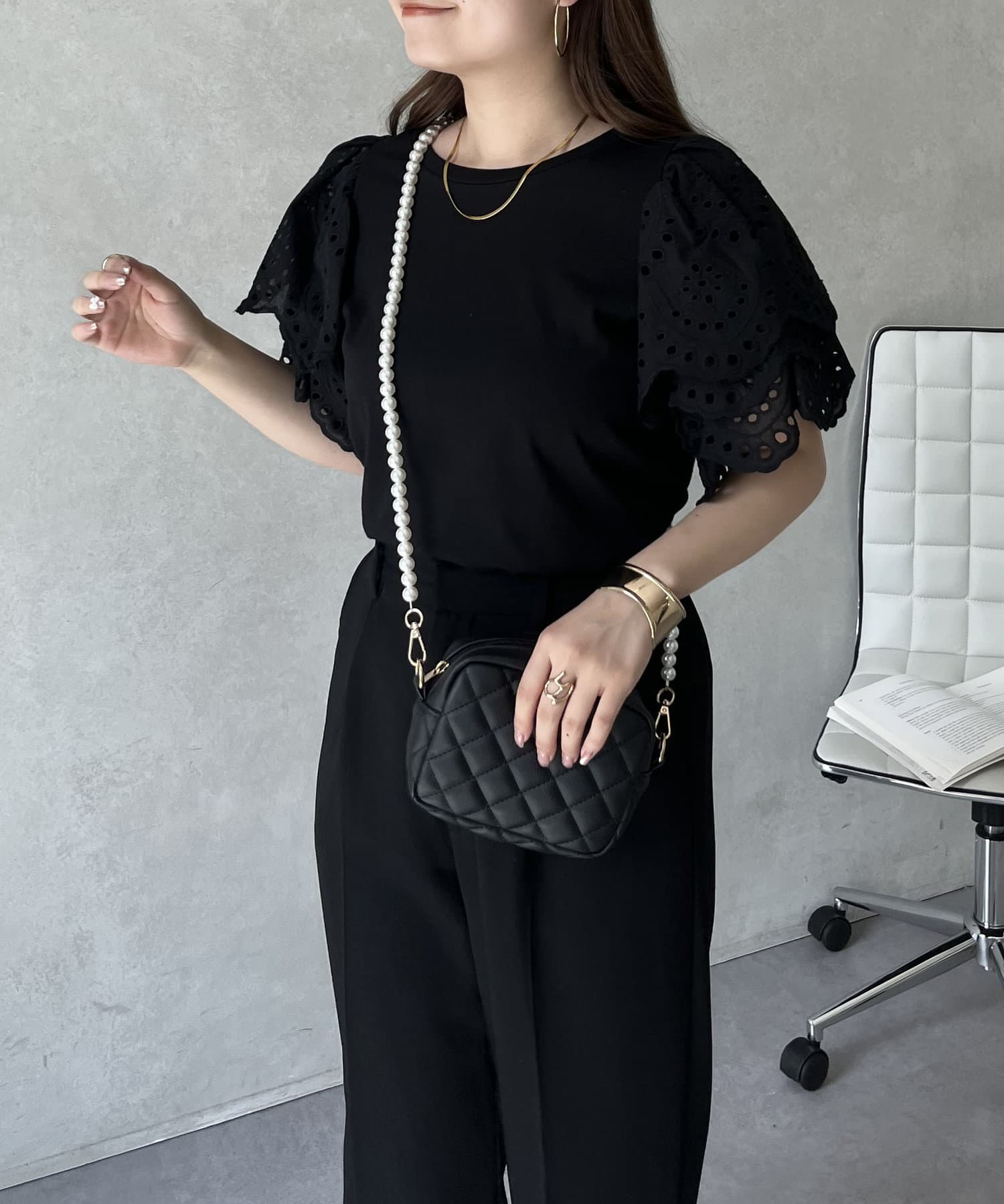 袖スカラップレースTシャツ