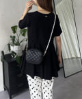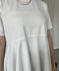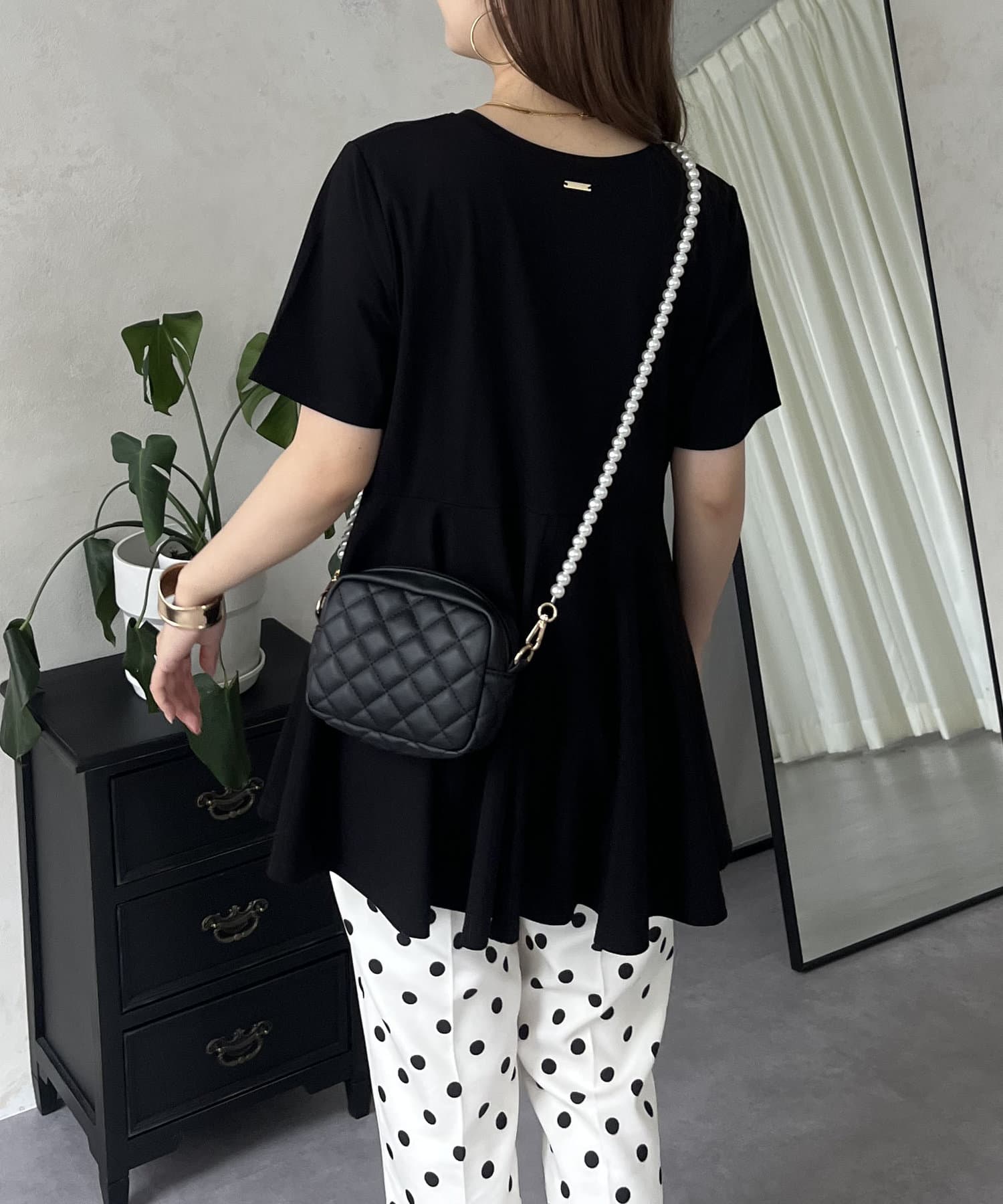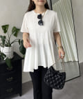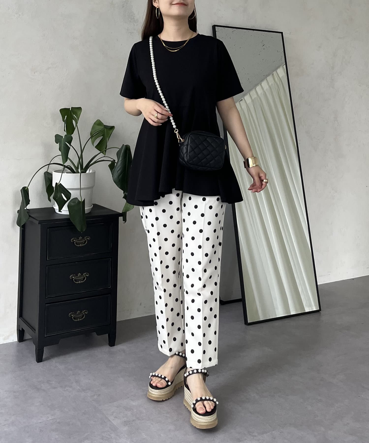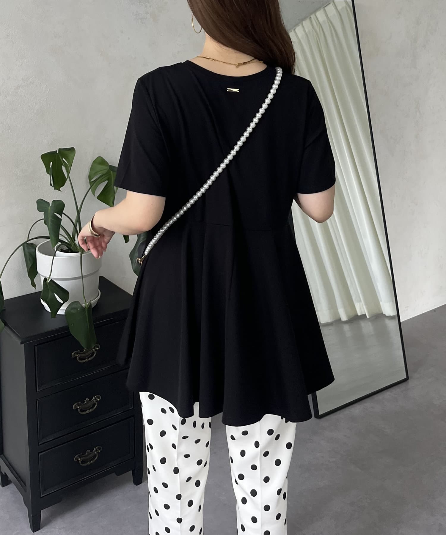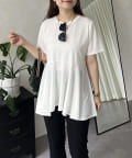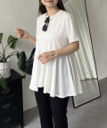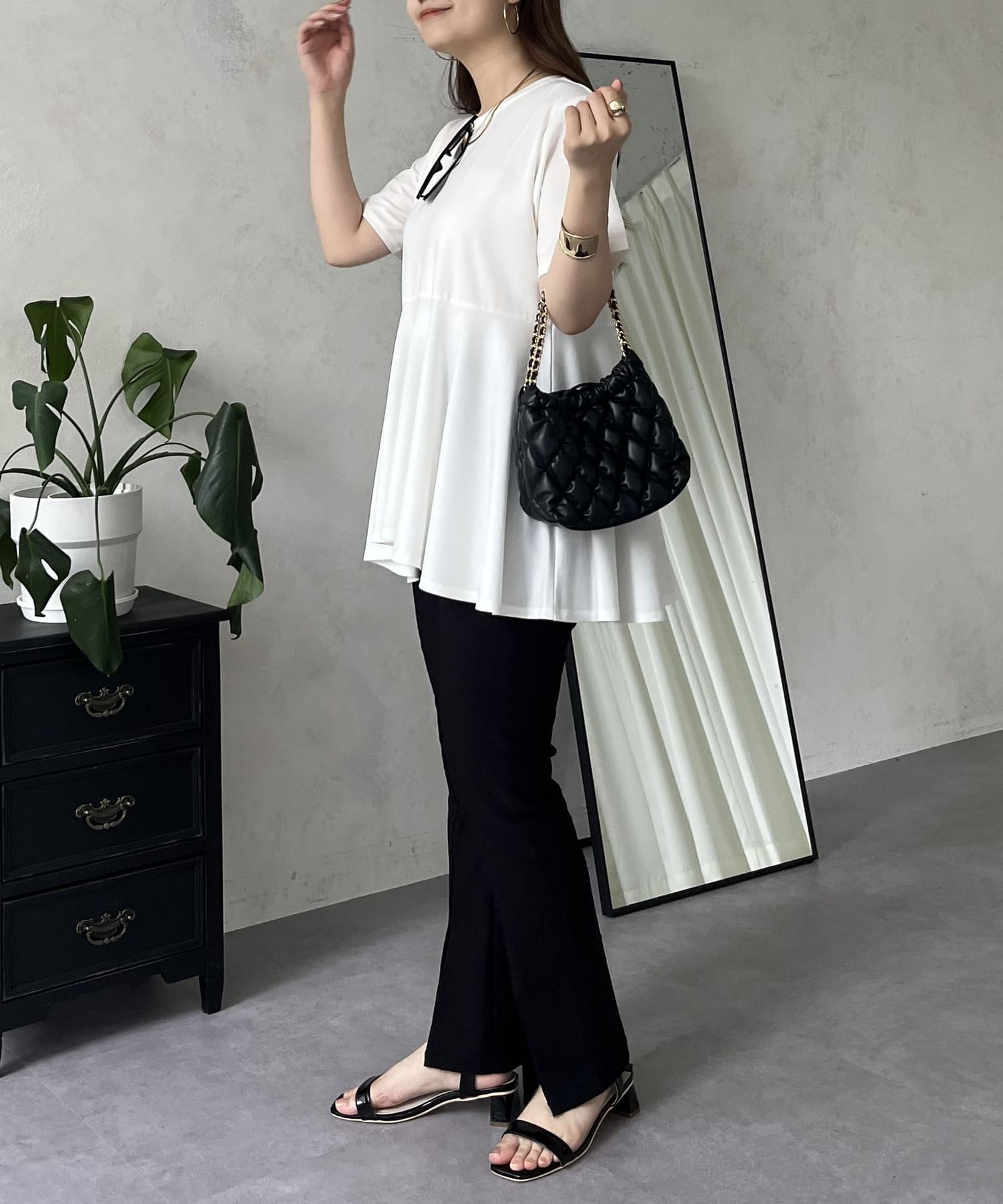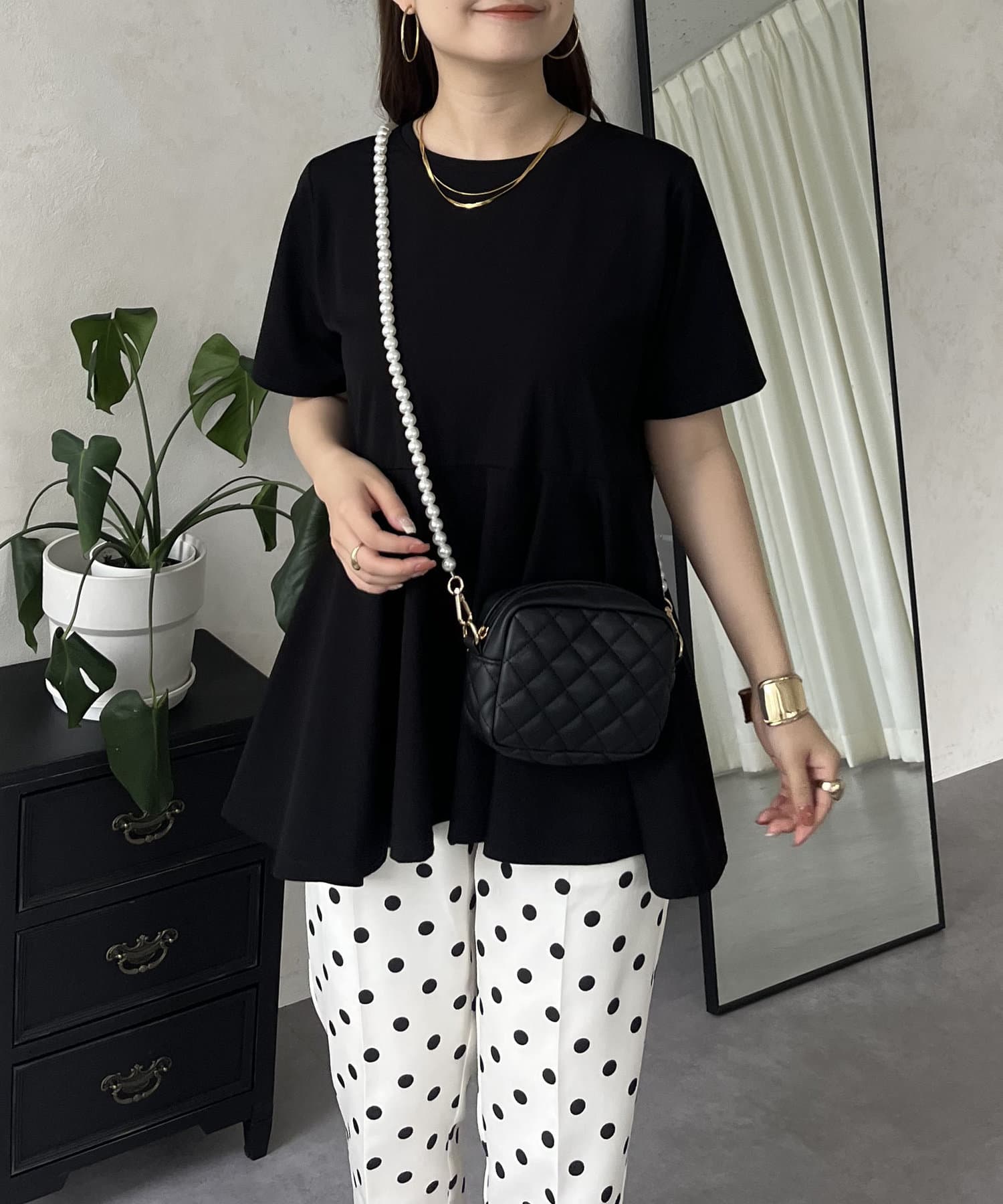 カジュアルとフェミニンをミックスさせたペプラムTシャツ