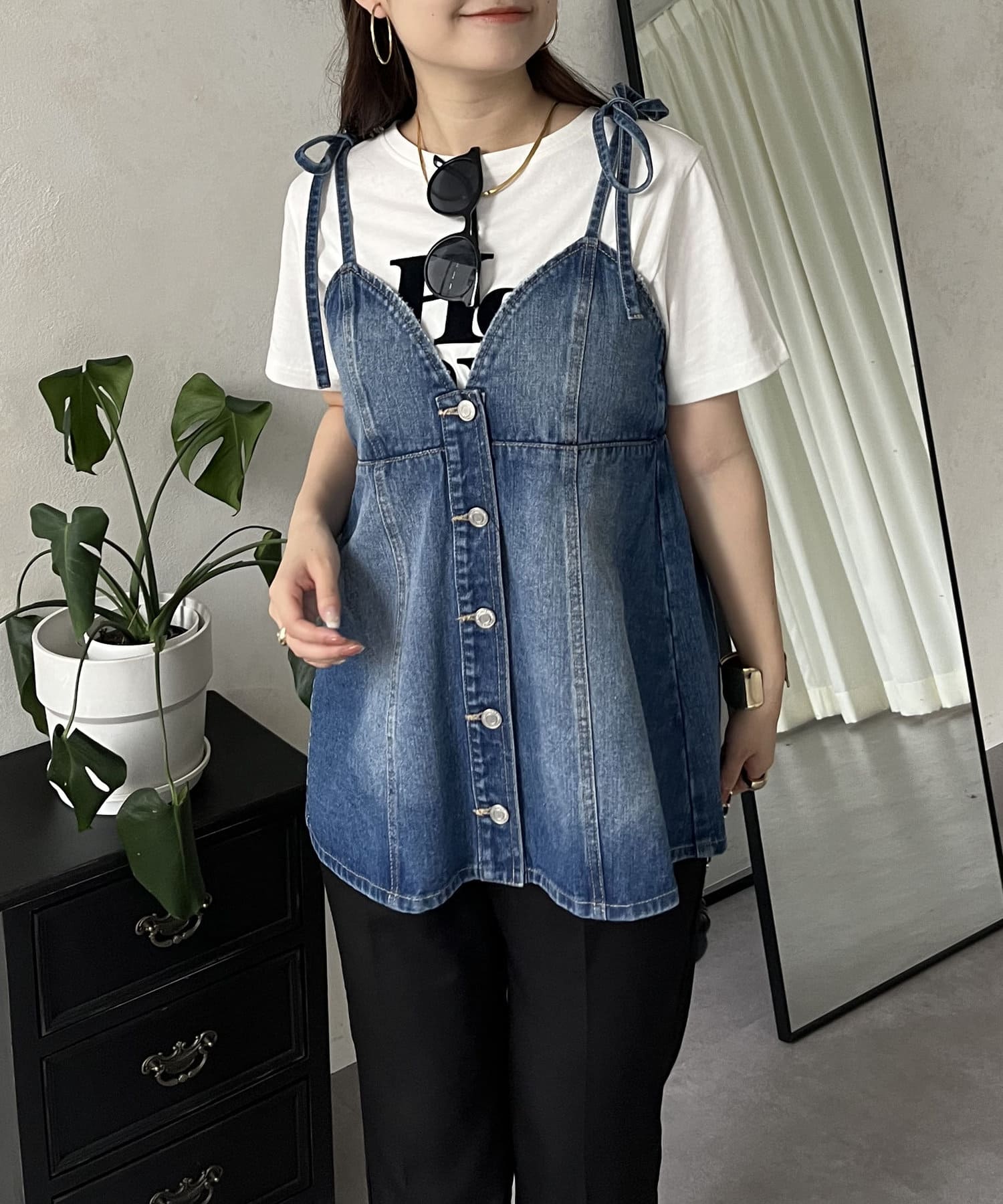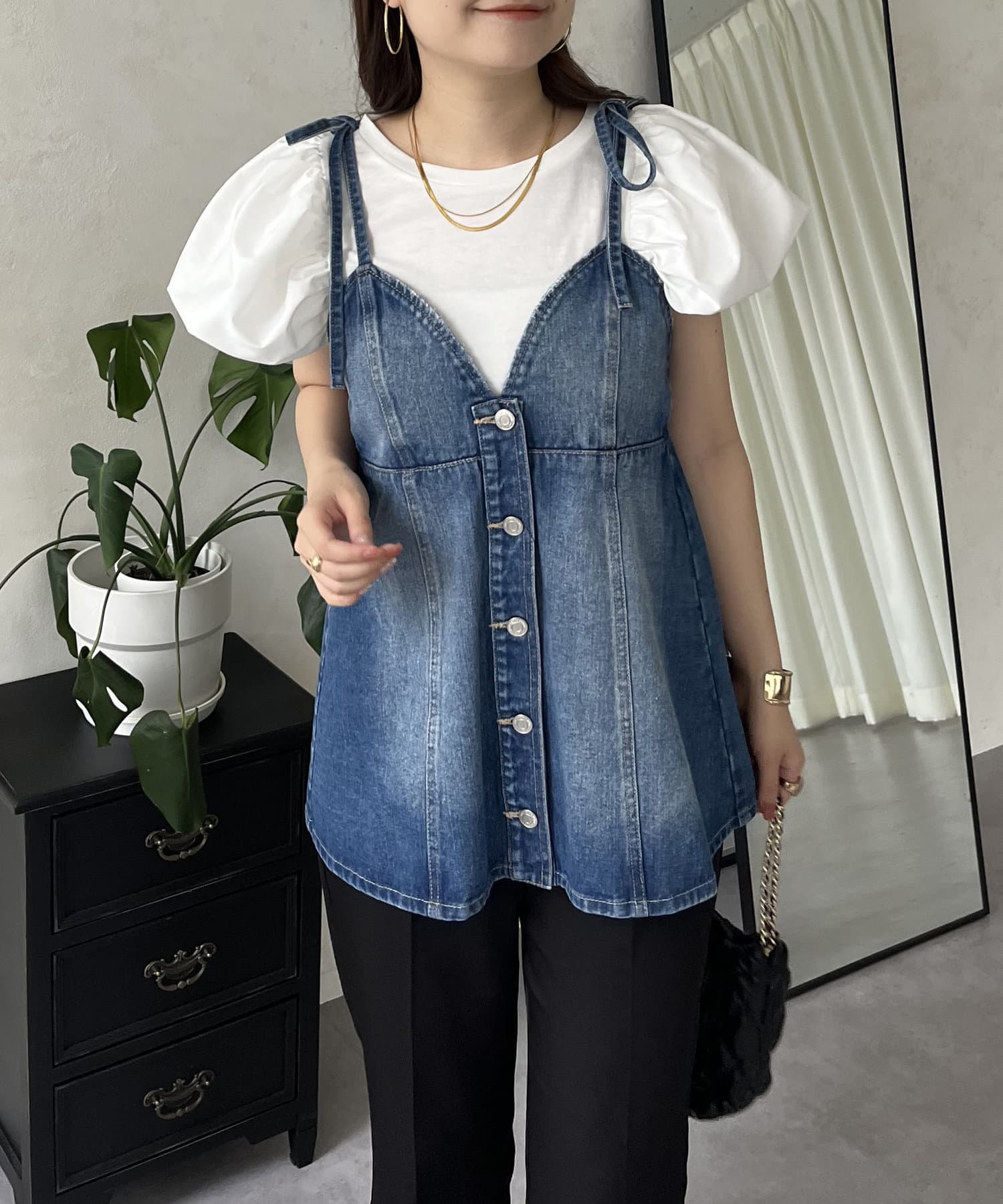 デニム/ビスチェ/カジュアル/体型カバー
