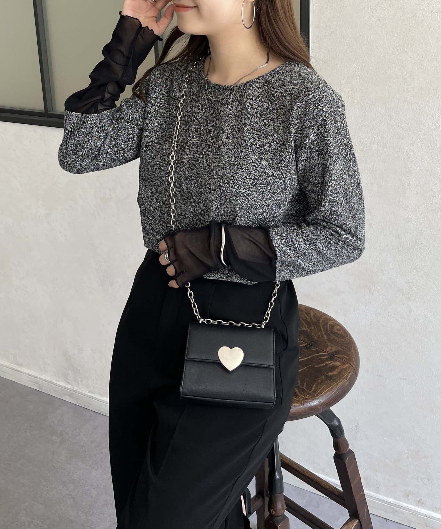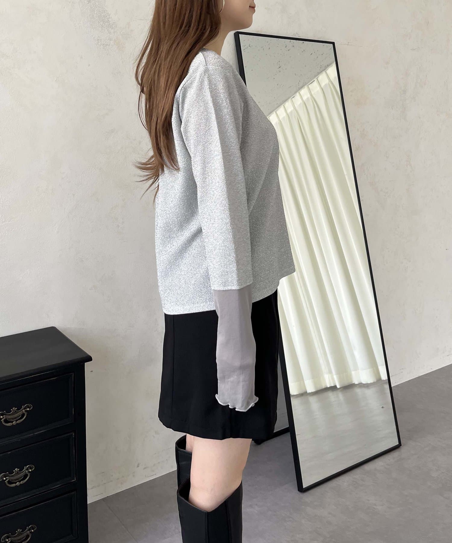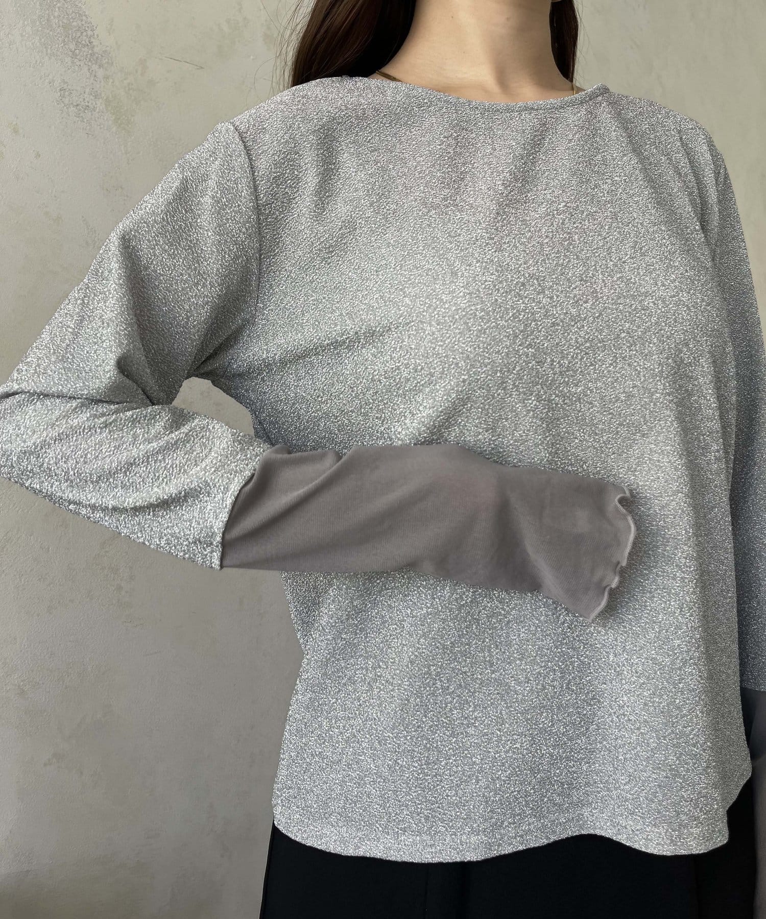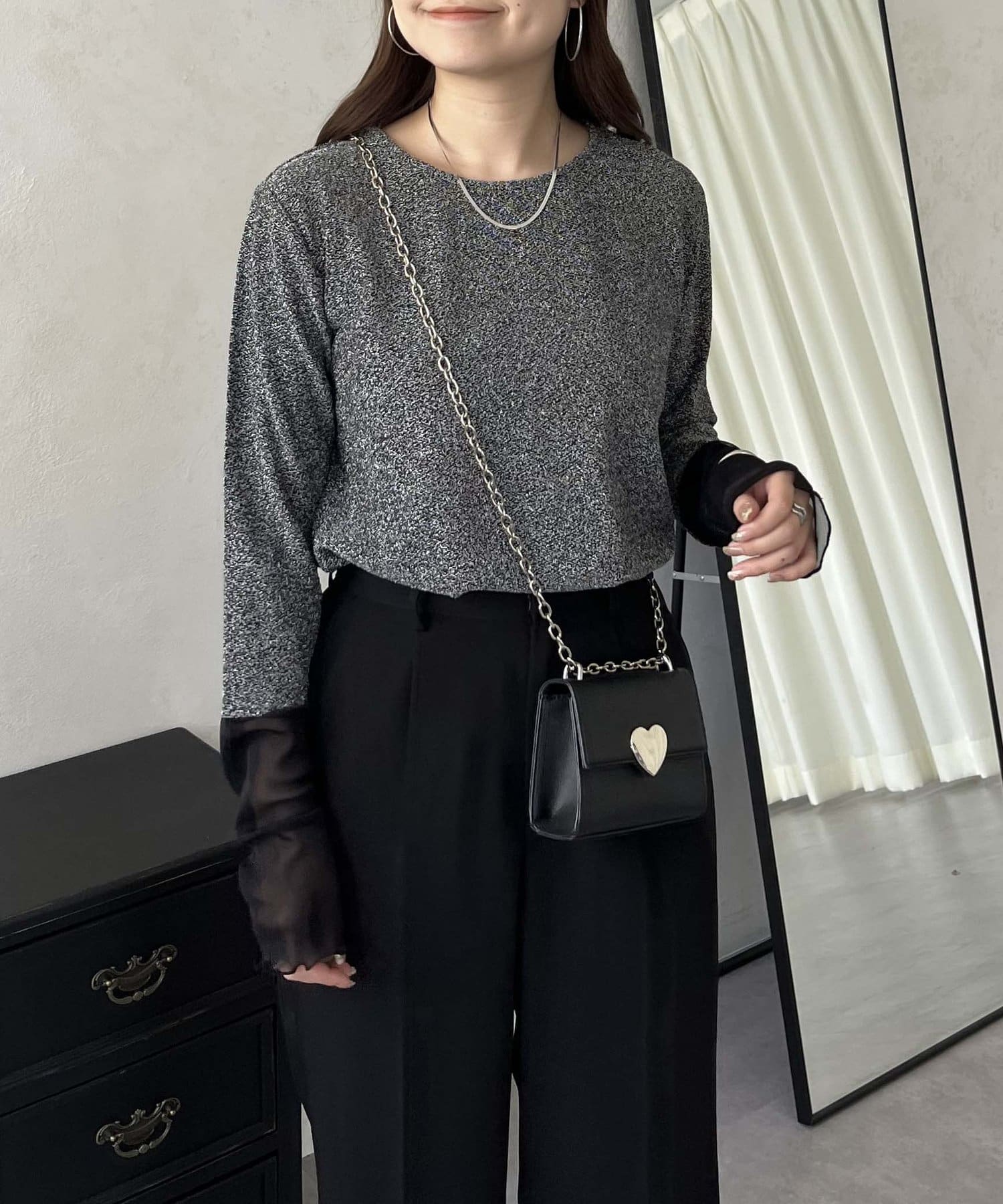 prose verse(プロズヴェール) 袖シアーボートネックラメトップス