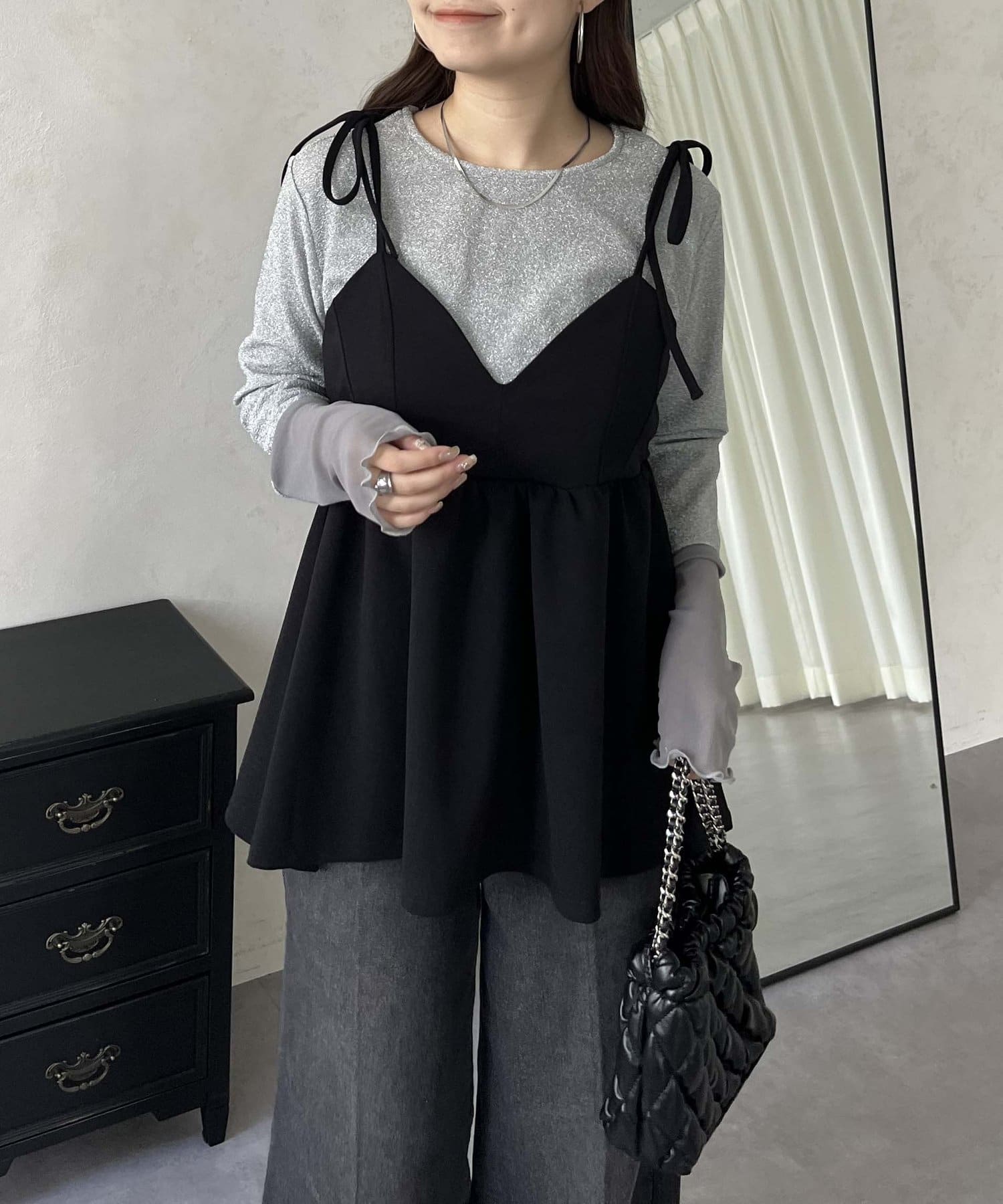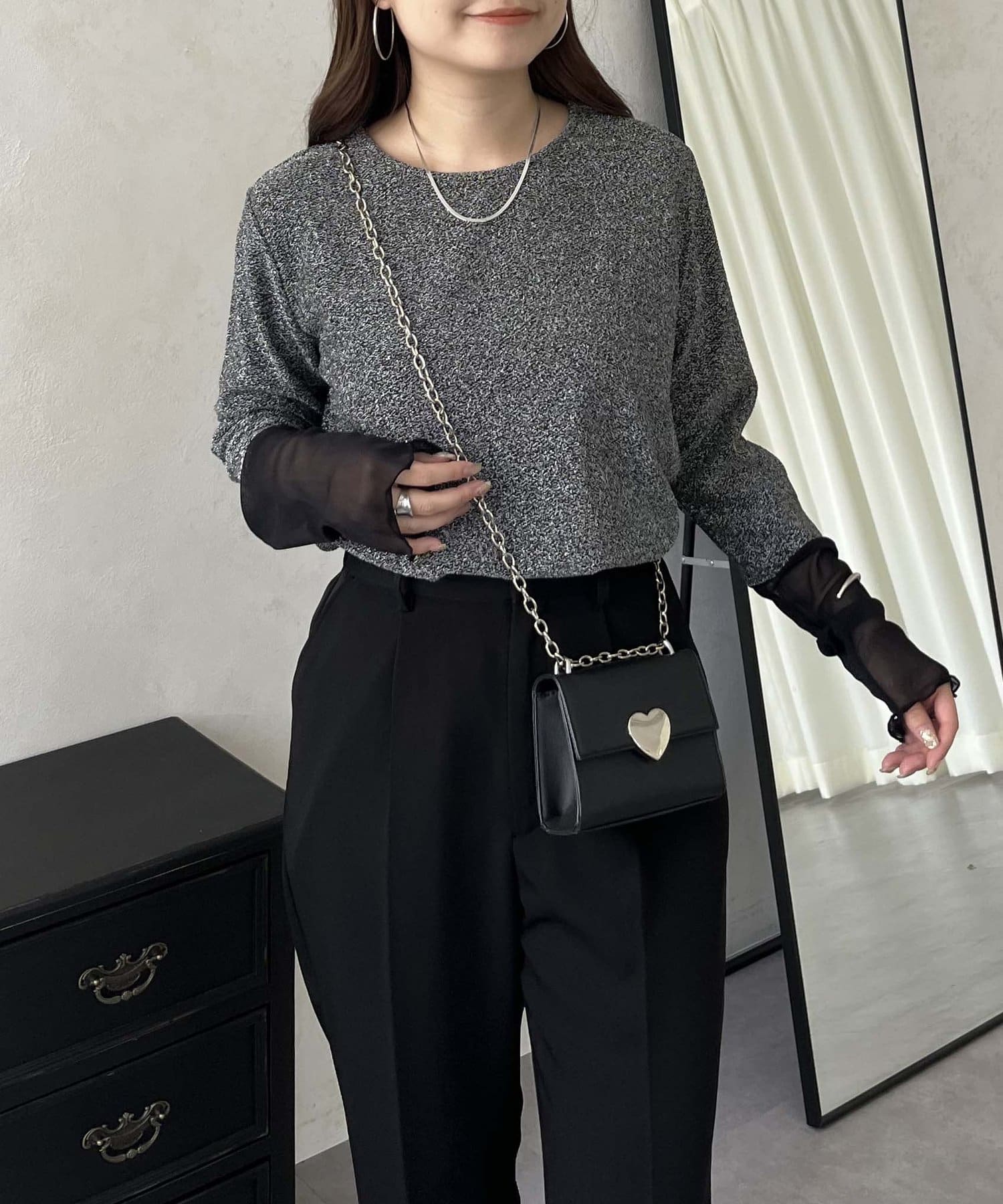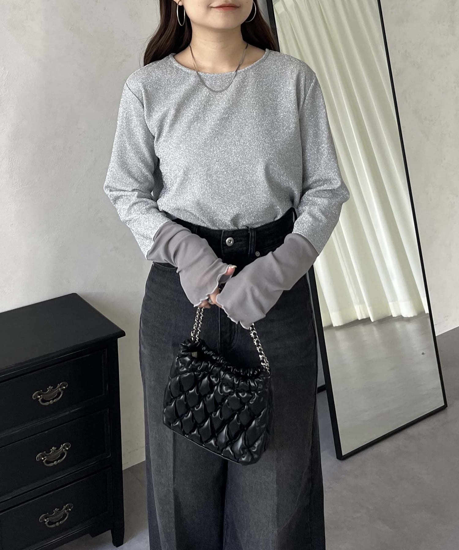 ラメ/シアー/インナー/大人カジュアル/きれいめカジュアル