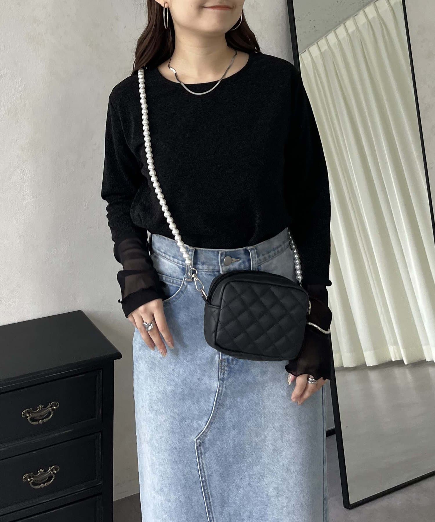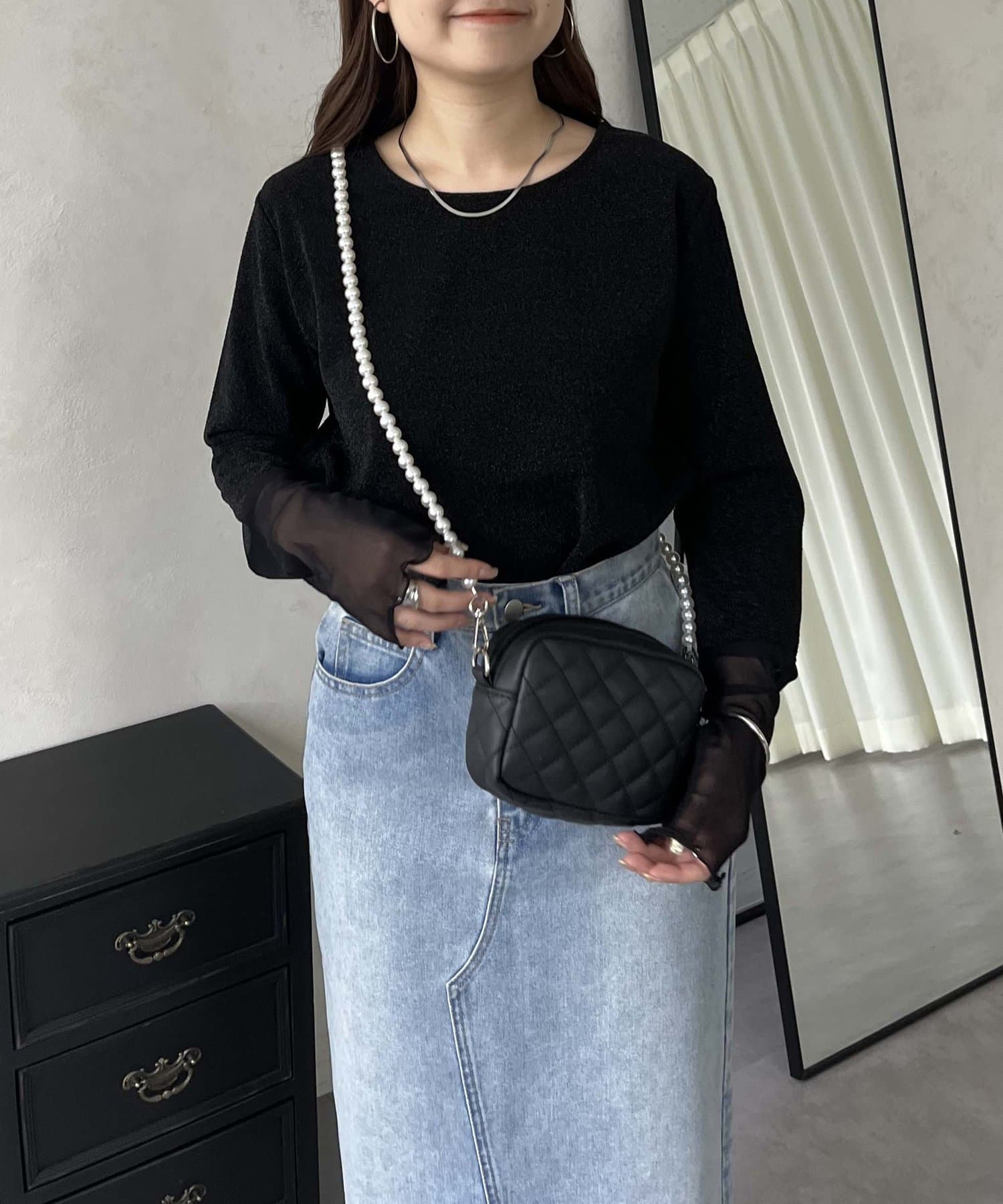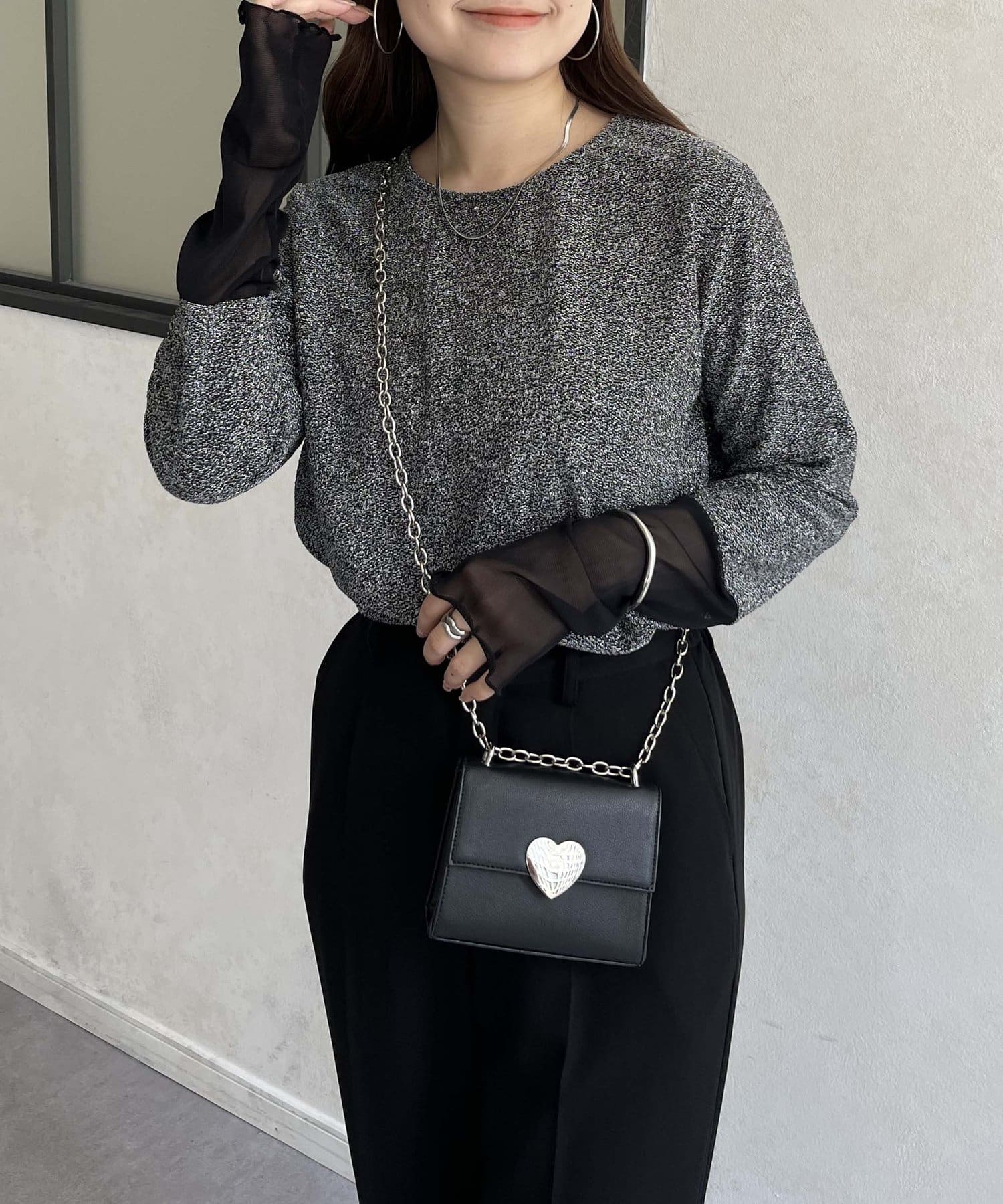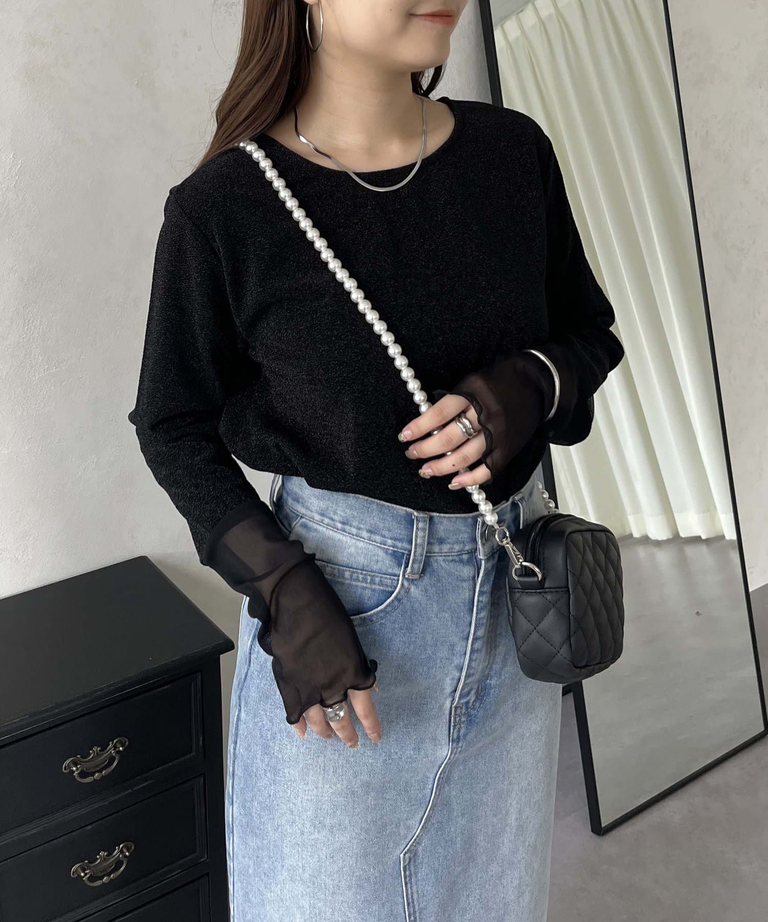 • prose verse(プロズヴェール) 袖シアーボートネックラメトップス
