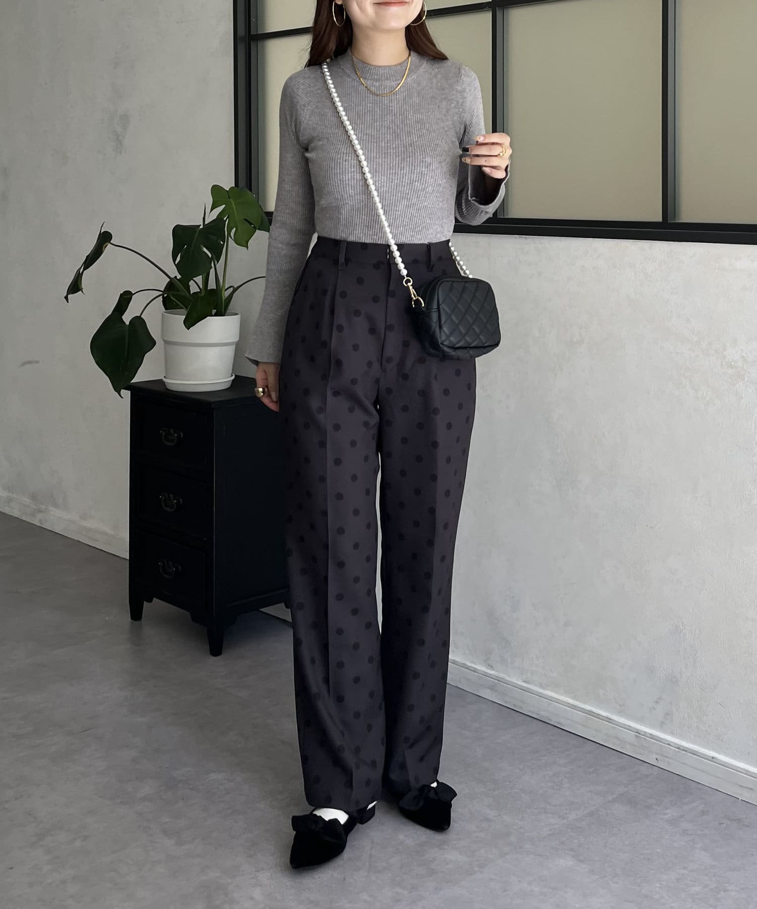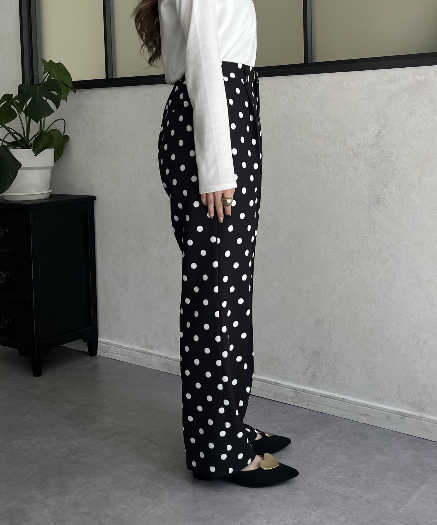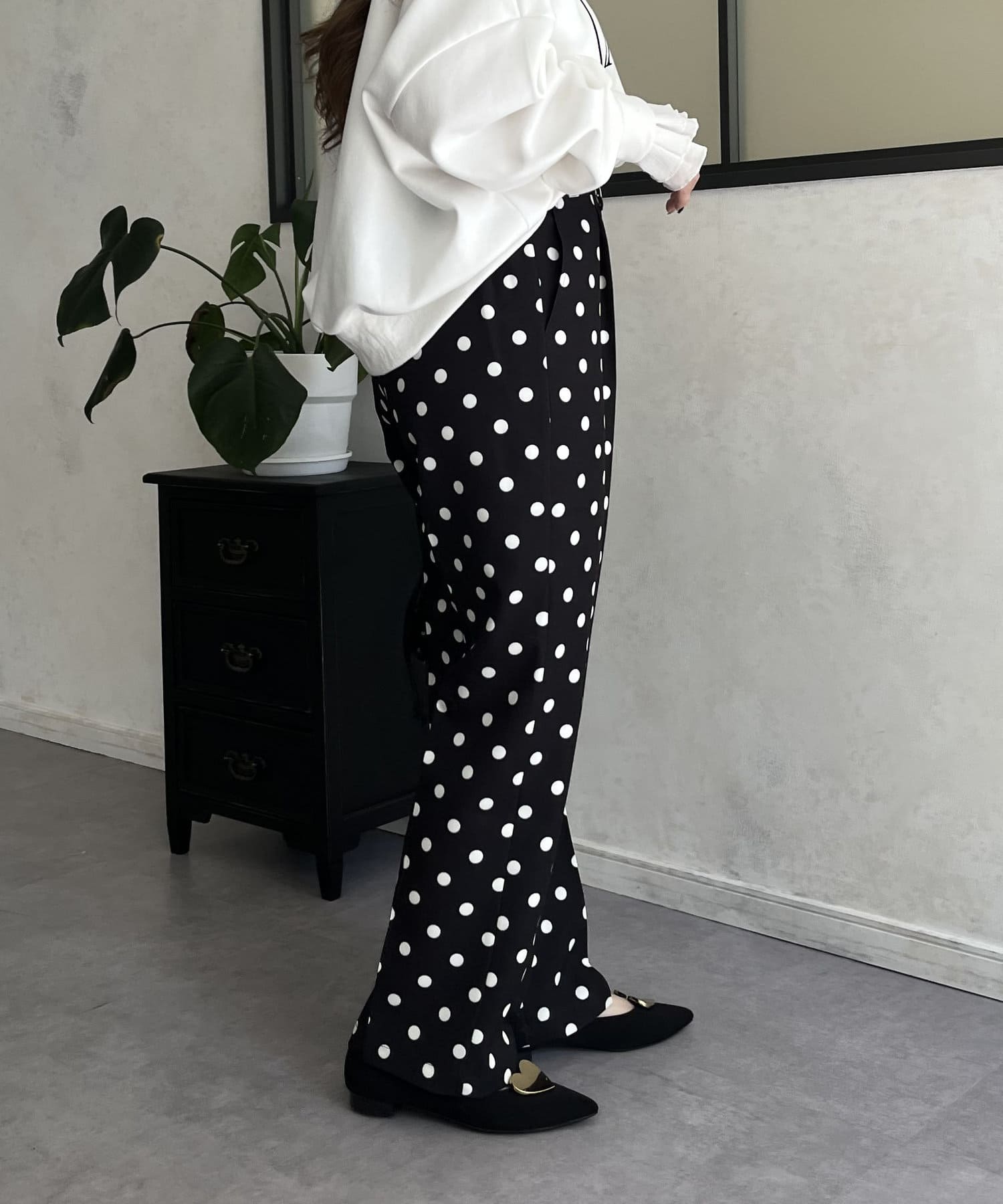 タックパンツ/スラックス/ドット/フェミニン/大人カジュアル