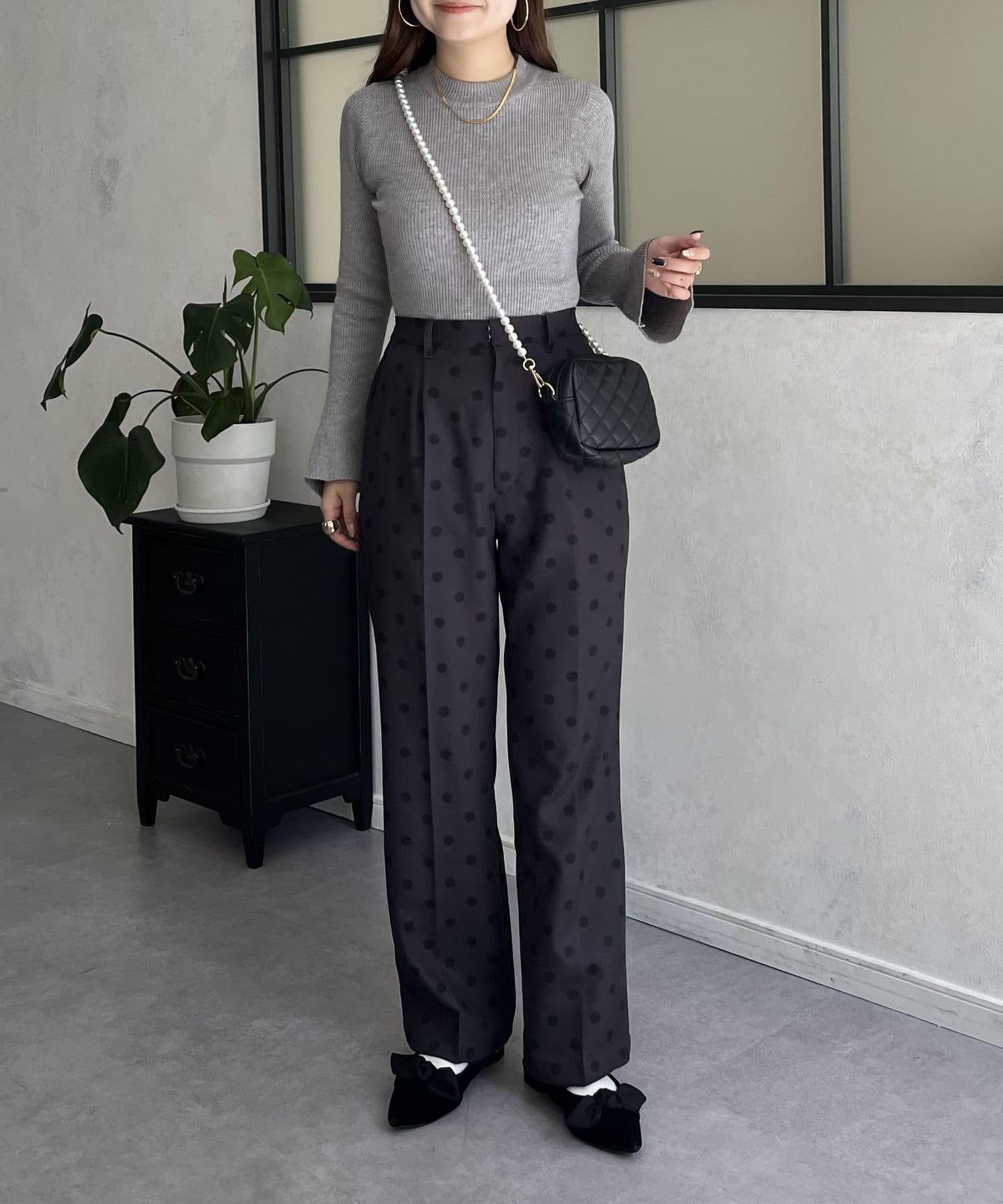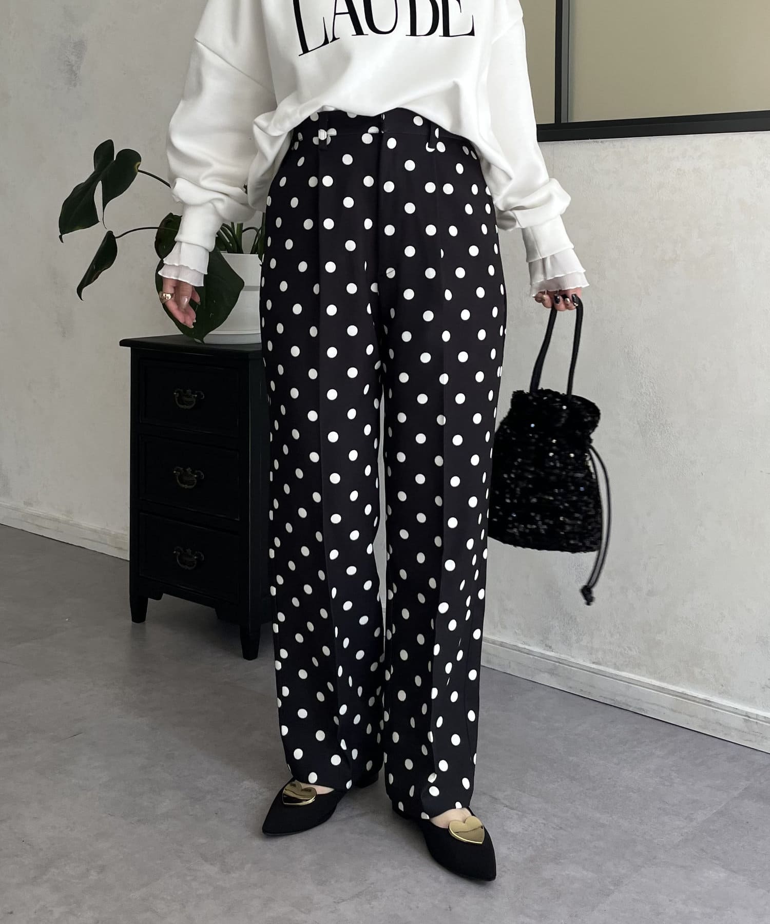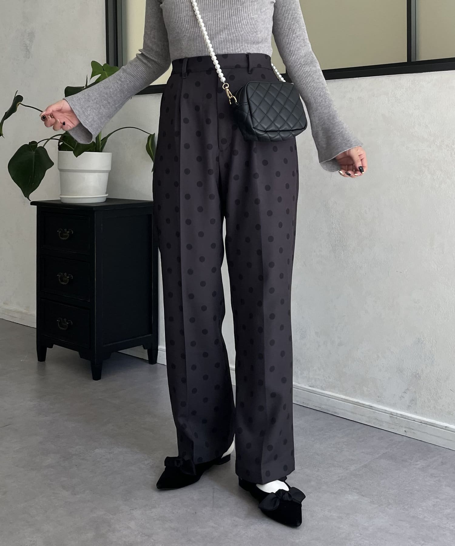 タックパンツ/スラックス/ドット/フェミニン/大人カジュアル