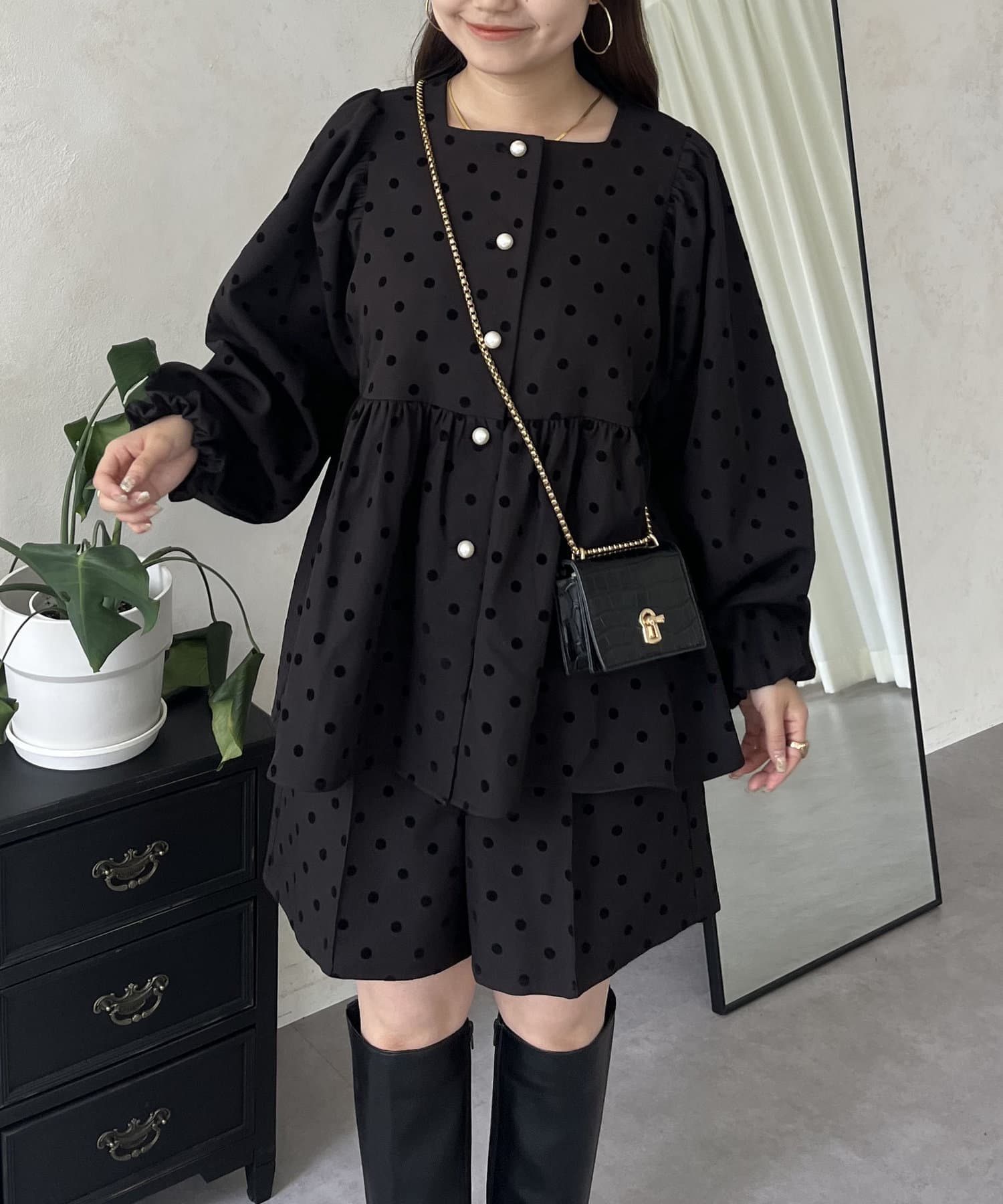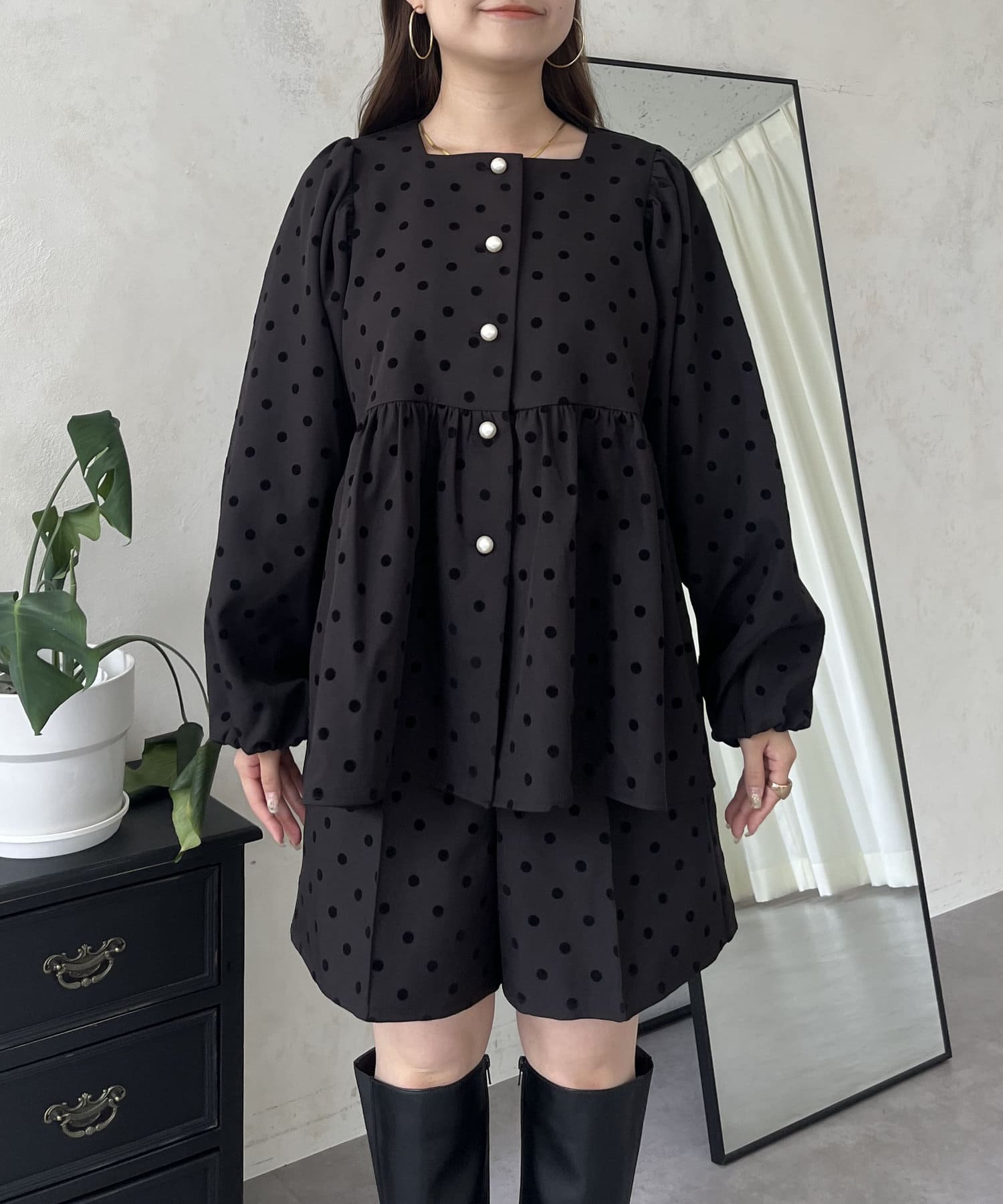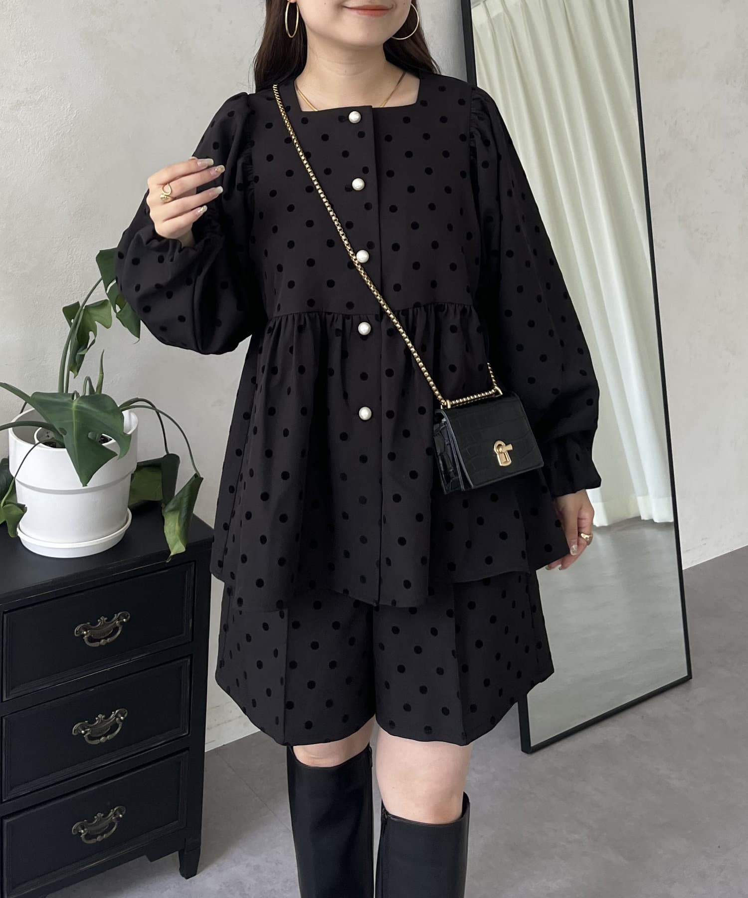 ドット/ペプラム/ブラウス/セレモニー/きれいめ/フェミニン
