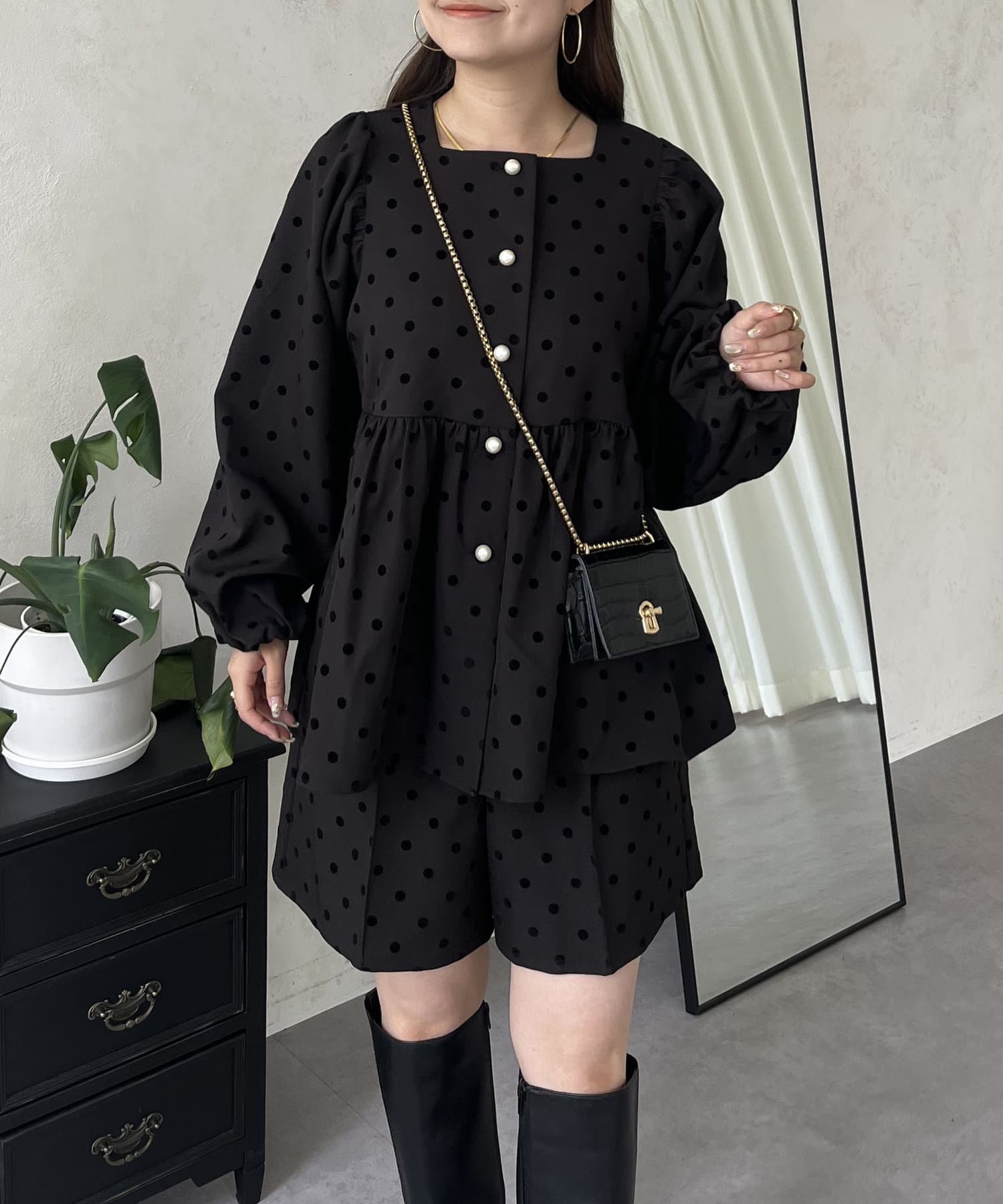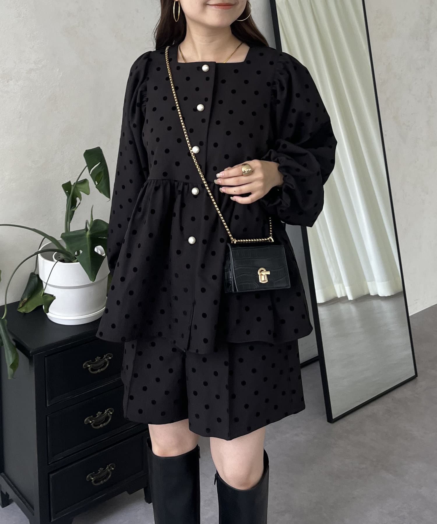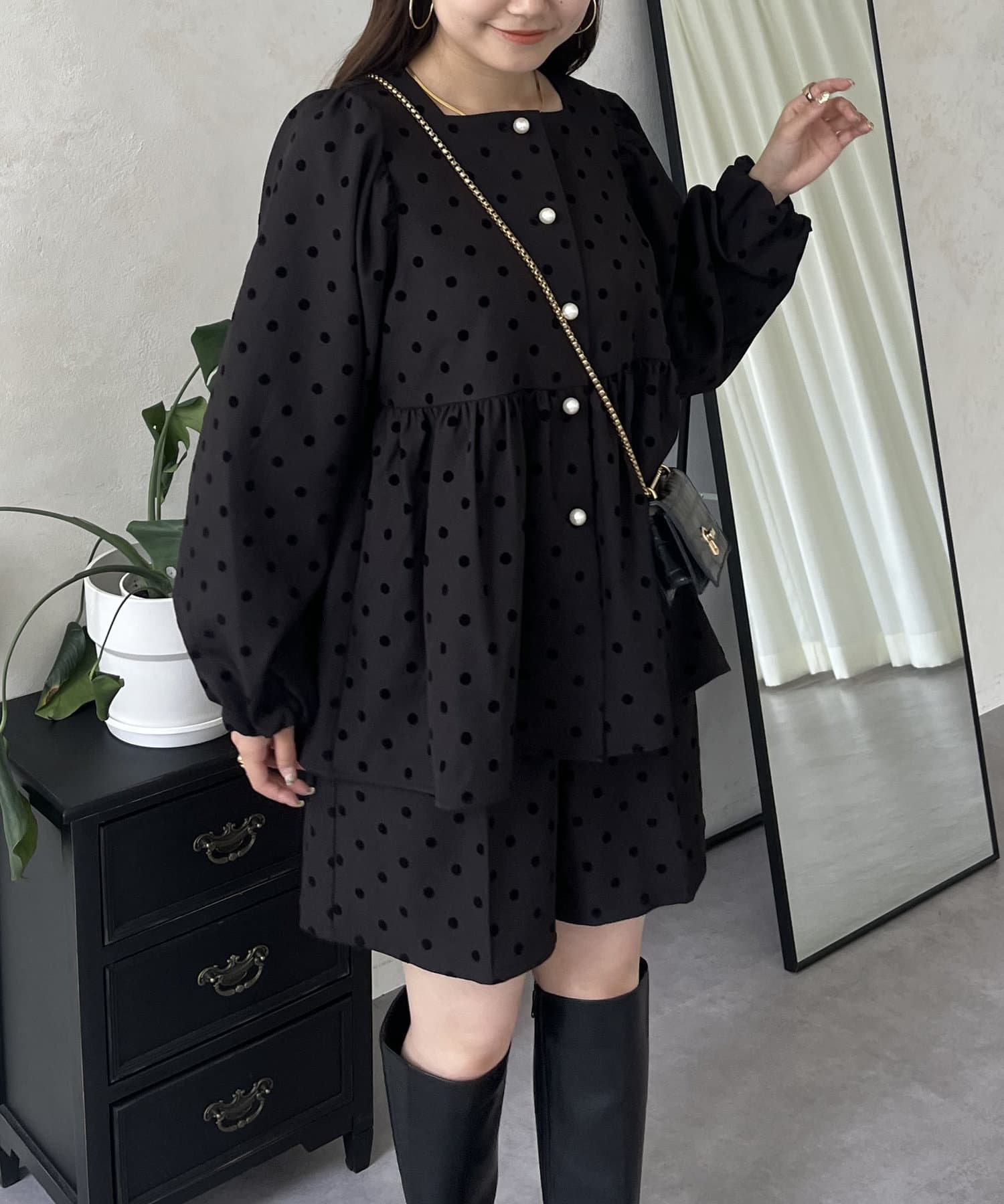 ドット/ペプラム/ブラウス/セレモニー/きれいめ/フェミニン