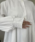 お腹が隠れるのはもちろんのこと、授乳の際にボタンも外しやすいし、インナーが透けにくいし、腕を捲りやすいし、洗濯してもシワになりにくいしでいいことづくめでした。