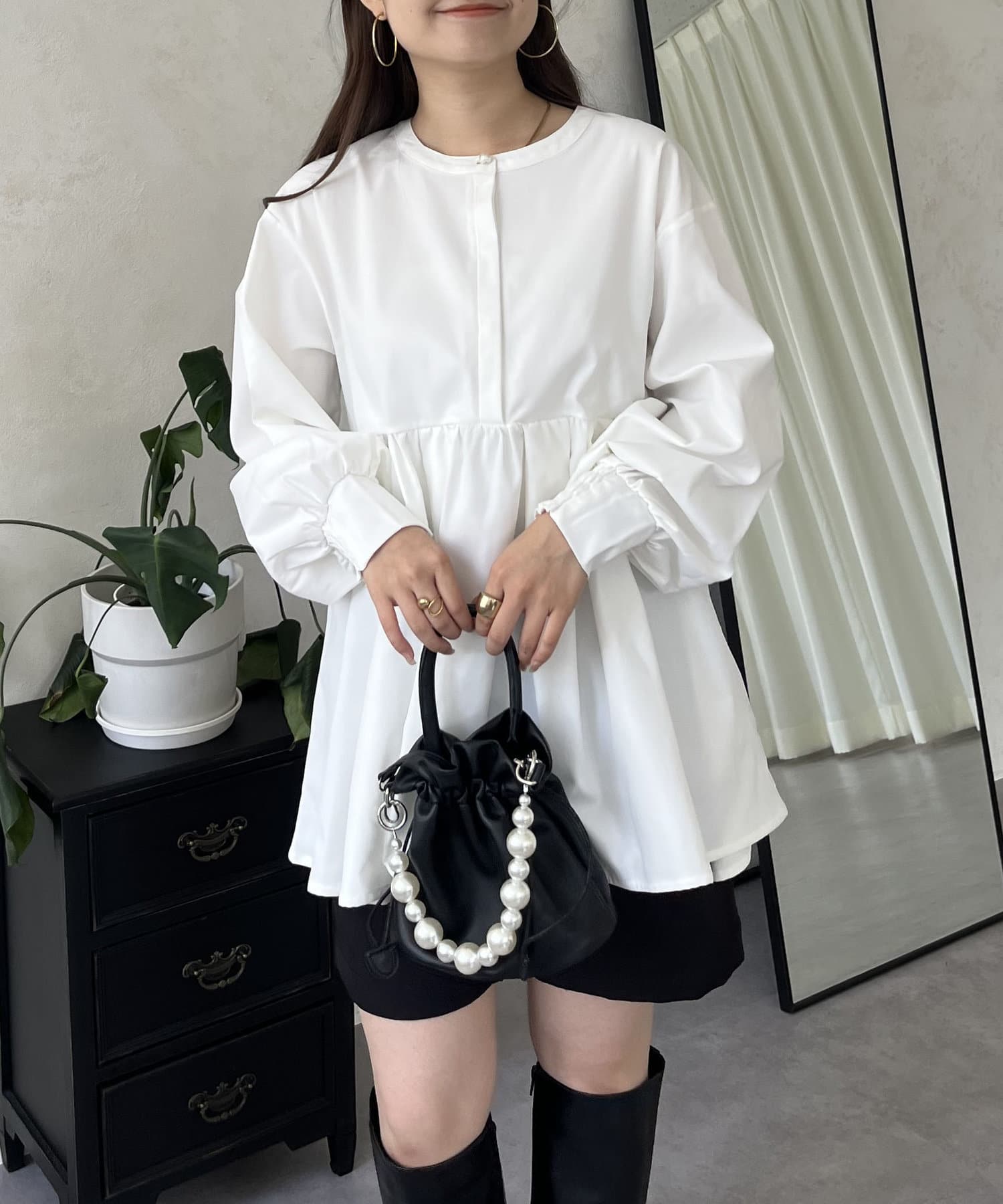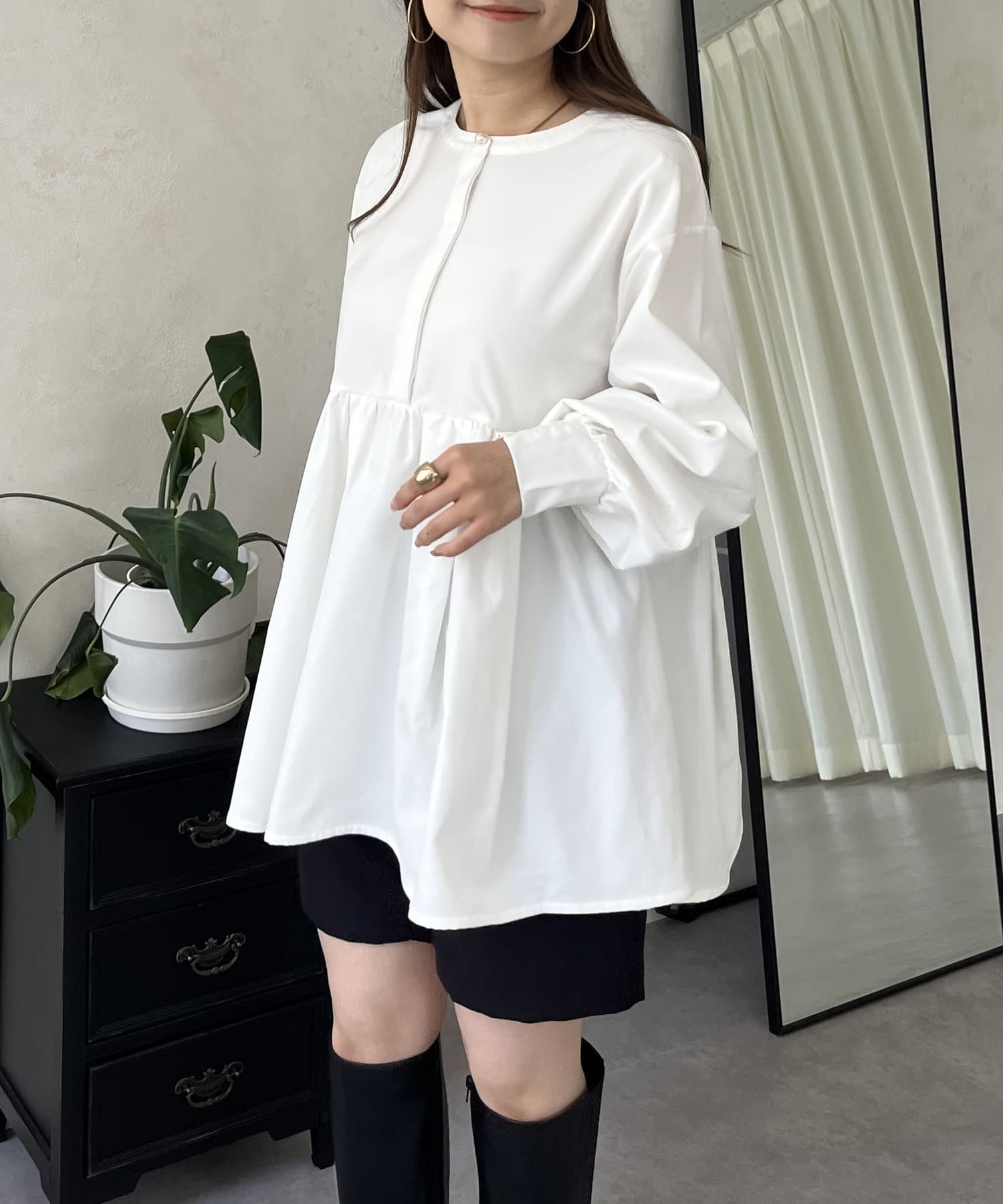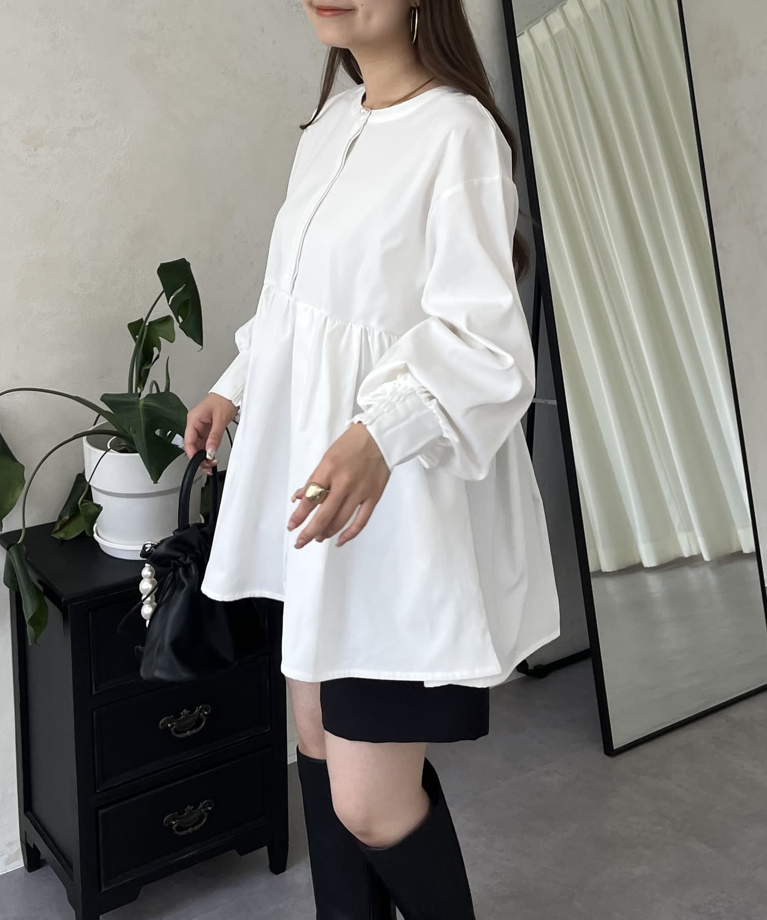 一般的なブラウスより丈が長めなのでお尻も内腿も隠してくれて本当に最高です。