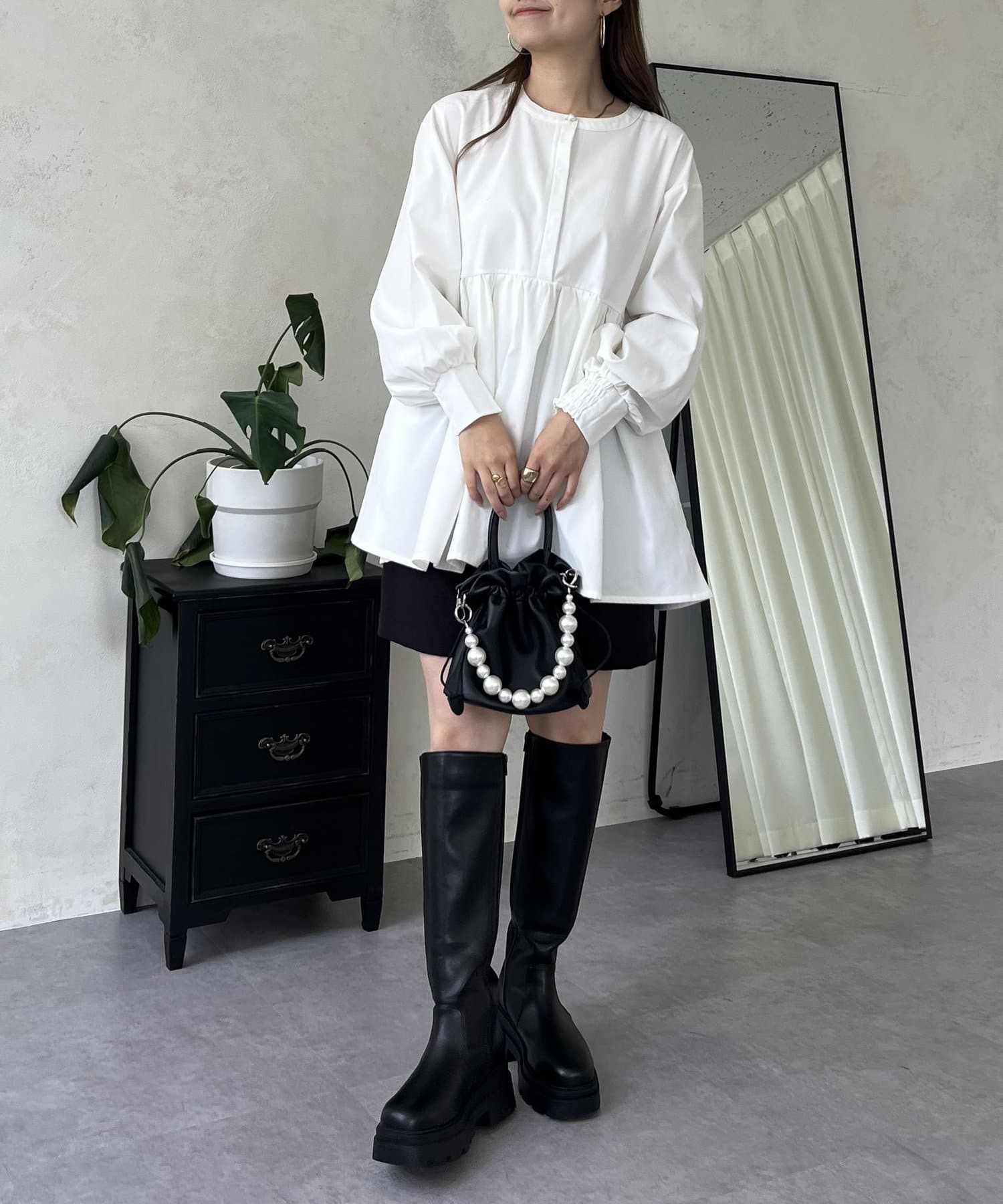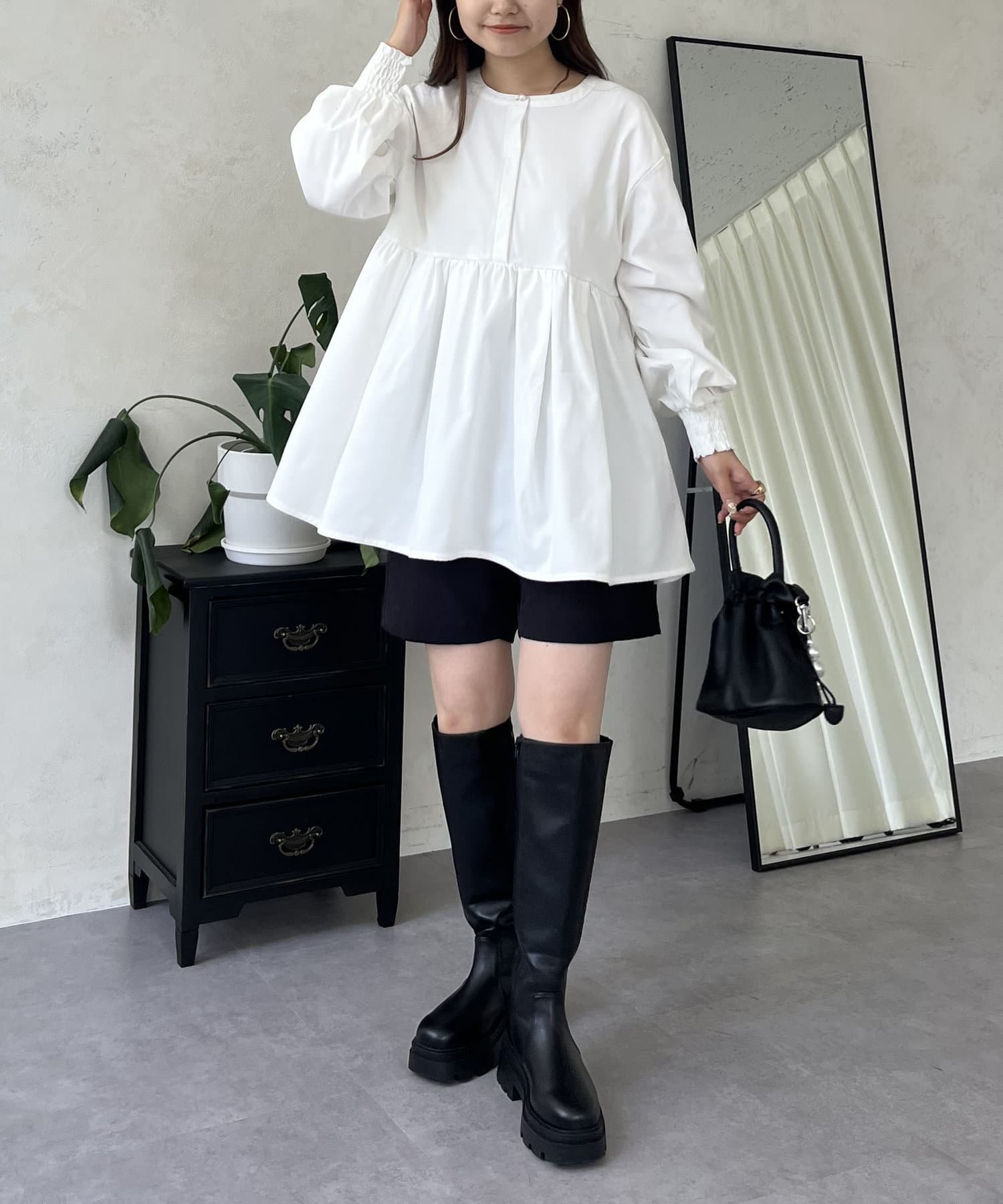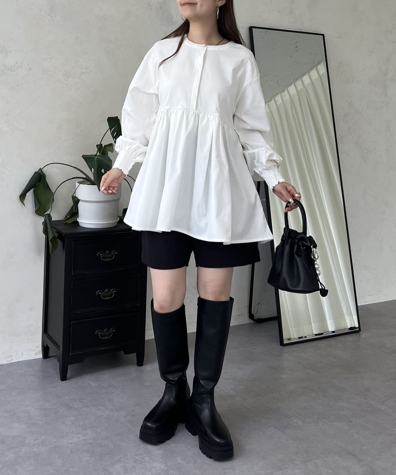 一般的なブラウスより丈が長めなのでお尻も内腿も隠してくれて本当に最高です。