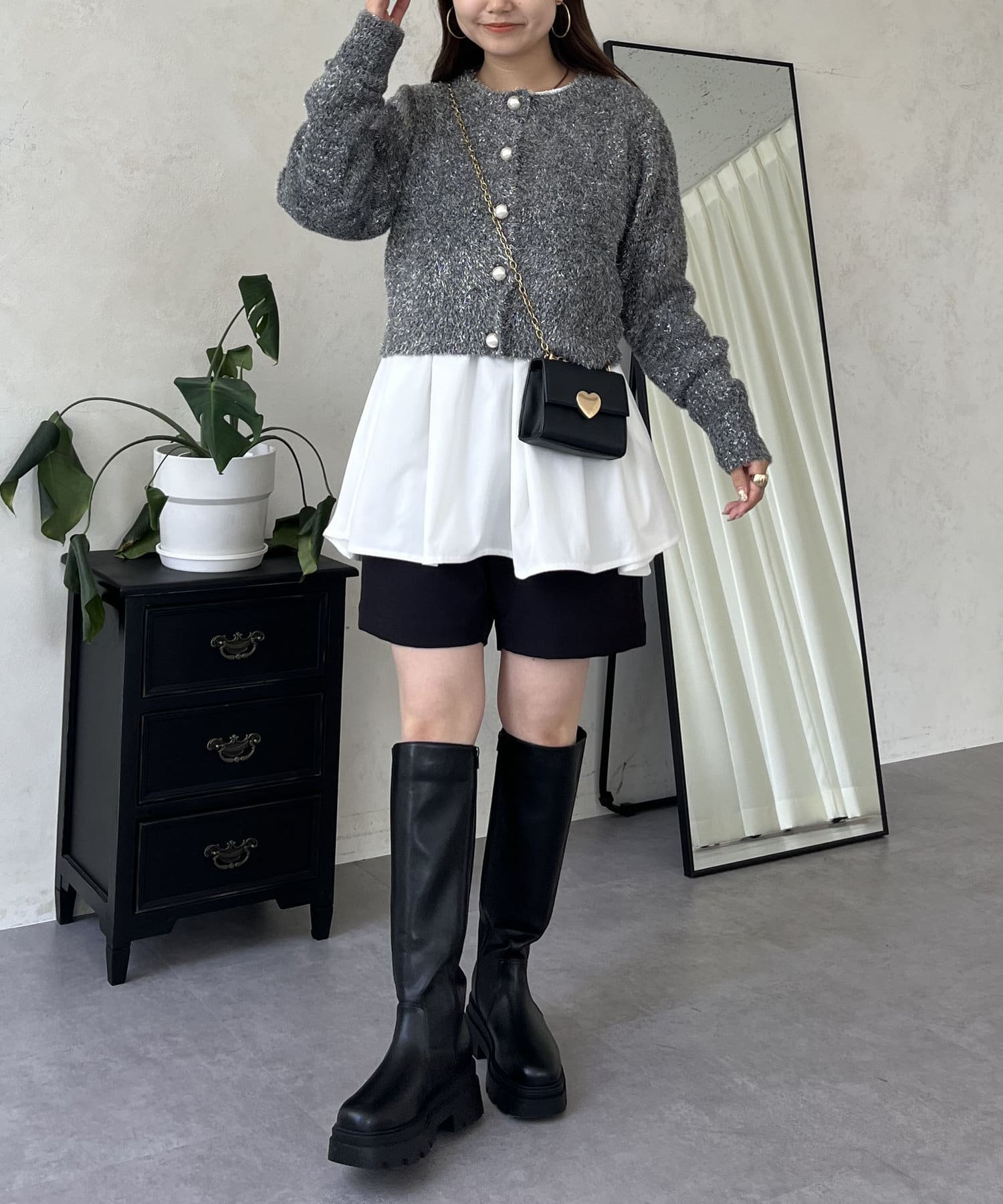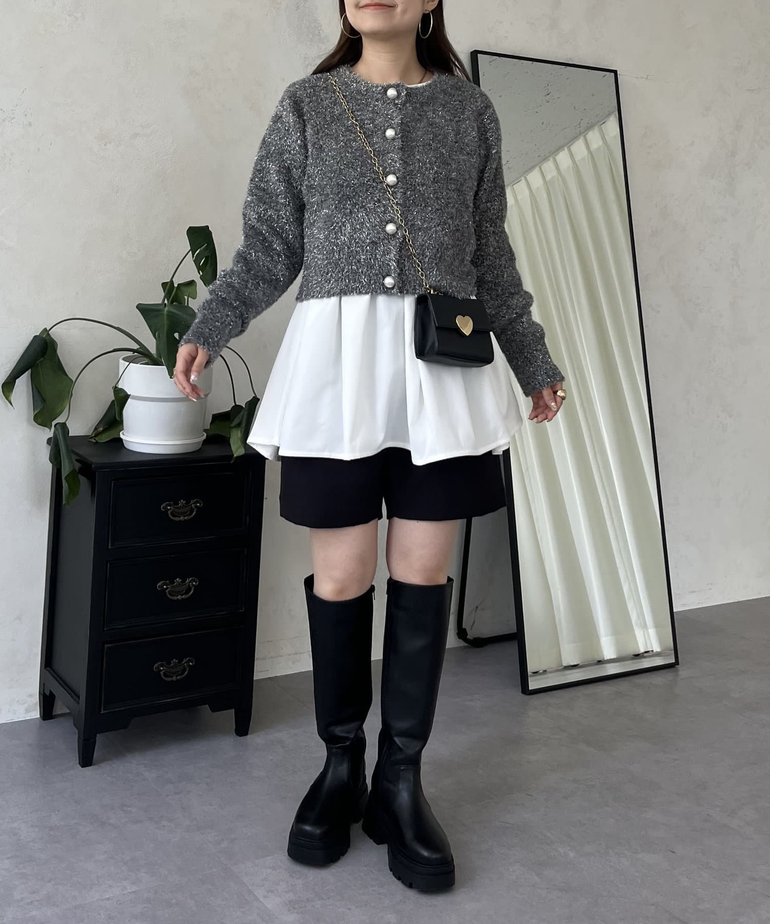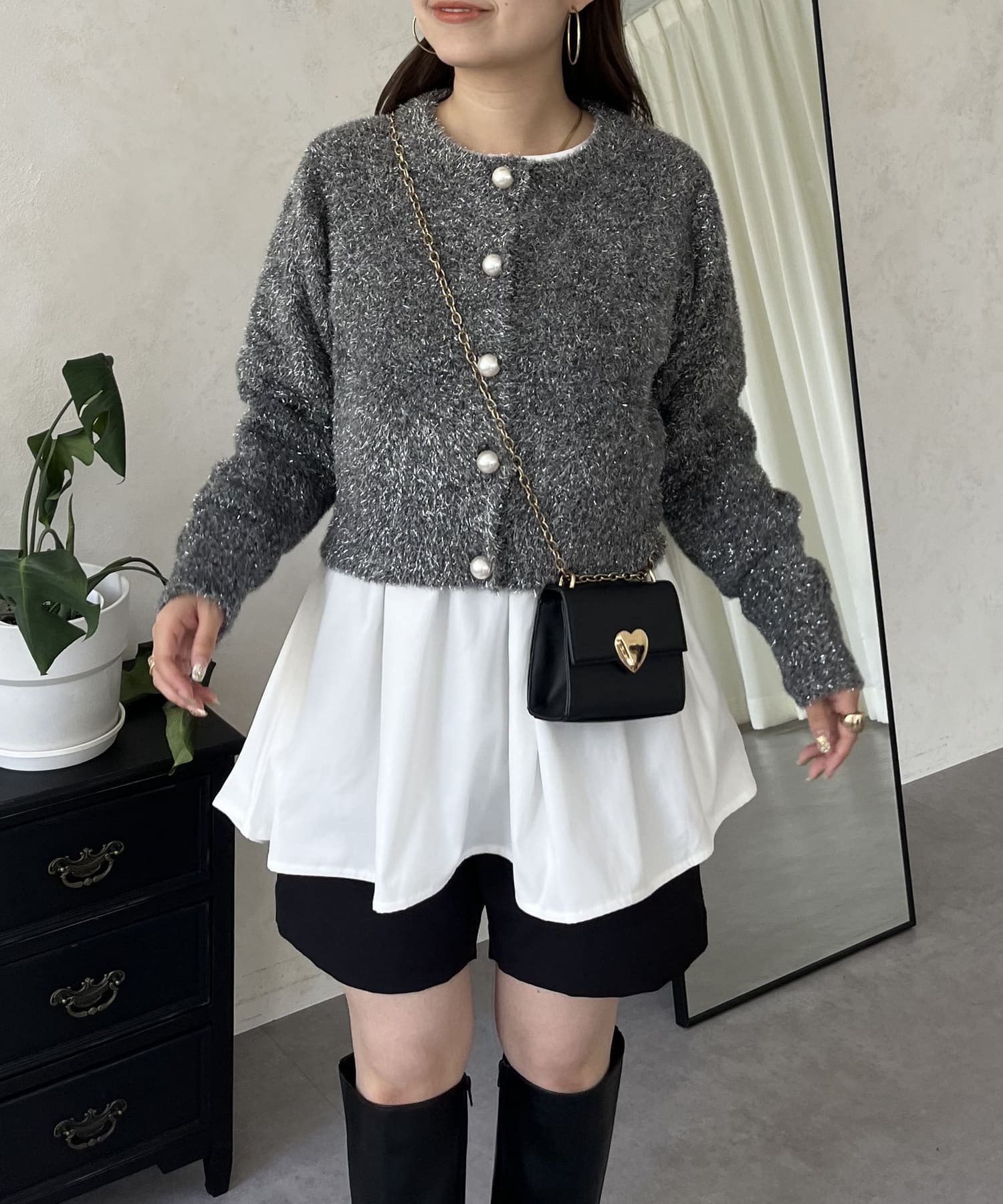 ●1枚で着ても可愛いですがショートカーディガンやニットと重ねることで
