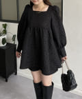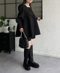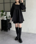 ●丈がやや長めでAラインのフレアシルエットに広がるので体型を拾わずスタイルよく見せてくれます◎