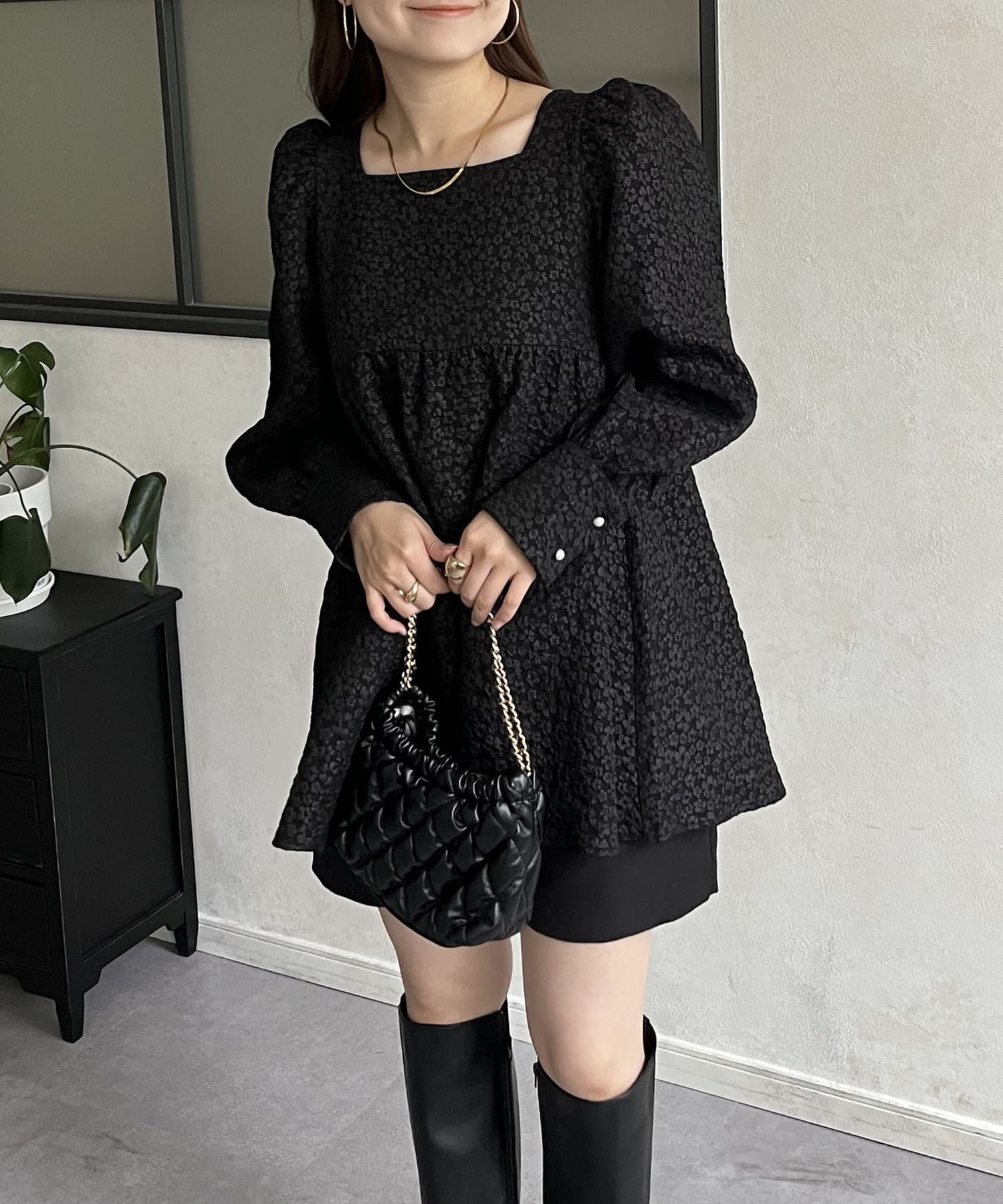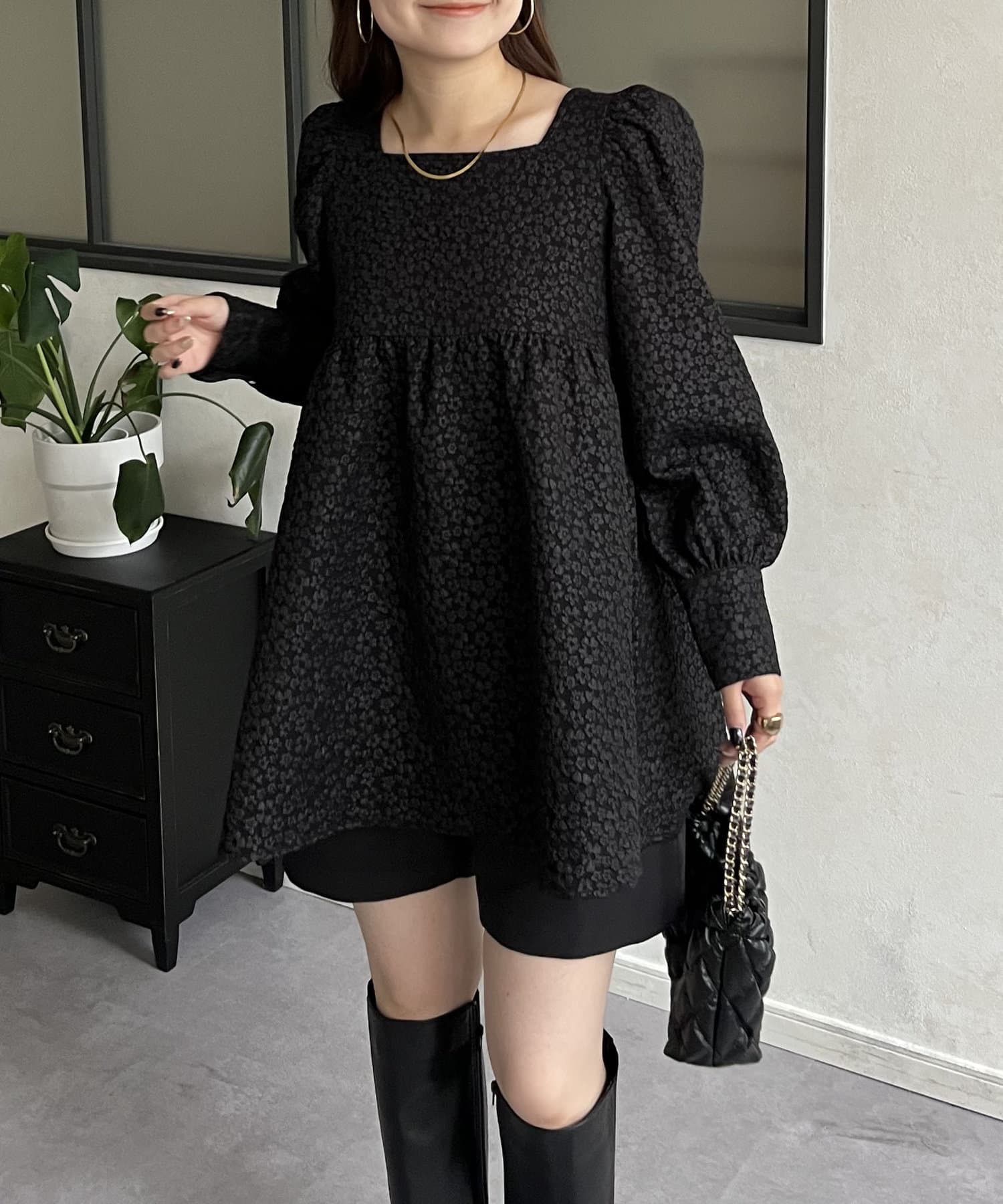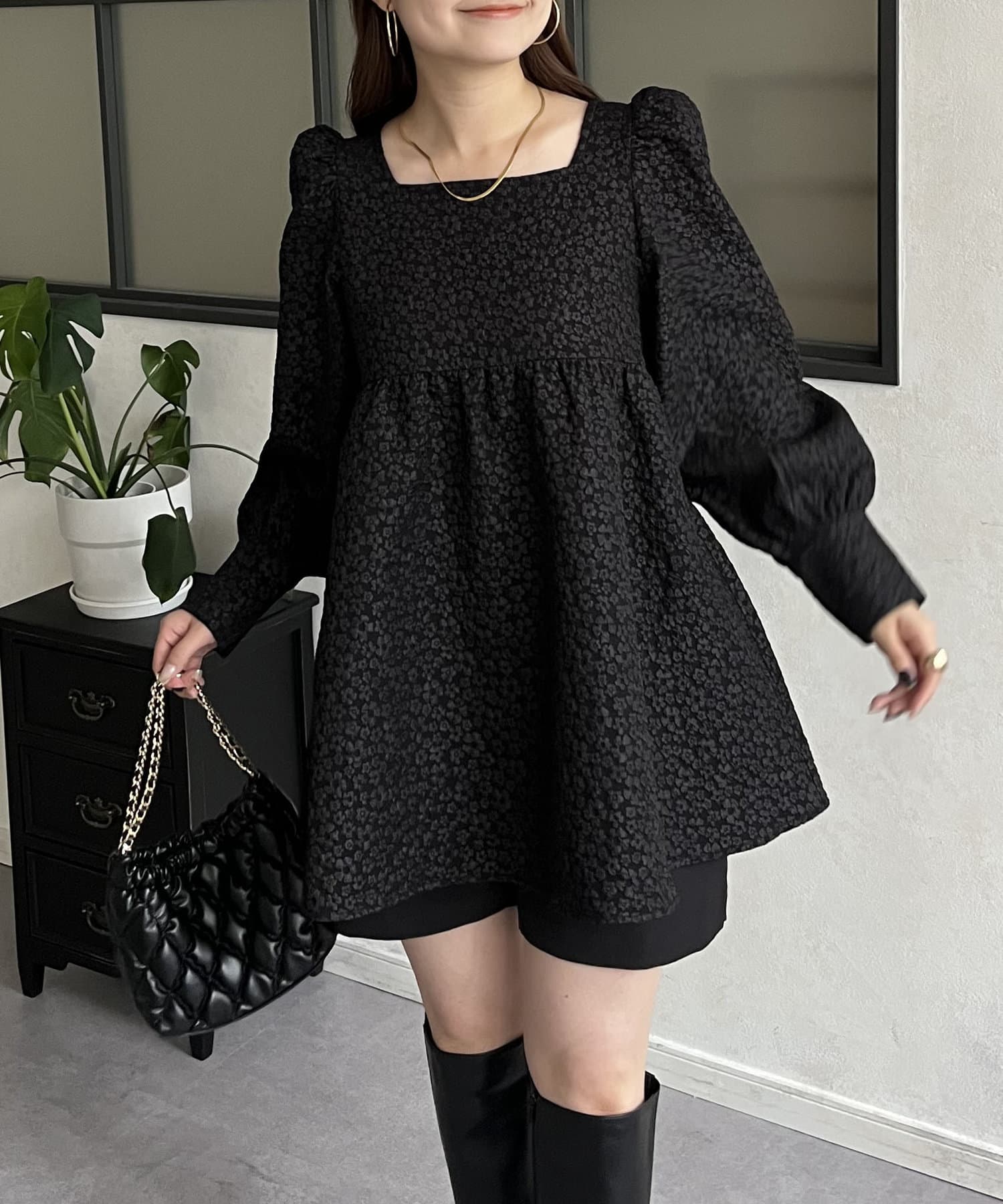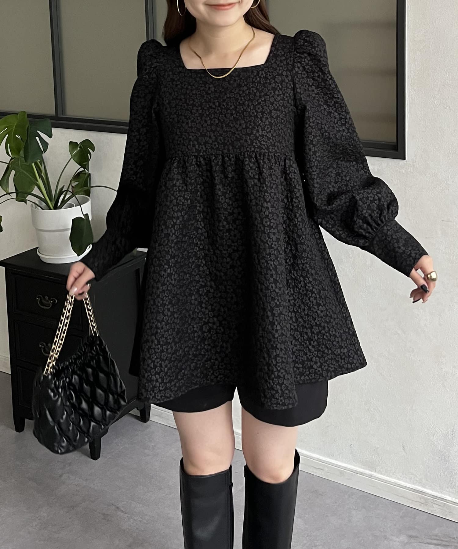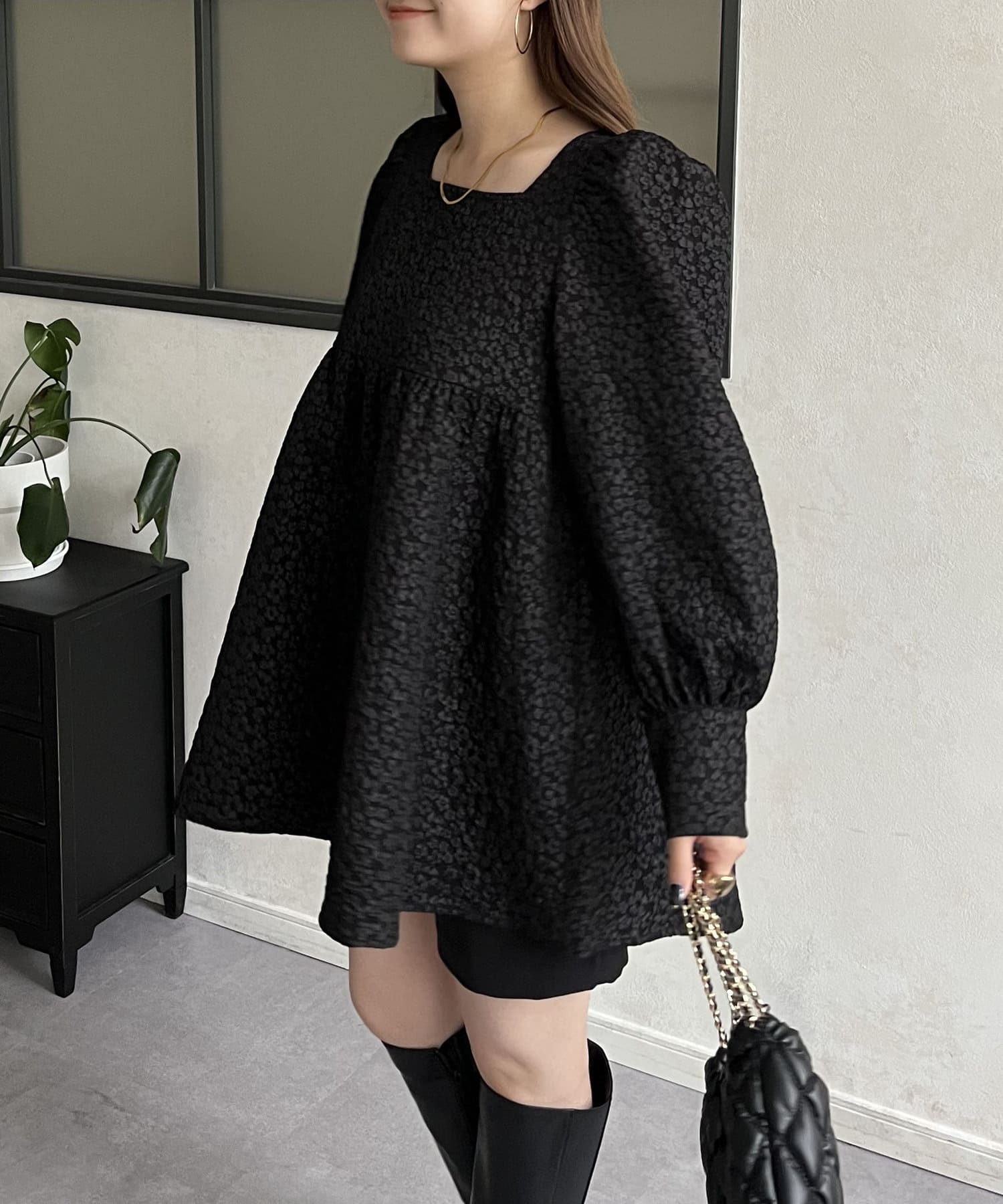 • prose verse(プロズヴェール) パフスリーブフラワージャガードAラインブラウス