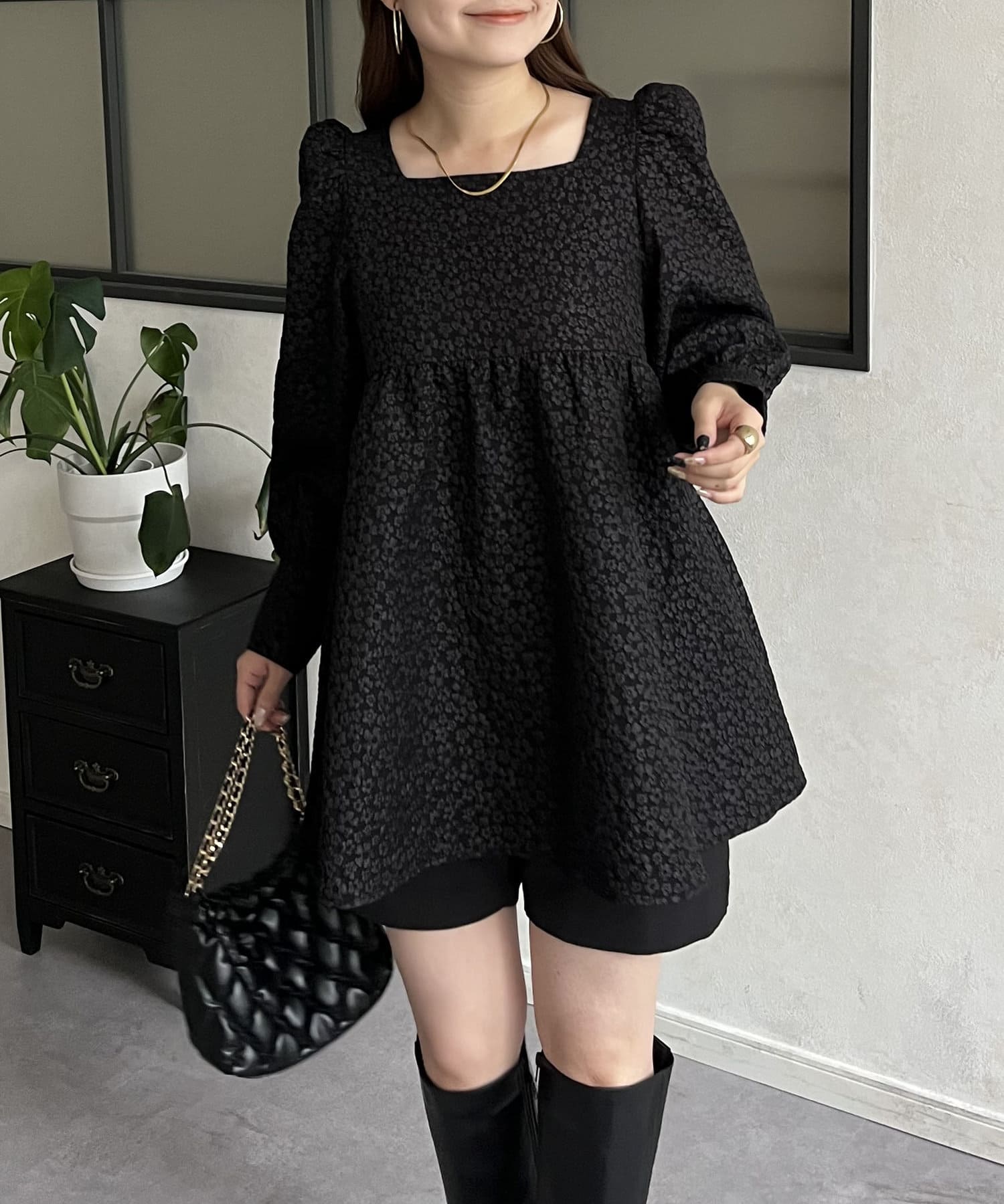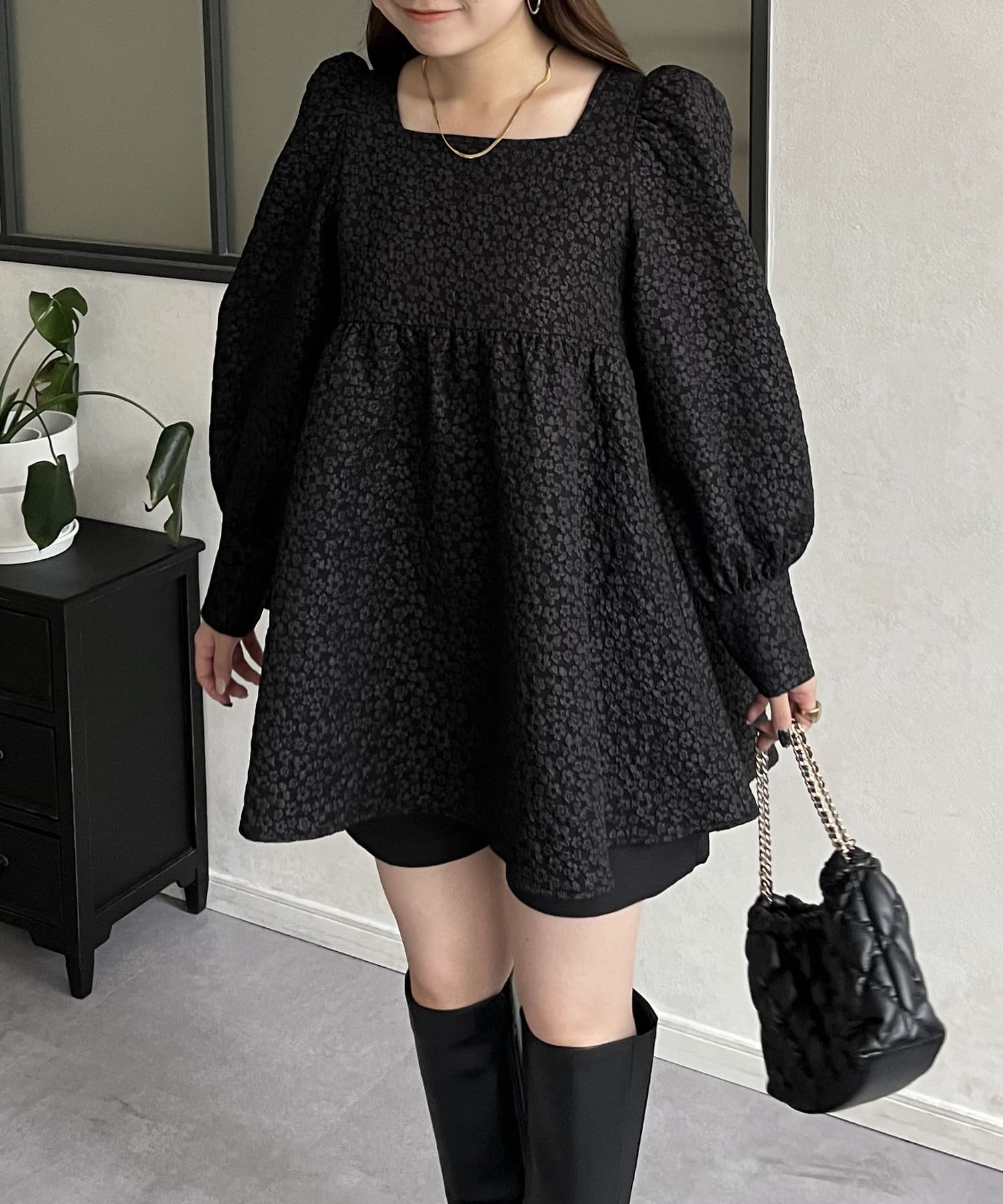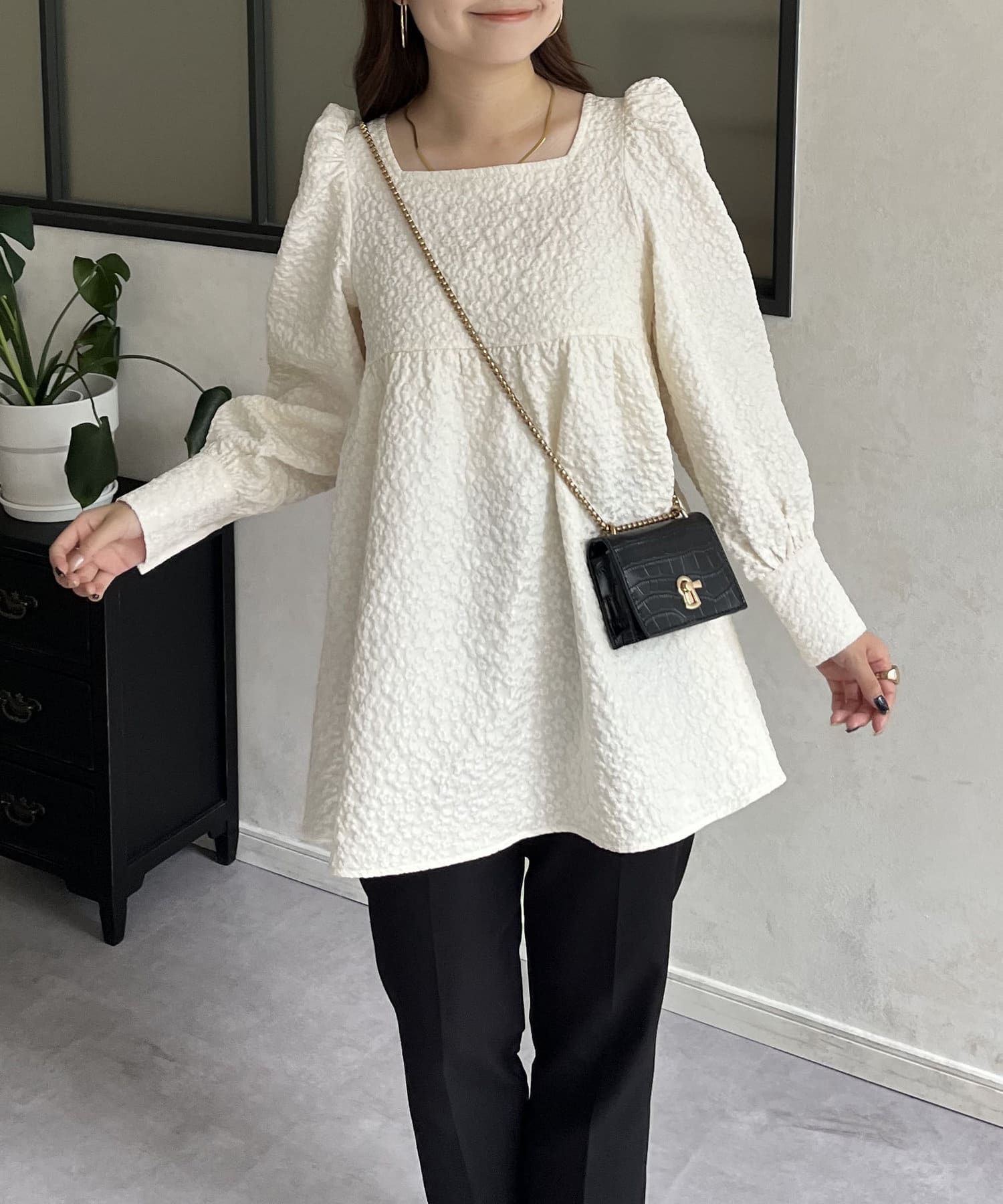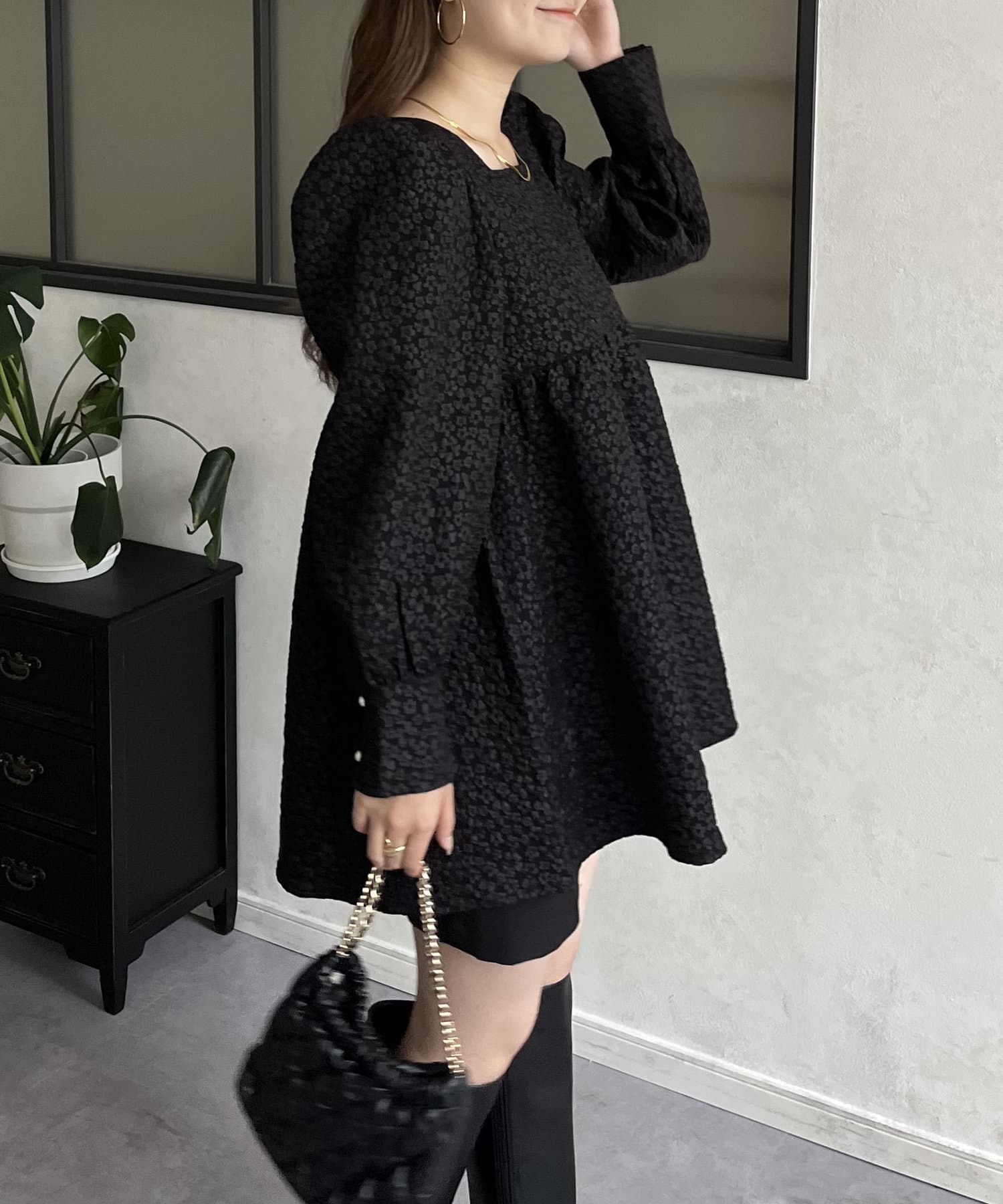 • prose verse(プロズヴェール) パフスリーブフラワージャガードAラインブラウス