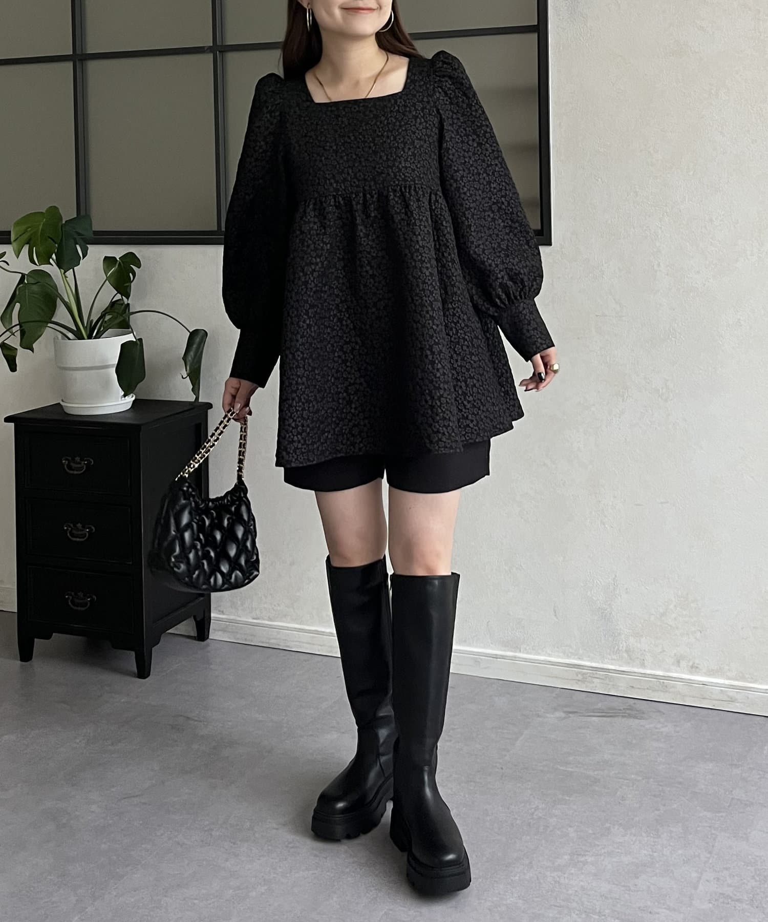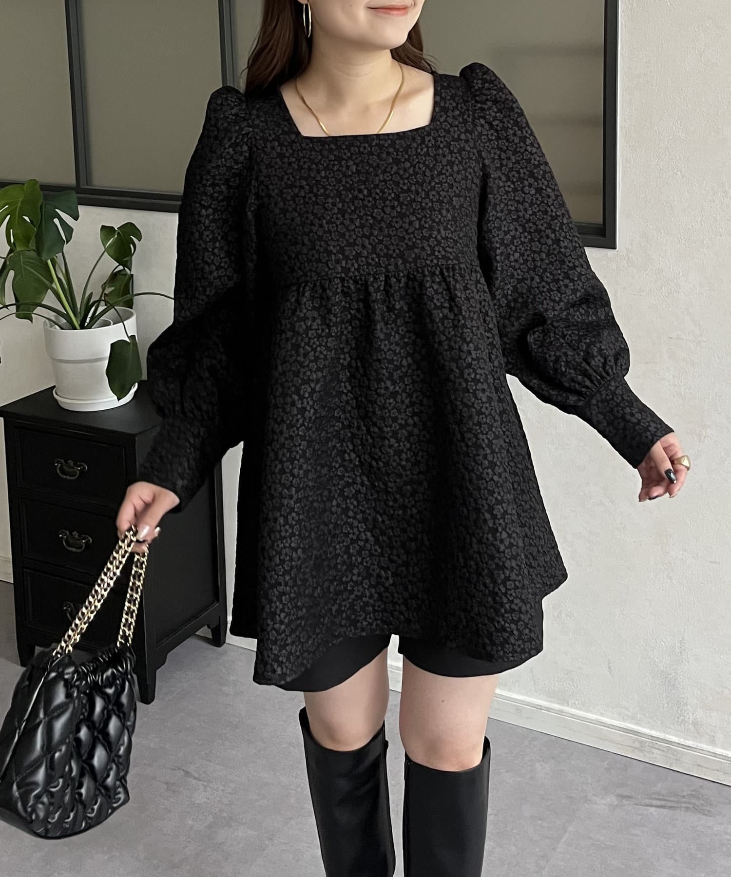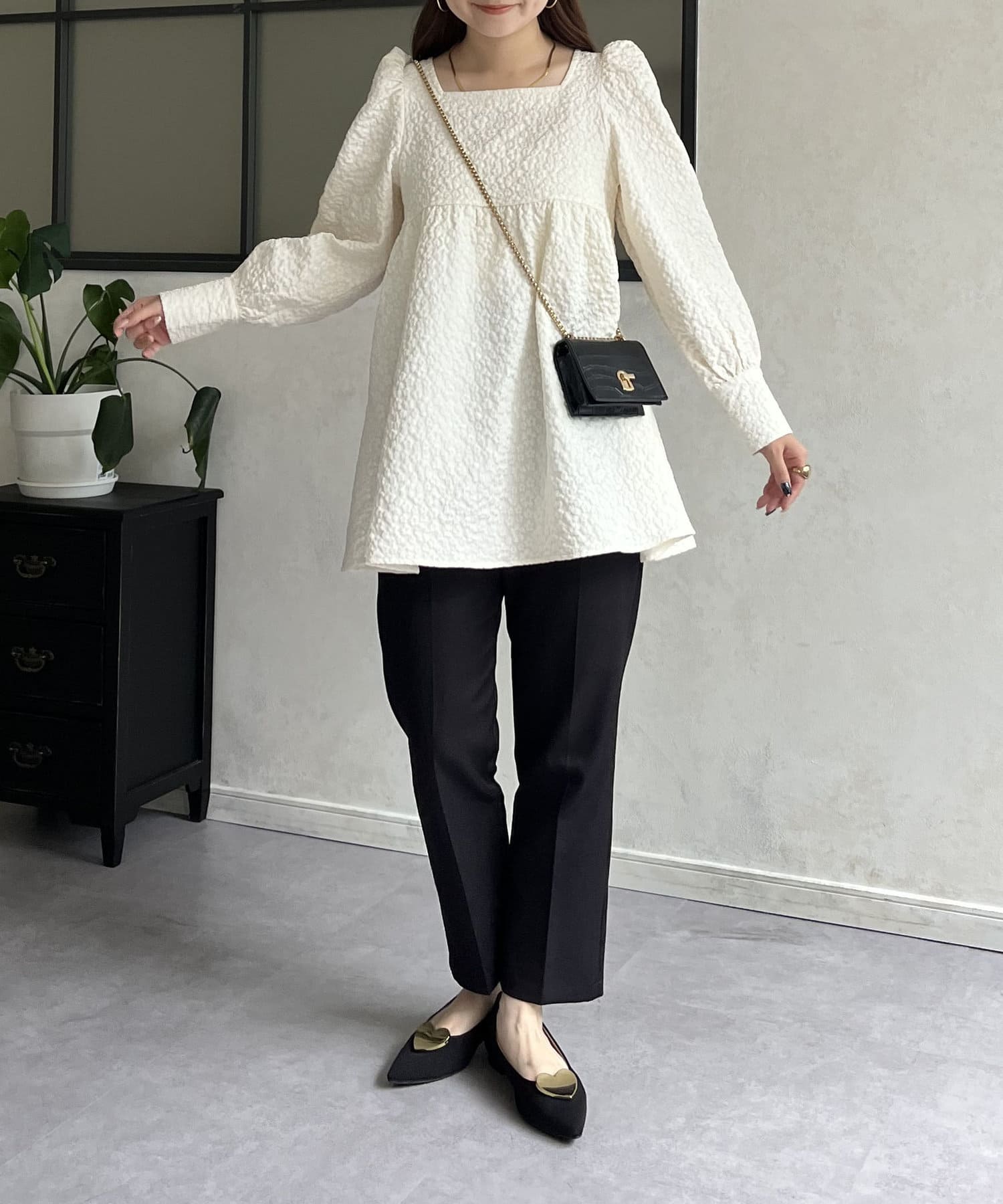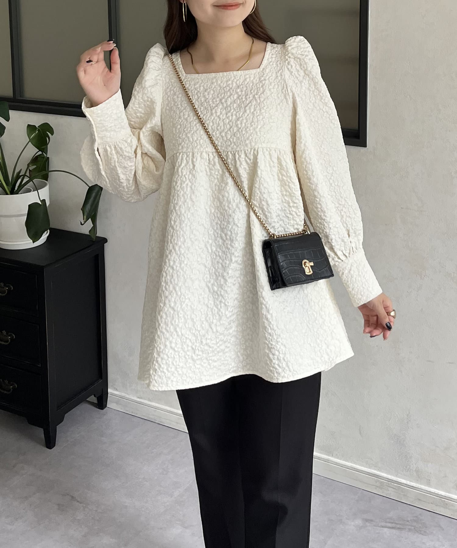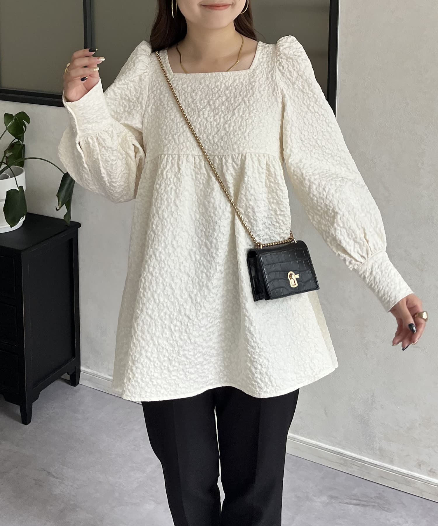 • prose verse(プロズヴェール) パフスリーブフラワージャガードAラインブラウス
