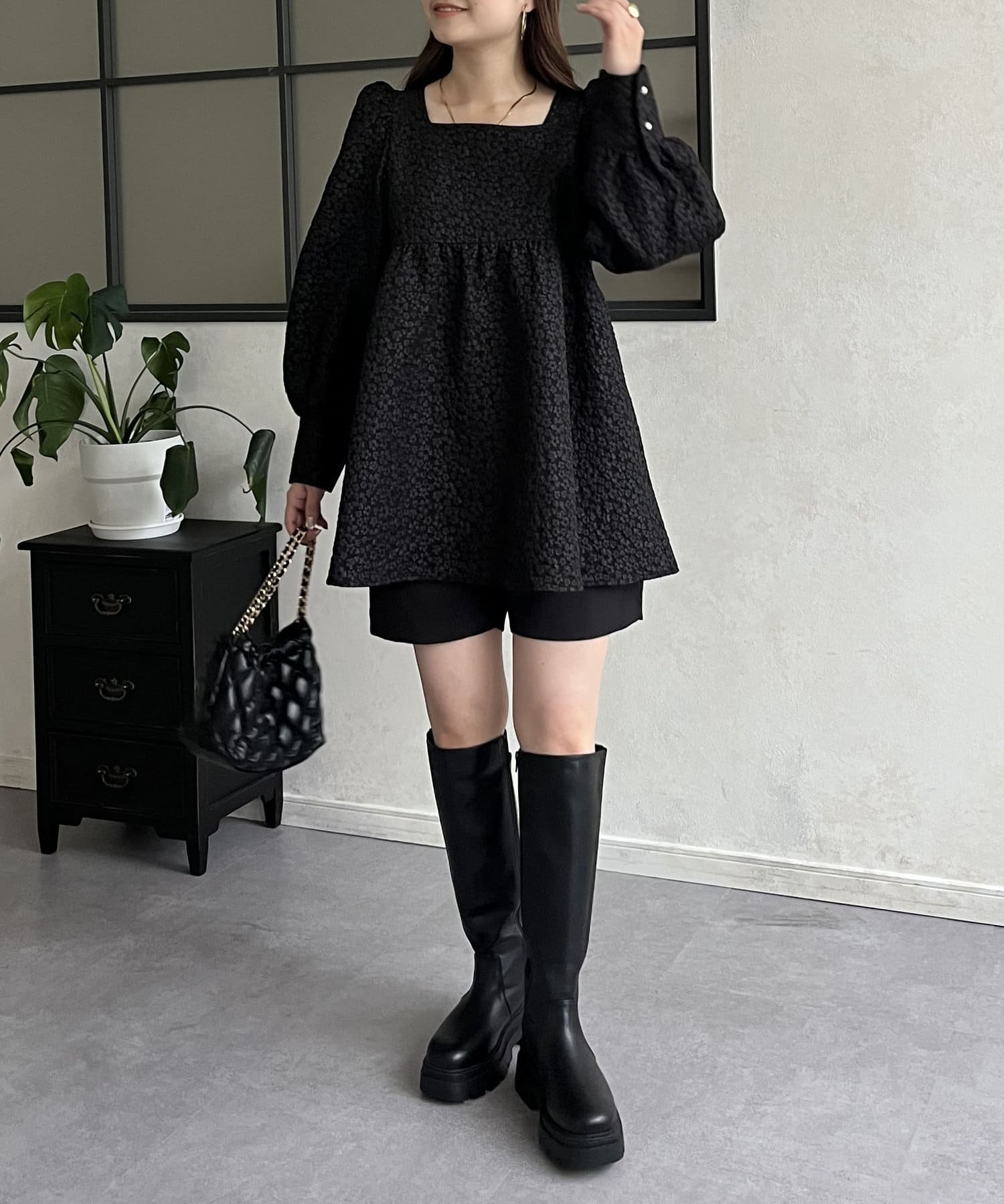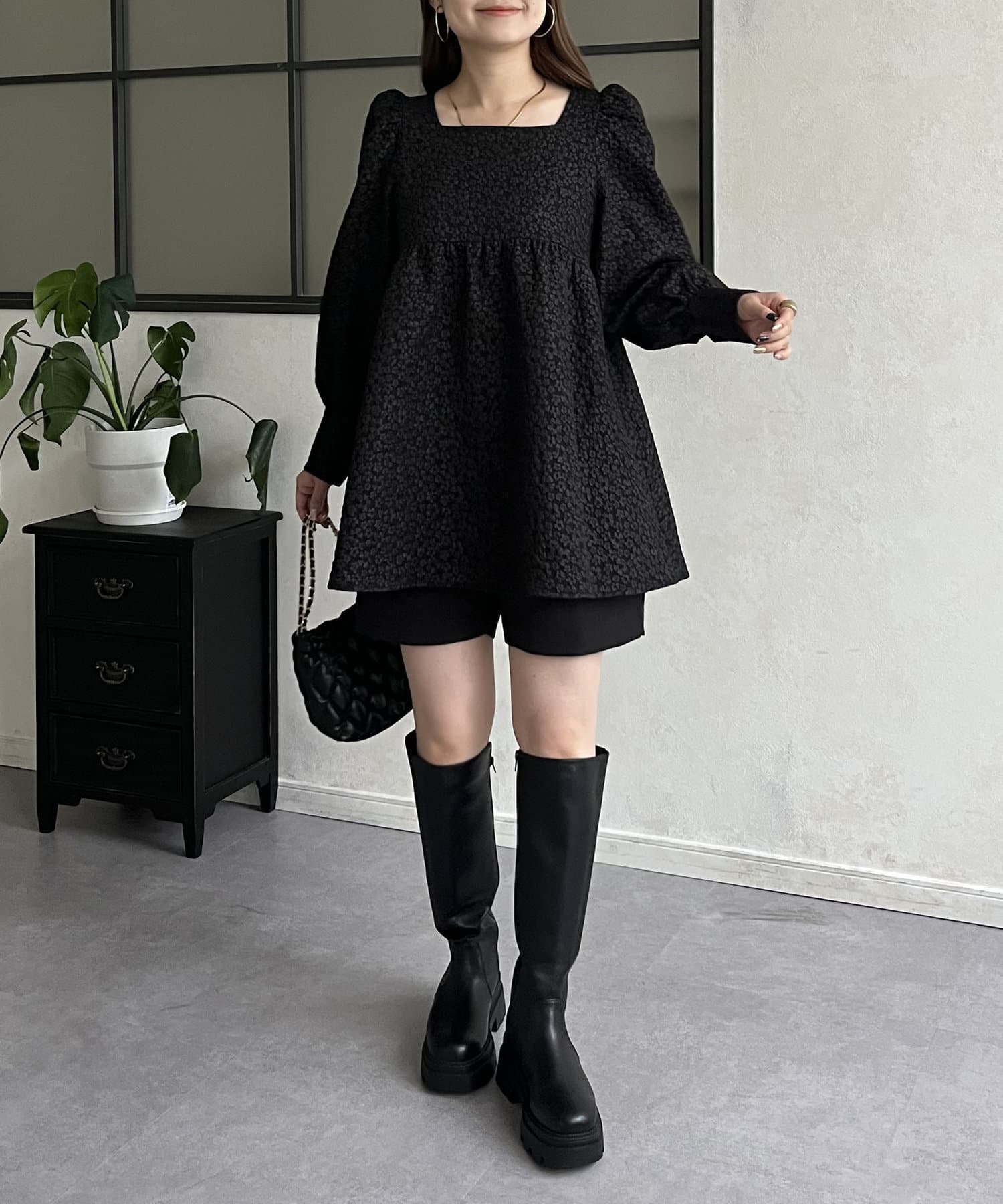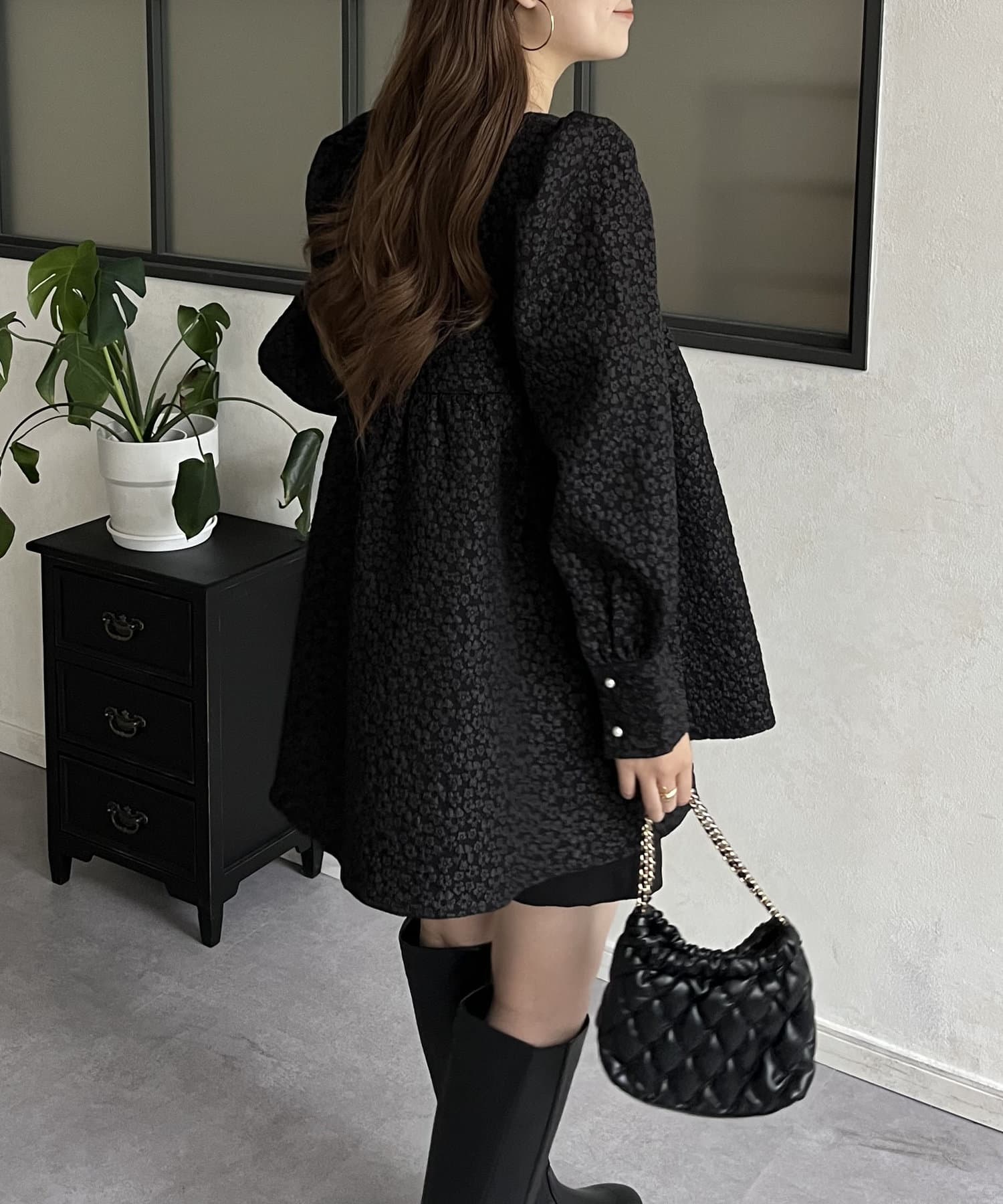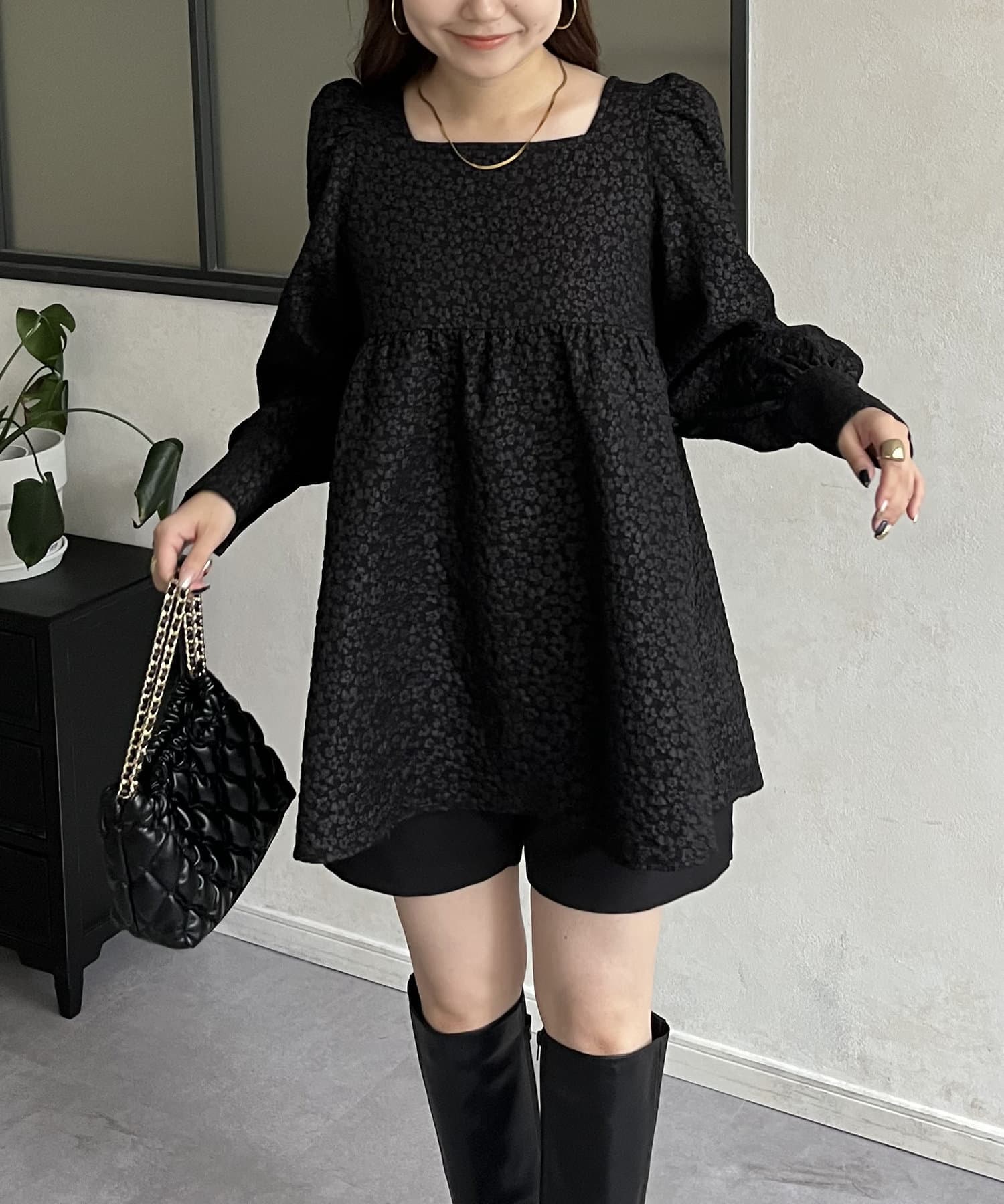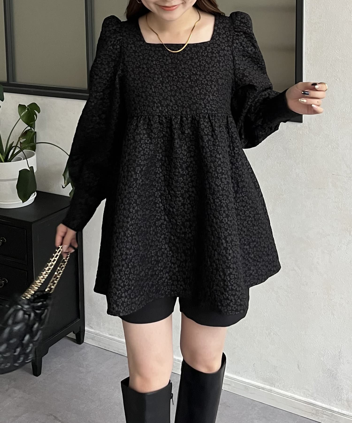 • prose verse(プロズヴェール) パフスリーブフラワージャガードAラインブラウス