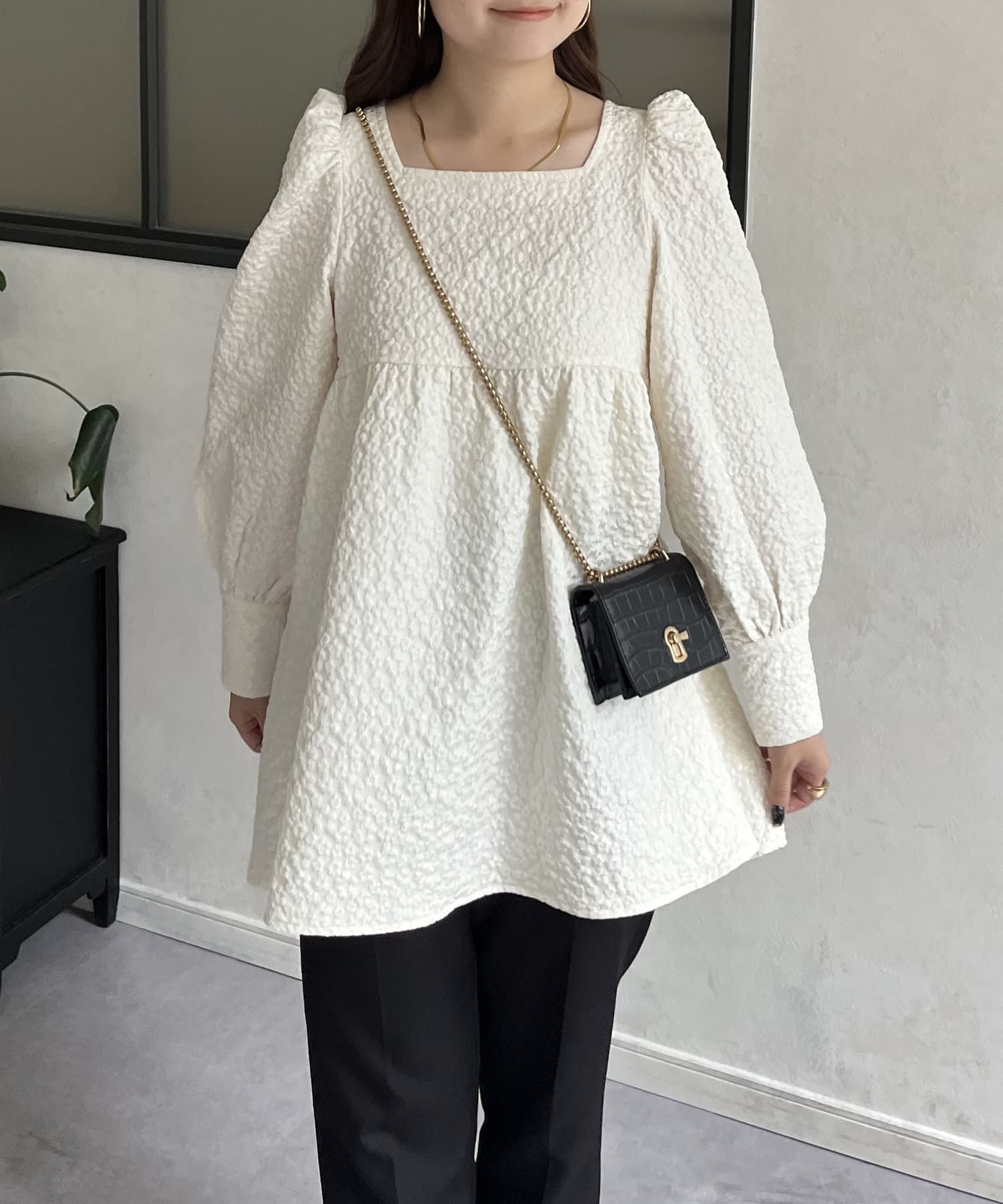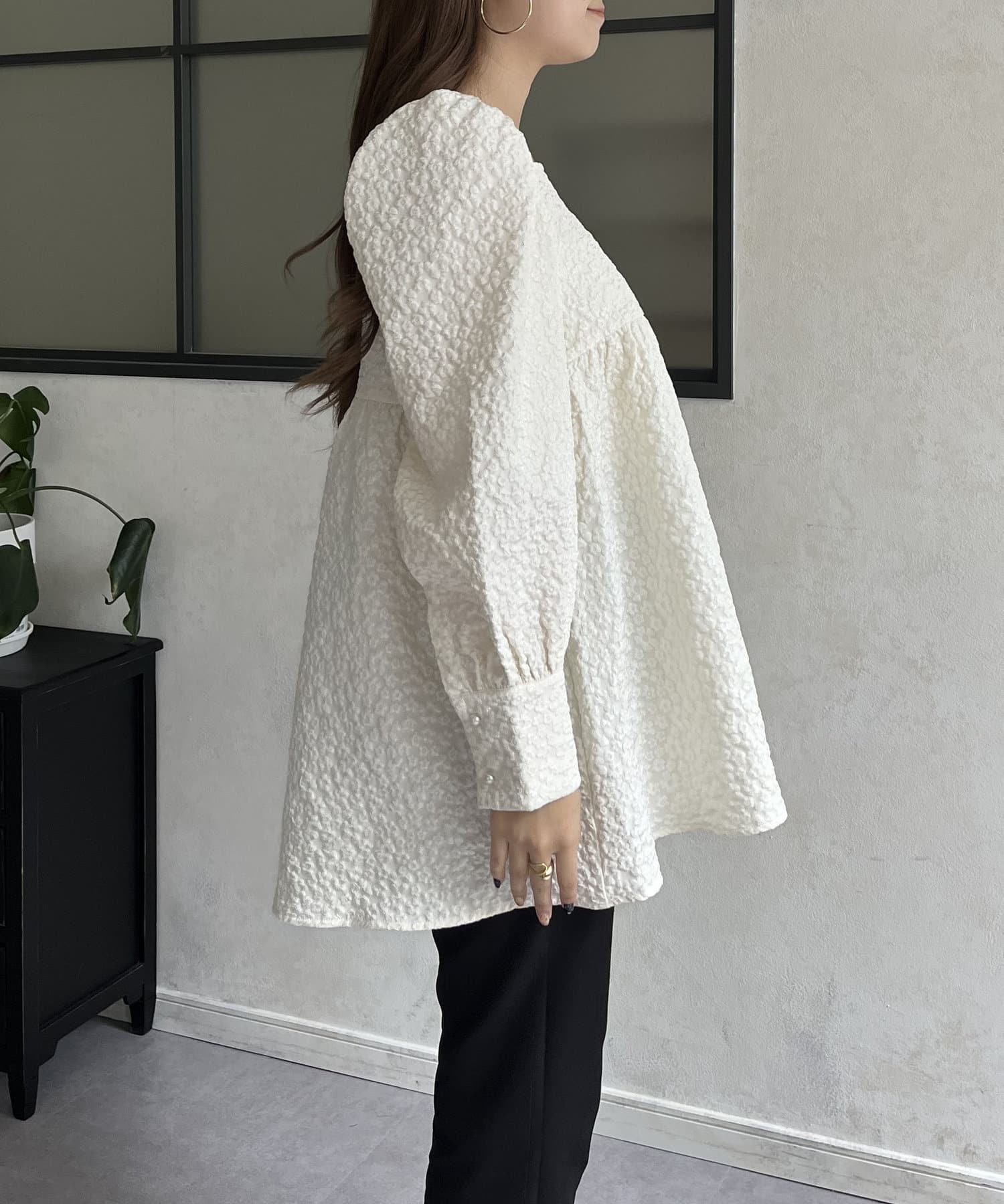 TOP > prose verse > レディース > トップス > シャツ/ブラウス(プルオーバー) > パフスリーブフラワージャガードAラインブラウス