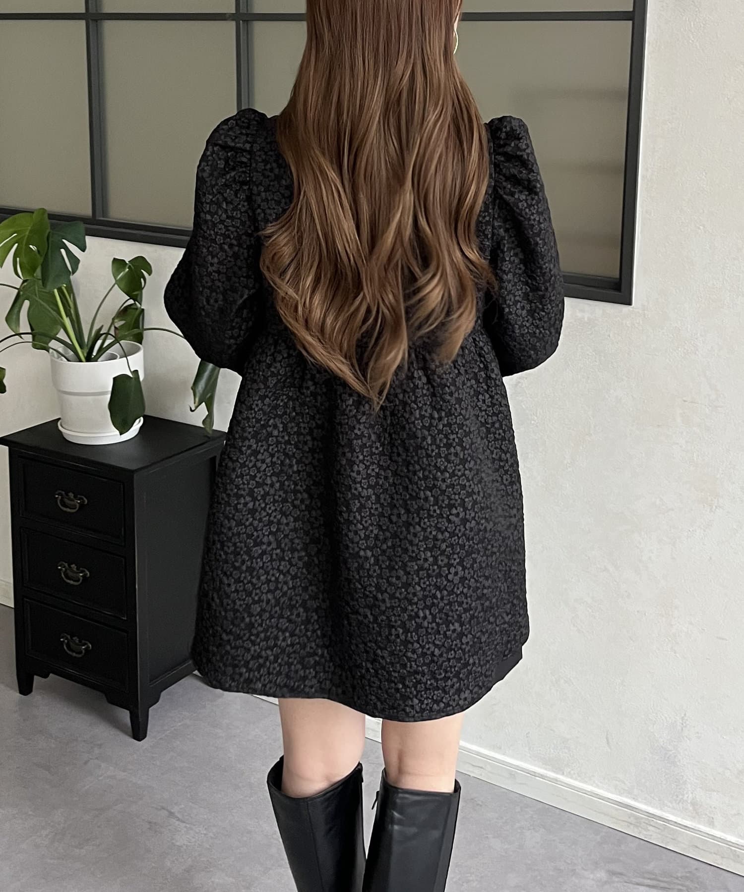 prose verse(プロズヴェール) パフスリーブフラワージャガードAラインブラウス