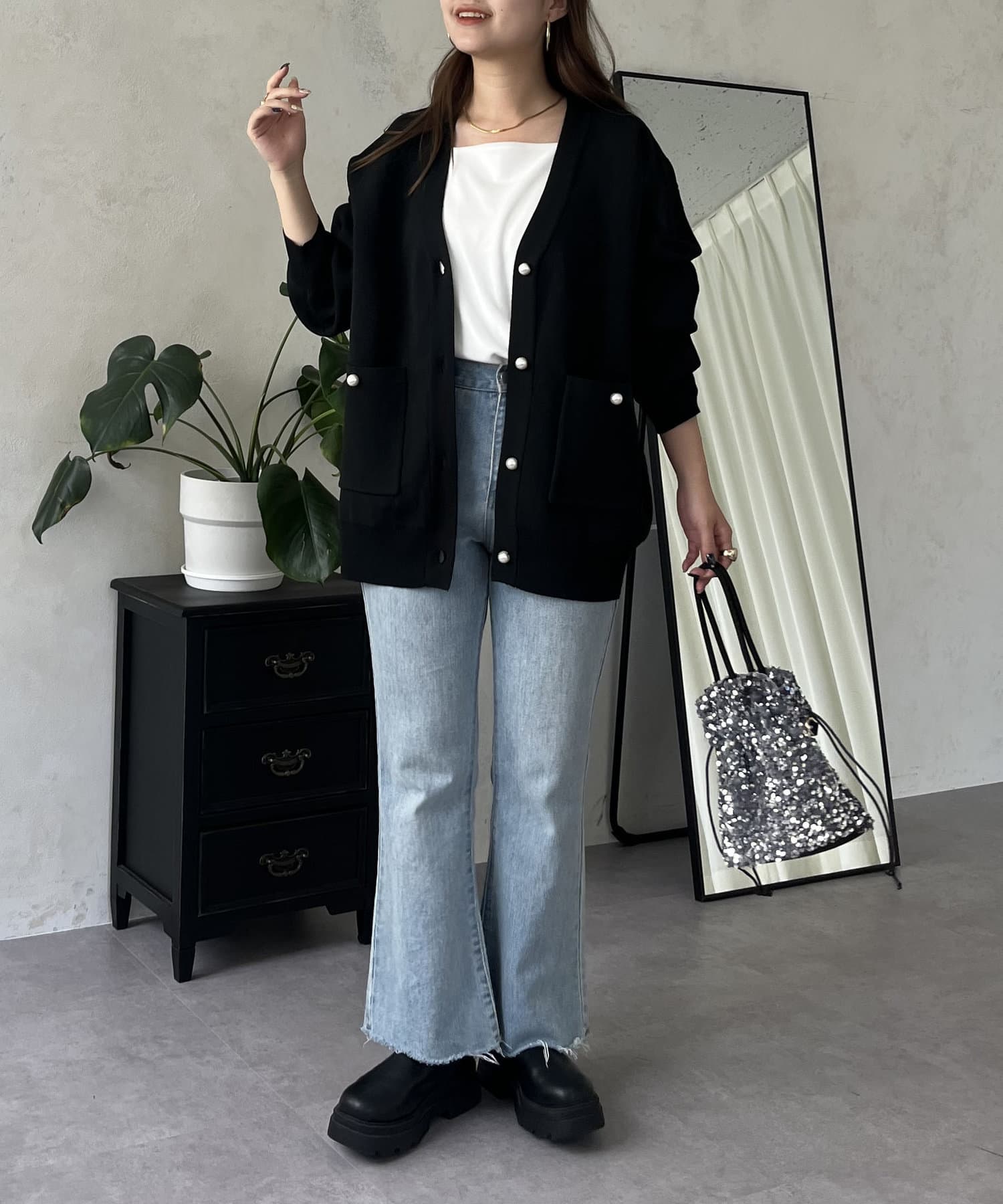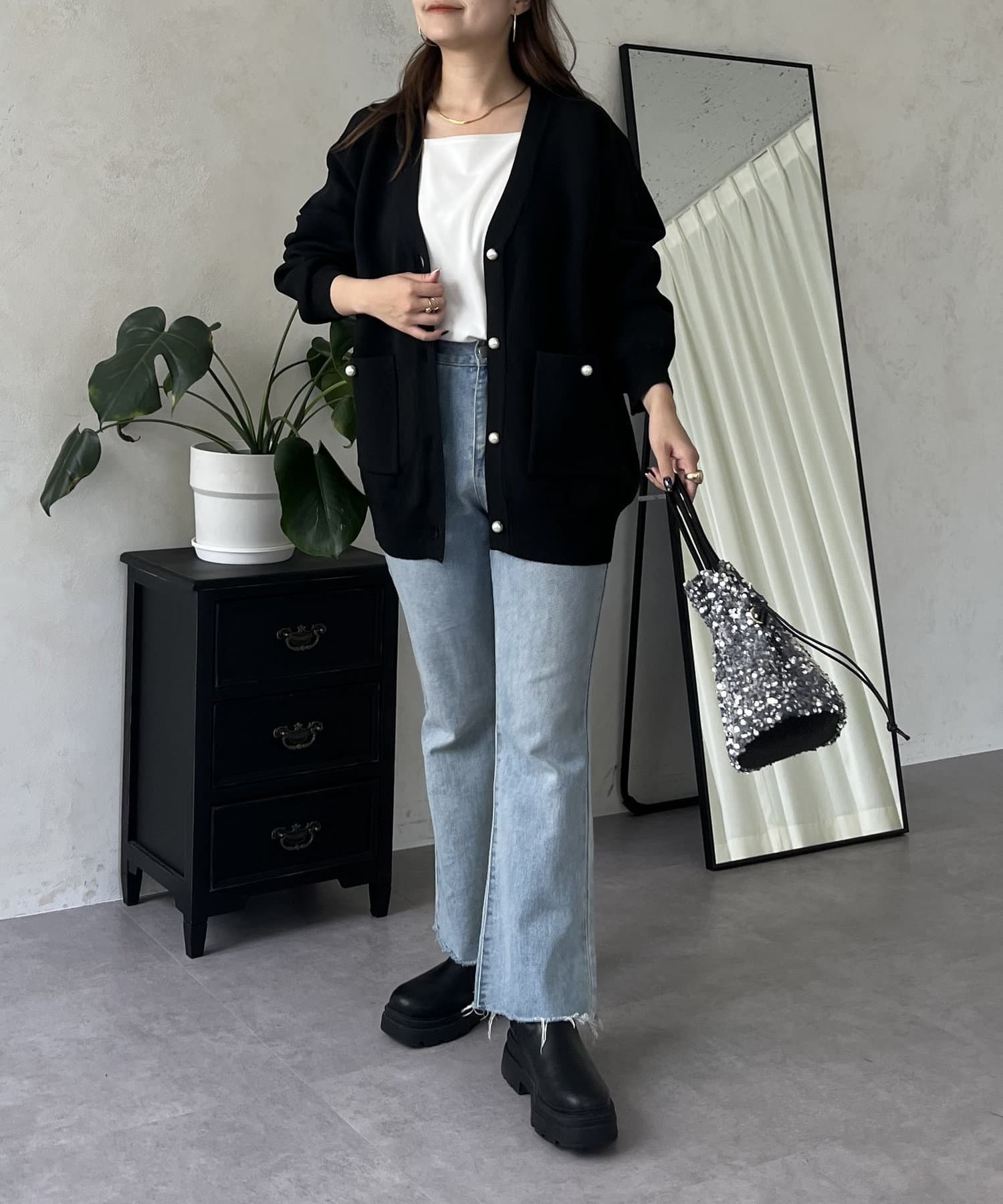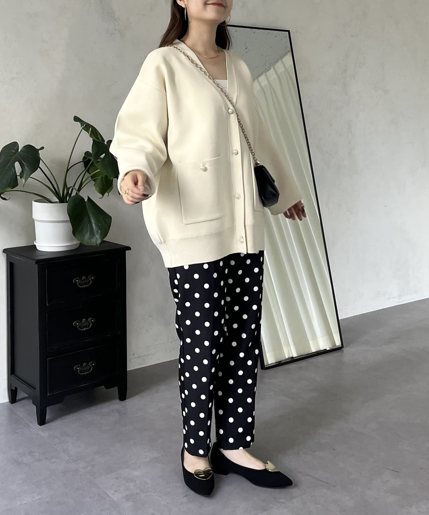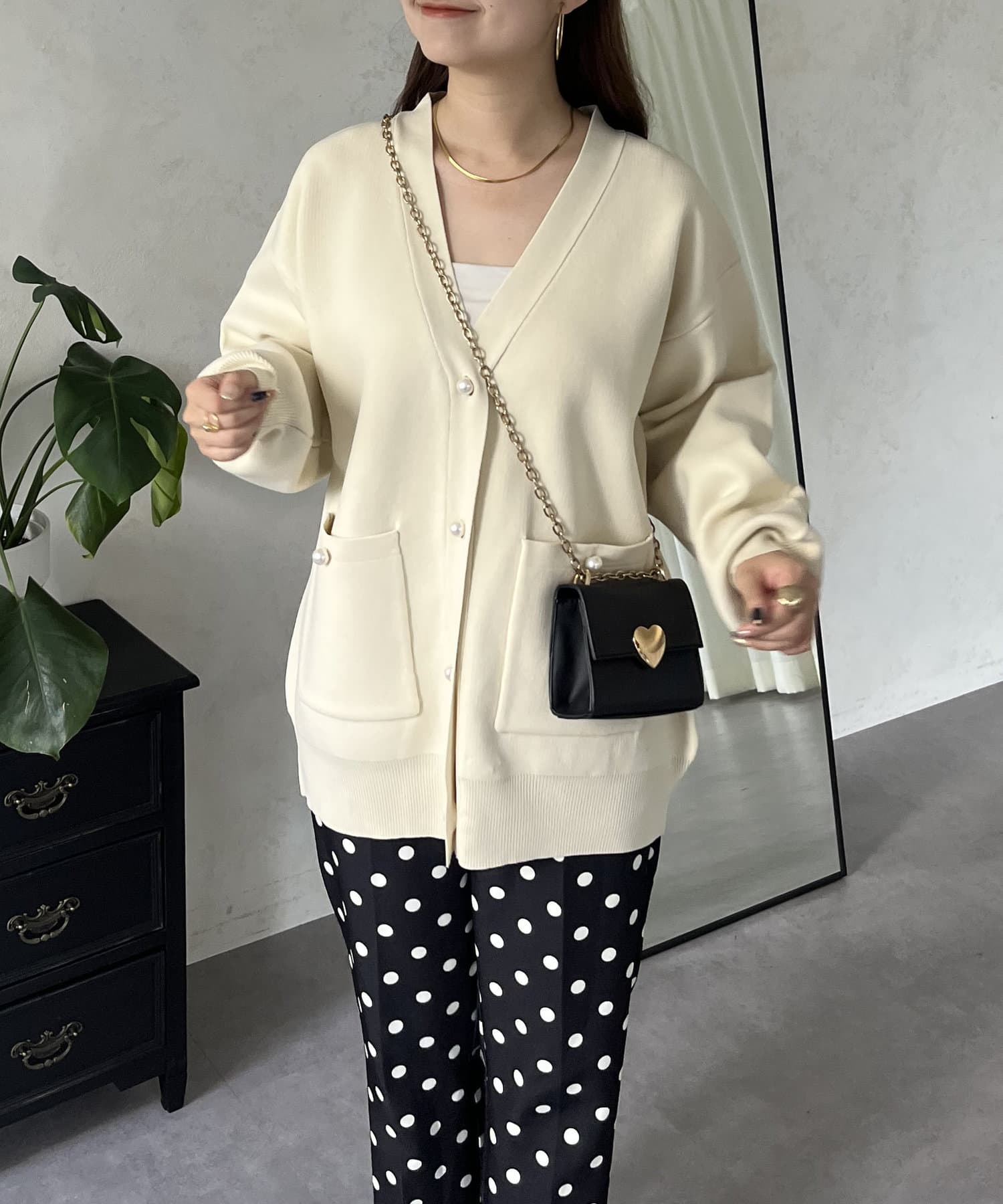 カーディガン/パールボタン/体系カバー/着回し/大人カジュアル