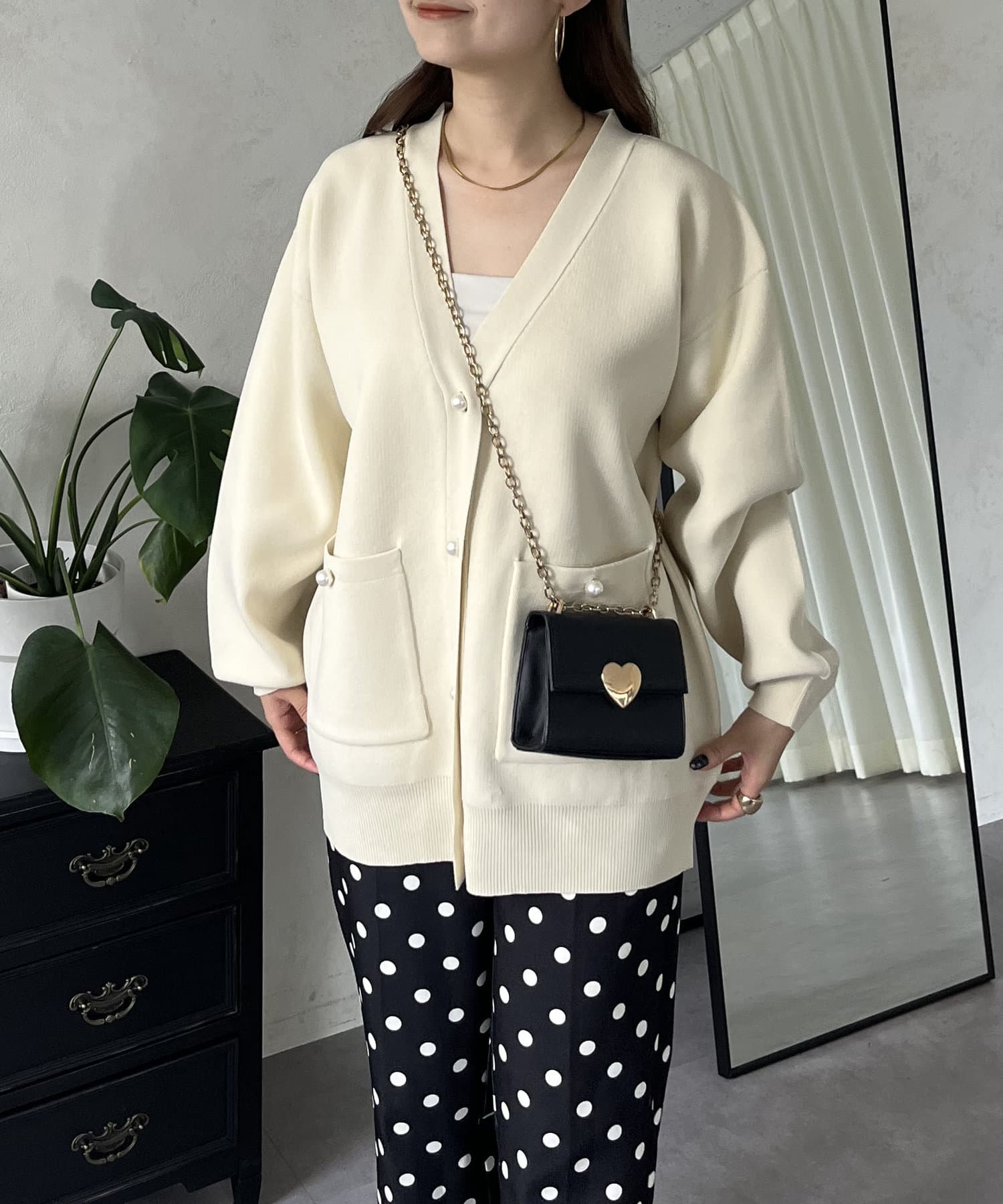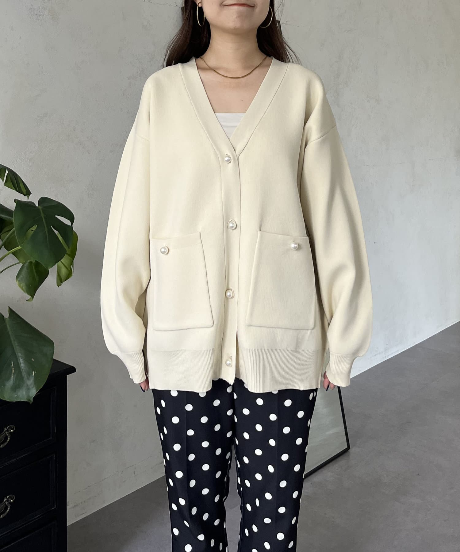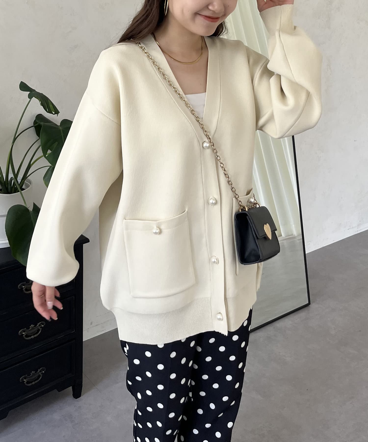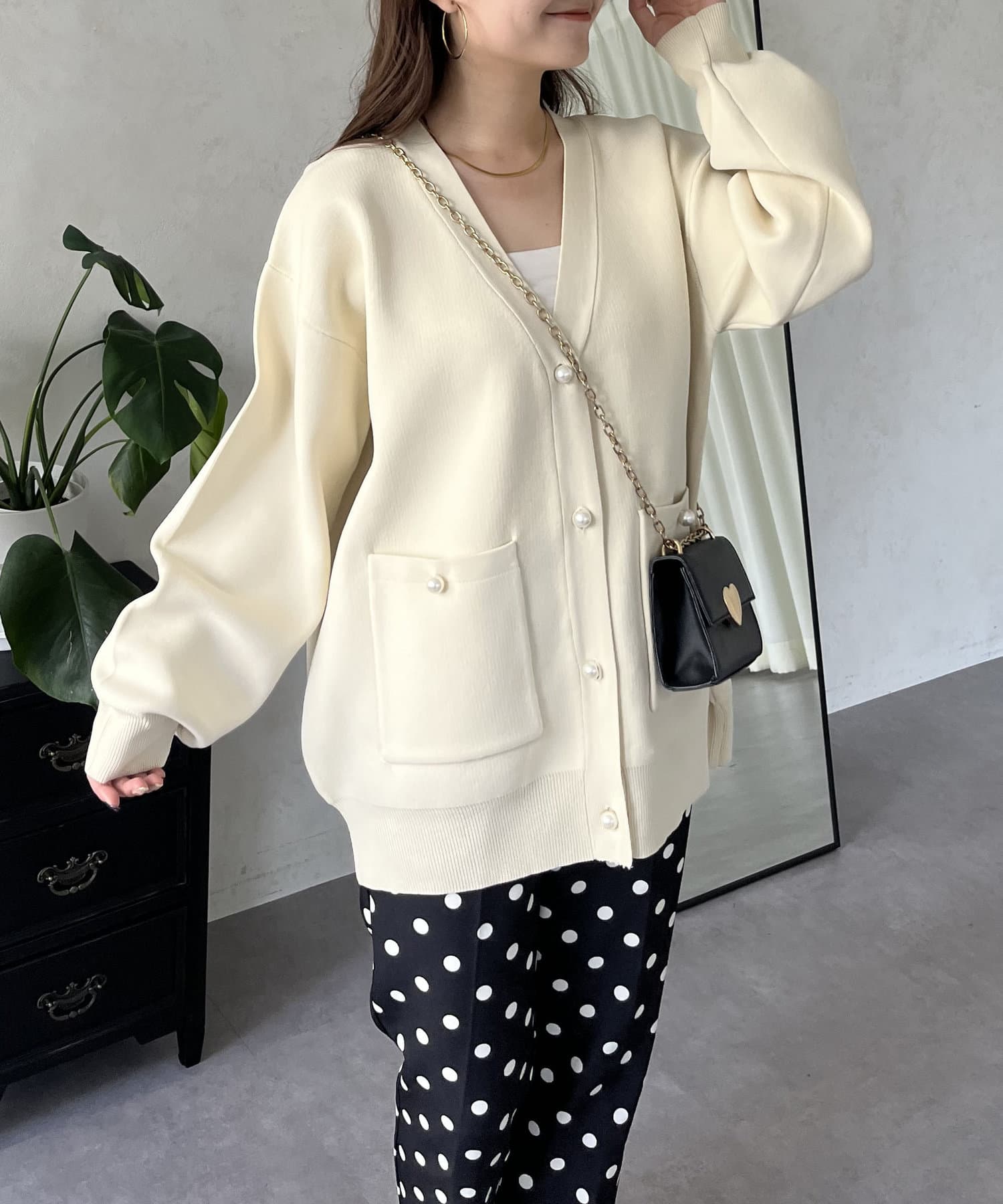 カーディガン/パールボタン/体系カバー/着回し/大人カジュアル