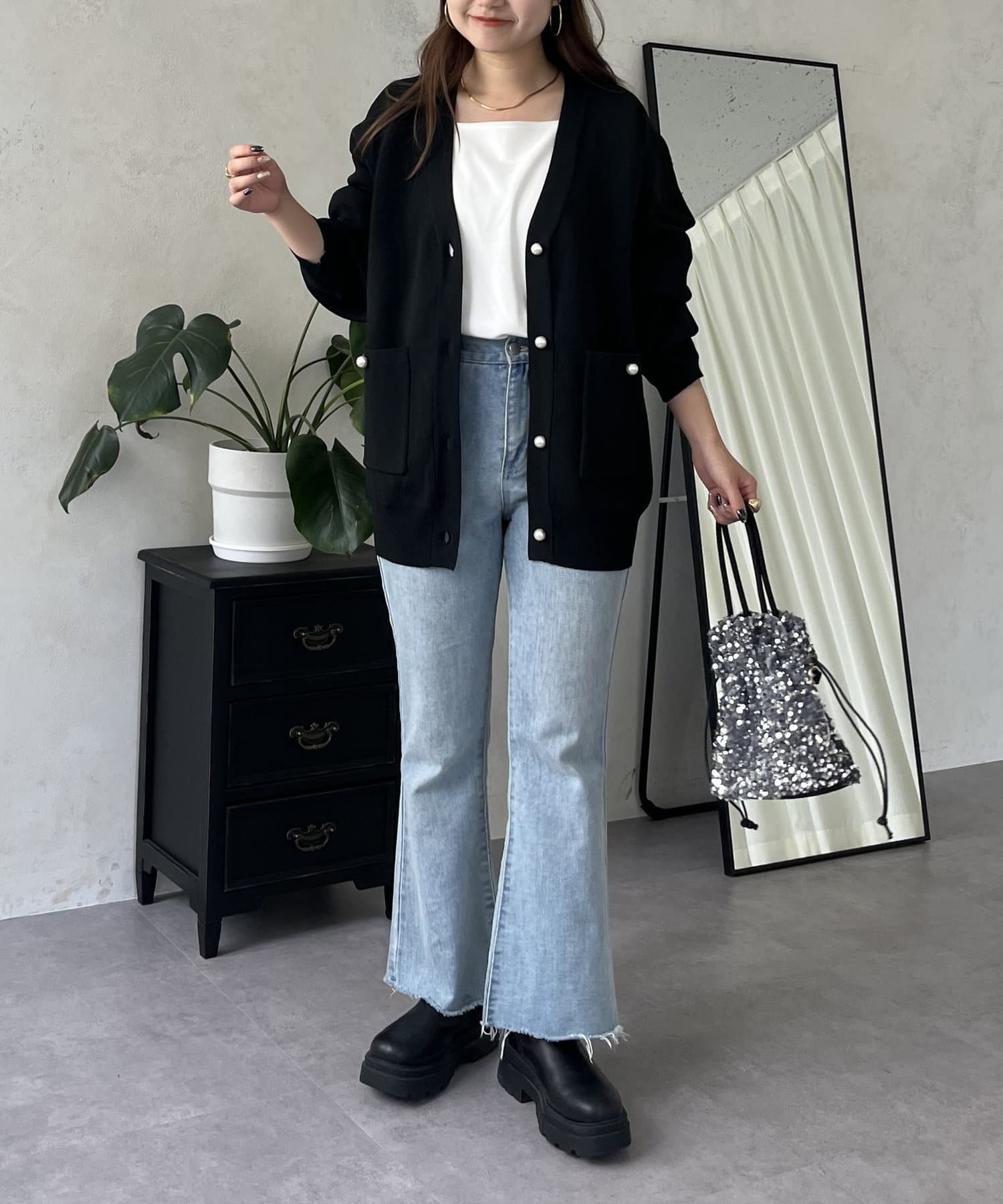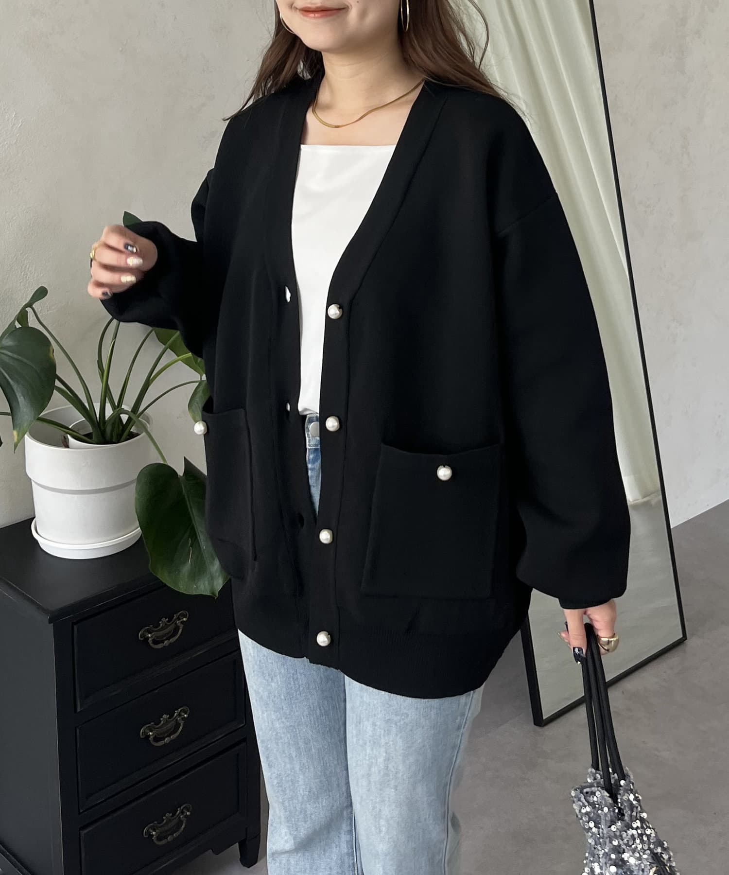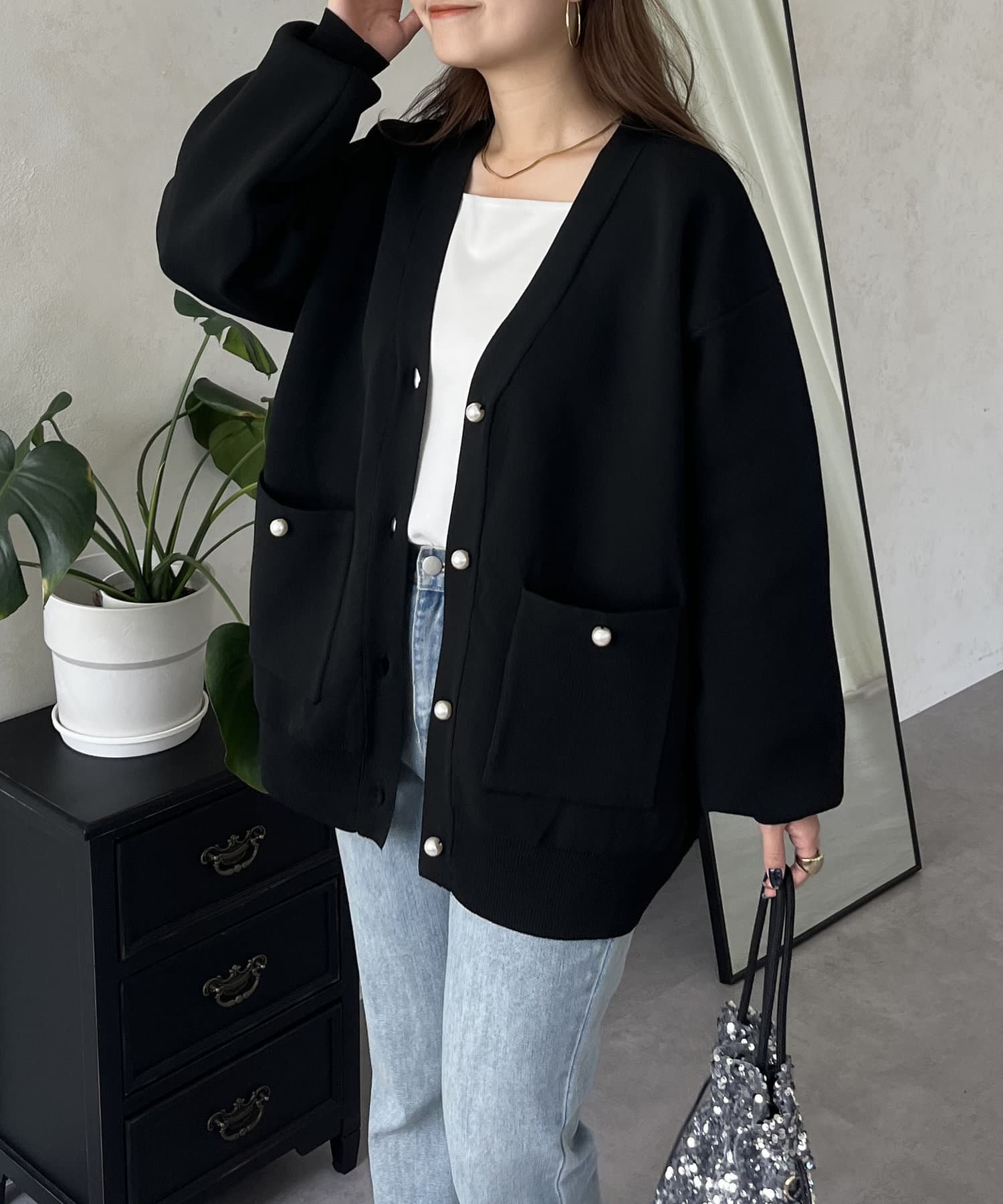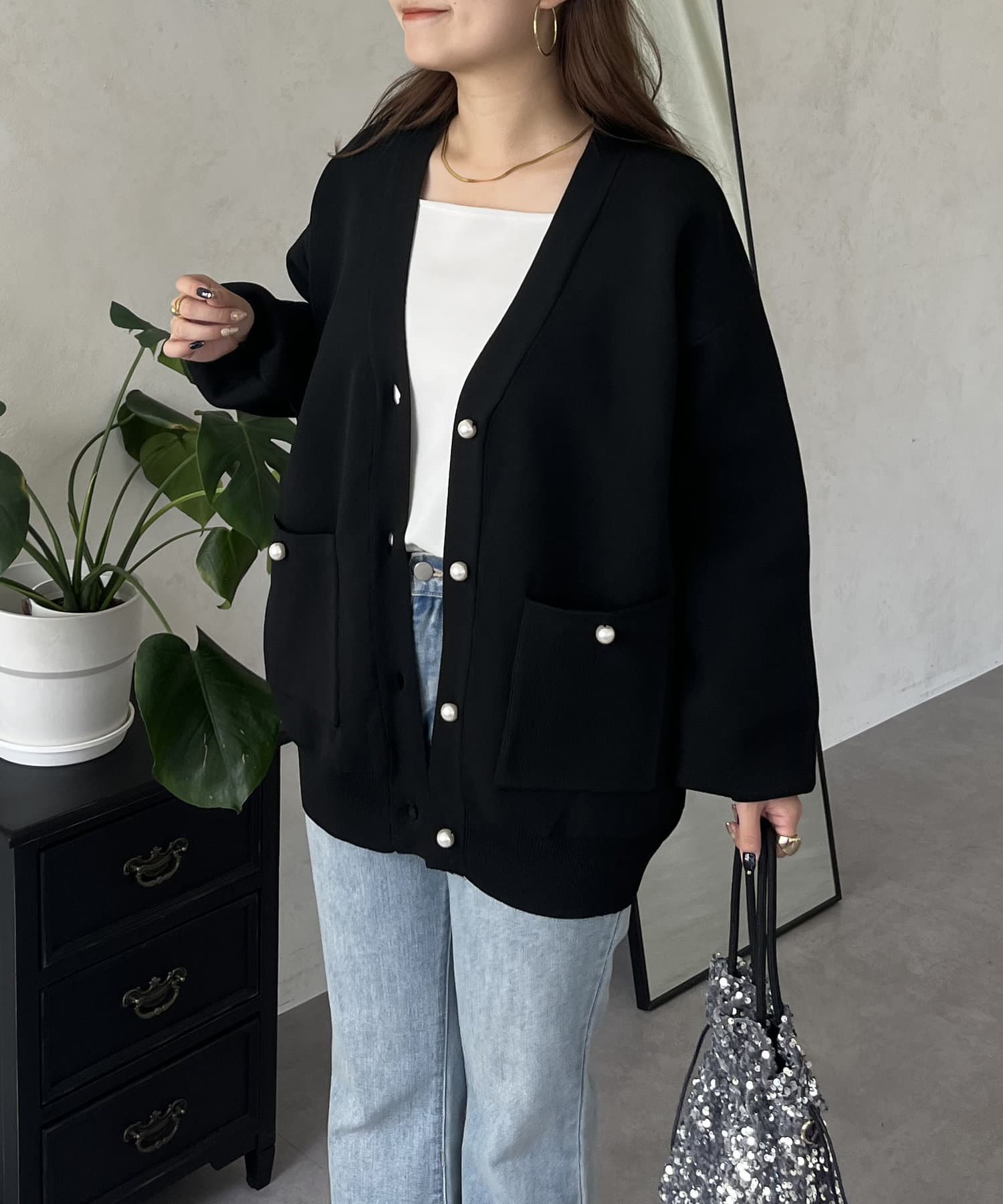 カーディガン/パールボタン/体系カバー/着回し/大人カジュアル