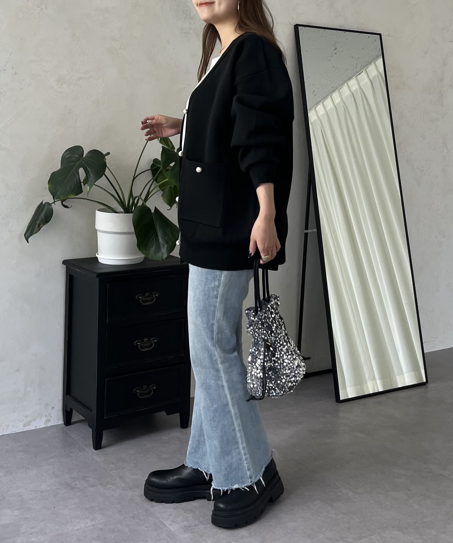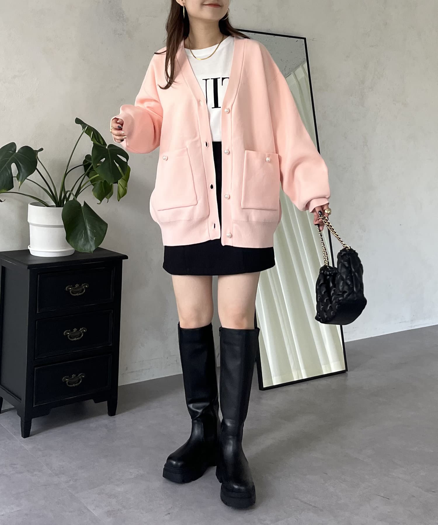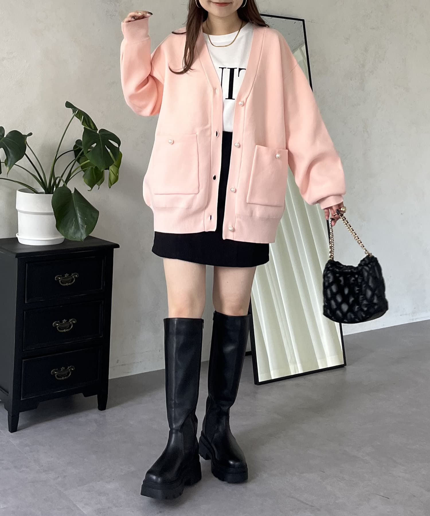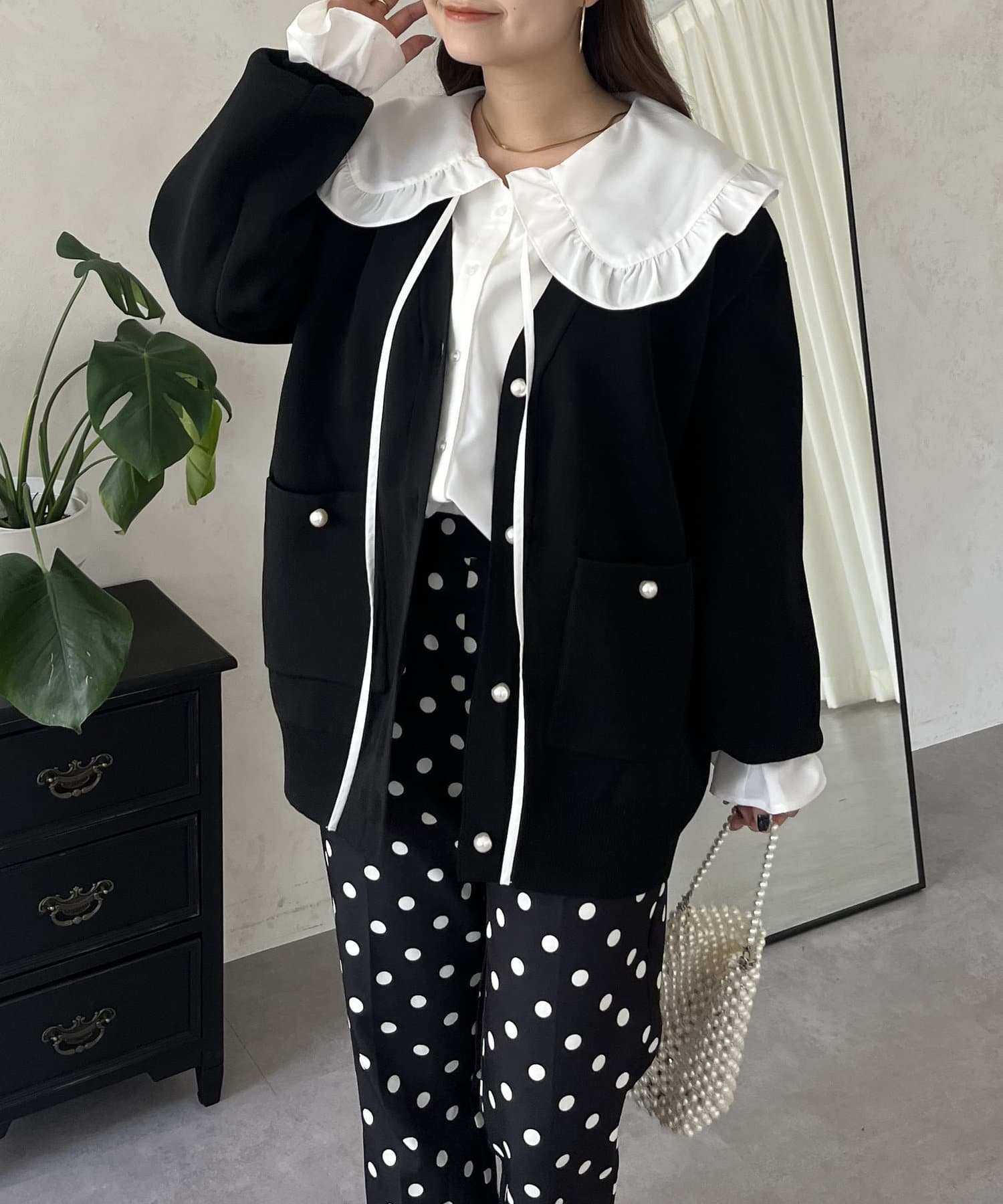 カーディガン/パールボタン/体系カバー/着回し/大人カジュアル
