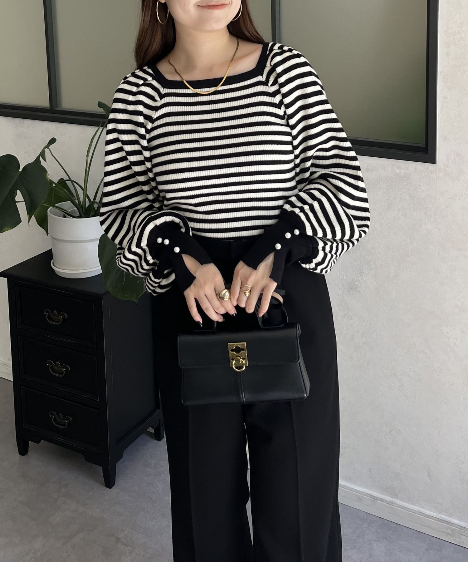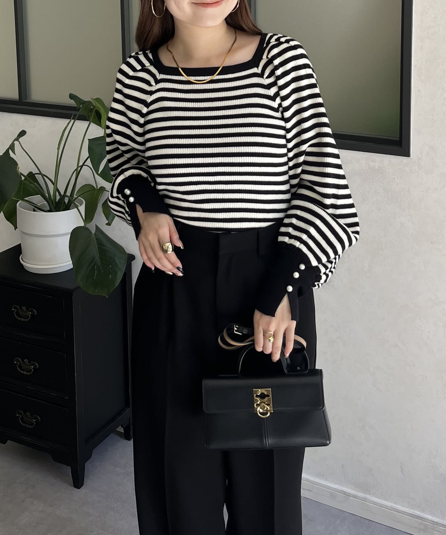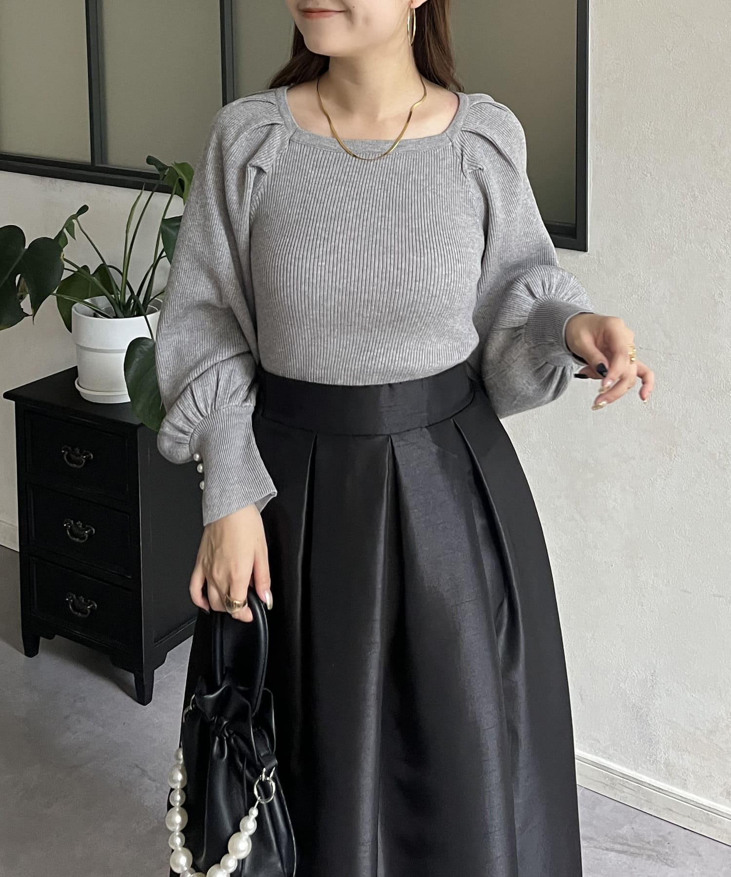 prose verse(プロズヴェール) 袖パールパフスリーブスクエアネックニット