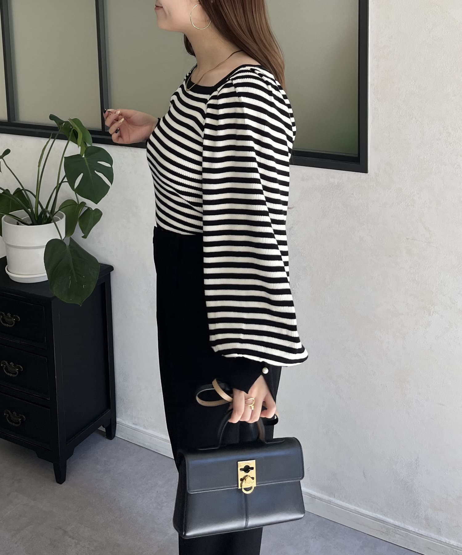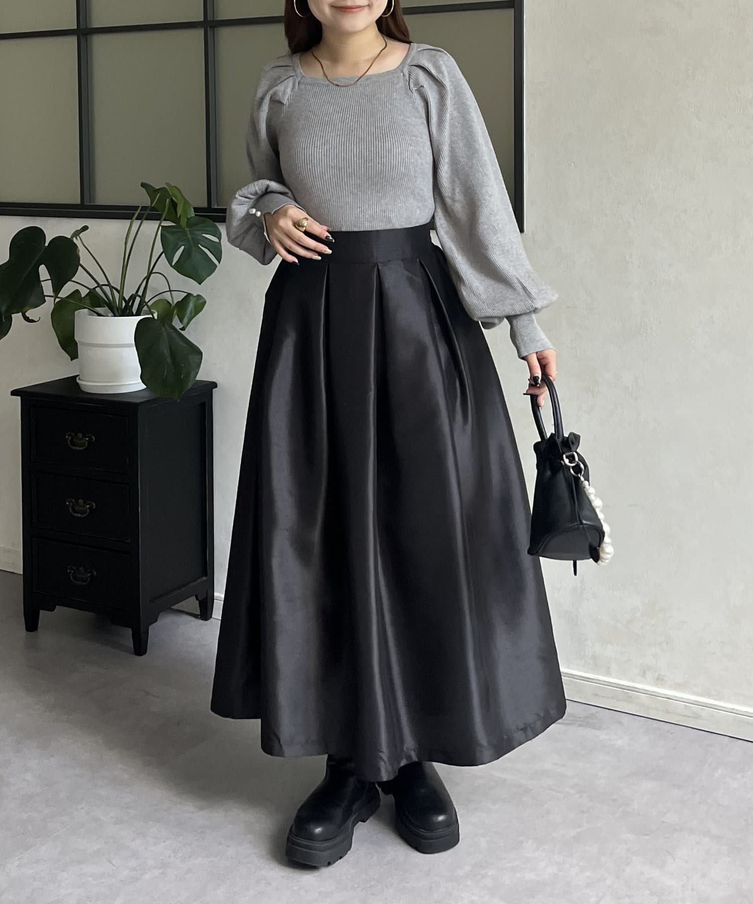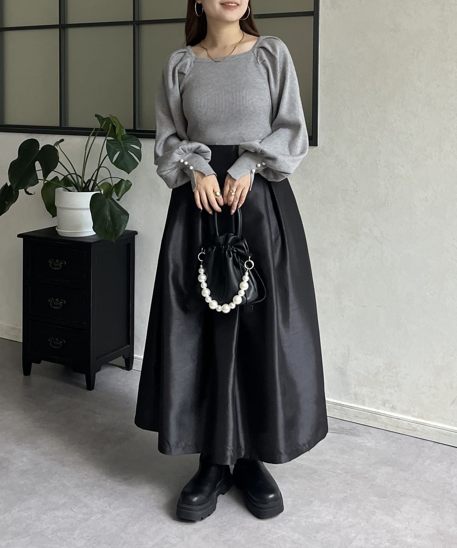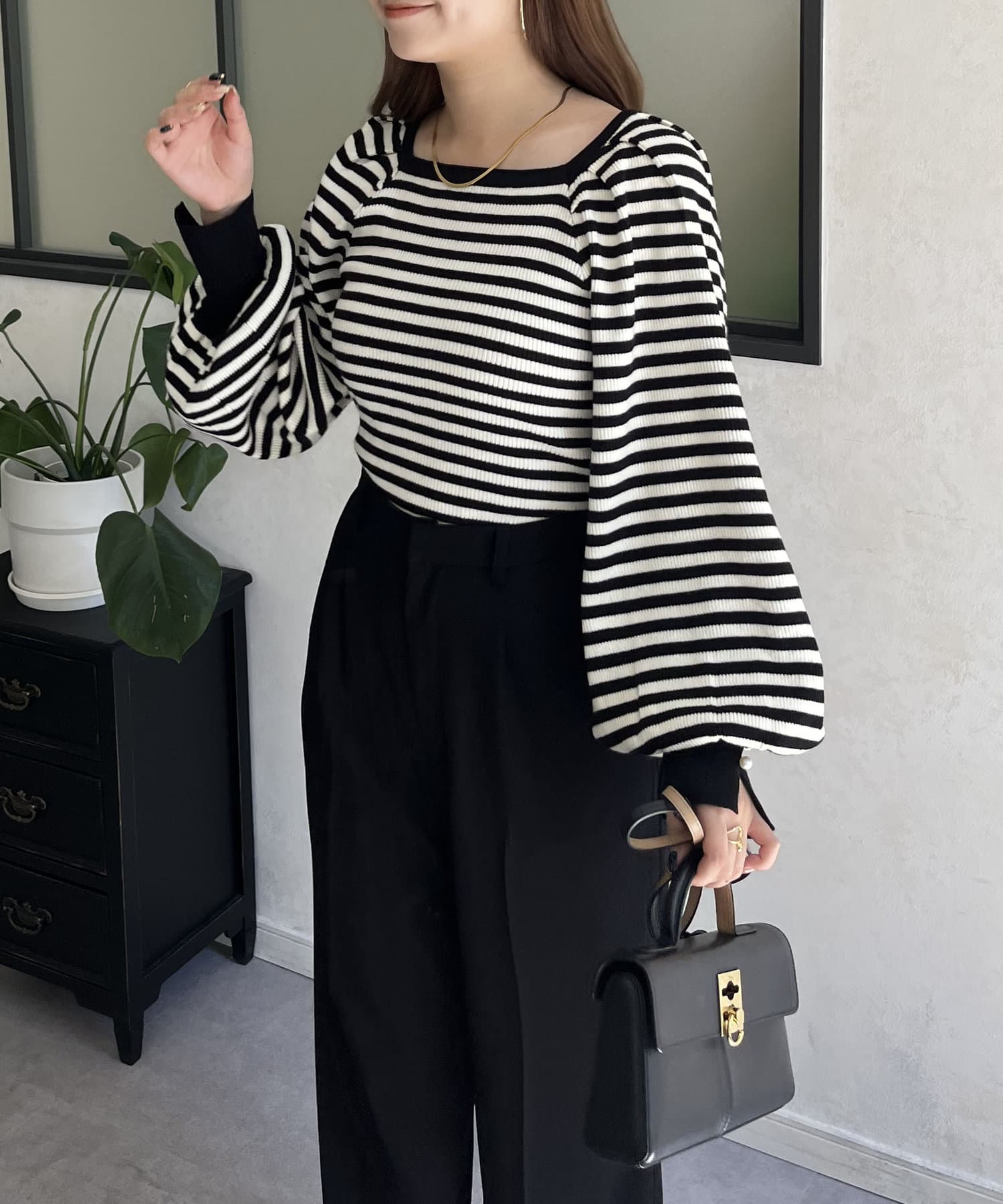 prose verse(プロズヴェール) 袖パールパフスリーブスクエアネックニット