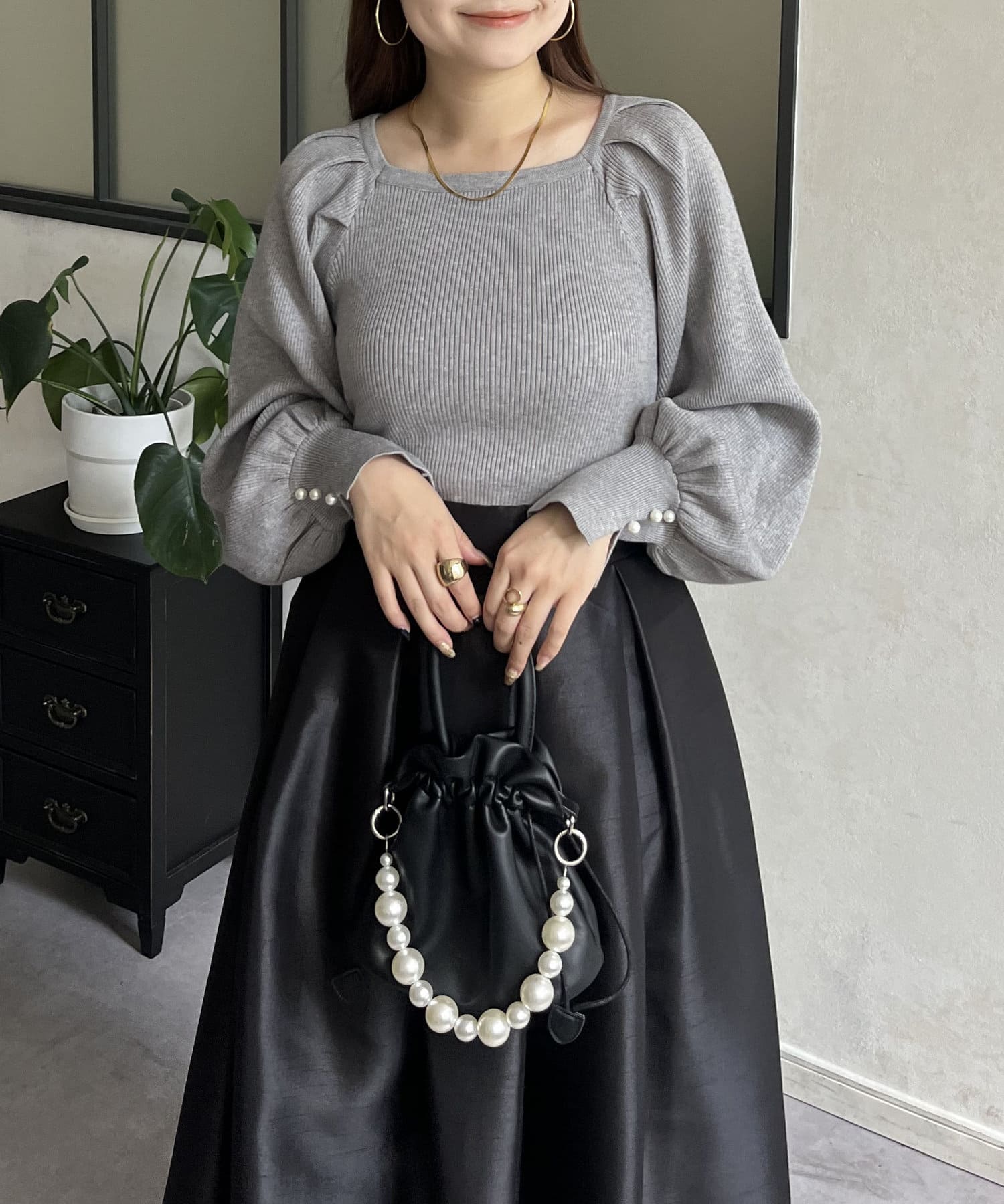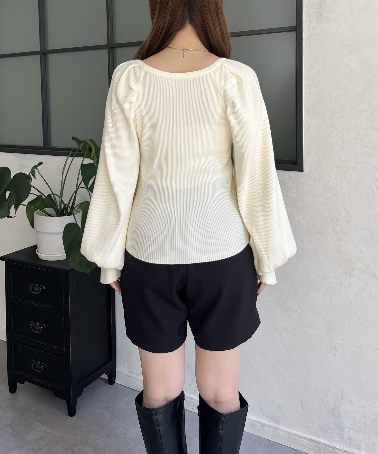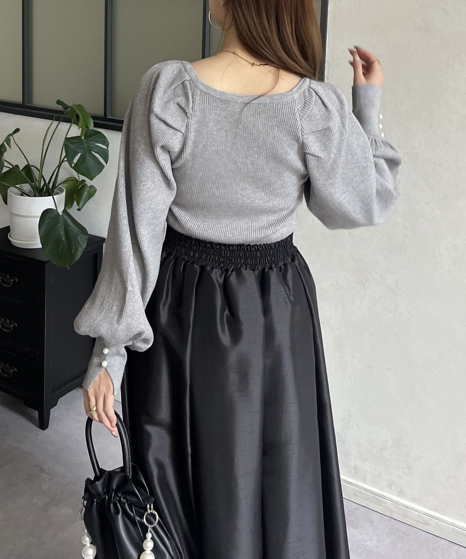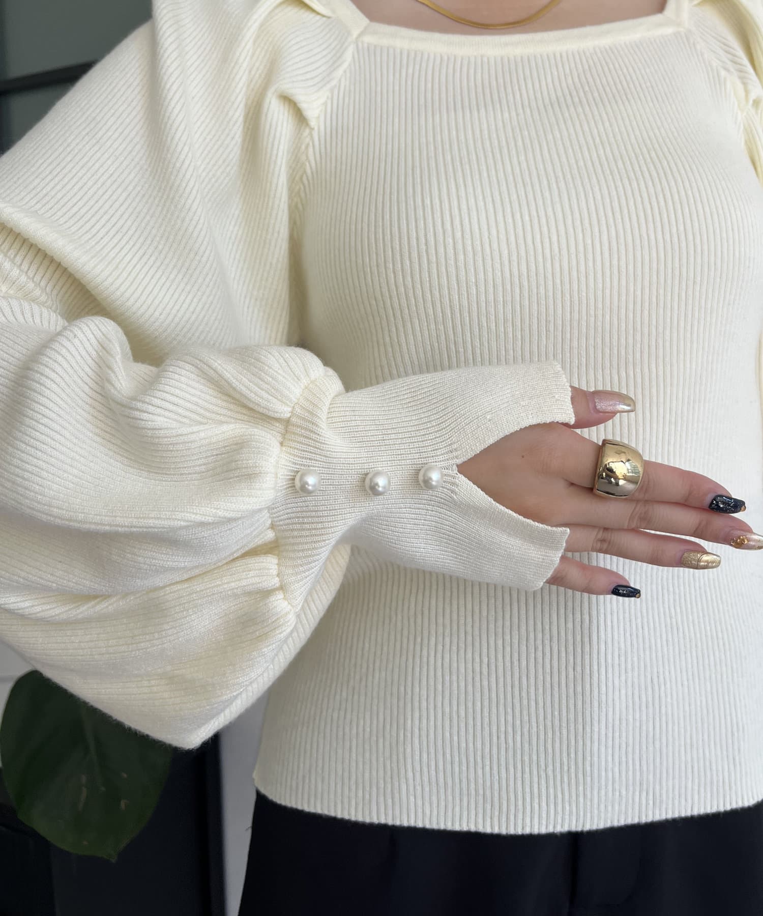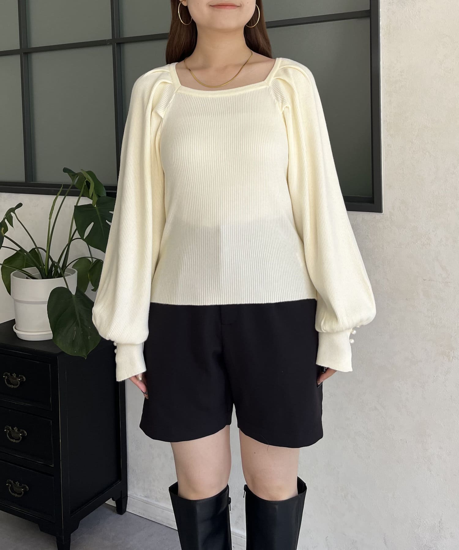 • prose verse(プロズヴェール) 袖パールパフスリーブスクエアネックニット