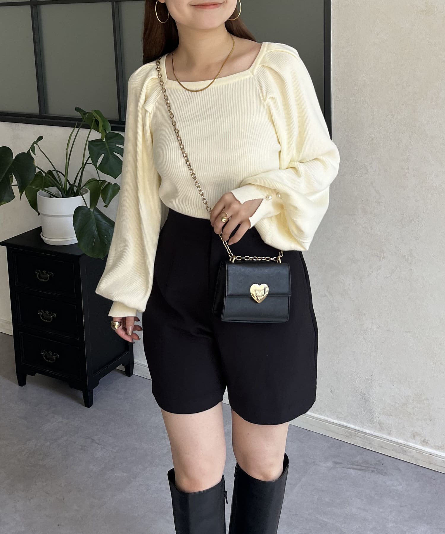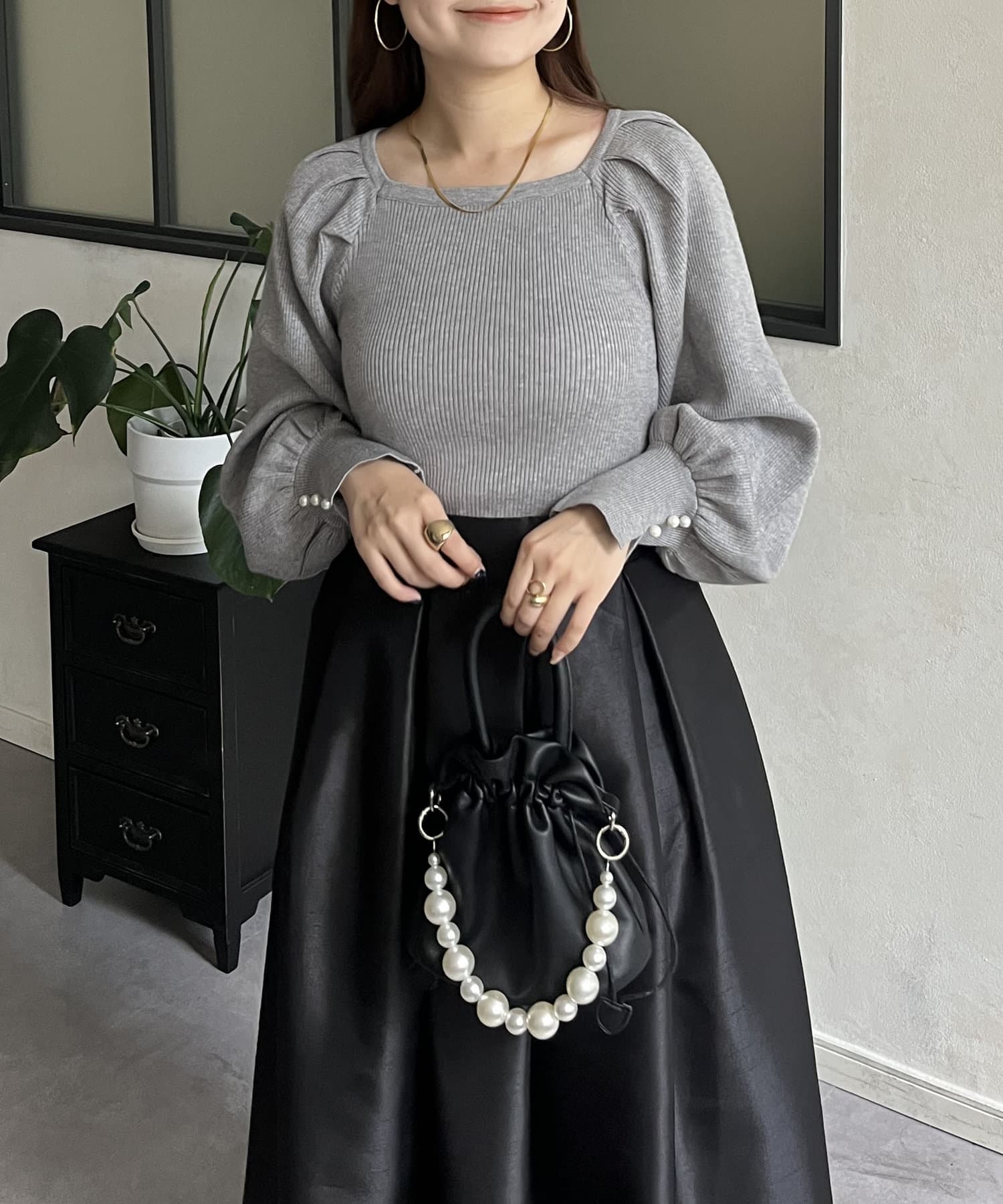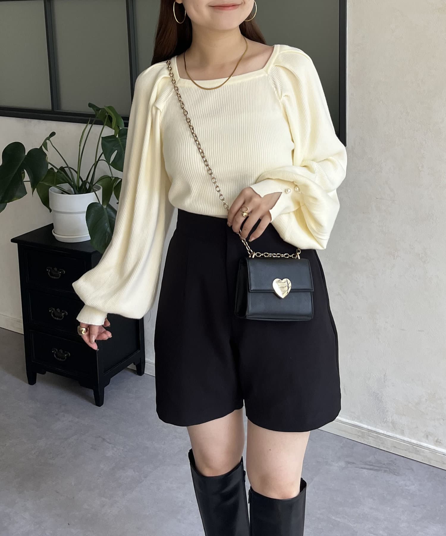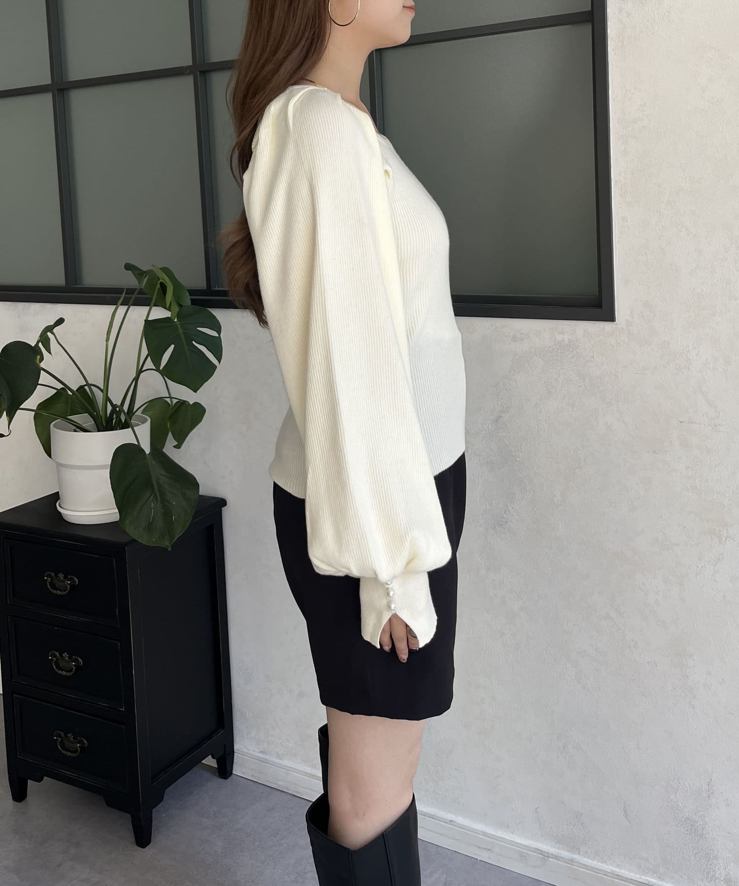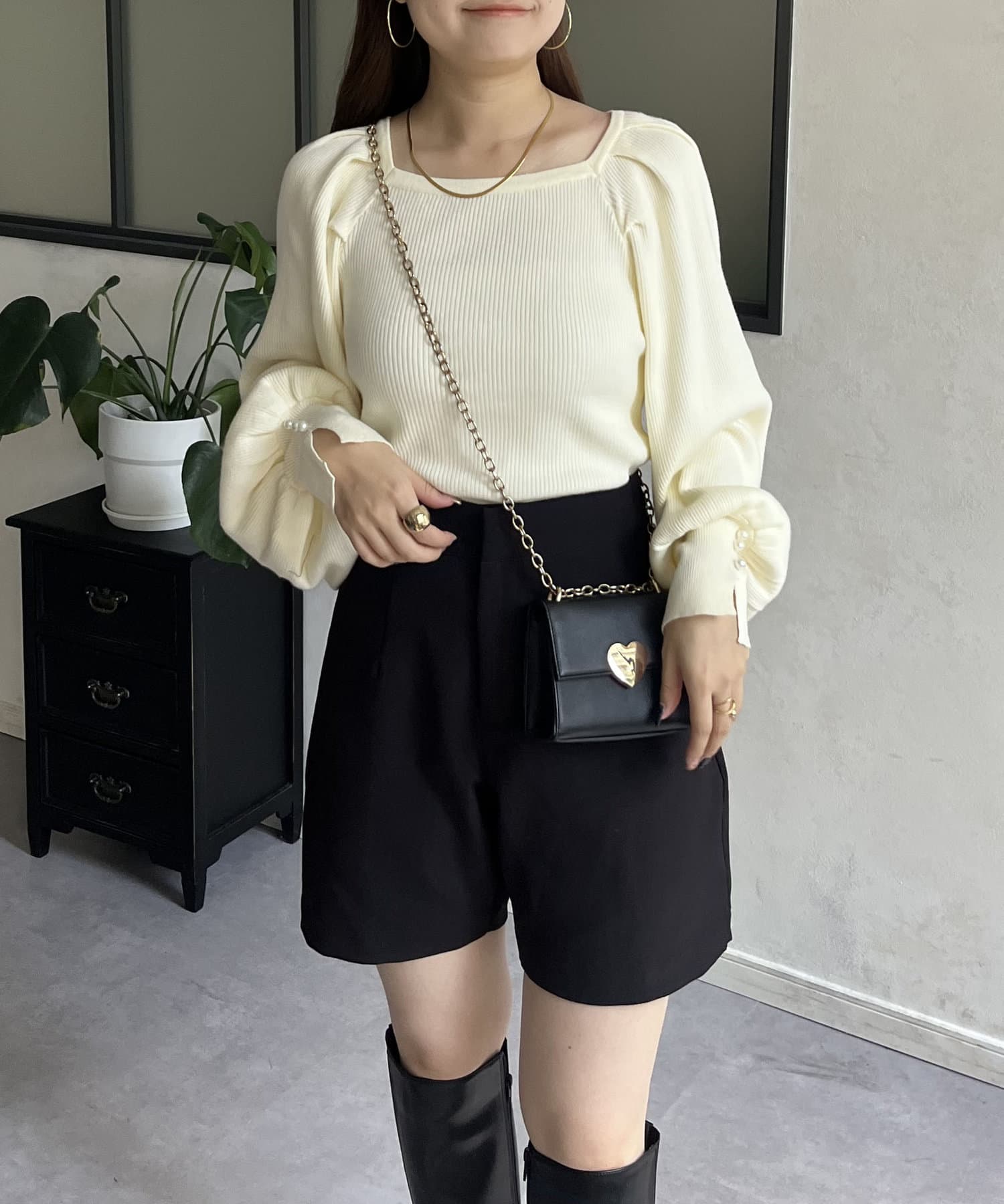 • prose verse(プロズヴェール) 袖パールパフスリーブスクエアネックニット